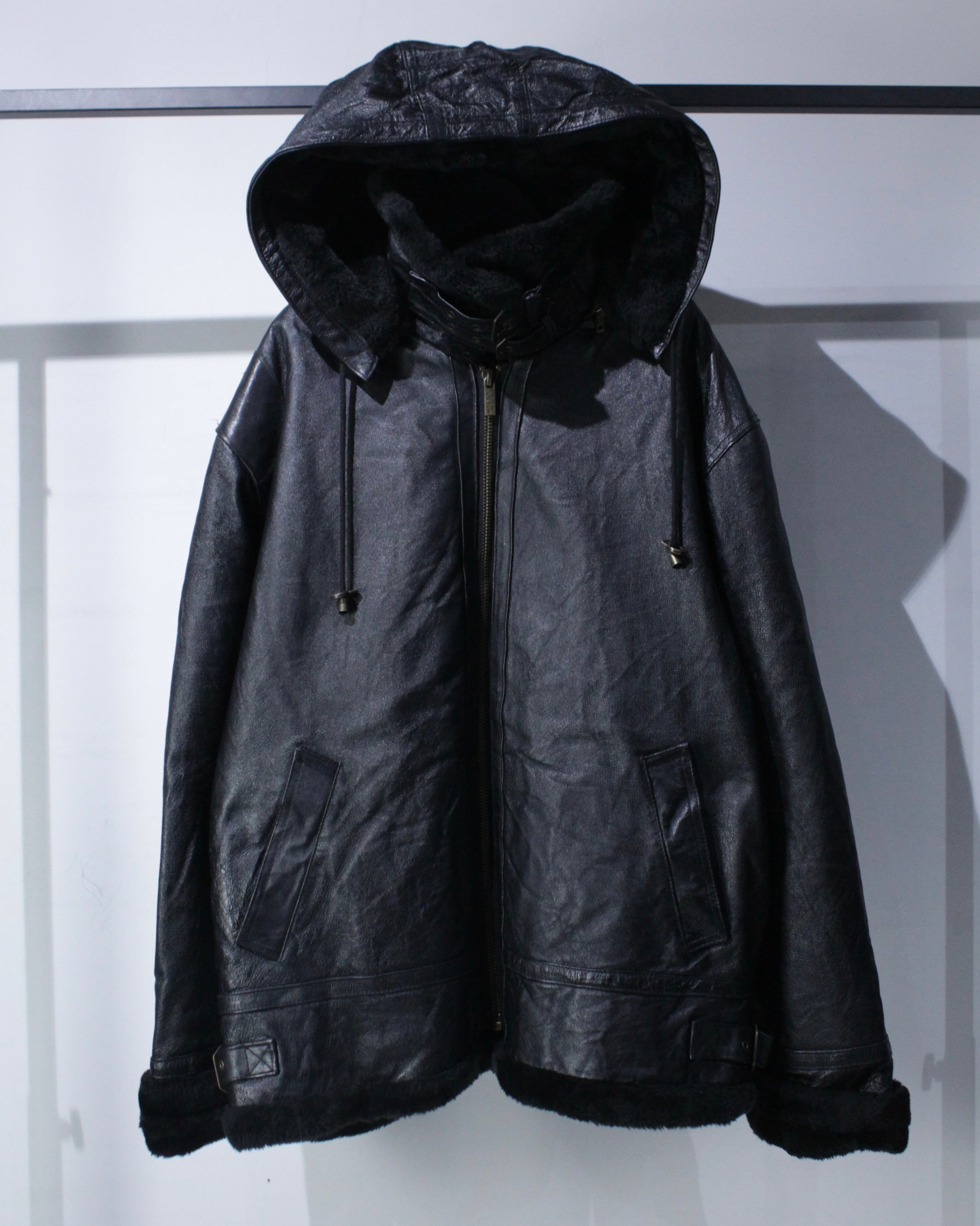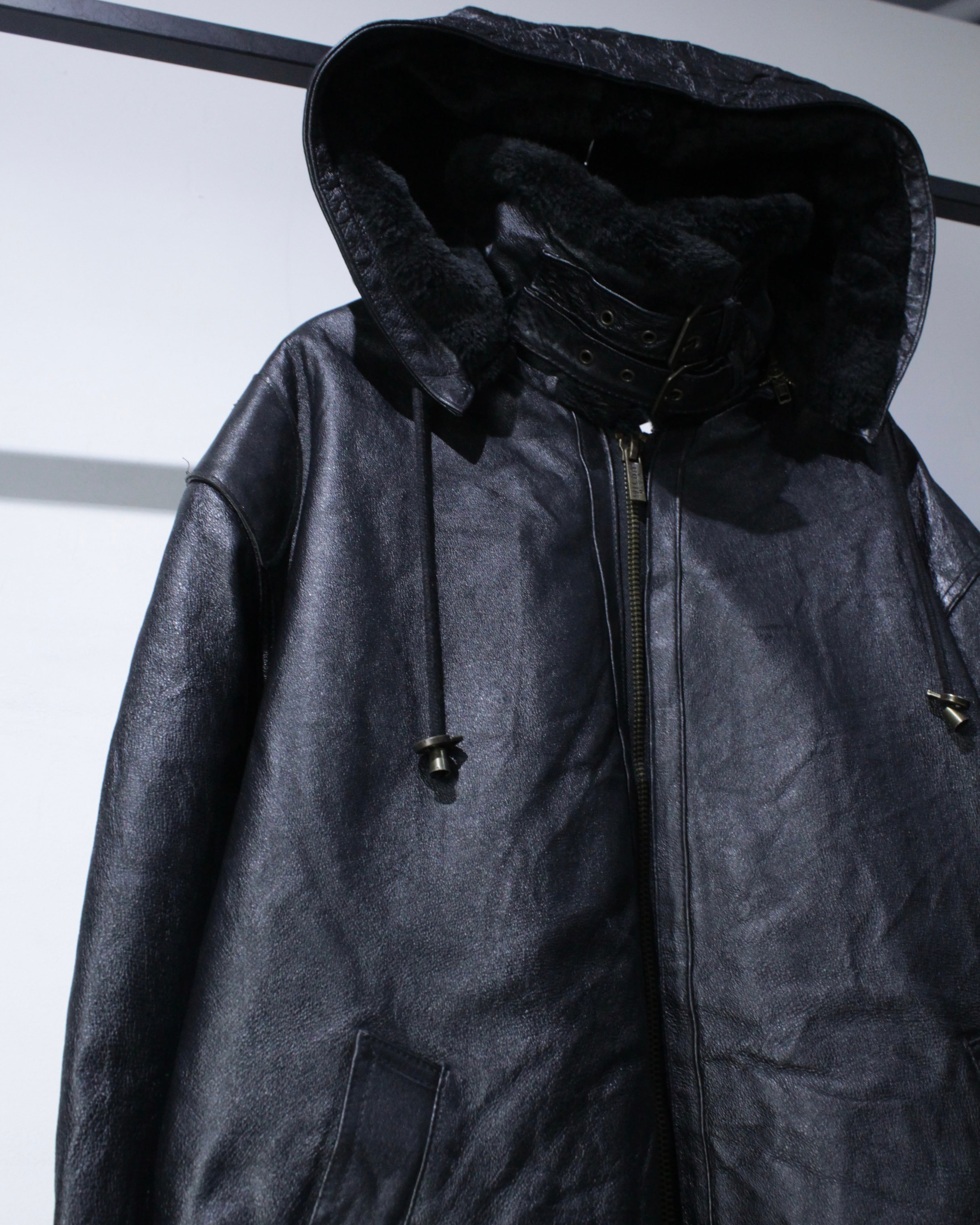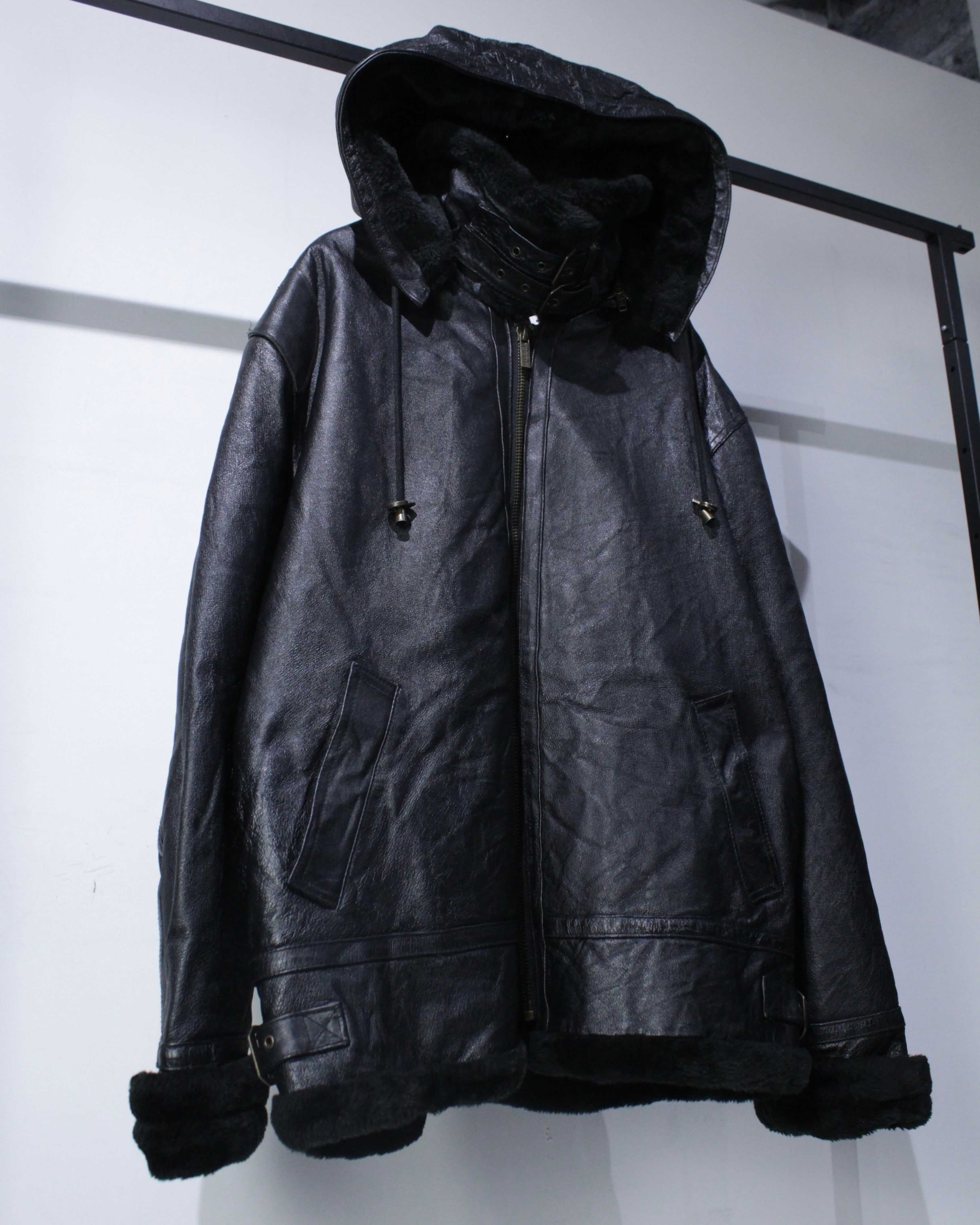 フードまで完備した、“完品”のB-3タイプの重厚感あふれるレザージャケット。