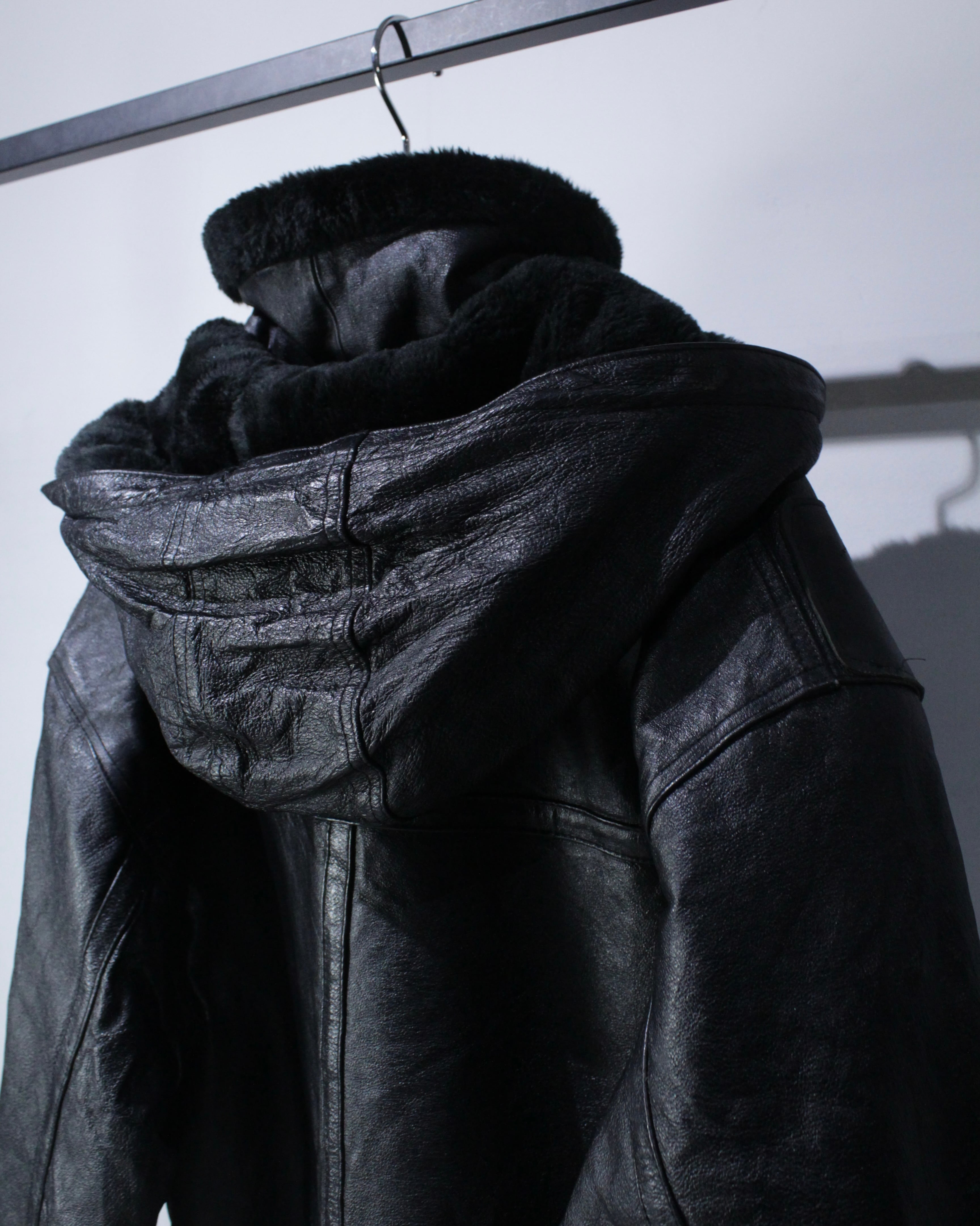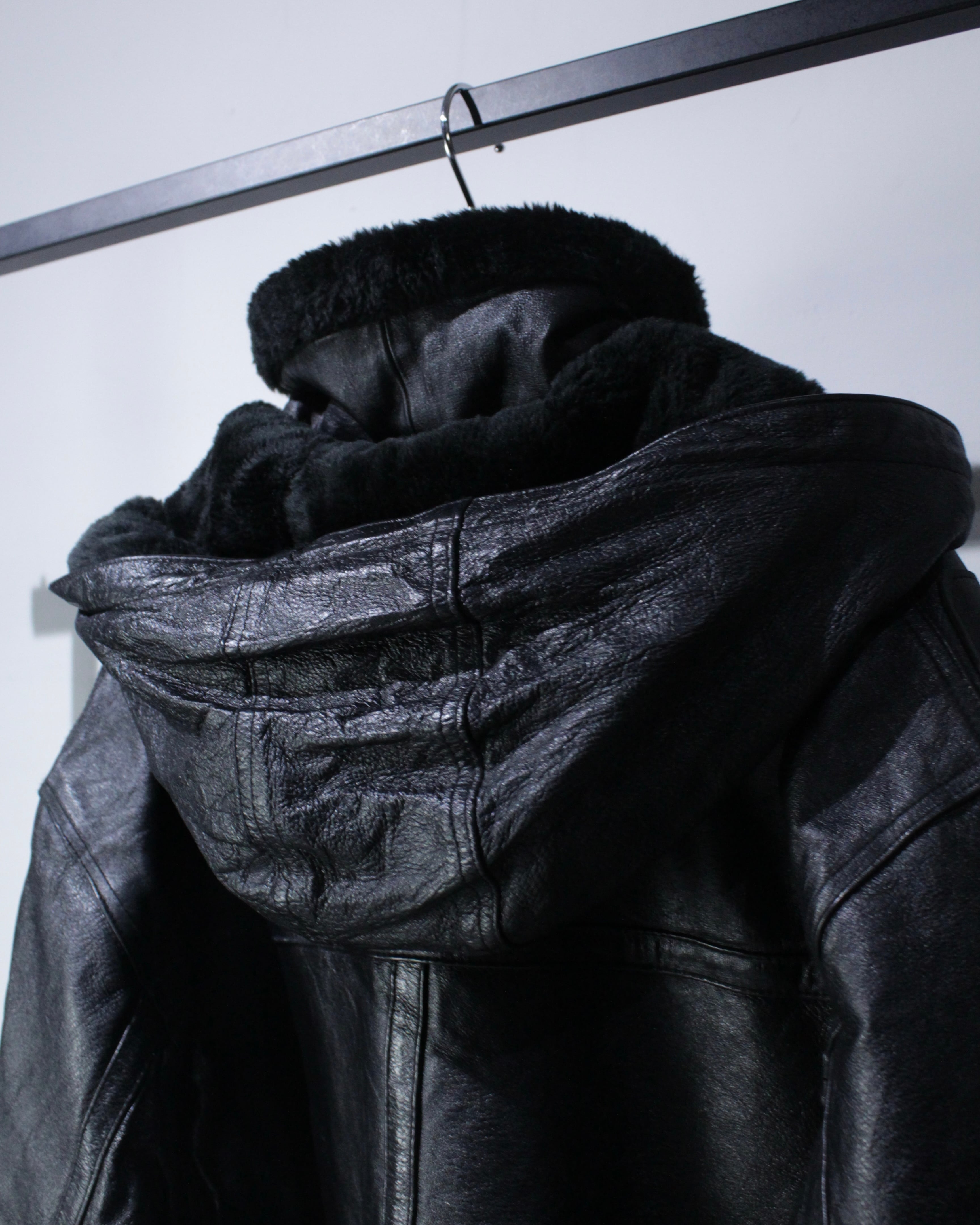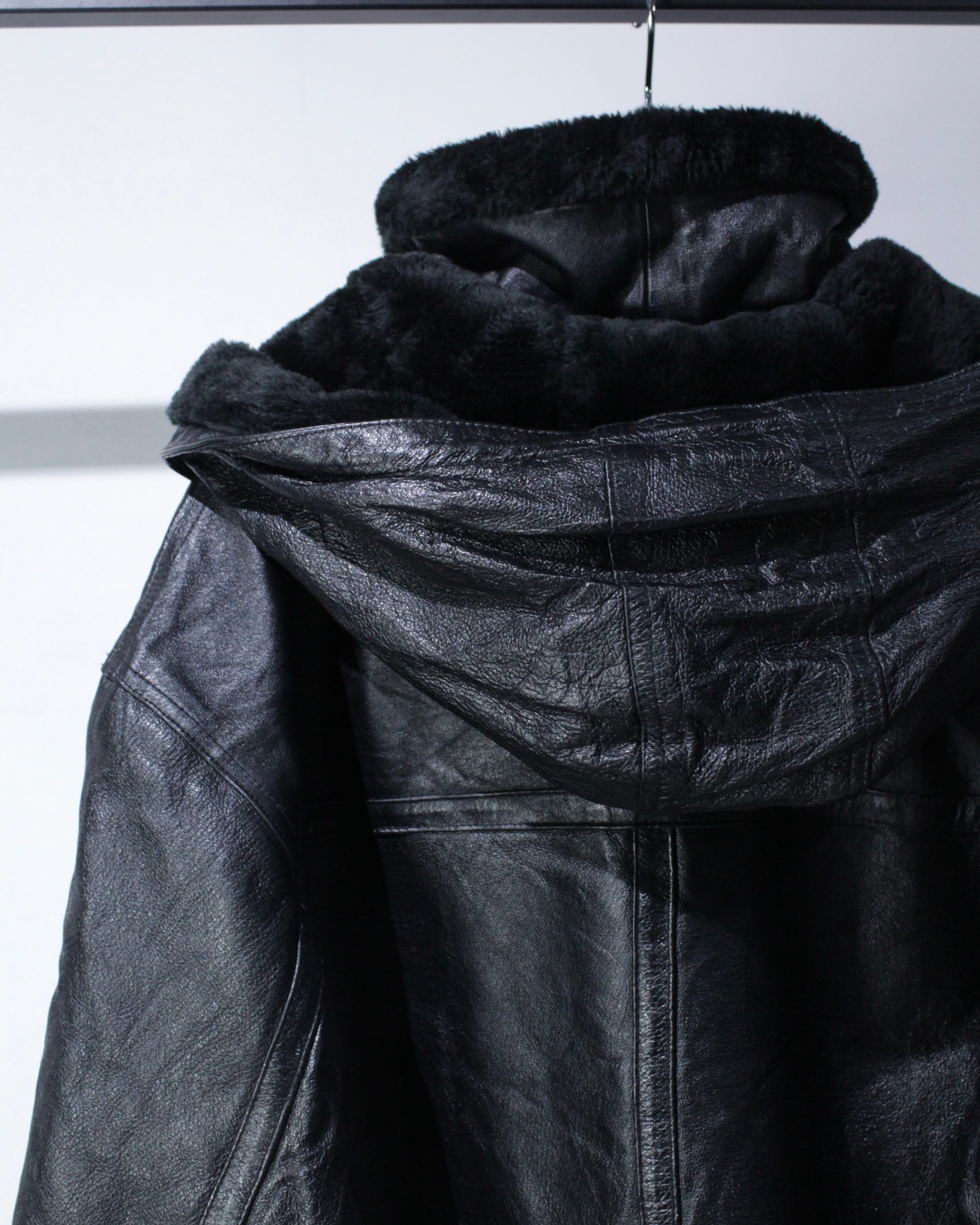 フードまで完備した、“完品”のB-3タイプの重厚感あふれるレザージャケット。