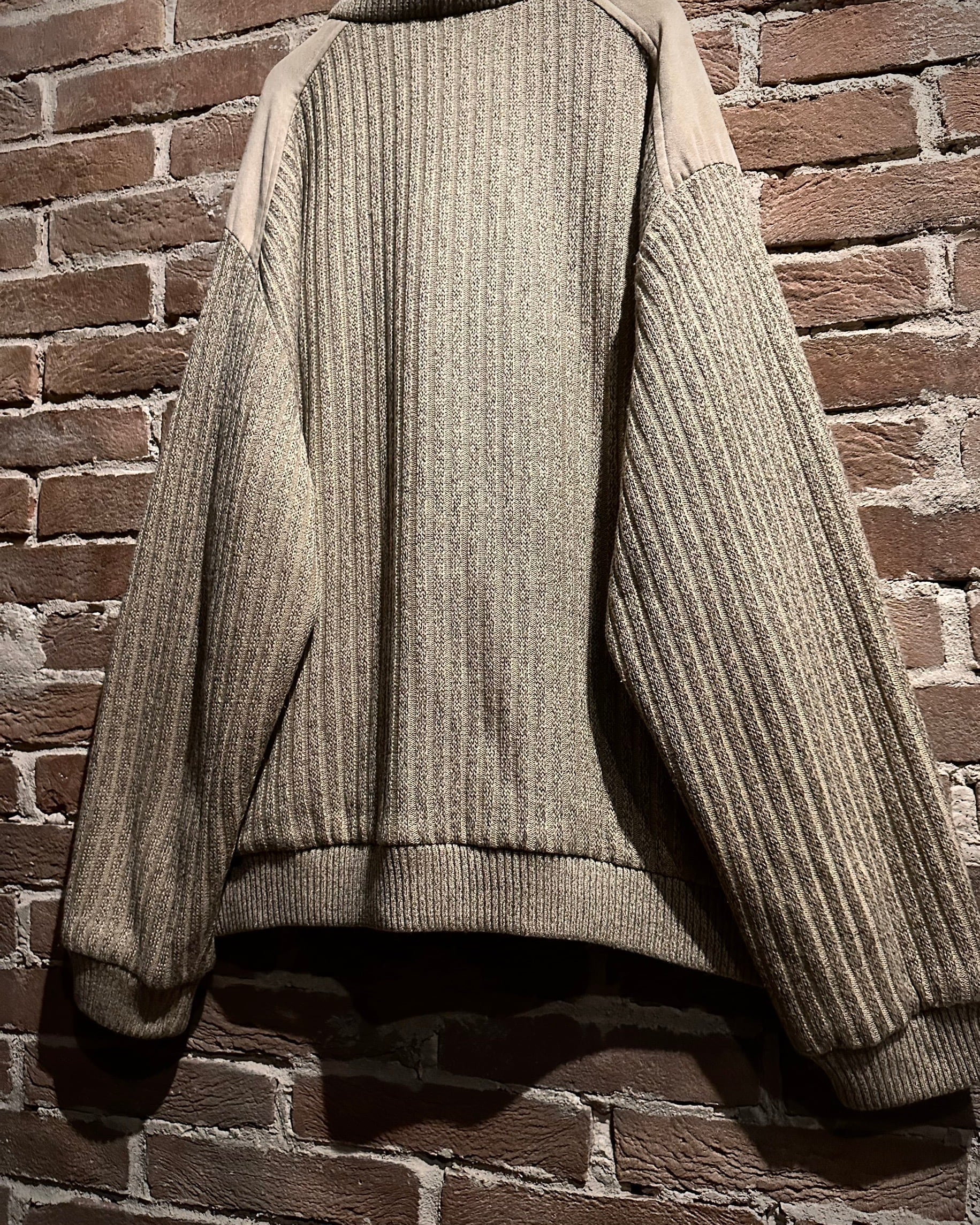 肩周りにはフェイクスエードレザーを切り替え、ニット特有の温かみの中に、ラグジュアリーで引き締まったムードをプラス。