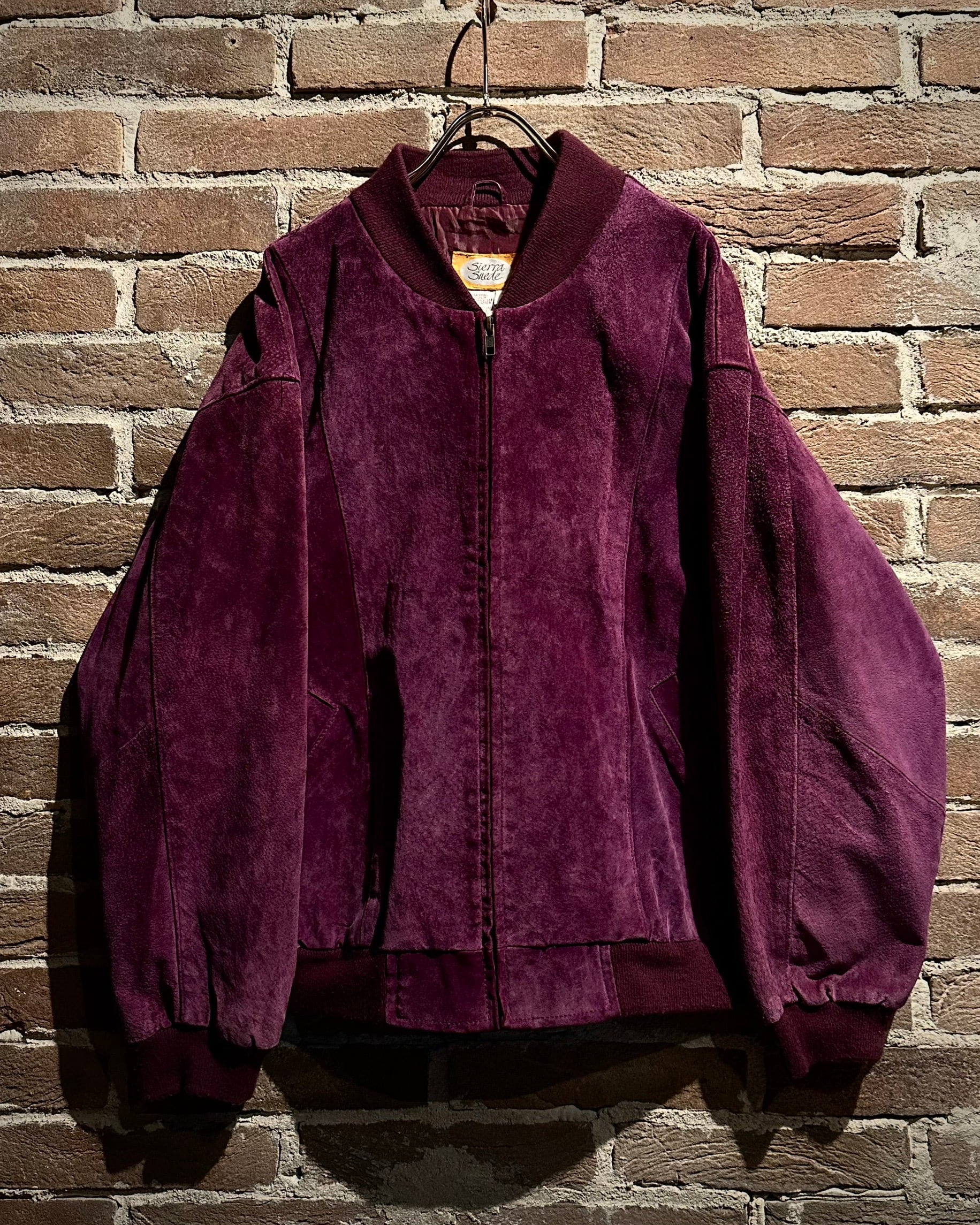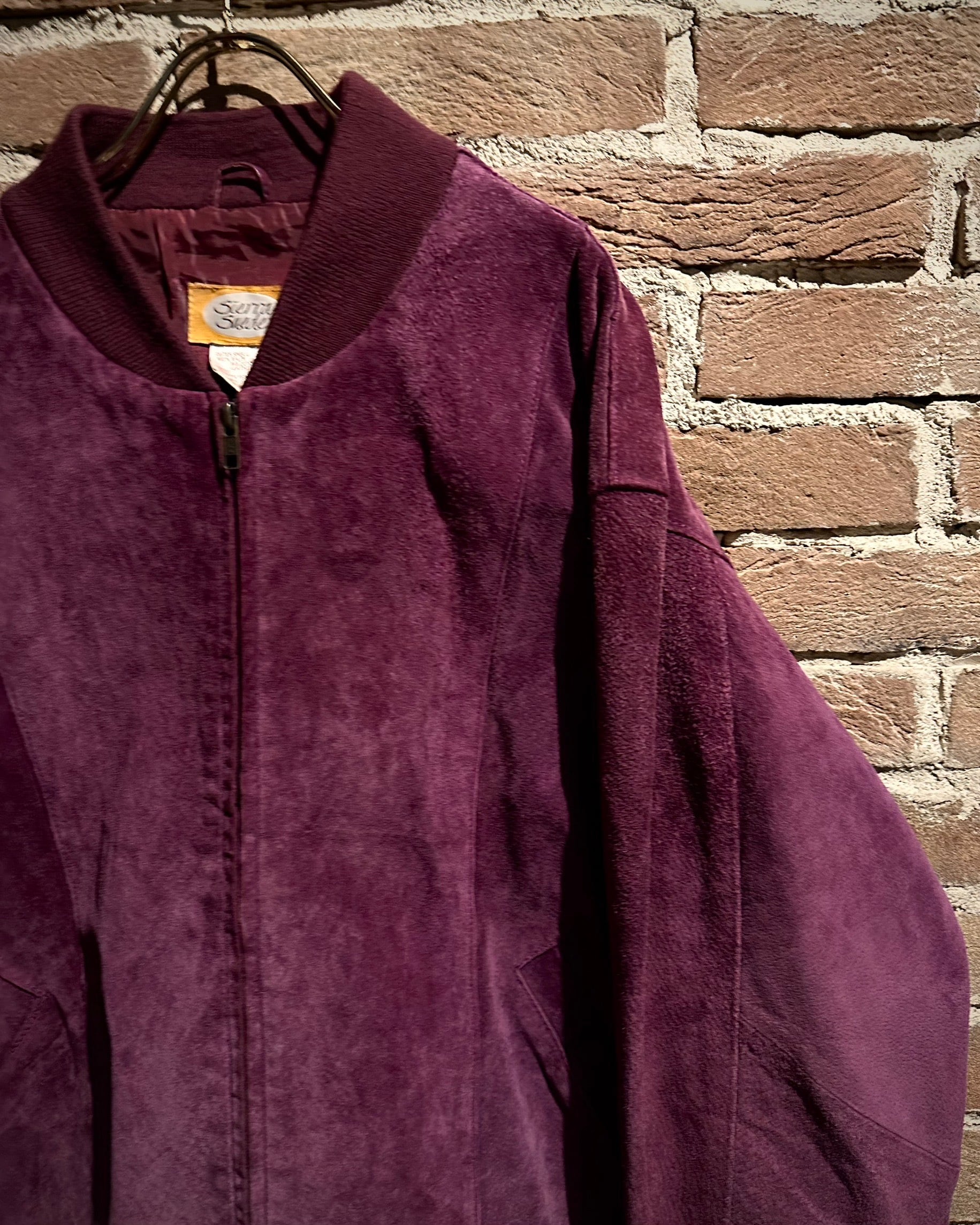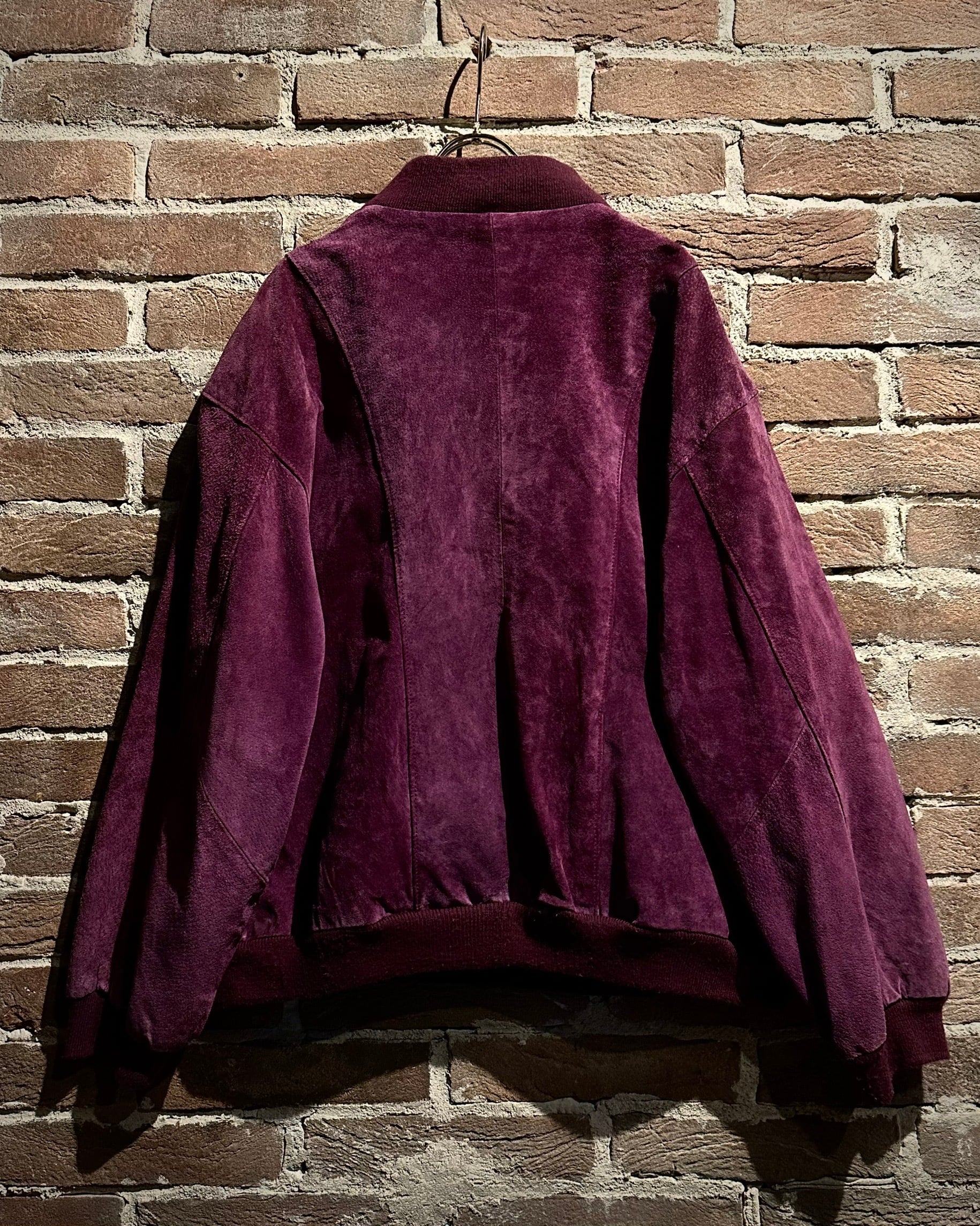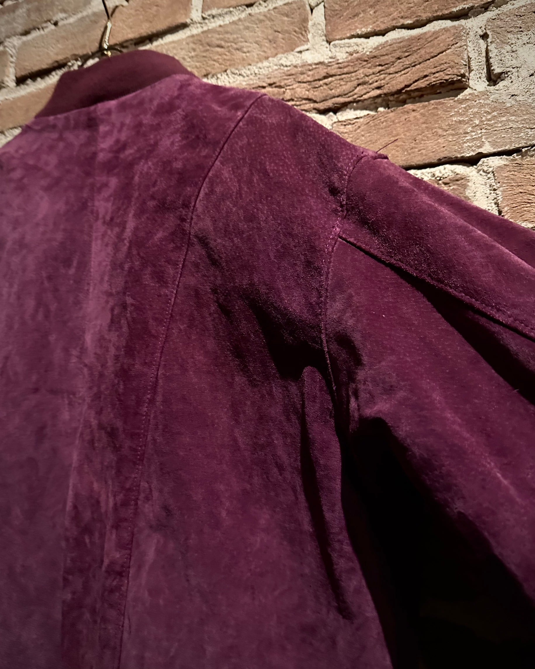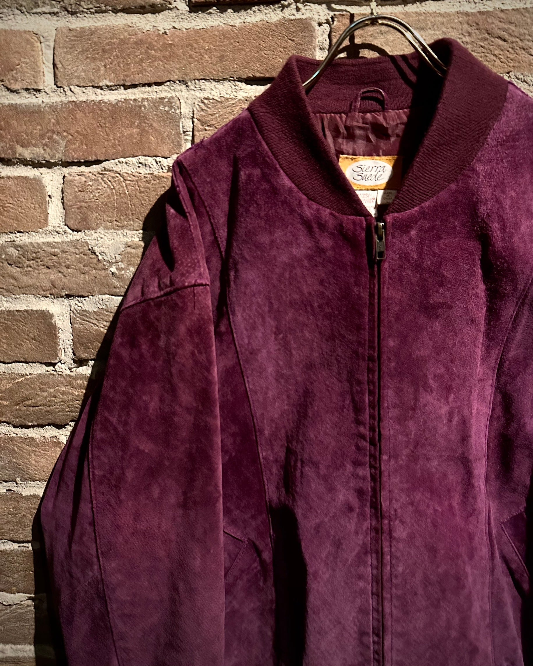 スエードレザー特有のしっとりとした質感と、深みのあるパープルカラーが印象的なボンバージャケット。