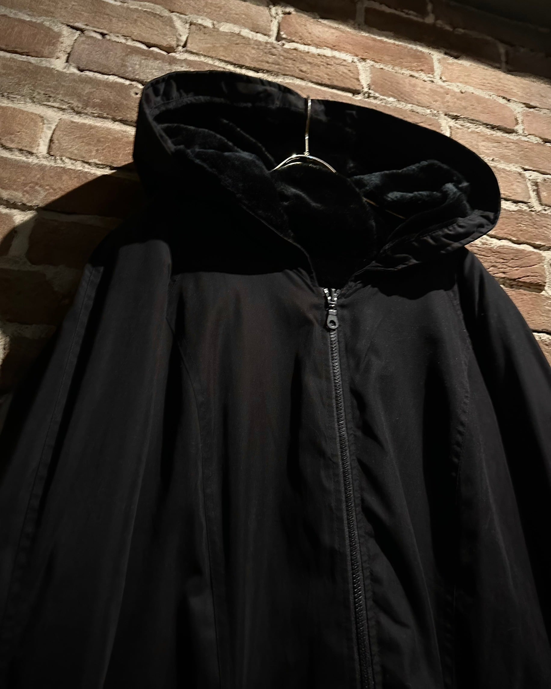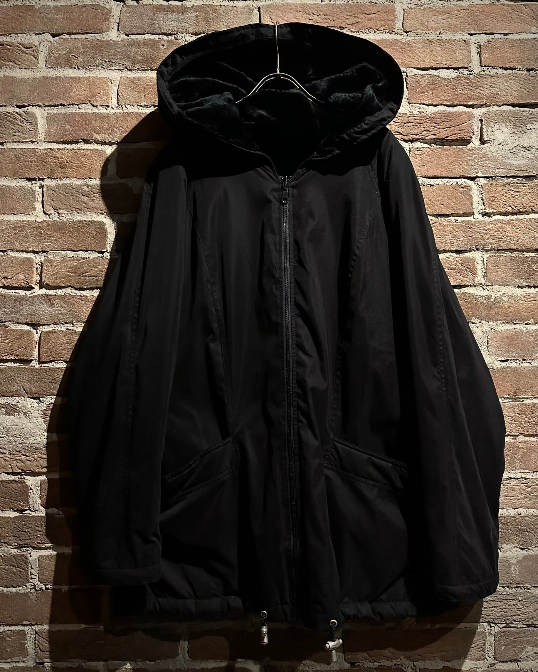 フェイクファーとスムース生地をリバーシブル仕様で組み上げた、スペシャルなフーデッドジャケット。