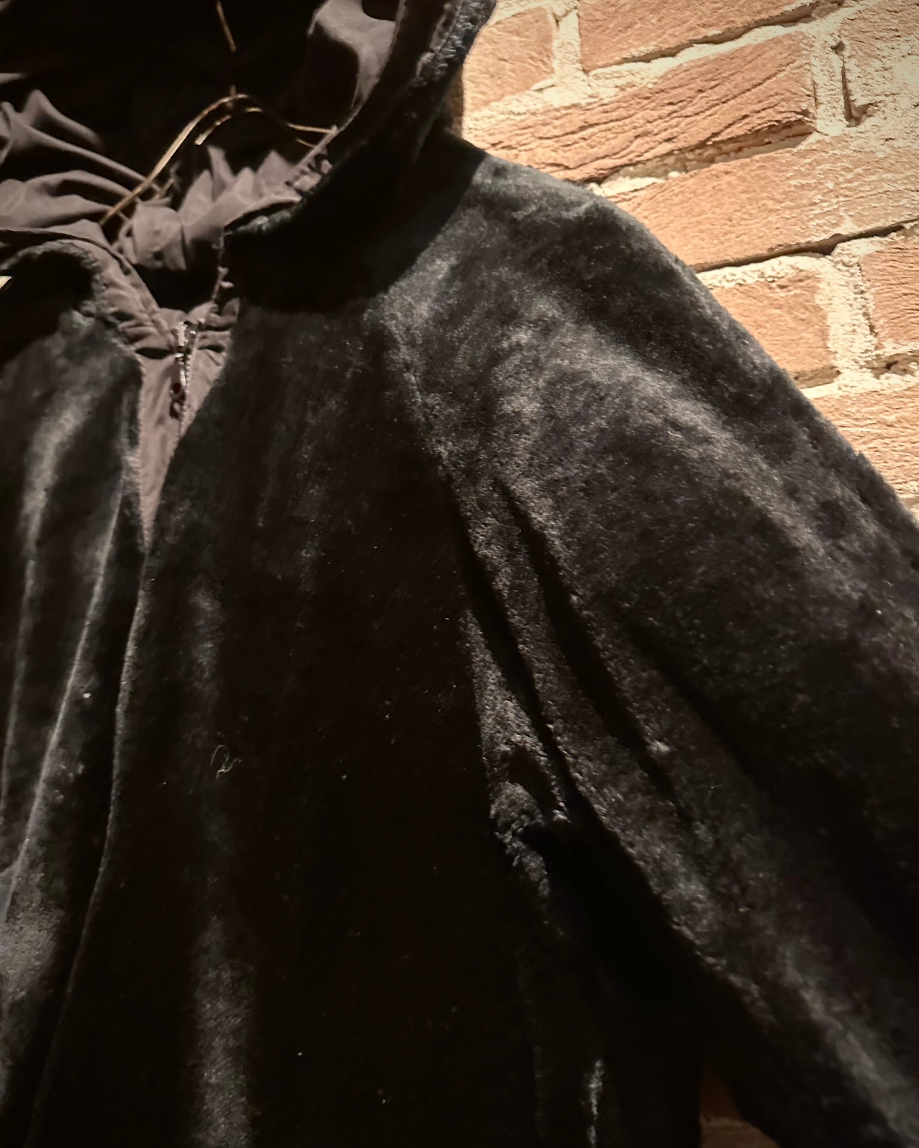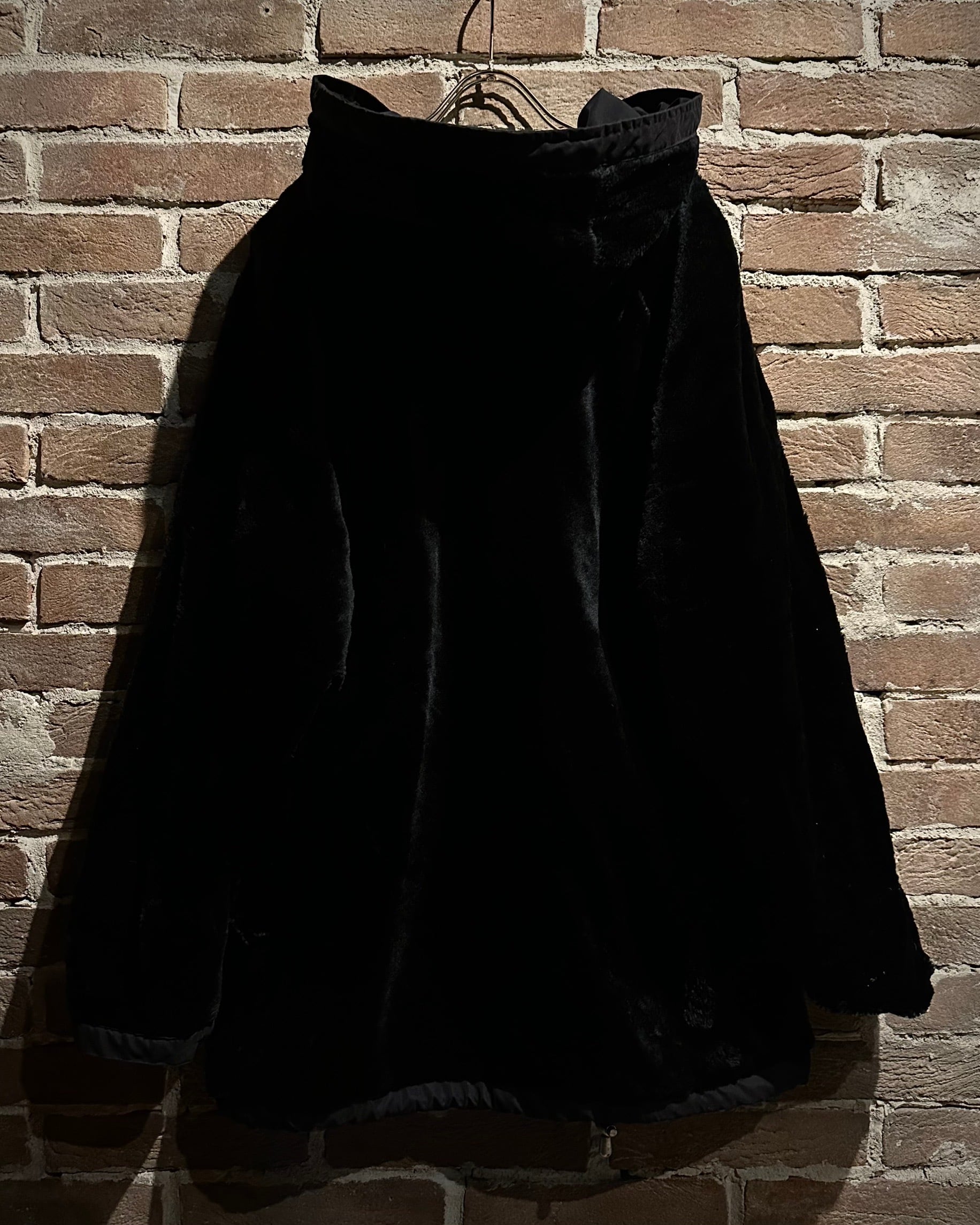 片面には、しっとりとした毛足と奥行きのある表情が魅力のフェイクファーを採用。ブラックトーンでまとめることで、ラグジュアリーかつモードな雰囲気を演出し、スタイリングの主役としてしっかりと存在感を放ちます。