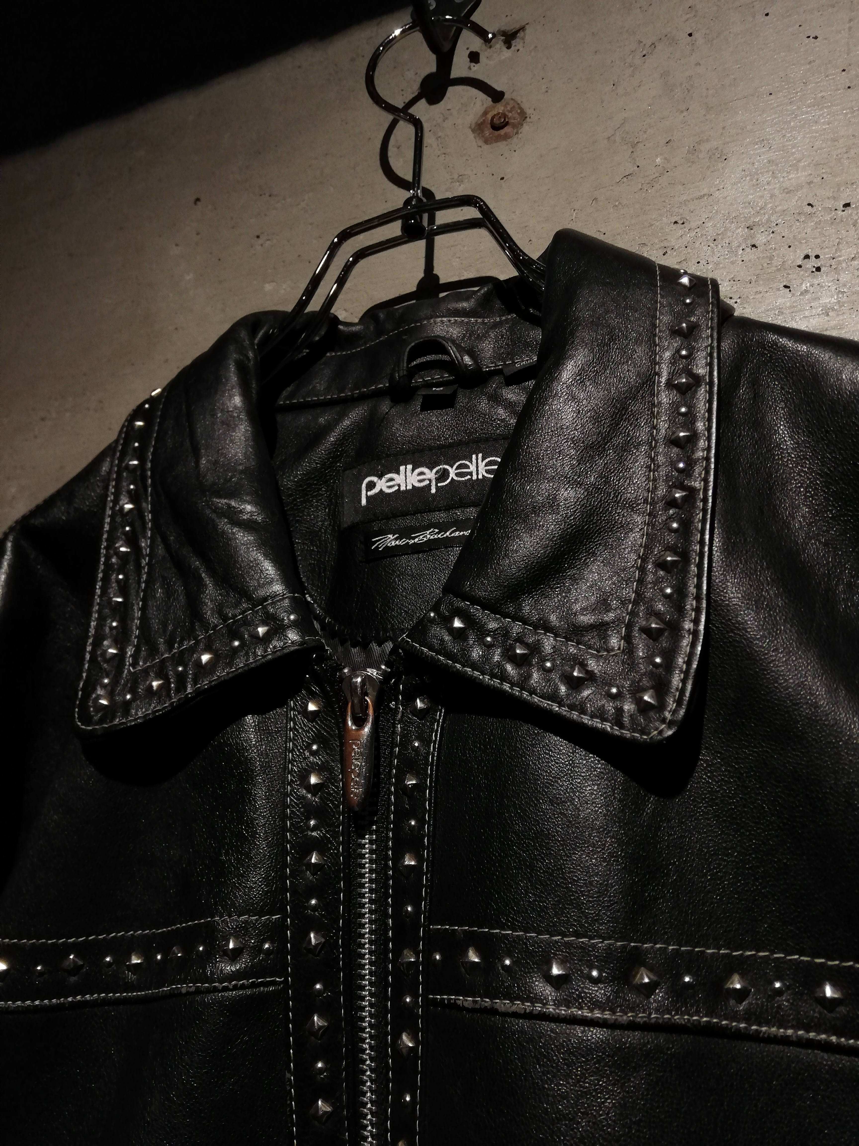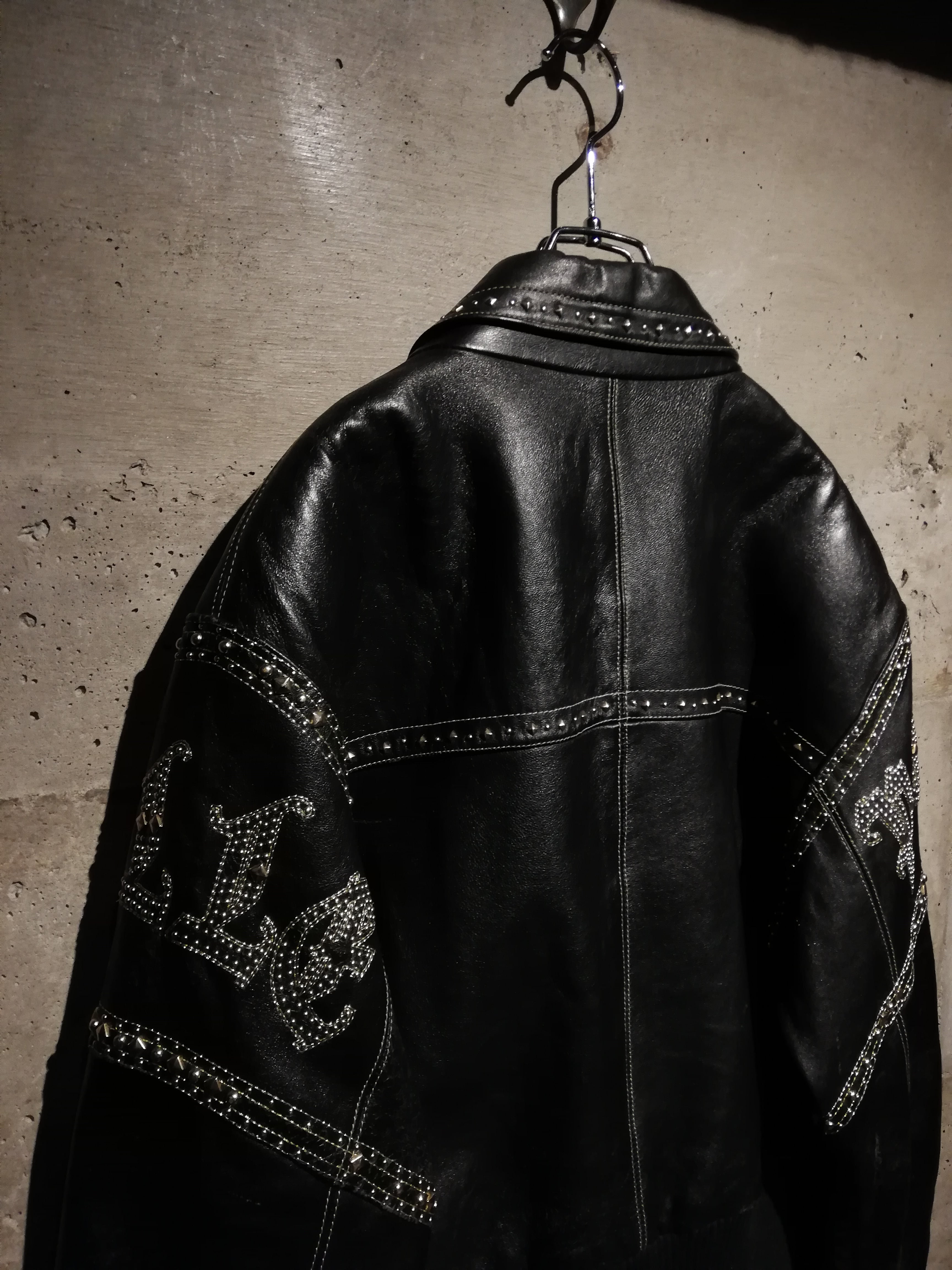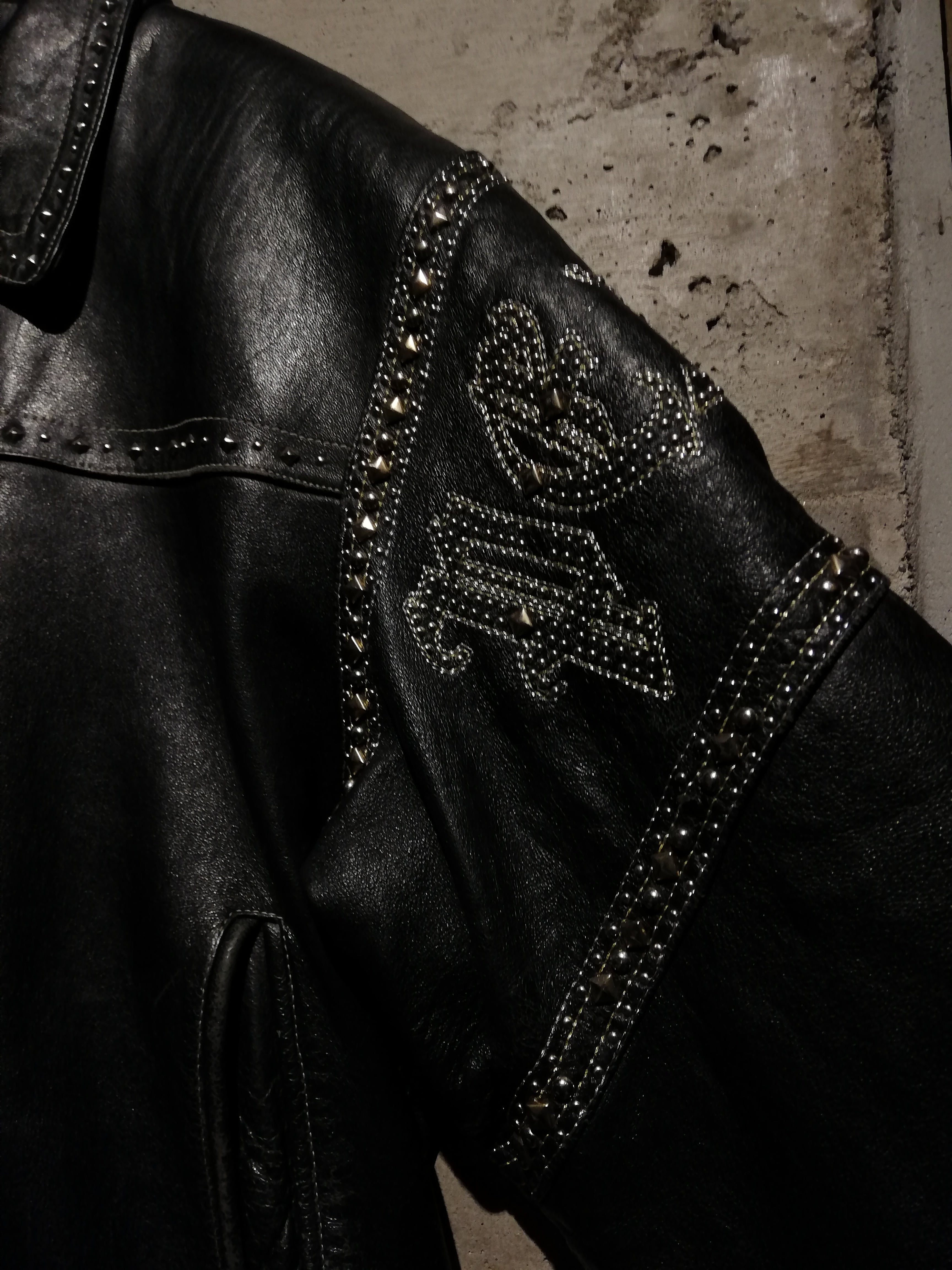 襟やフロントなど、細やかな部分にまでスタッズが打ち込まれており、ブランドのモノ作りへのこだわりがしっかりと感じられますね。