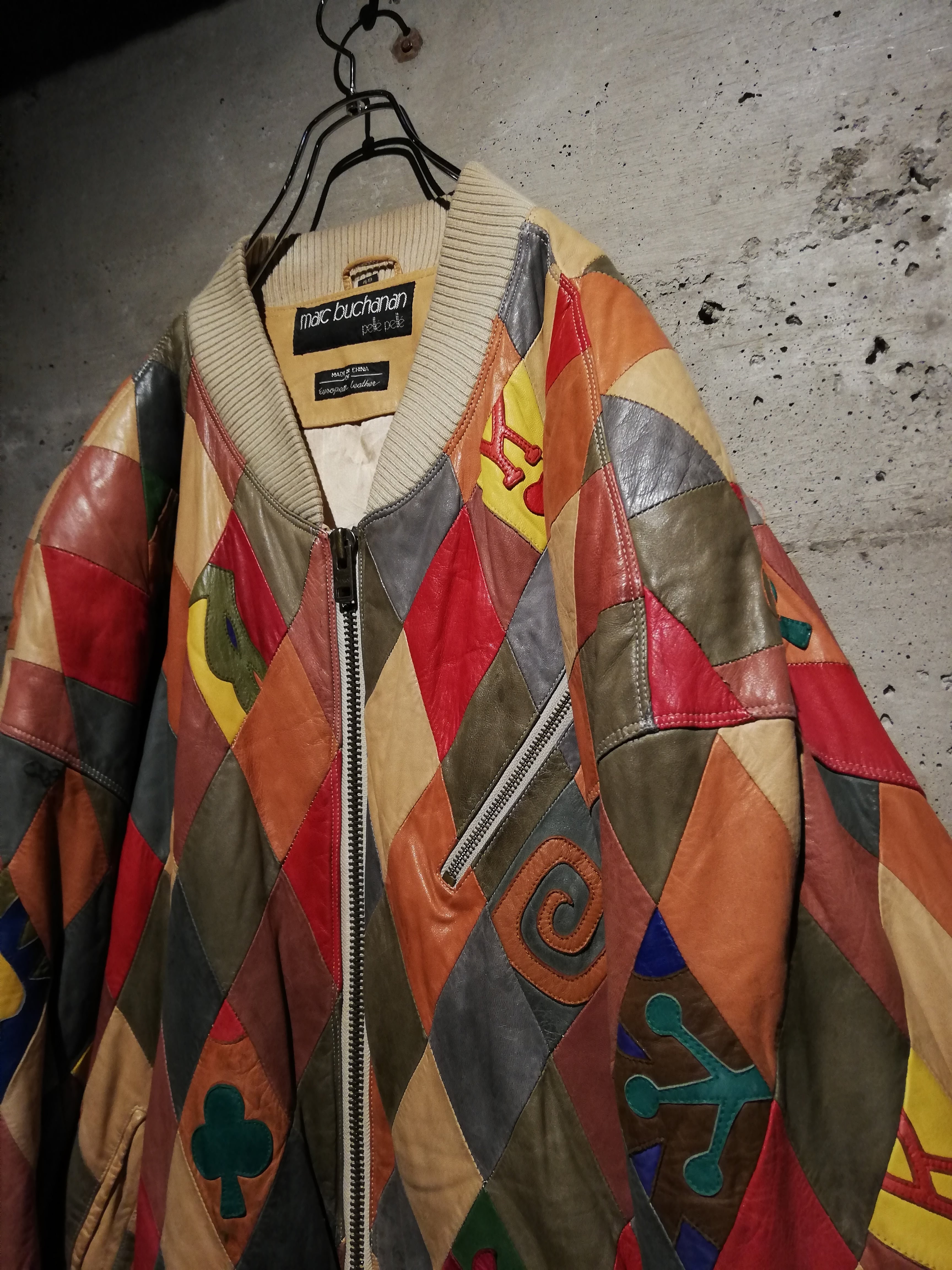 USヒップホップカルチャーと強く結びつき、当時のストリートシーンを象徴してきたブランドならではの存在感。上質なレザーを用い、ボディ全面をダイヤ型パッチワークで構成。レッド、ブラウン、ベージュ、グリーン、グレーといった多色使いが、80–90s特有の大胆さと遊び心を端的に表現。