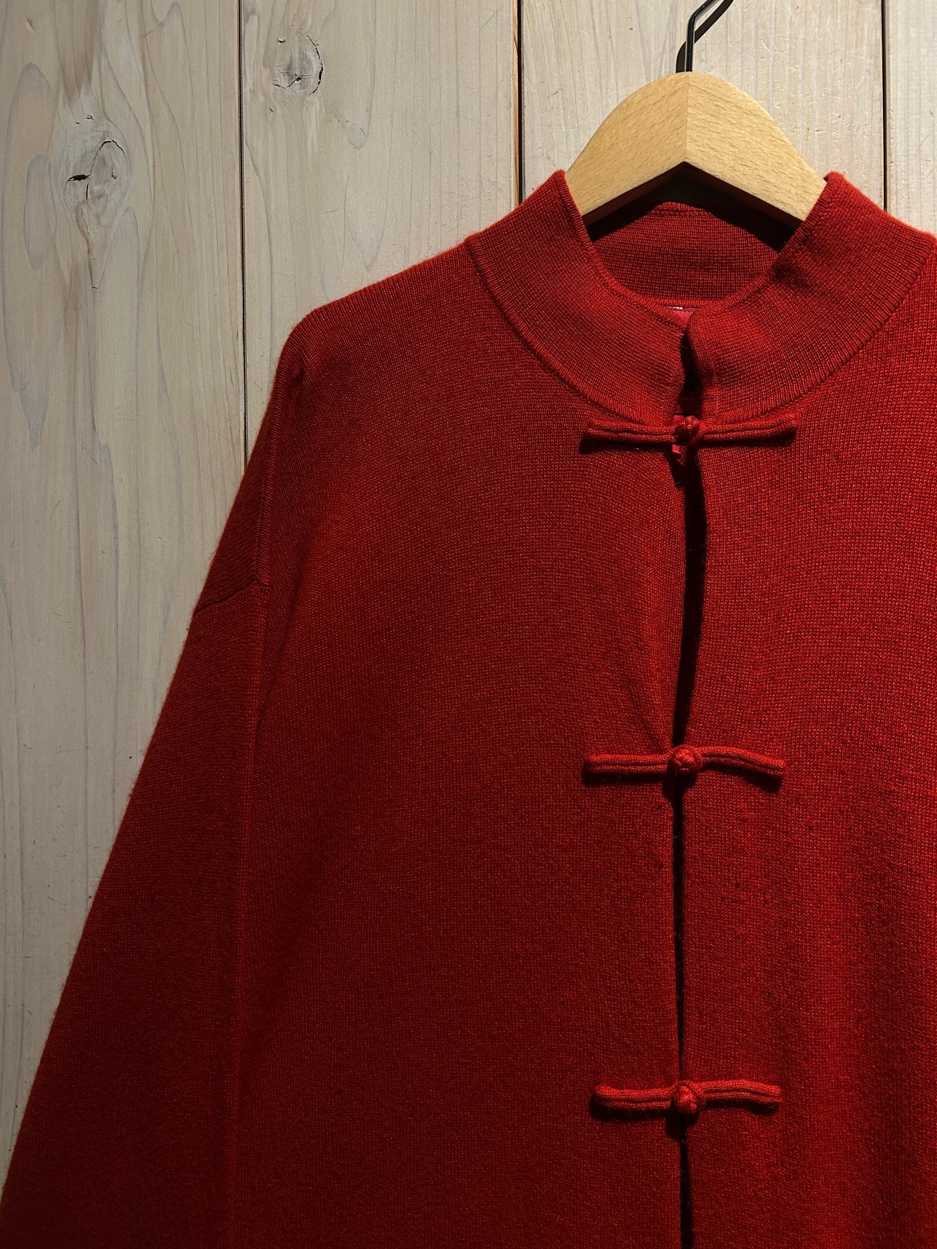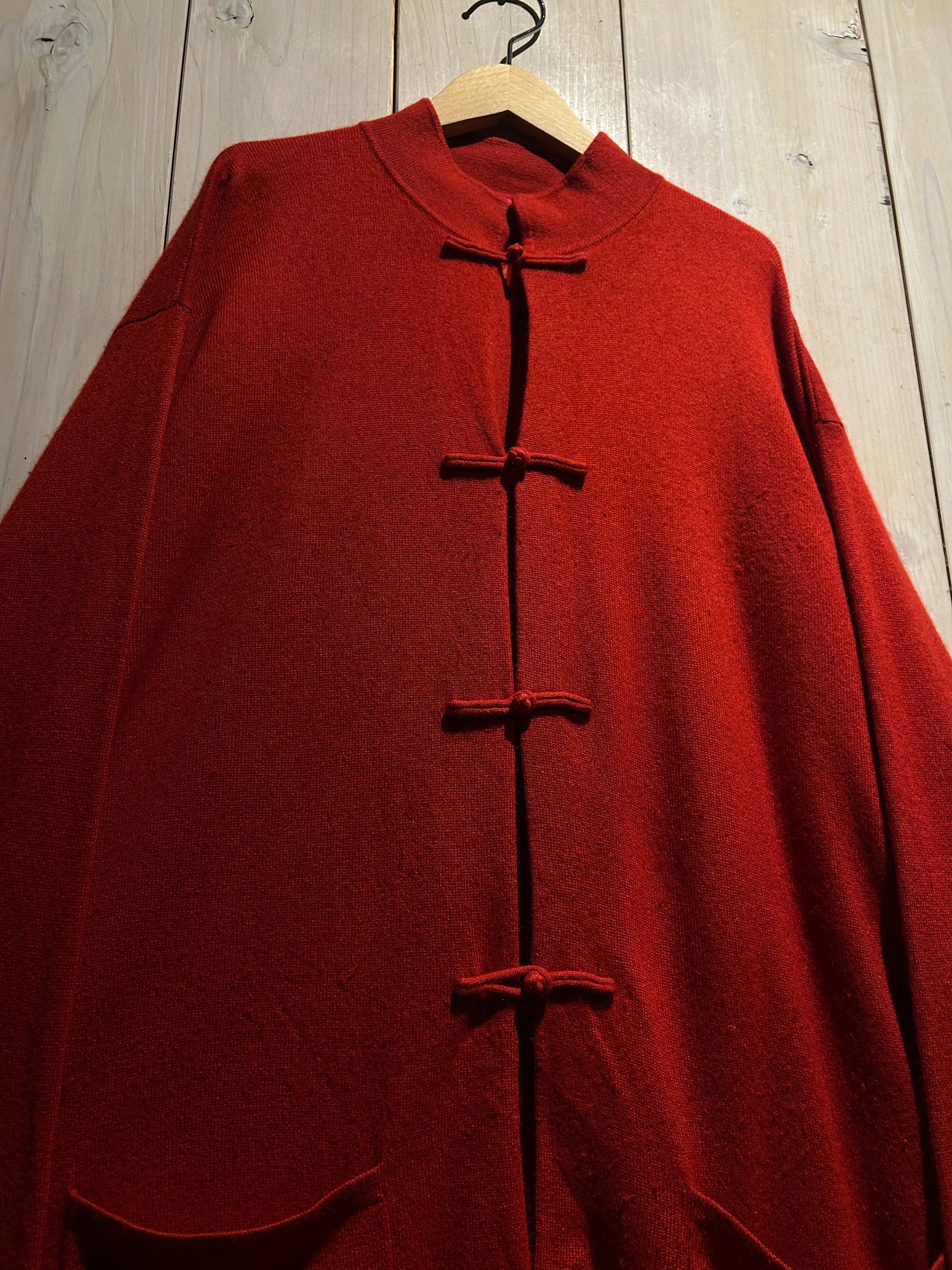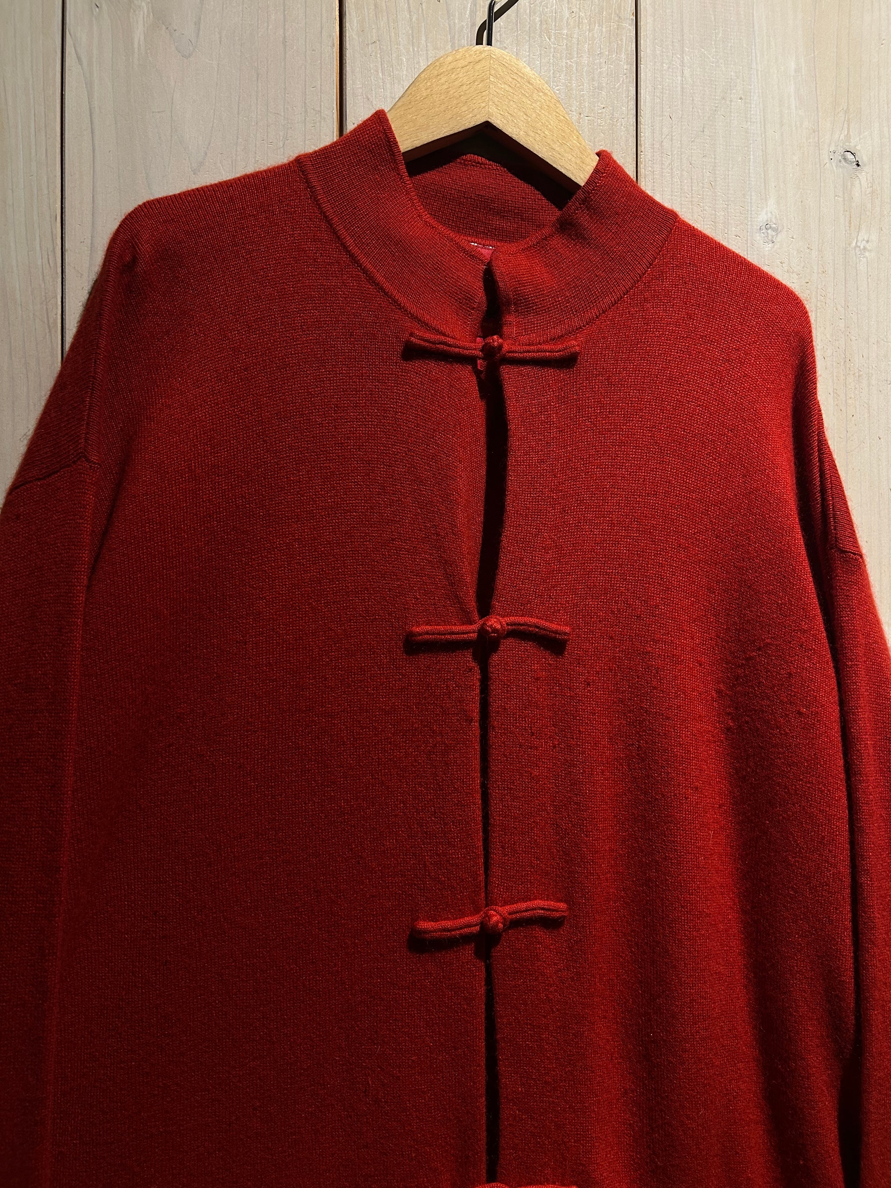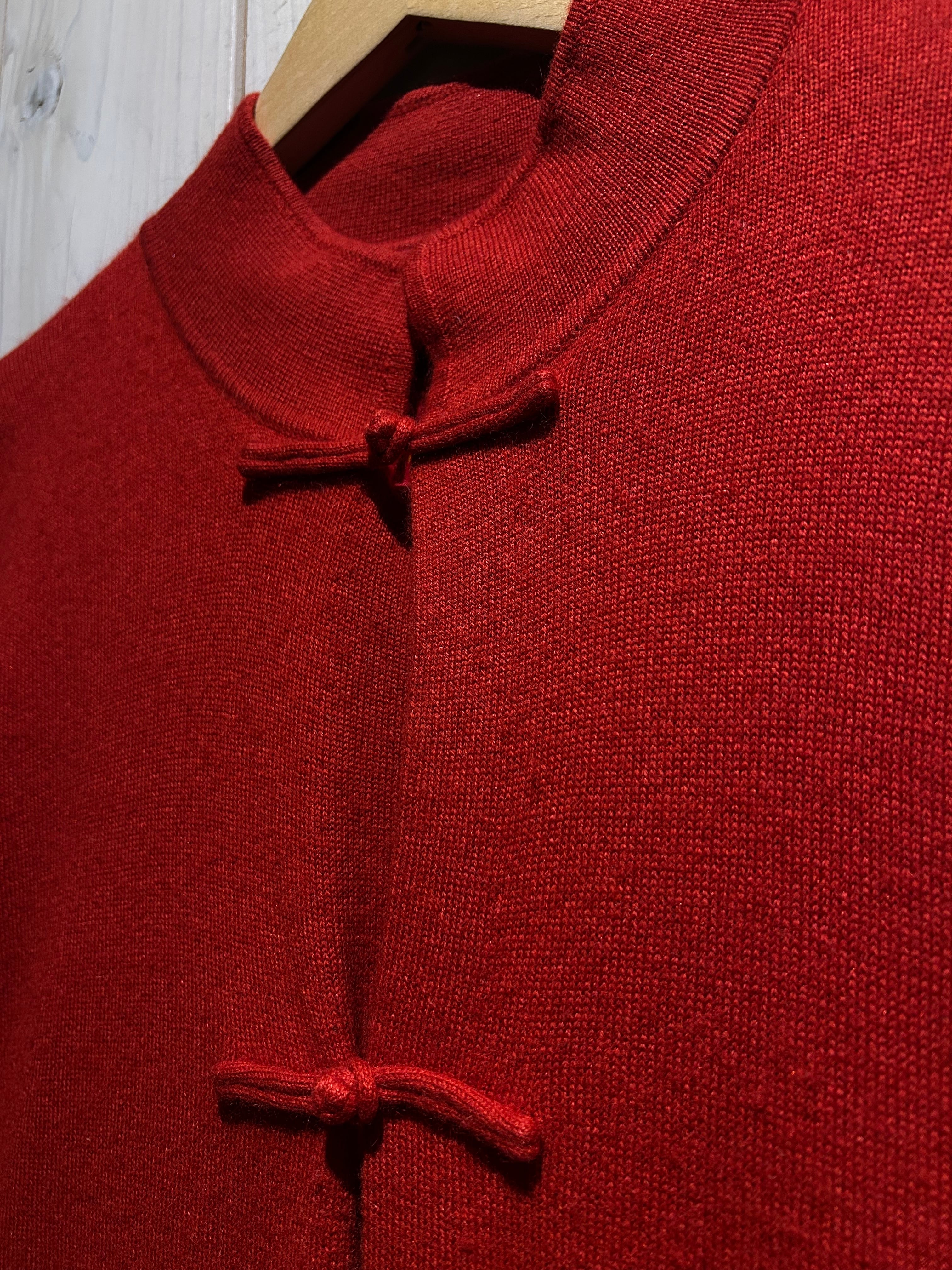 深みのあるレッドカラーが目を惹く、存在感抜群のチャイナニット。