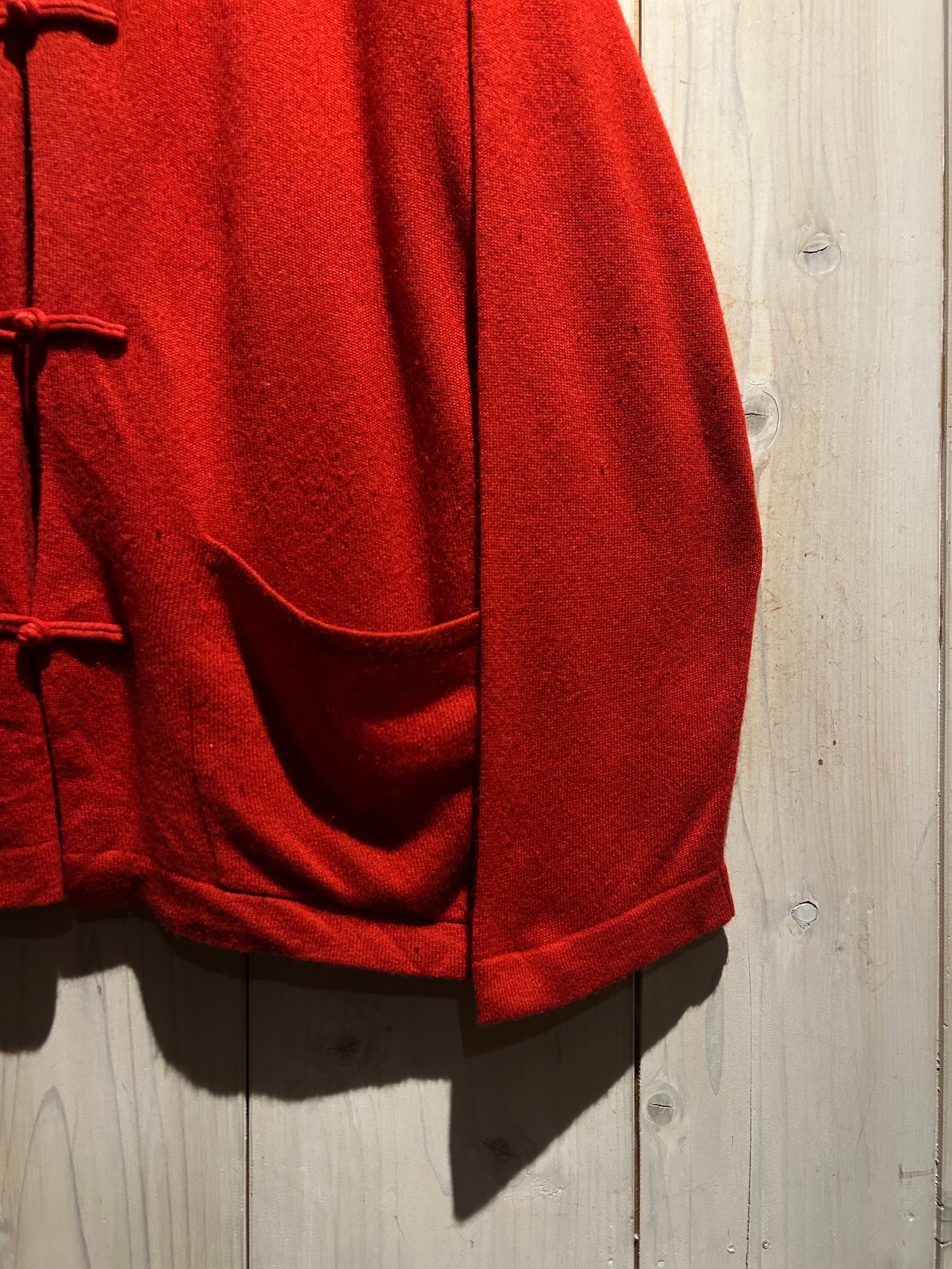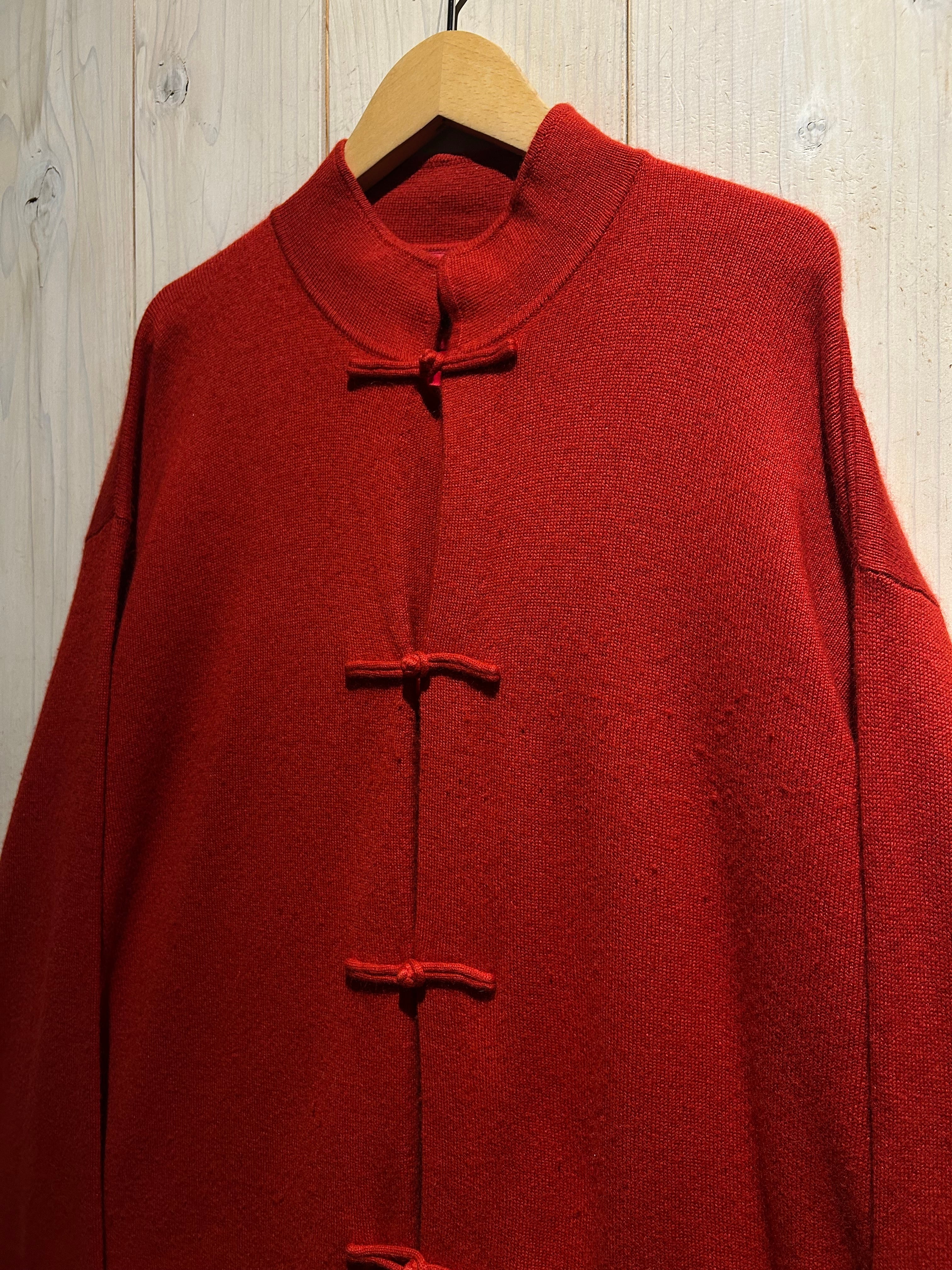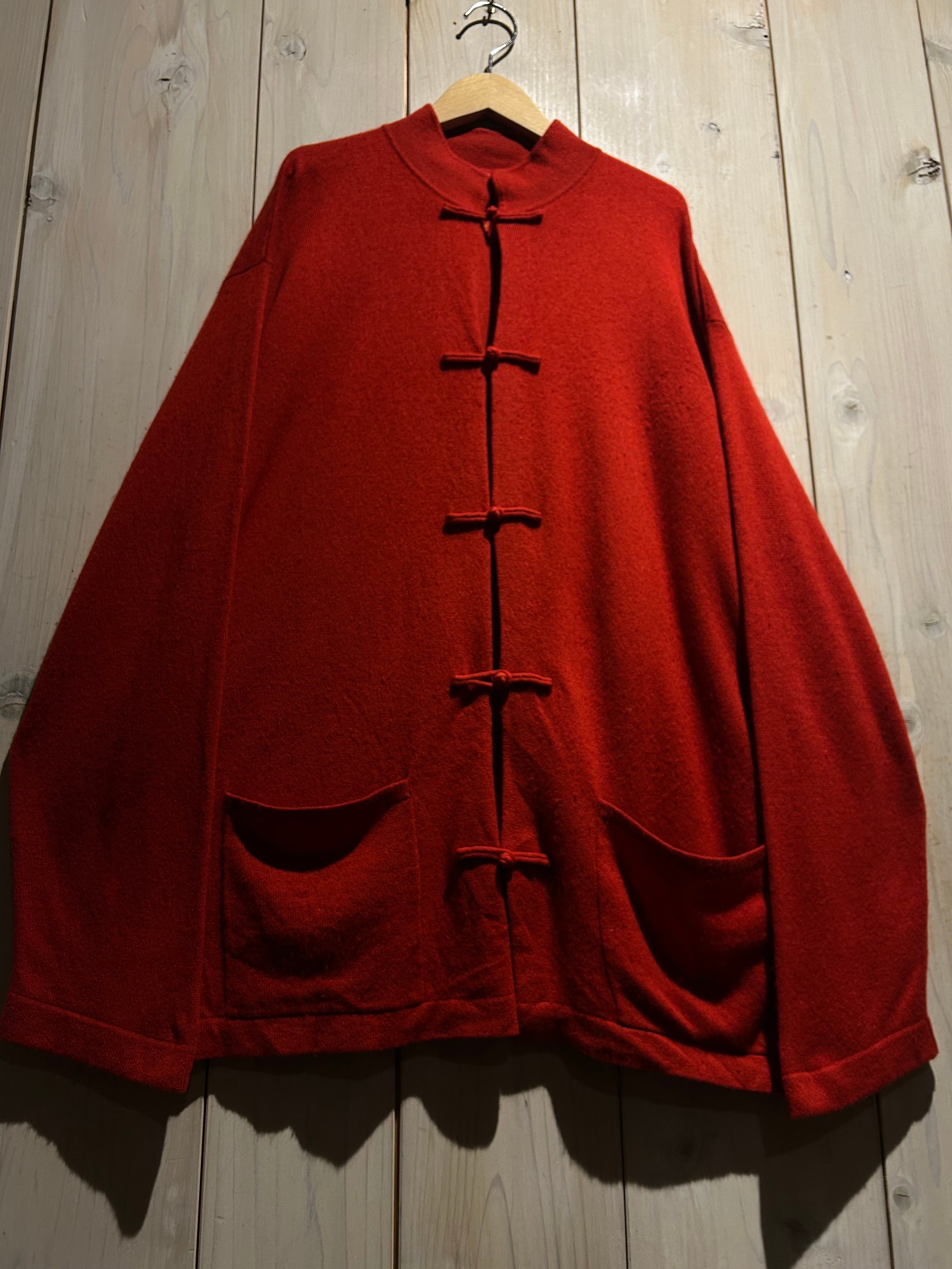 深みのあるレッドカラーが目を惹く、存在感抜群のチャイナニット。
