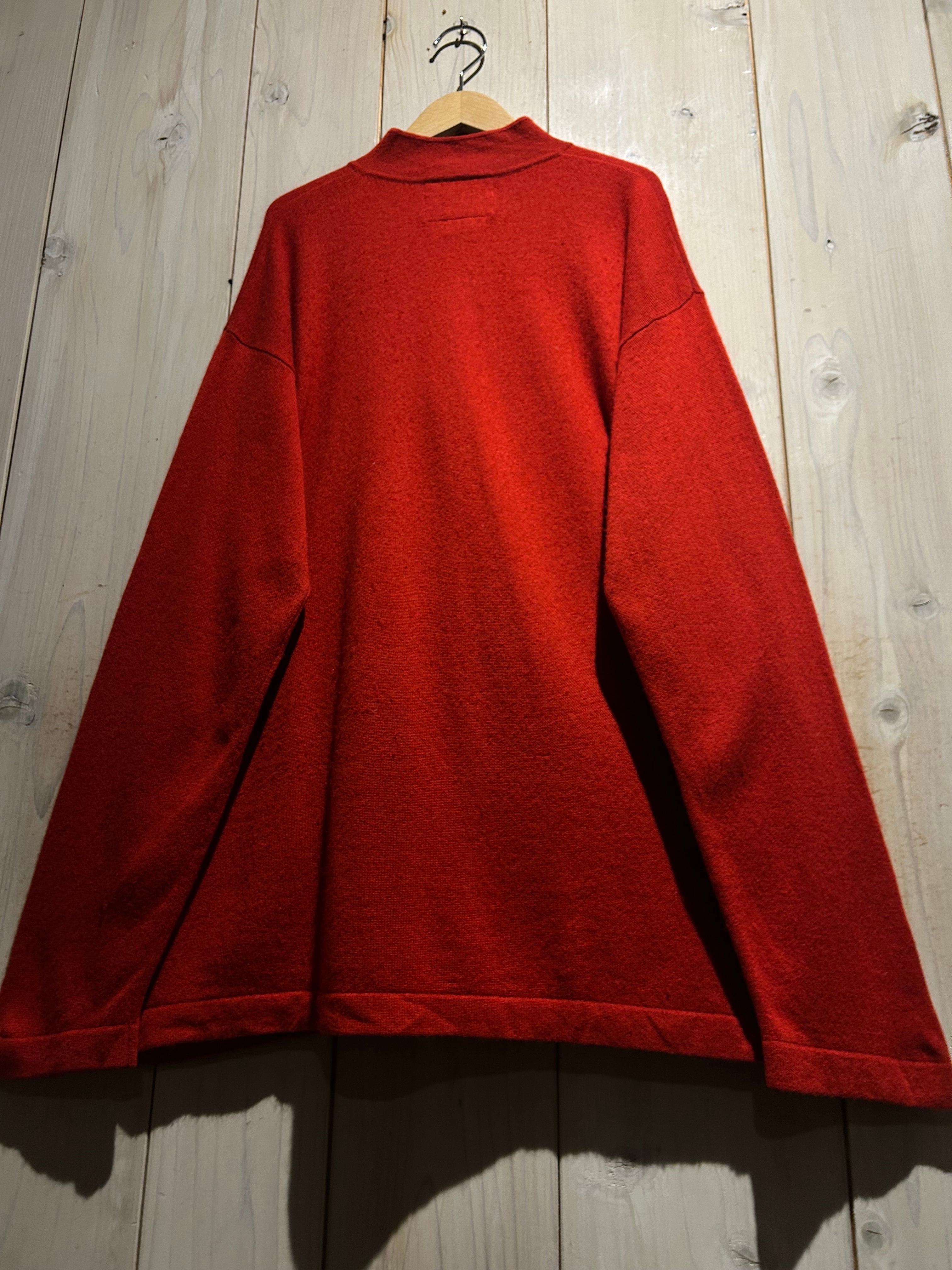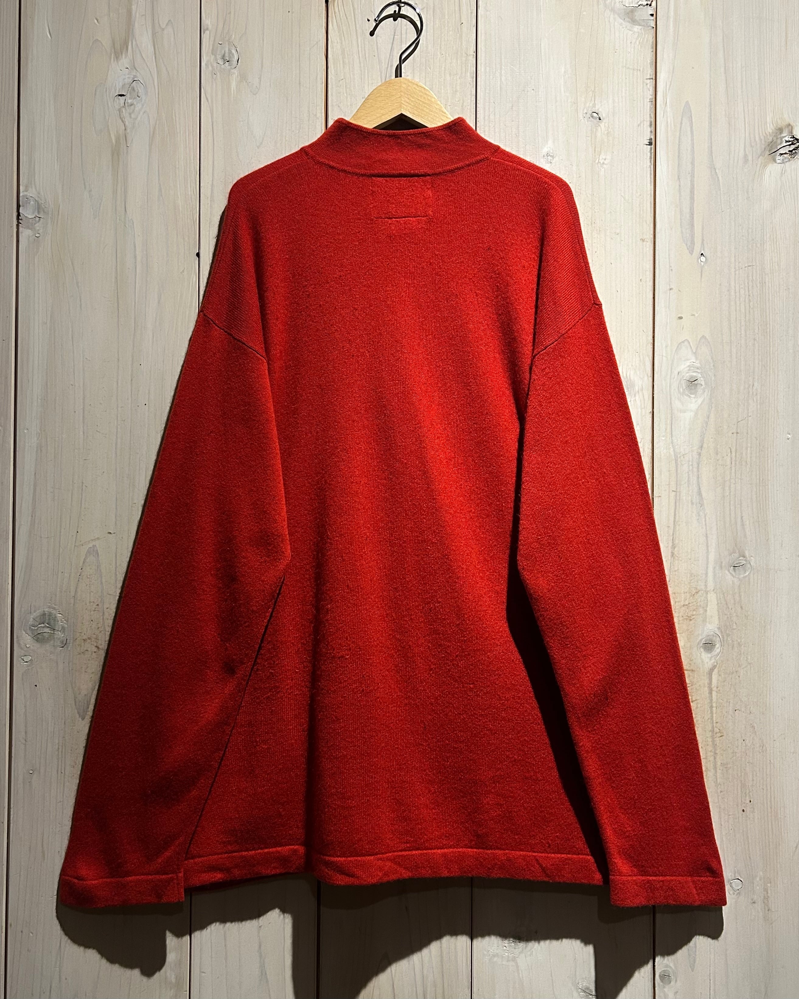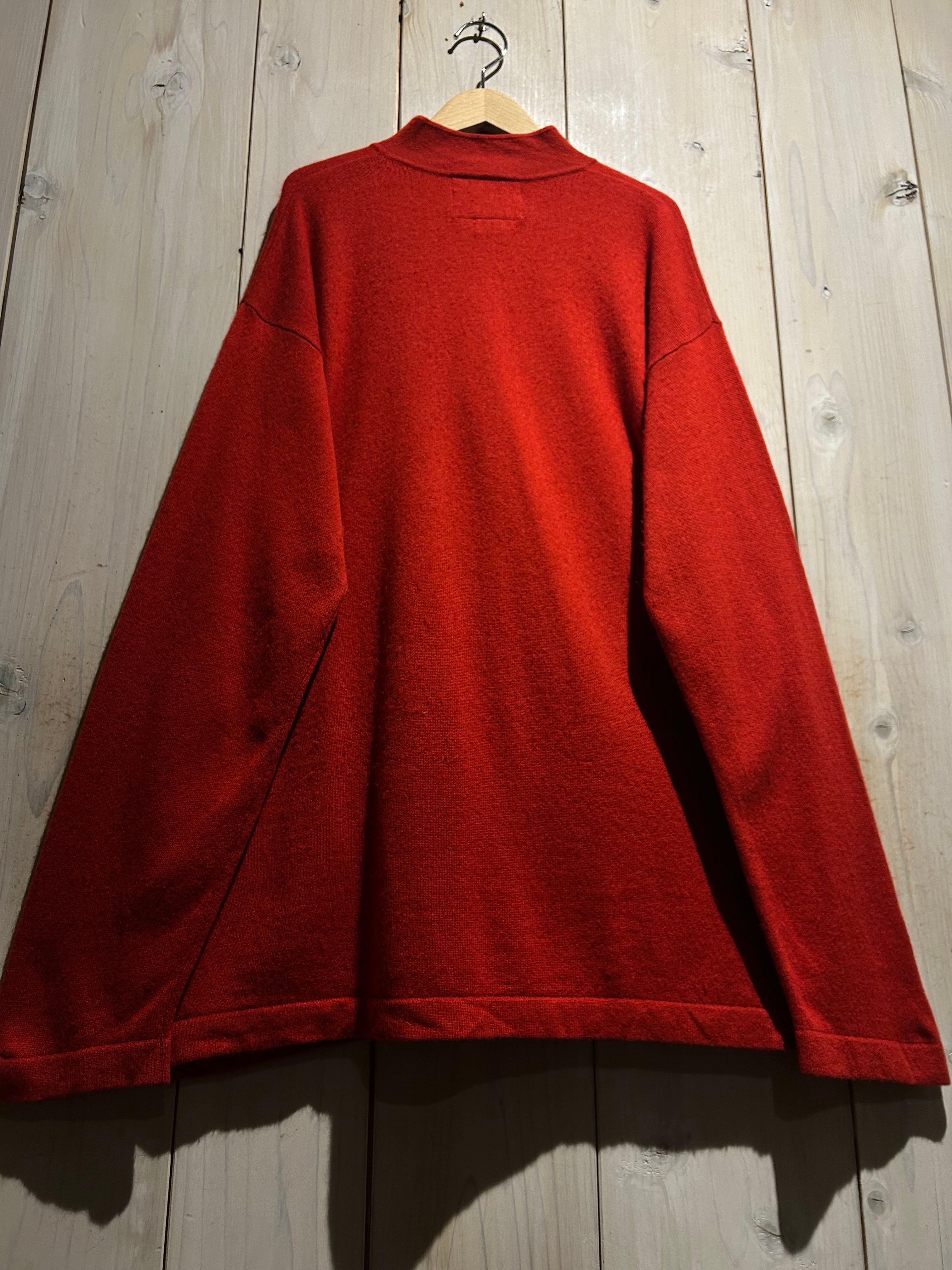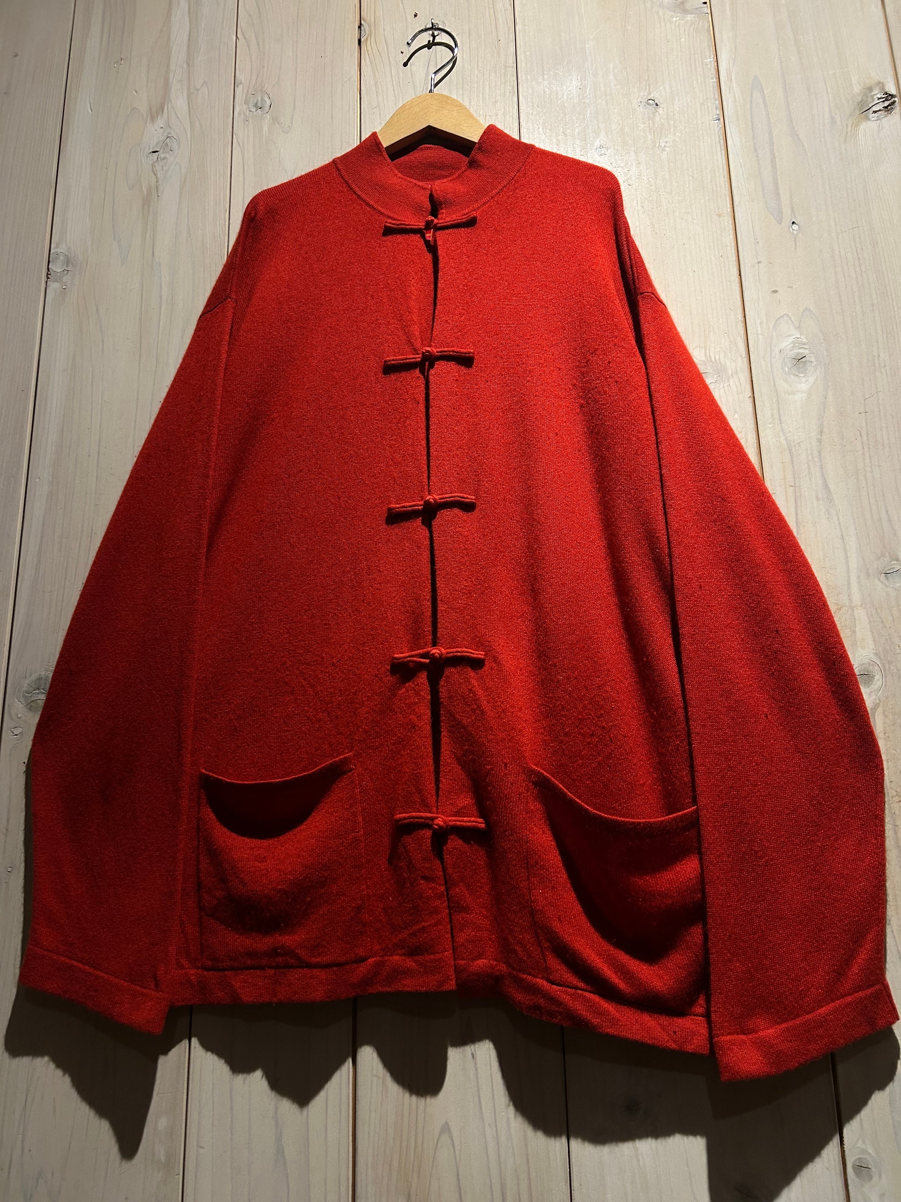 深みのあるレッドカラーが目を惹く、存在感抜群のチャイナニット。