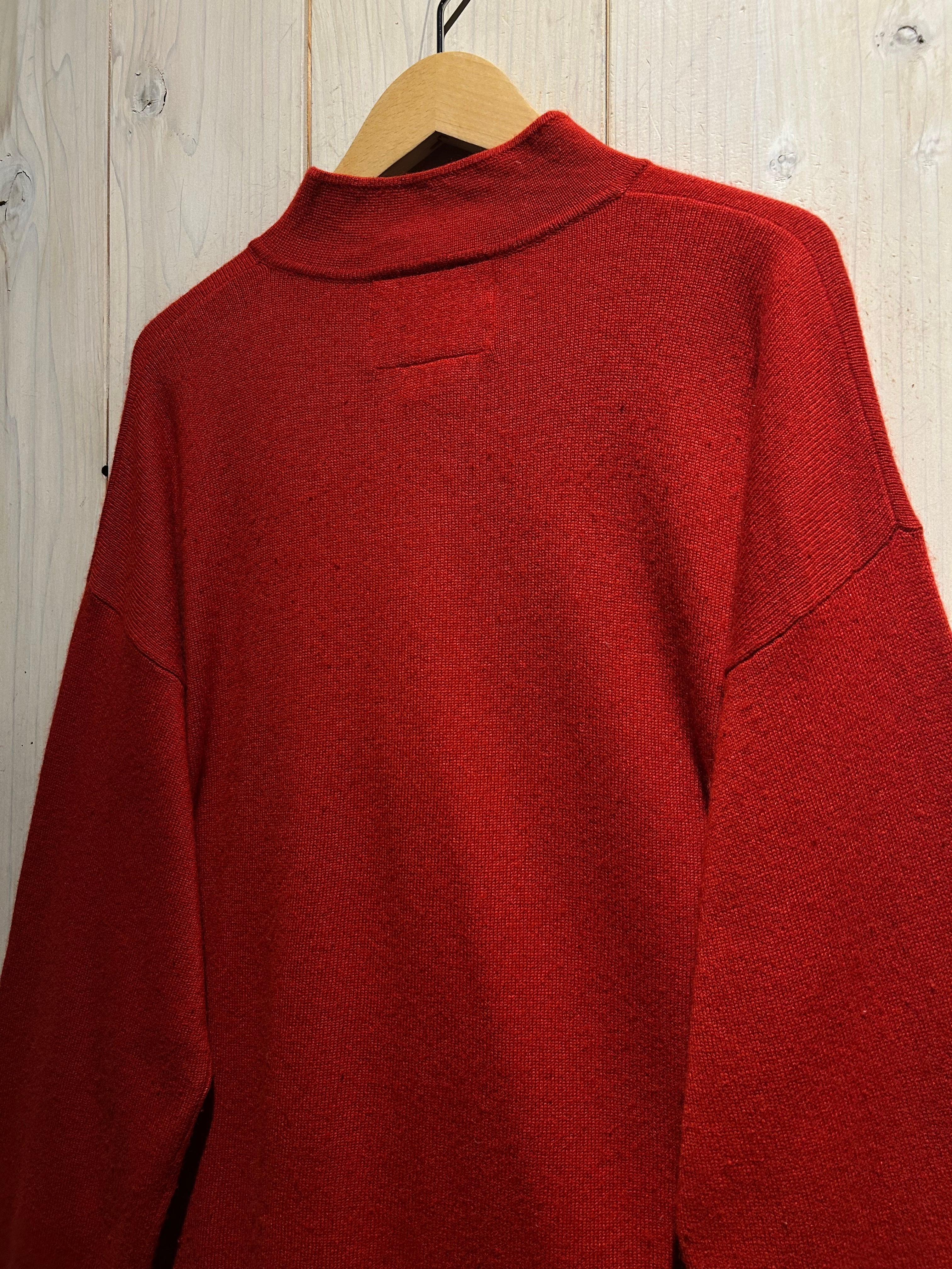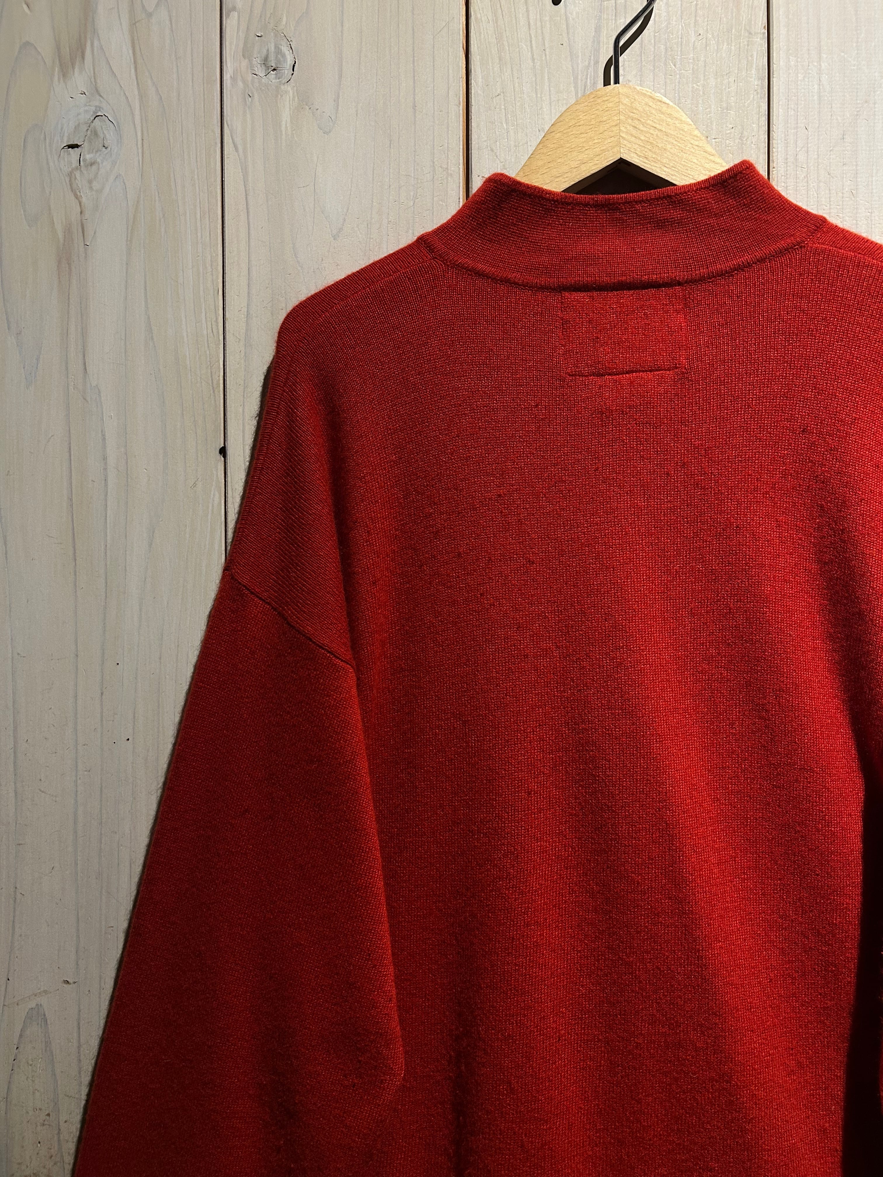ボディにはカシミア×シルク混の滑らかで上質な素材を採用。しっとりとした肌触りと、ニット特有の柔らかさを併せ持ち着心地抜群で、発色の良いレッドも相まってスタイリングの主役になってくれます。