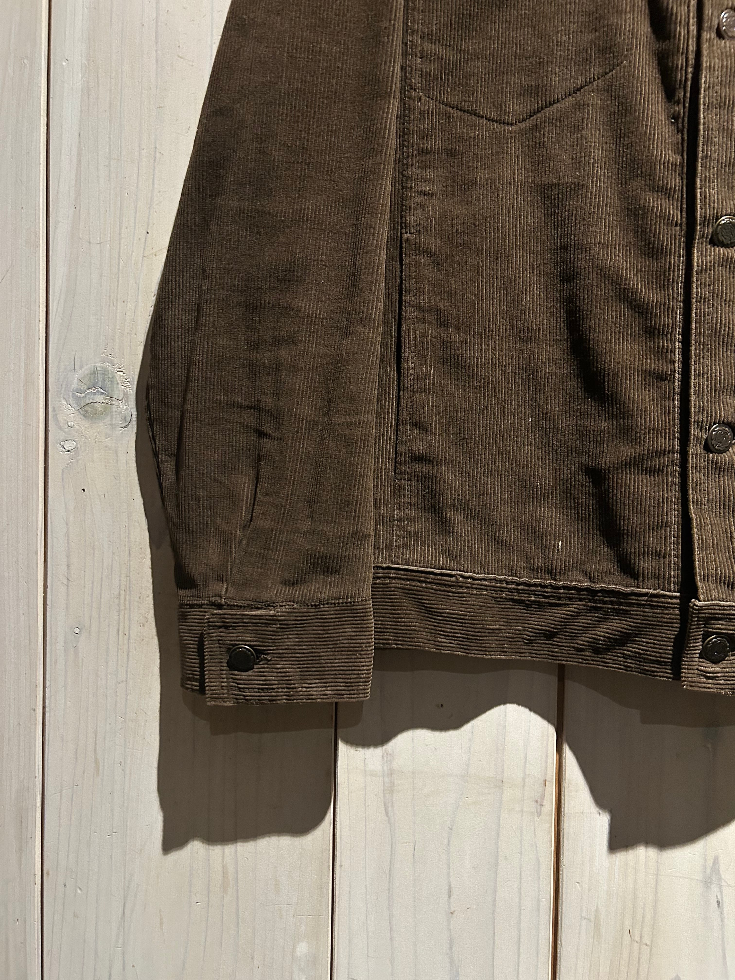 形は時代を超えて支持され続ける王道のトラッカータイプ。フロントのフラップポケットやメタルボタンといったディテールも非常にクラシックですね。