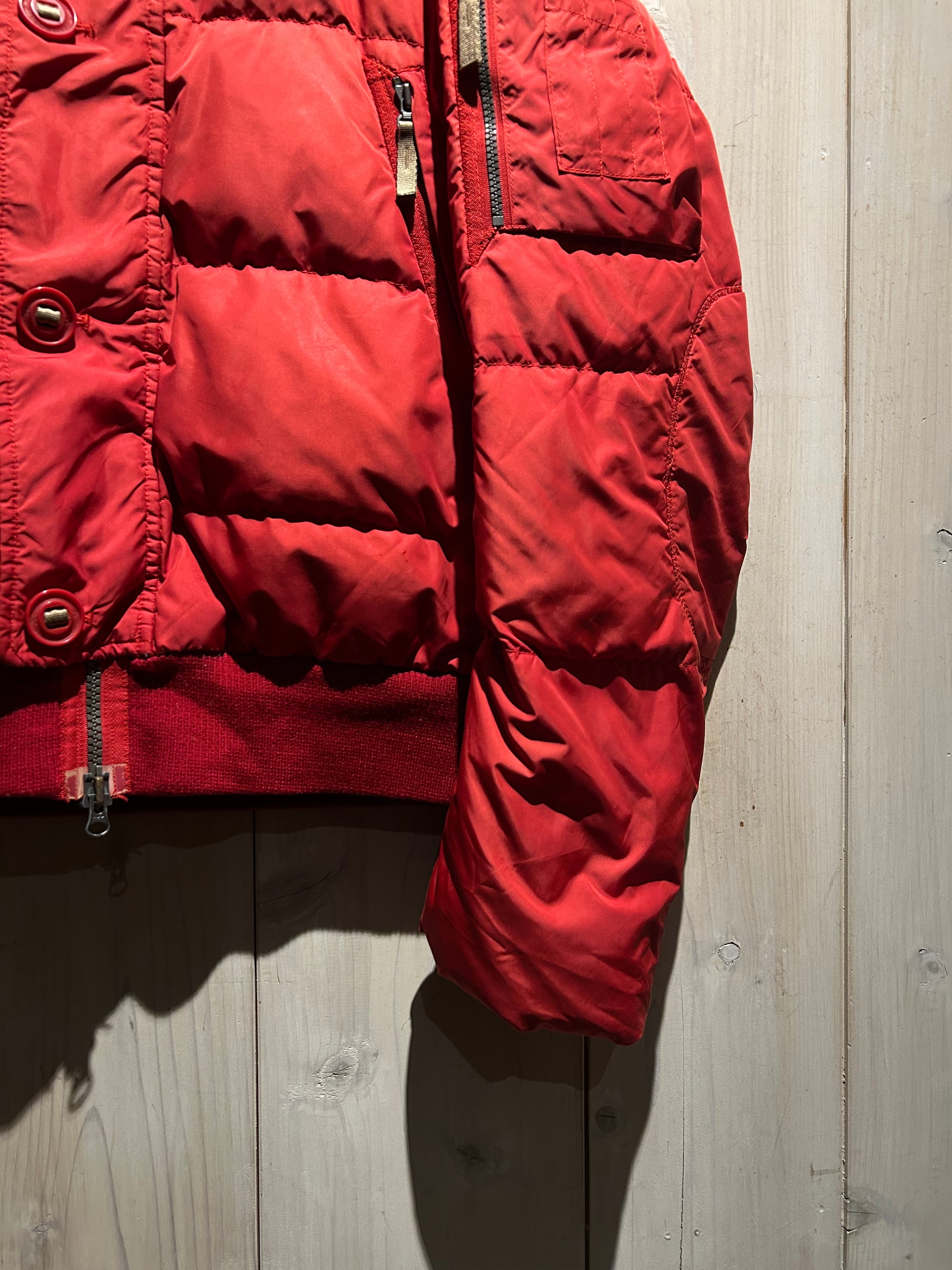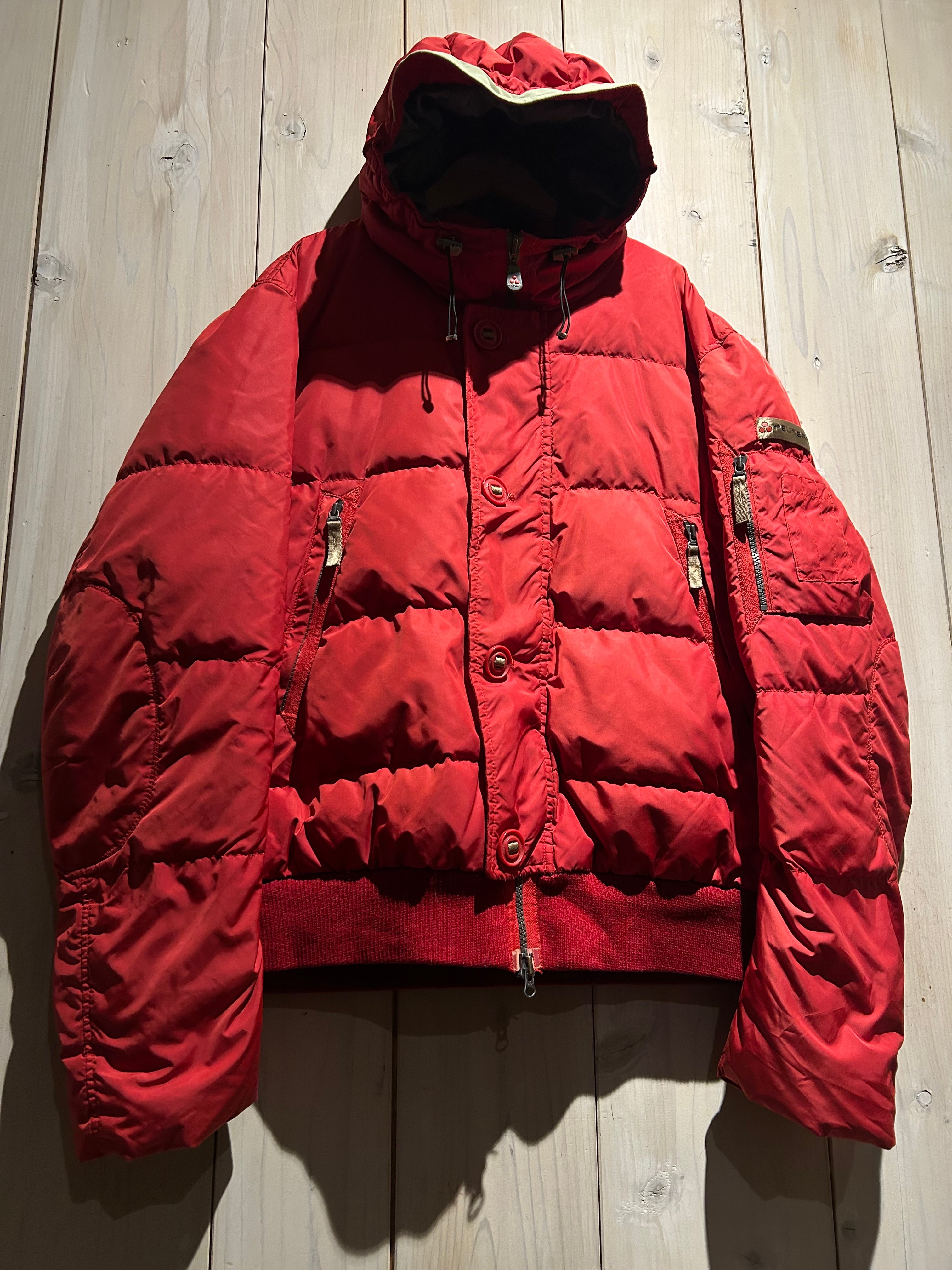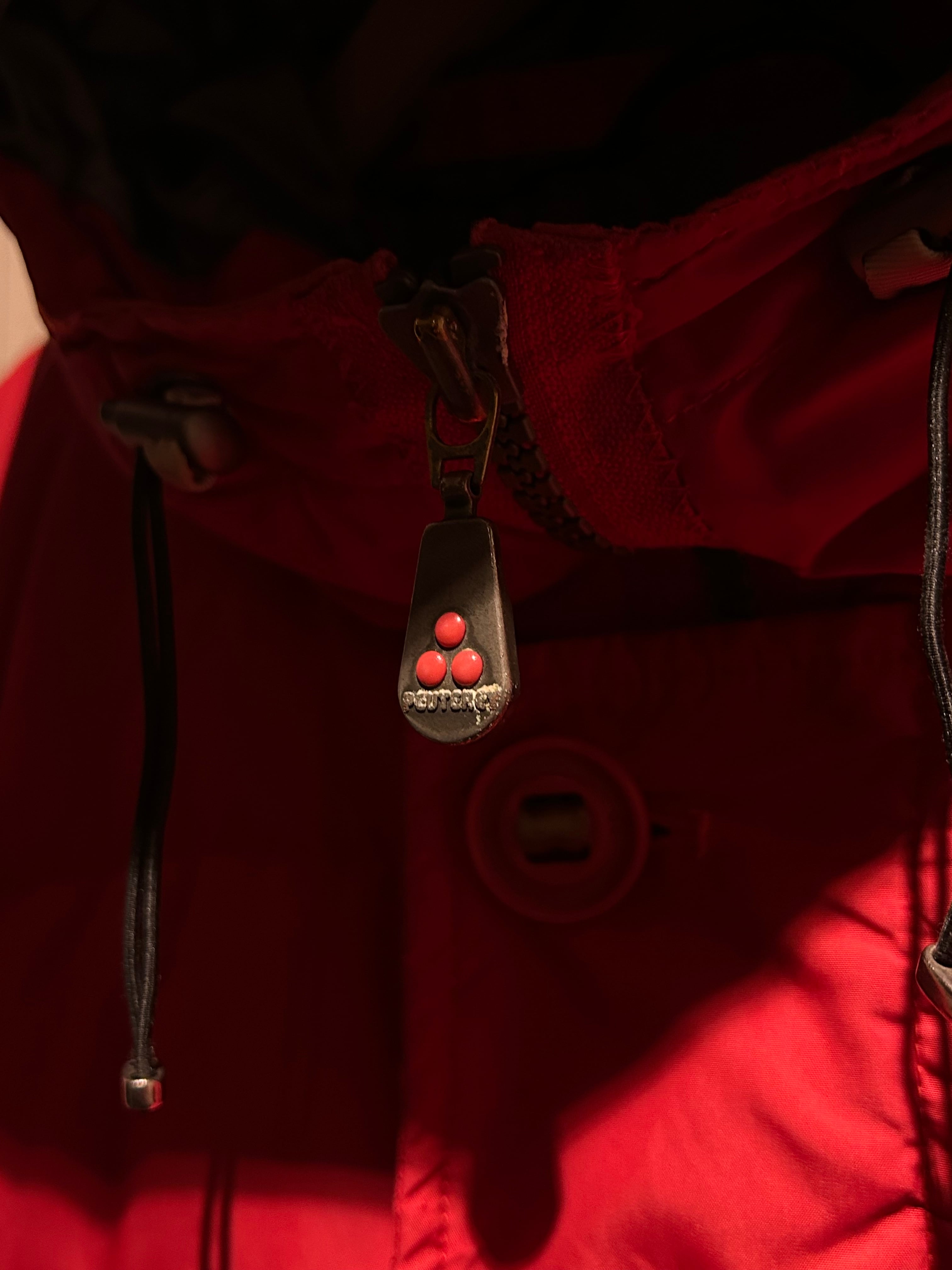 ビビットな赤色で仕上げられ、ミリタリーの無骨さが見事にファッションとして昇華されています。