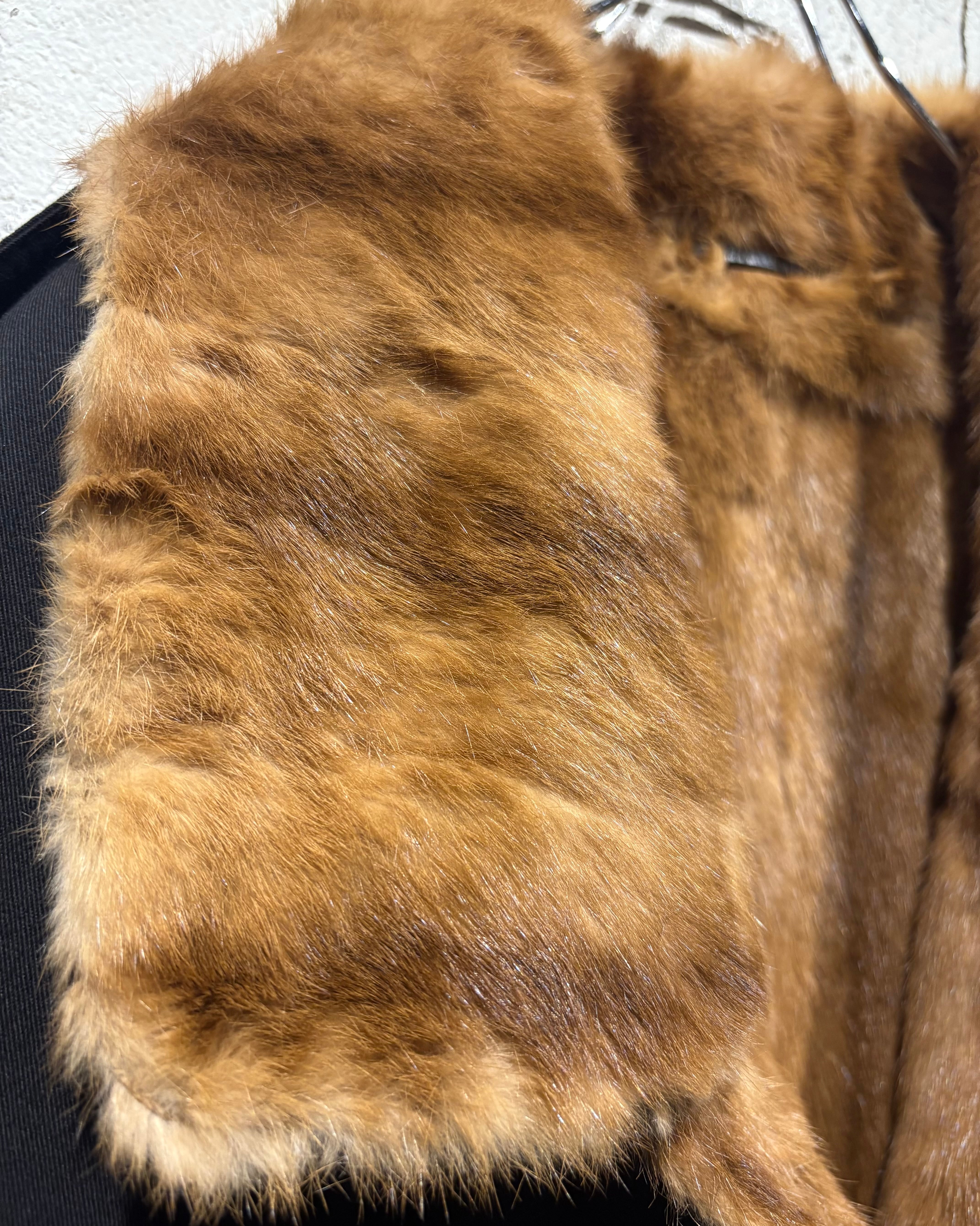 フロントは留め具付きのミニマルなディテール。ネックにもベルトが施されスタンドカラーに仕様変更可能、リアルファーならではの高い保温性に加え、風の侵入を防ぐ実用的なディテールも抜かりありません。