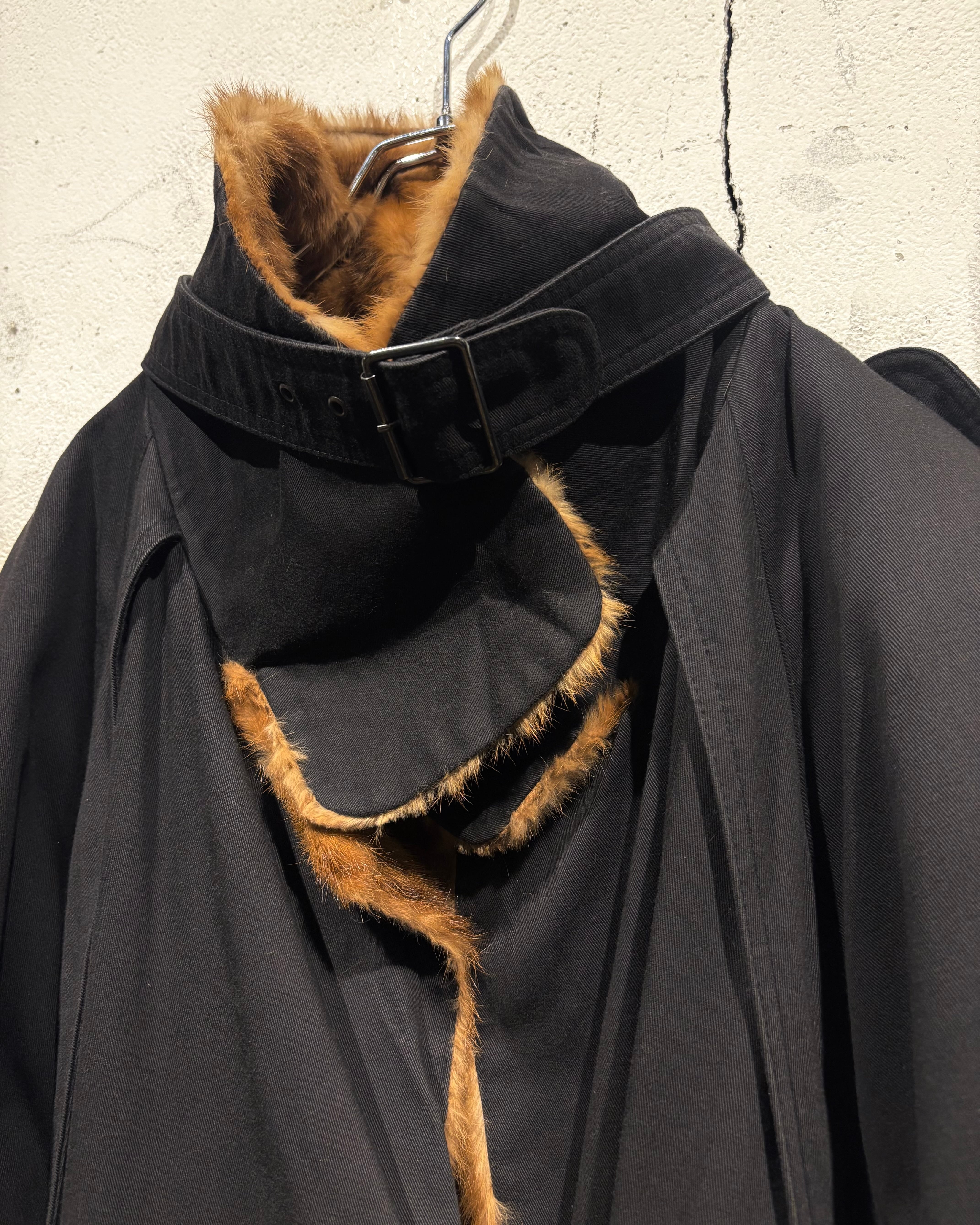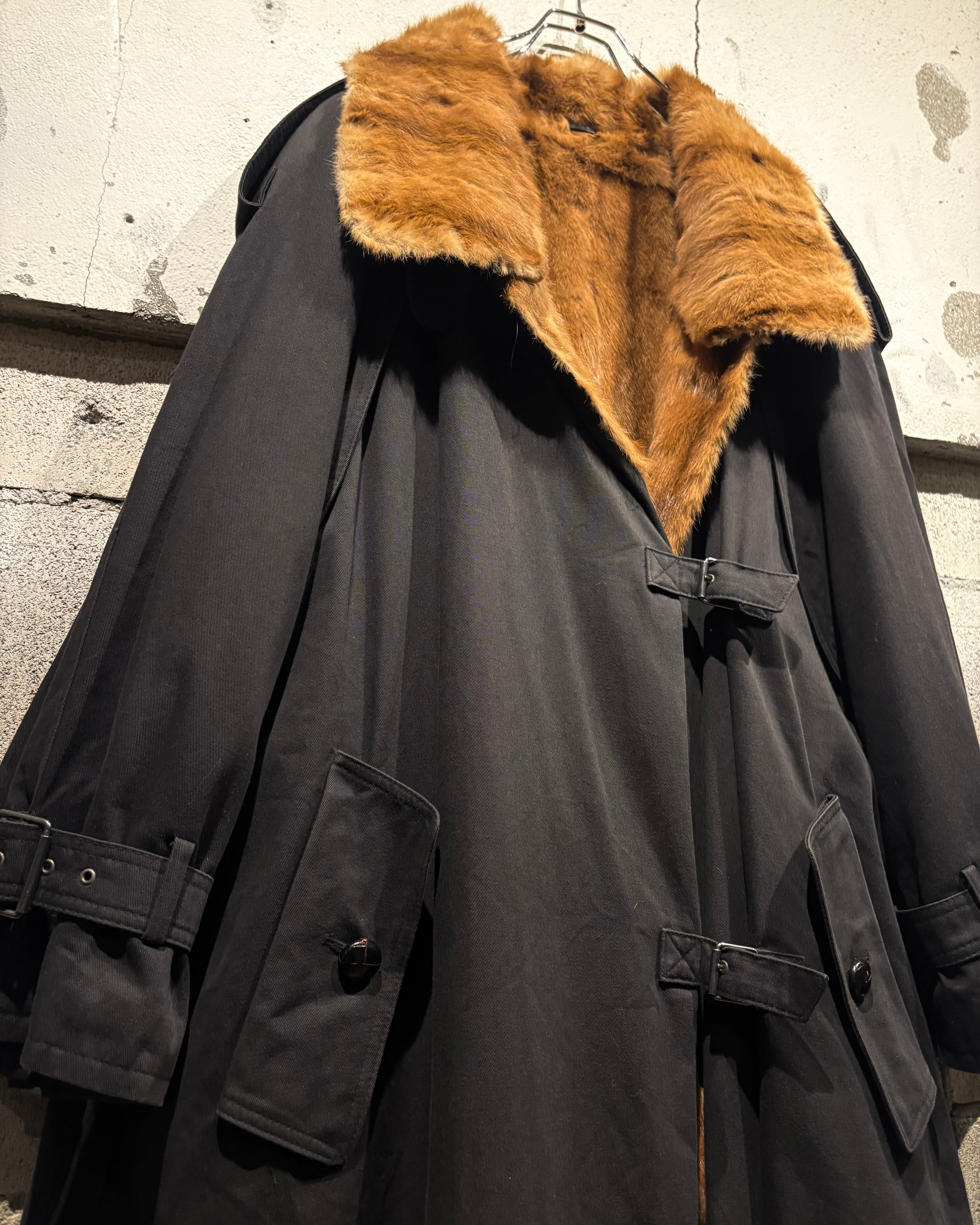 表地にコットンツイル、裏地にリアルファーを贅沢に使用した、圧倒的存在感を放つファーライニングコート。
