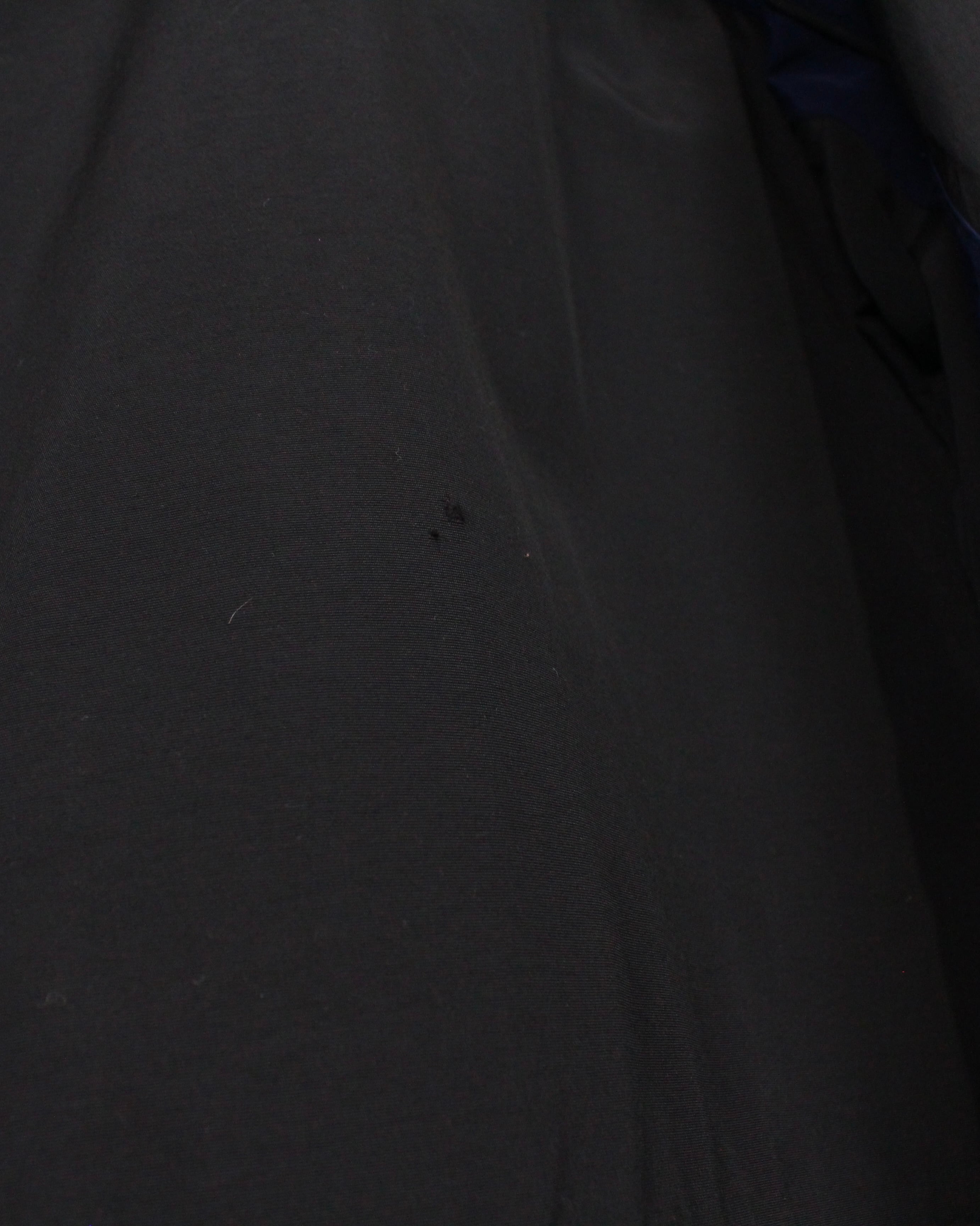 ナイロン特有の光沢を放つボディに、ソリッドな黒をメインカラーに青紫色のラインを走らせた1着。