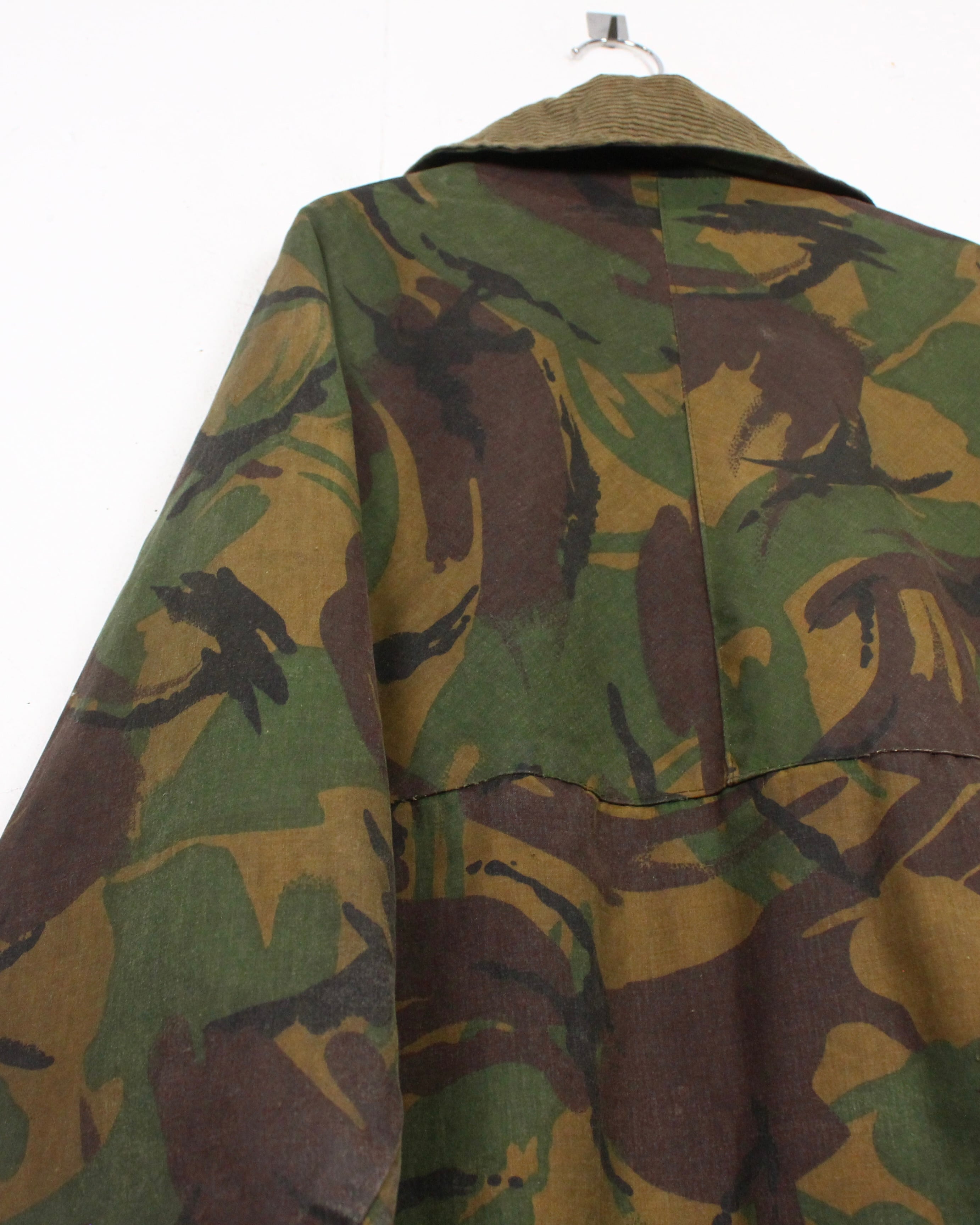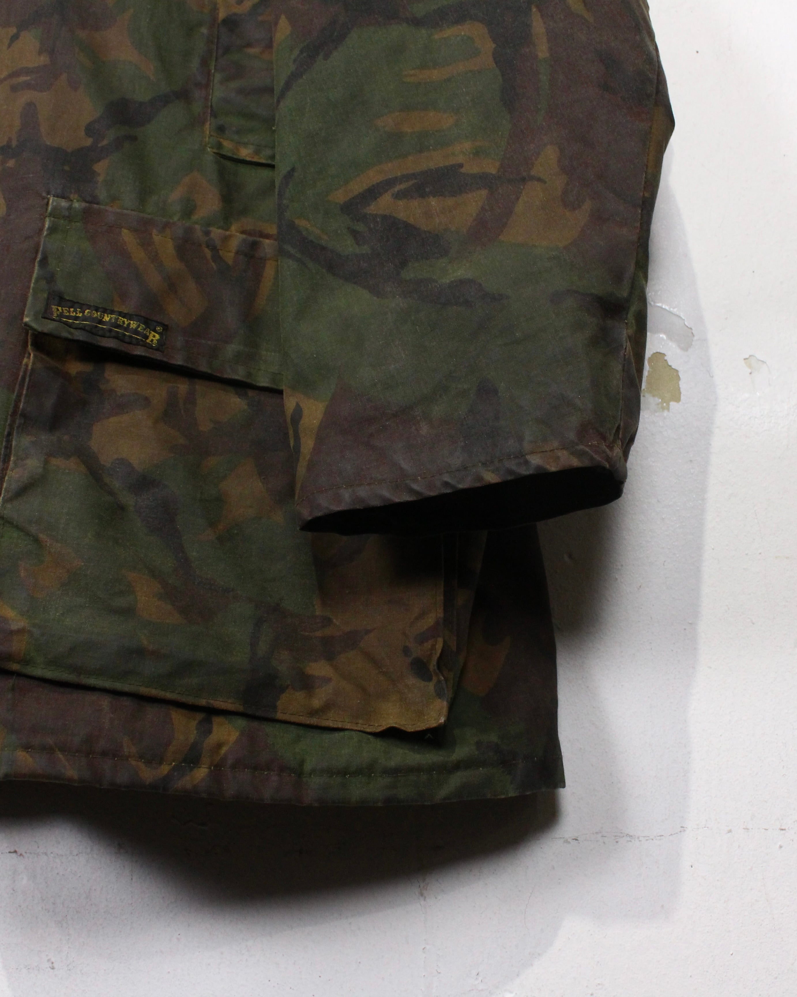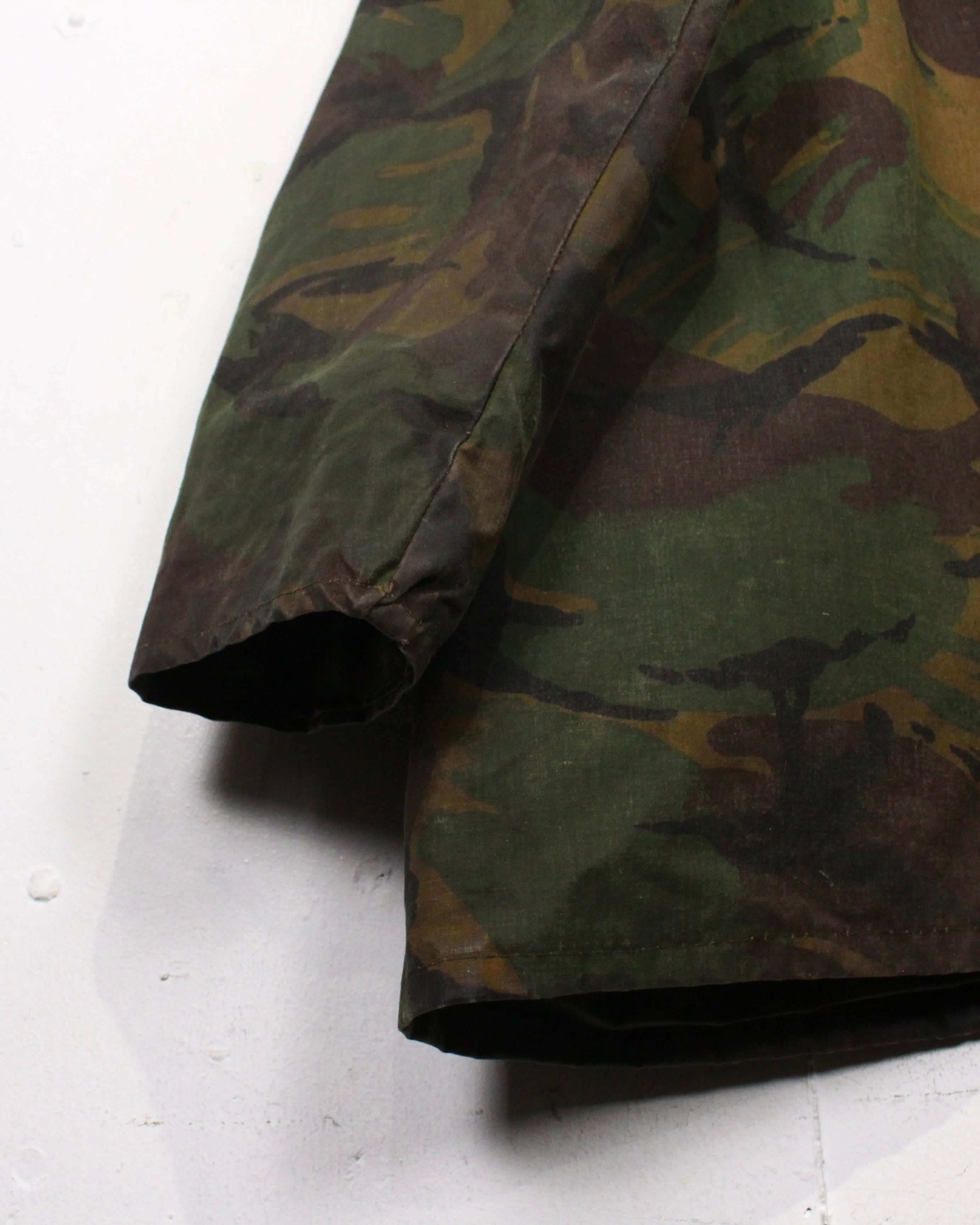 ボディにはオイルド特有のしっとりとした質感が残り、防風、防水性をしっかりと確保。着込まれることで生まれるシワや色ムラが、無骨さの中に奥行きのある表情を与えています。カモ柄も派手すぎず、落ち着いたトーンでまとまっているのが◎非常に珍しいDPM迷彩のオイルドジャケット。