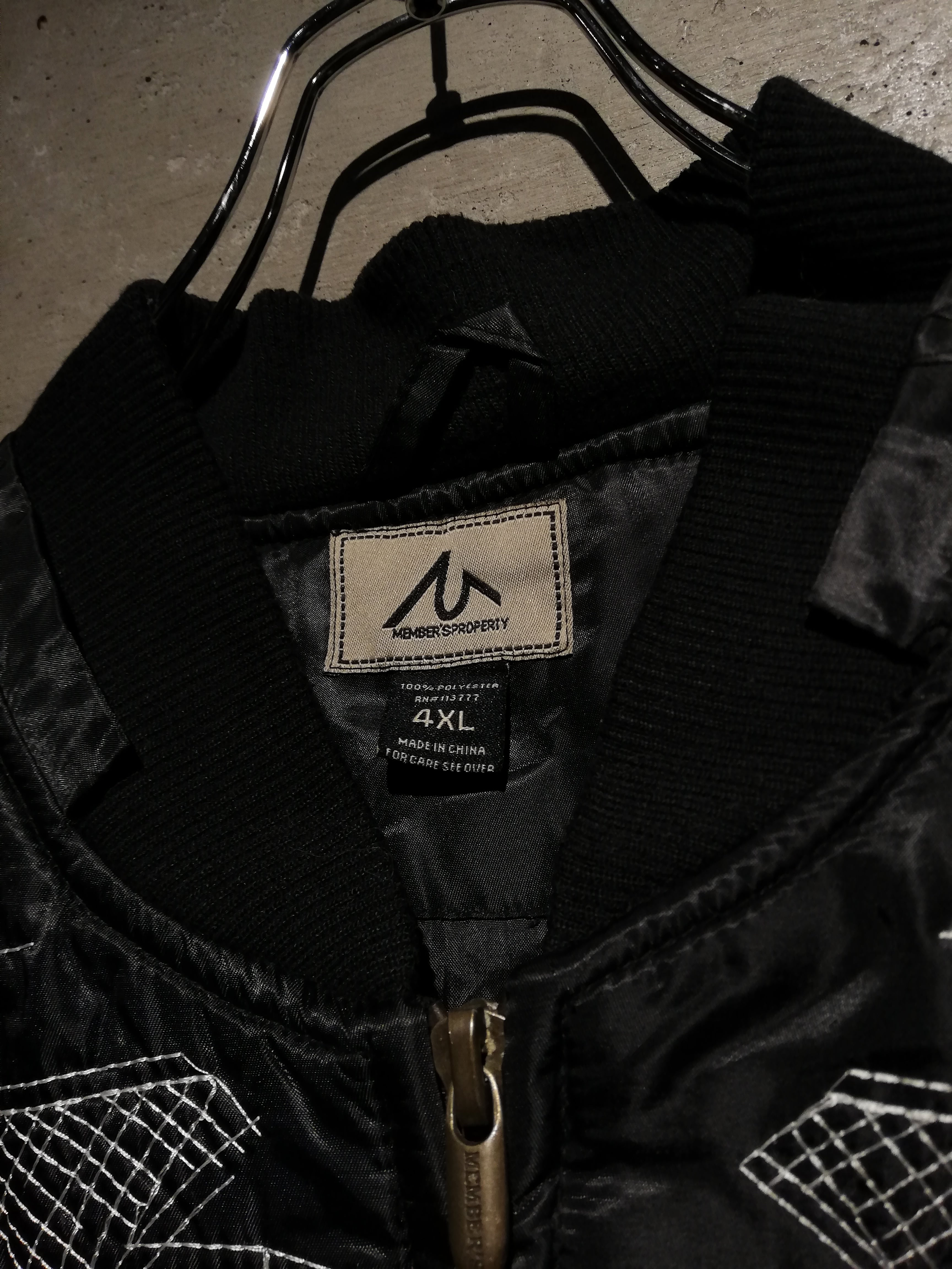 ブラックナイロンをボディのベースに、ボディ全体に施された、ストリート感溢れる総刺繍が圧倒的な存在感を見せるスペシャルなボンバージャケット。