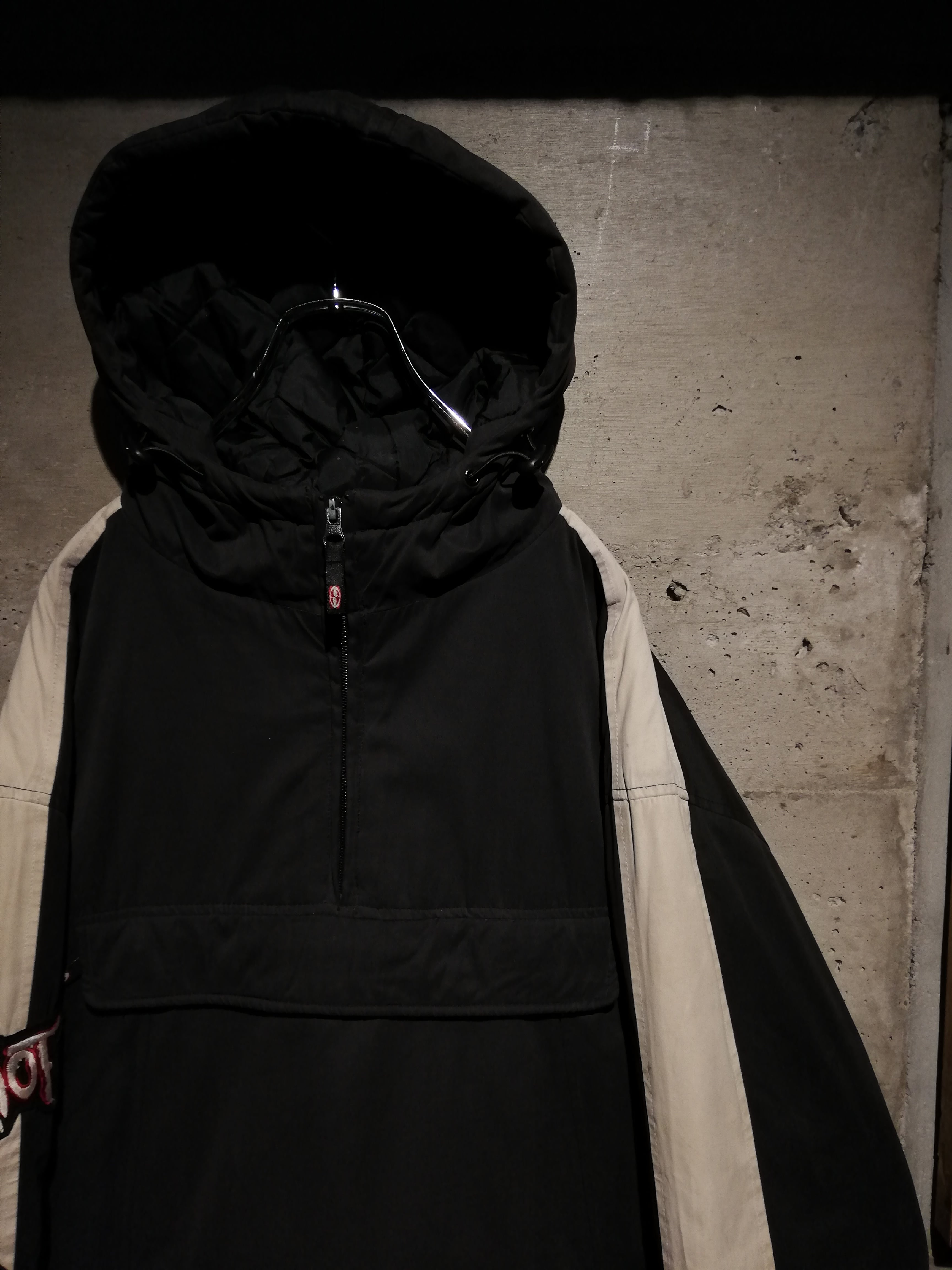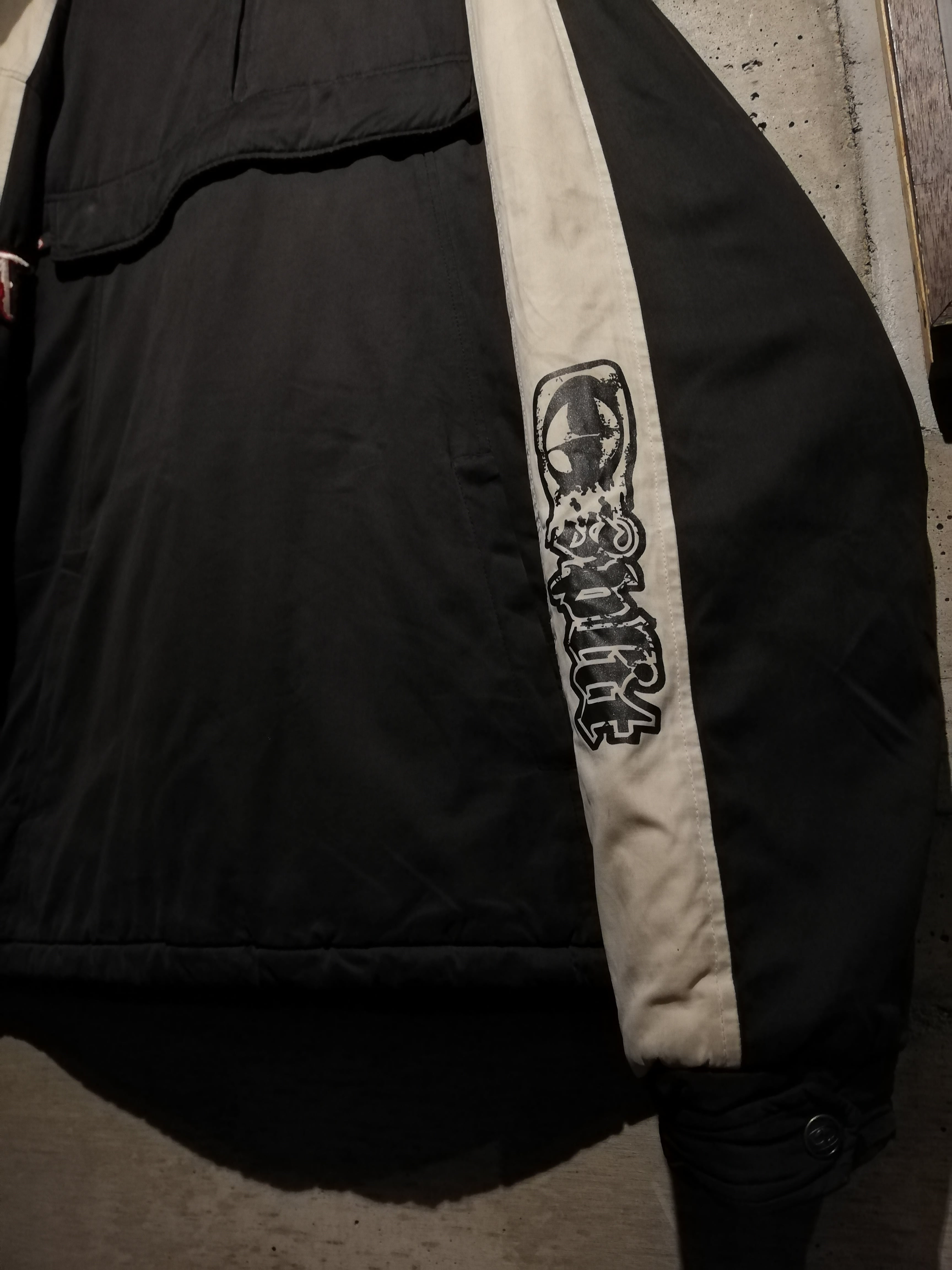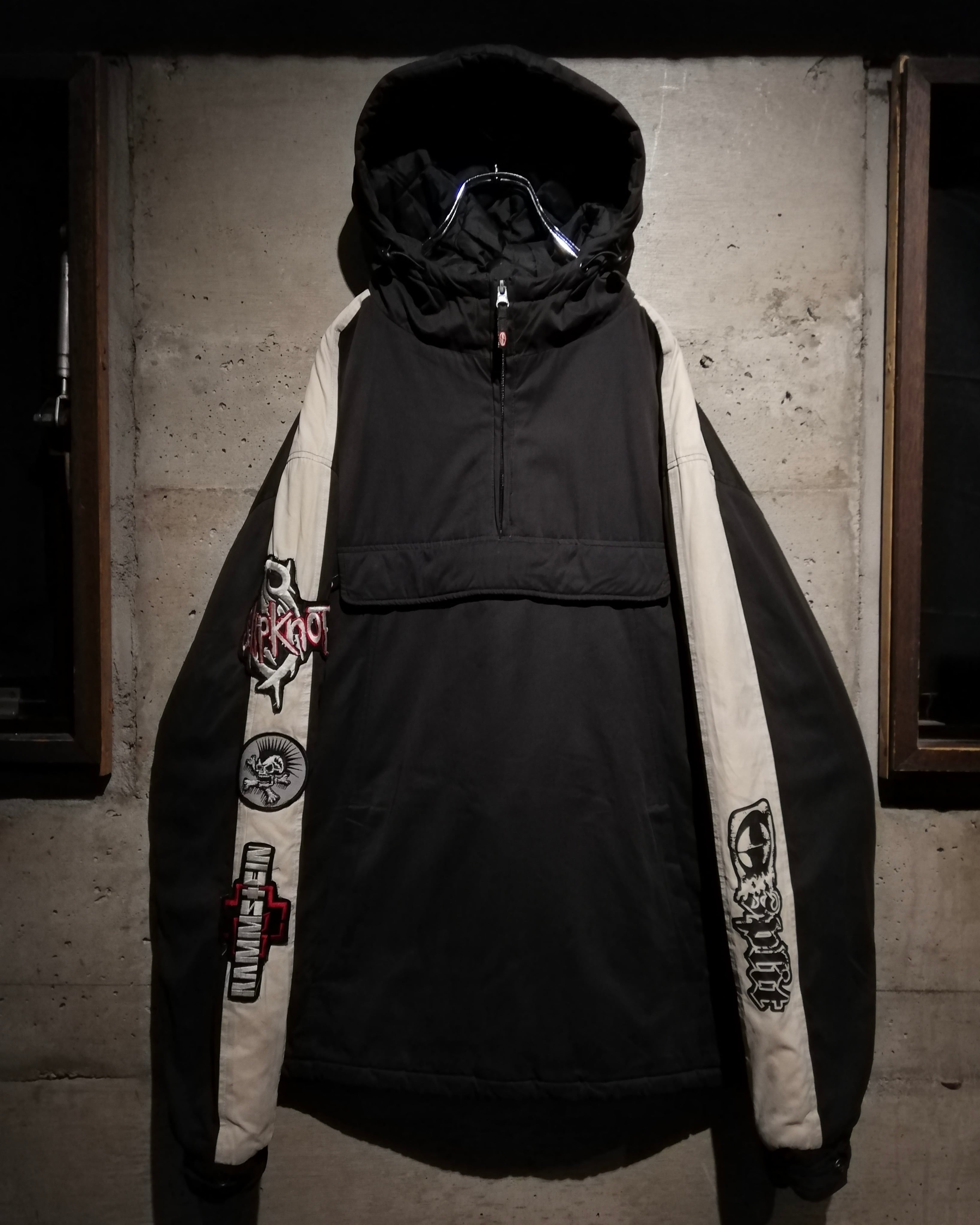 前所有者によって、SlipknotやRammsteinのパッチカスタムが加えられた、2000年代のストリートシーンを色濃く映し出す、アノラックジャケット。