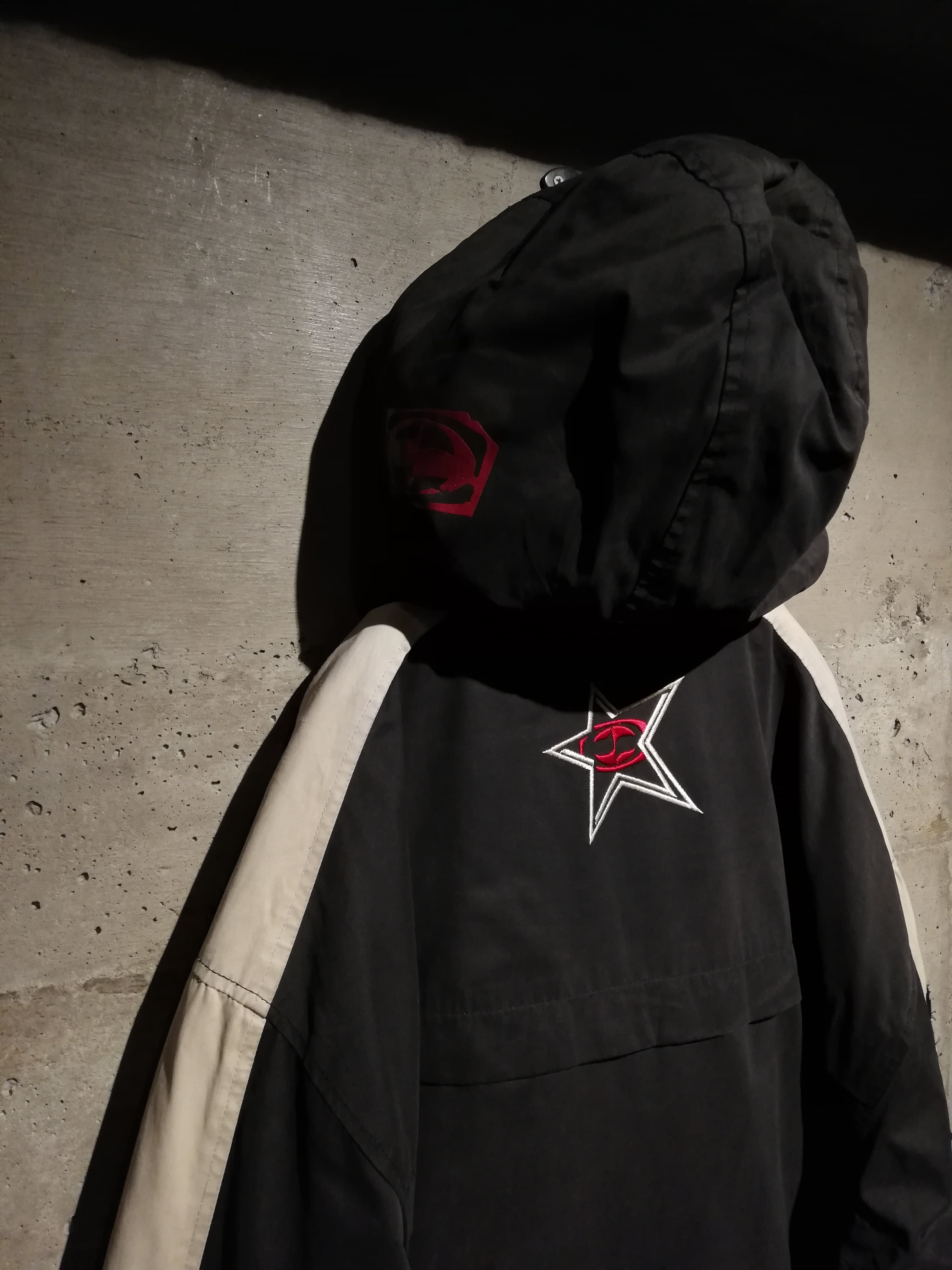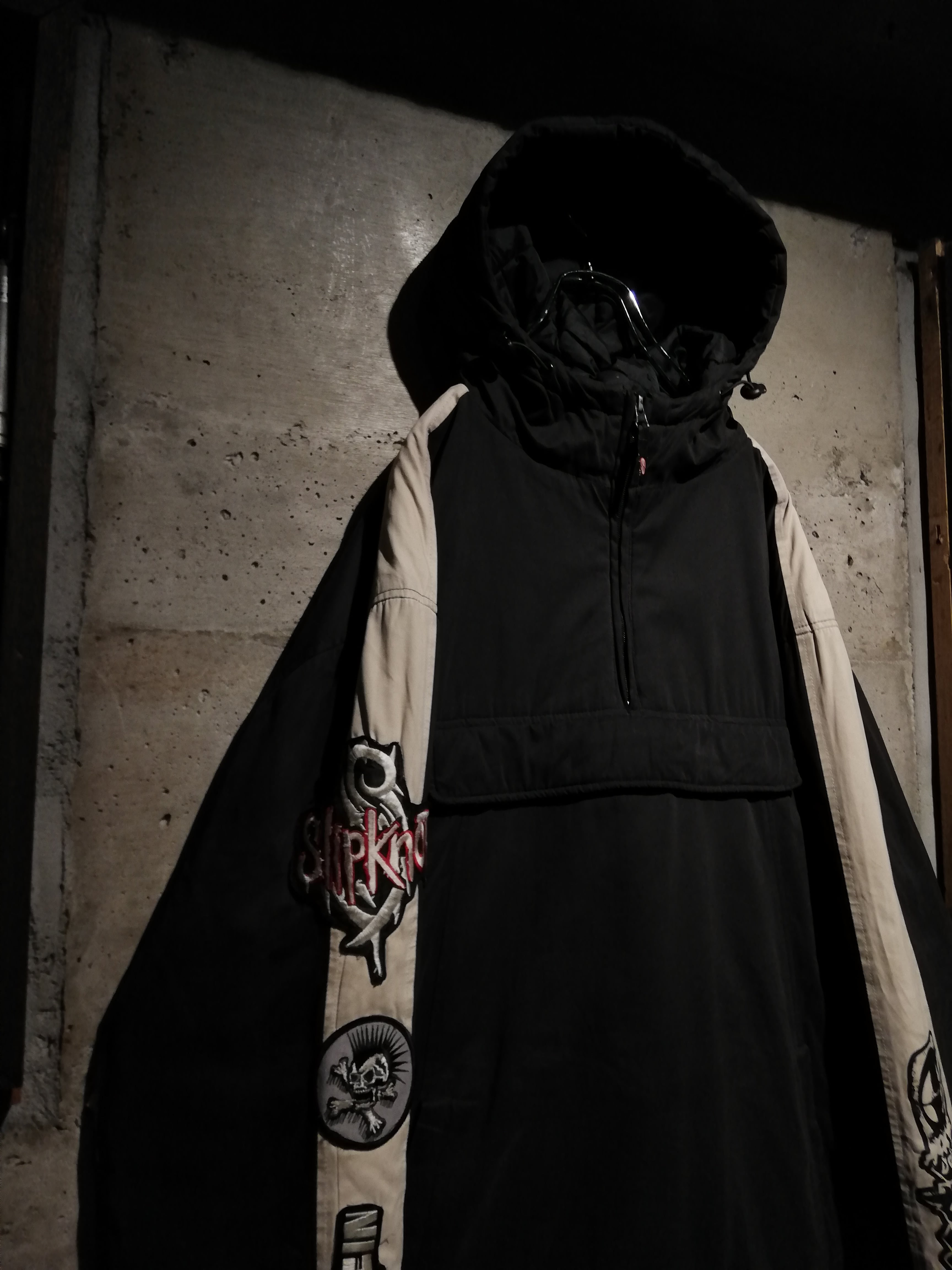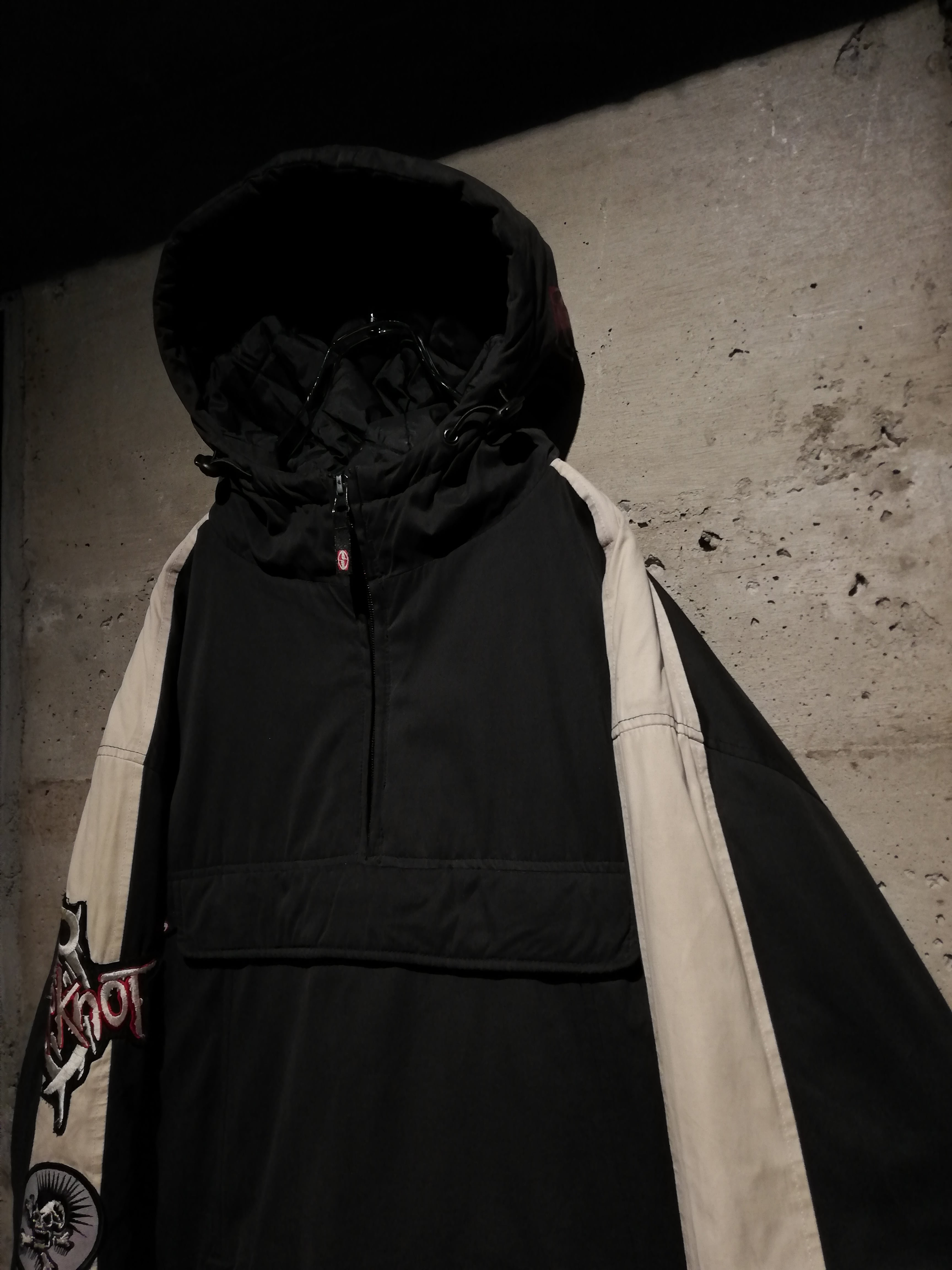 前所有者によって、SlipknotやRammsteinのパッチカスタムが加えられた、2000年代のストリートシーンを色濃く映し出す、アノラックジャケット。
