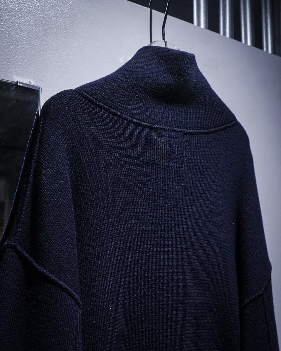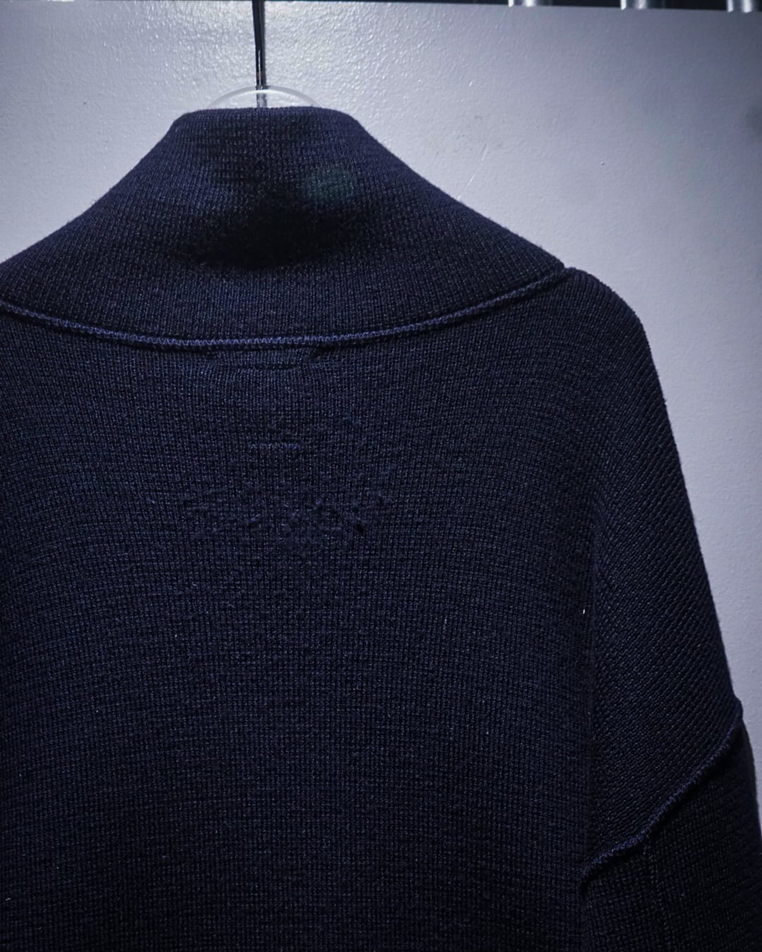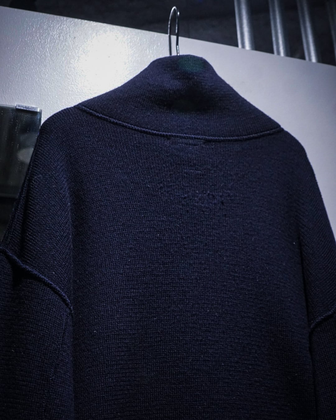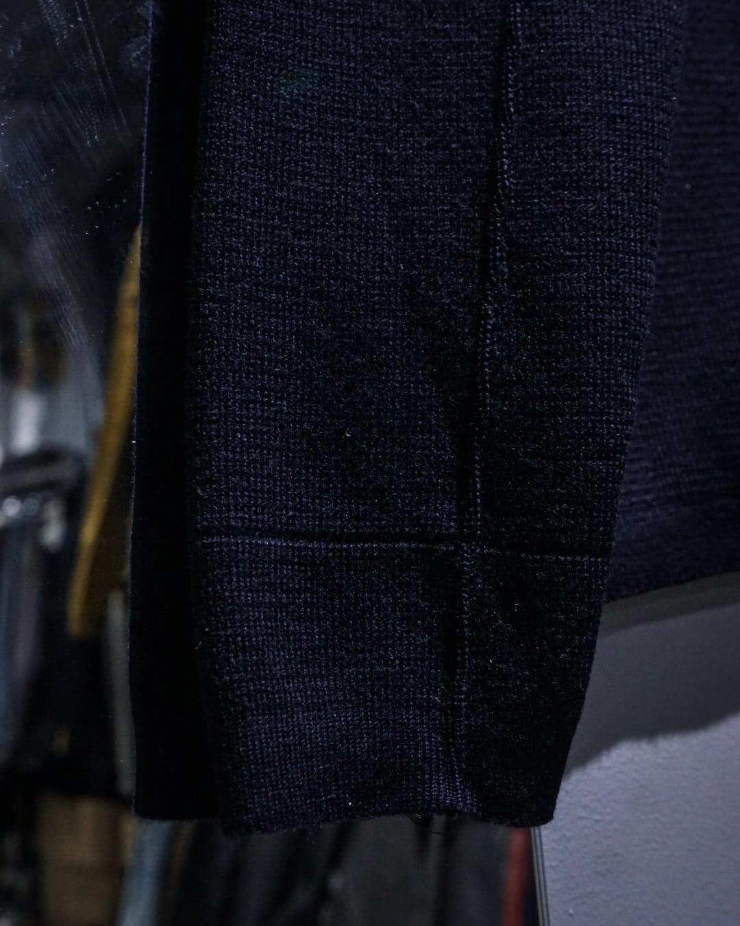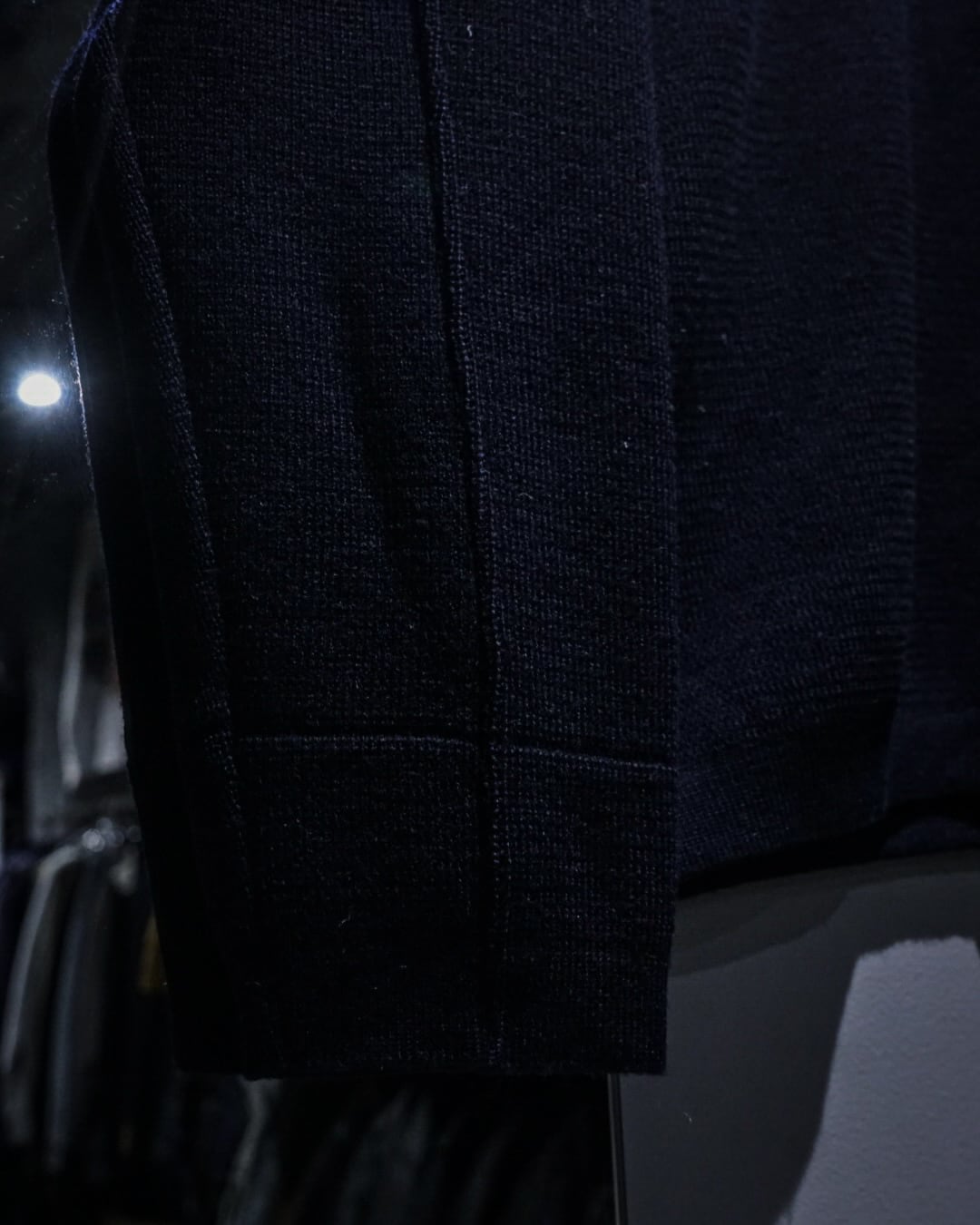 ボディにはウール100%を使用。柔らかな肌触りと、ネイビーの落ち着いた色味が上質さを引き立てます。