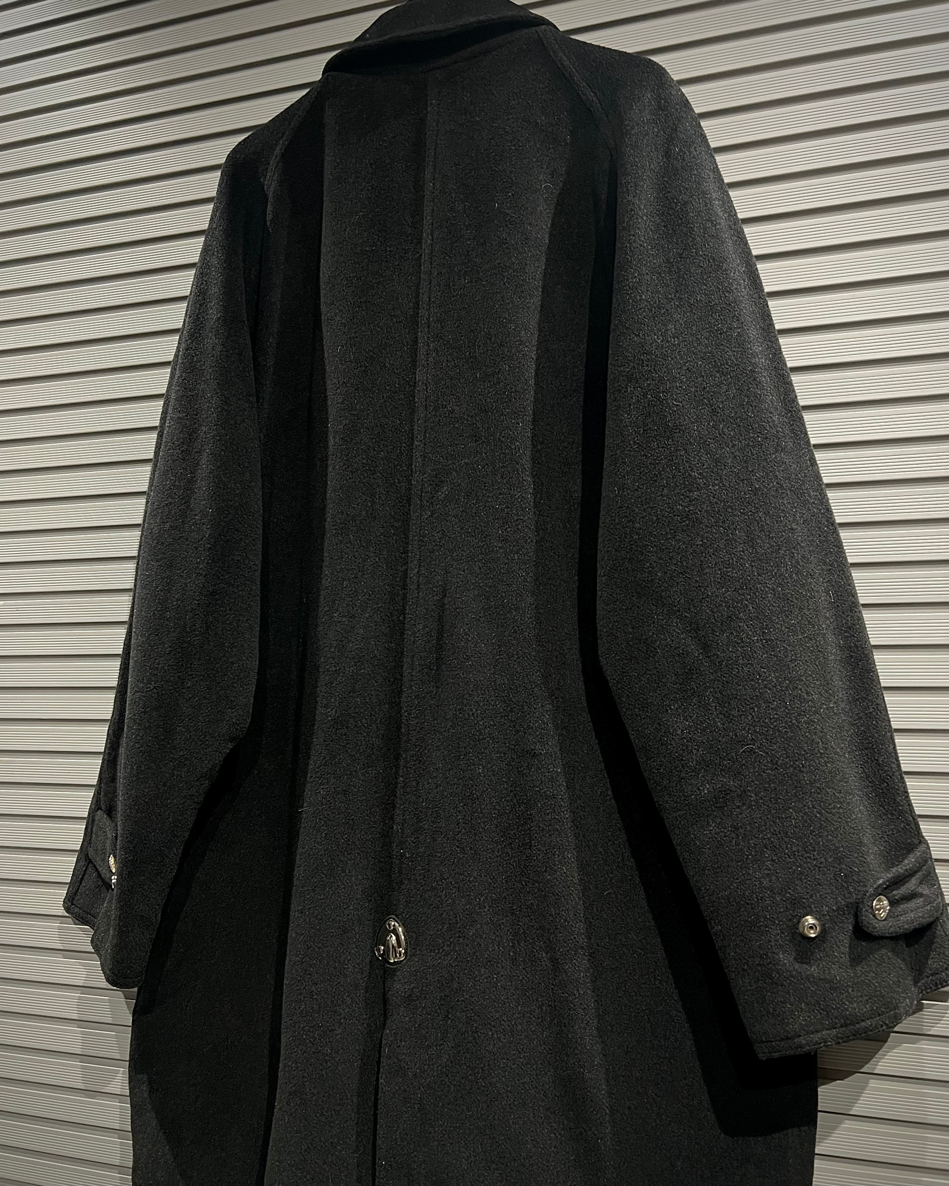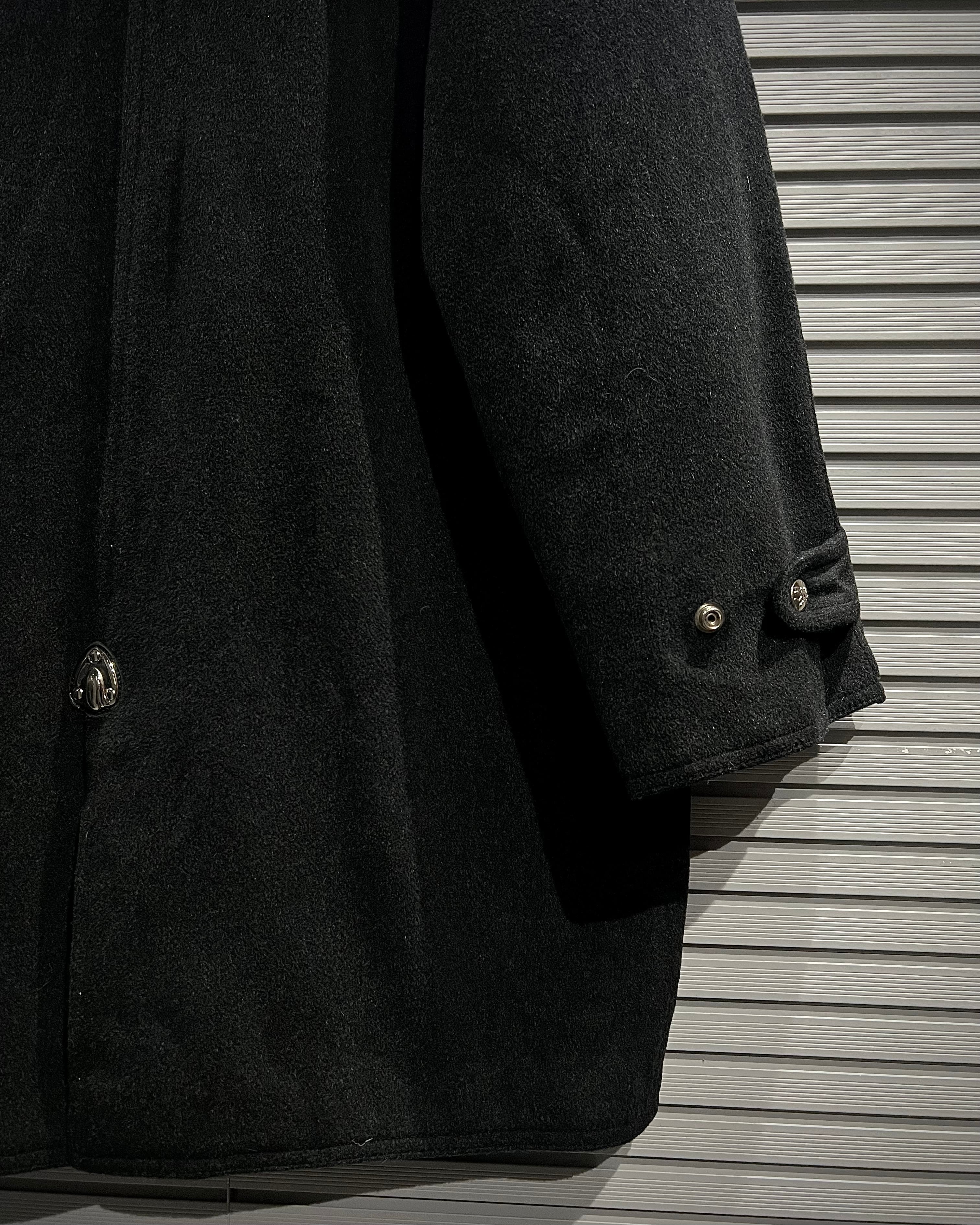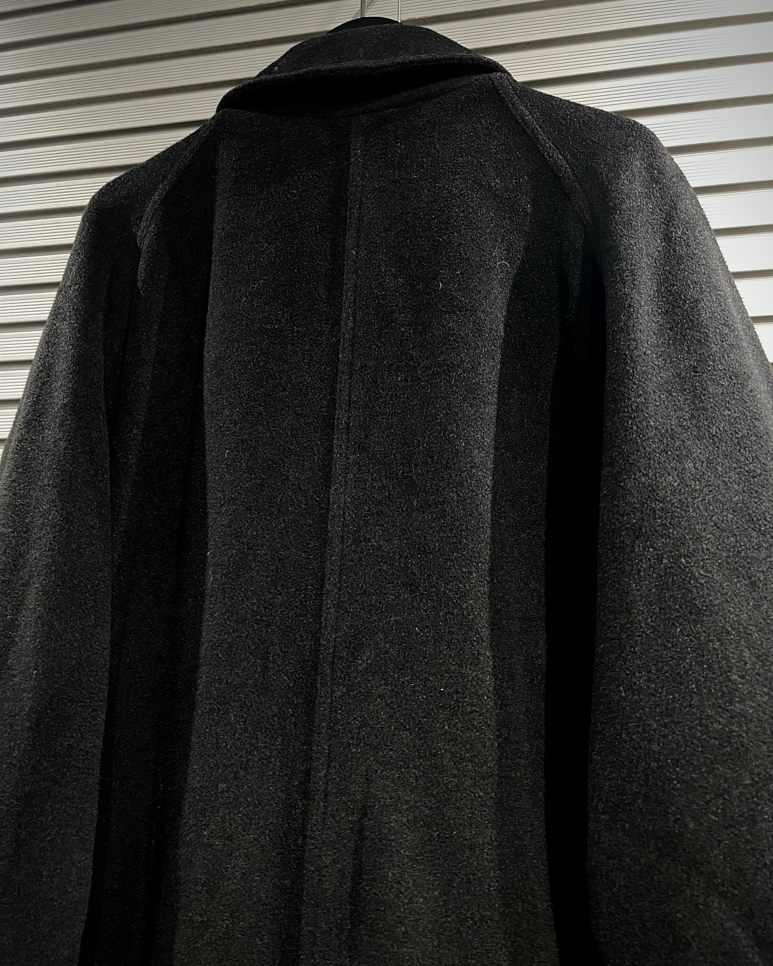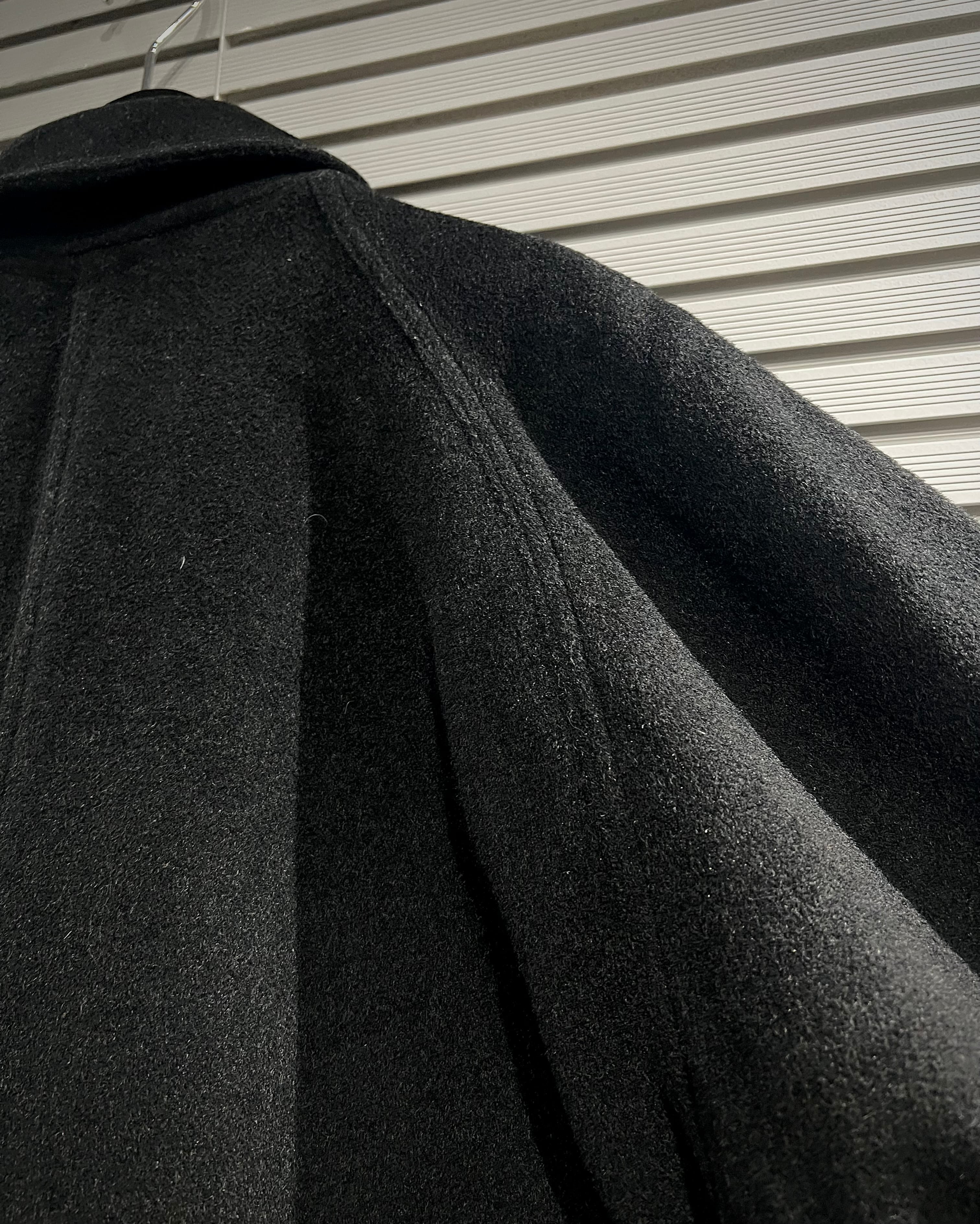身幅には程よい余白を持たせつつ、縦にストンと落ちるグッドシルエット。ウール特有の重厚感がありながらも、着用時には過度な重さを感じさせない点も秀逸で、コートとしての完成度の高さを物語ります。