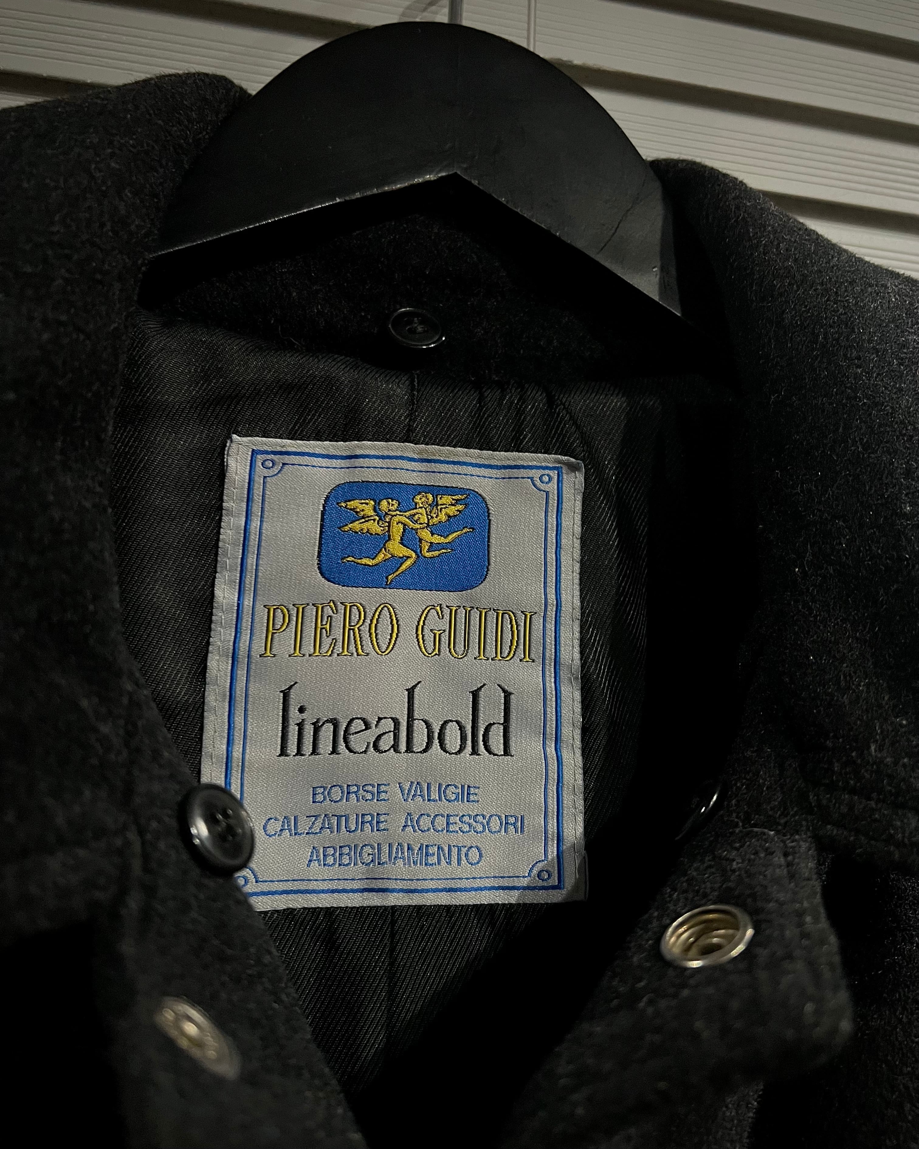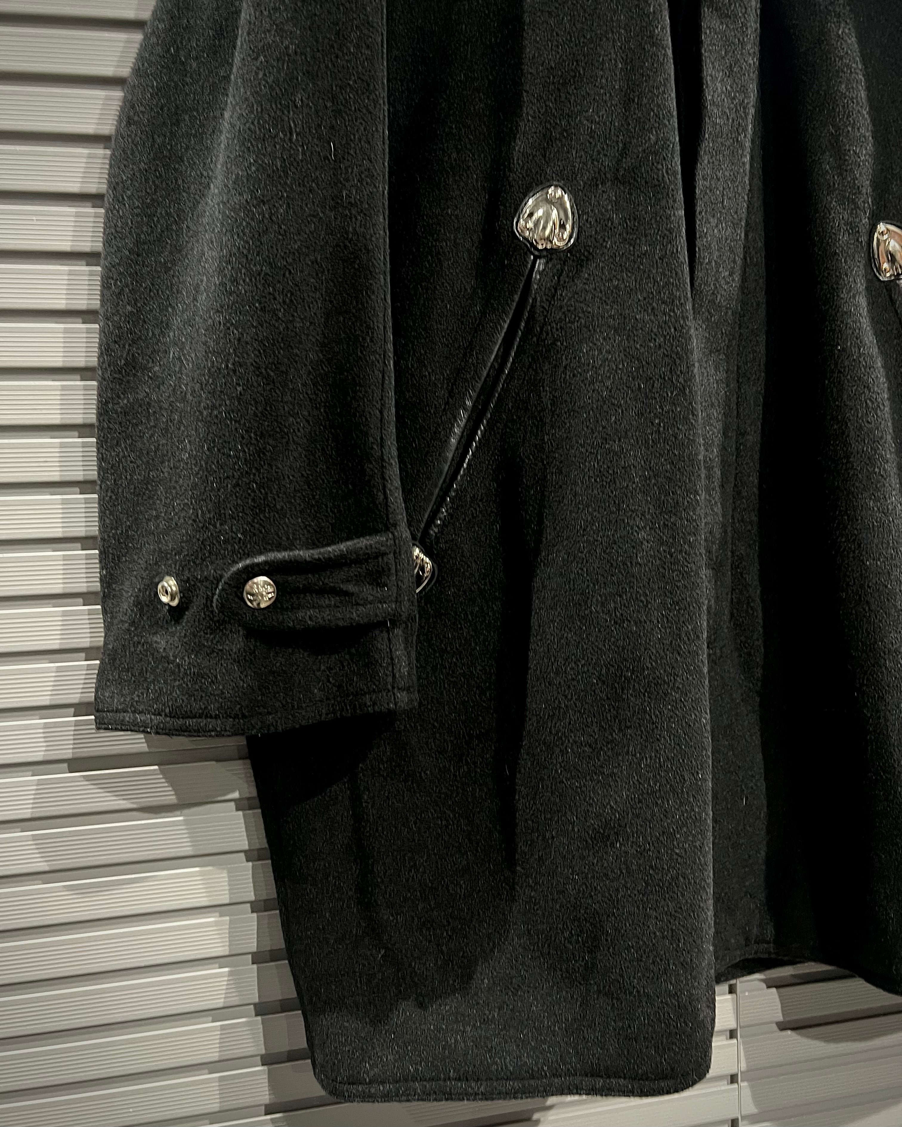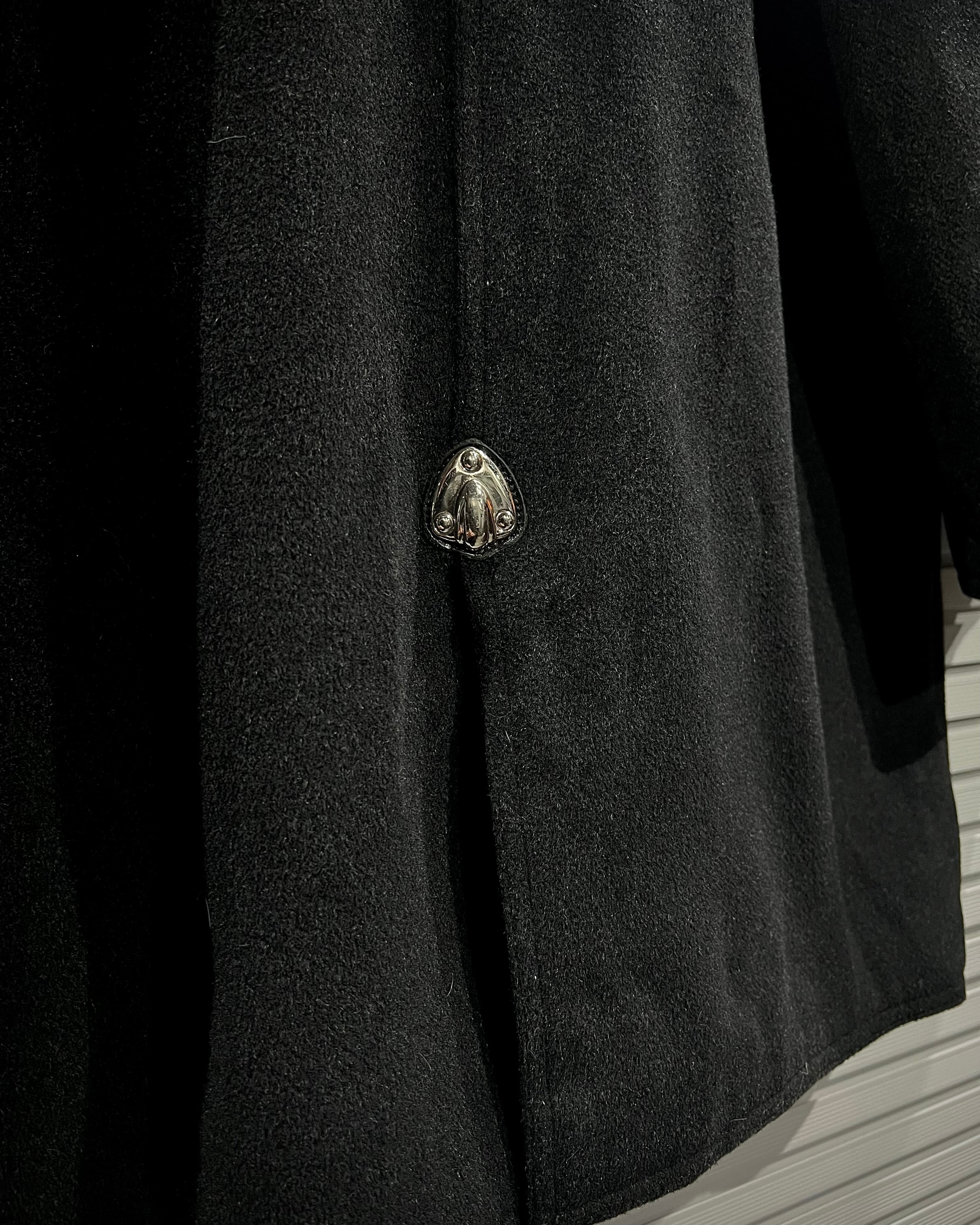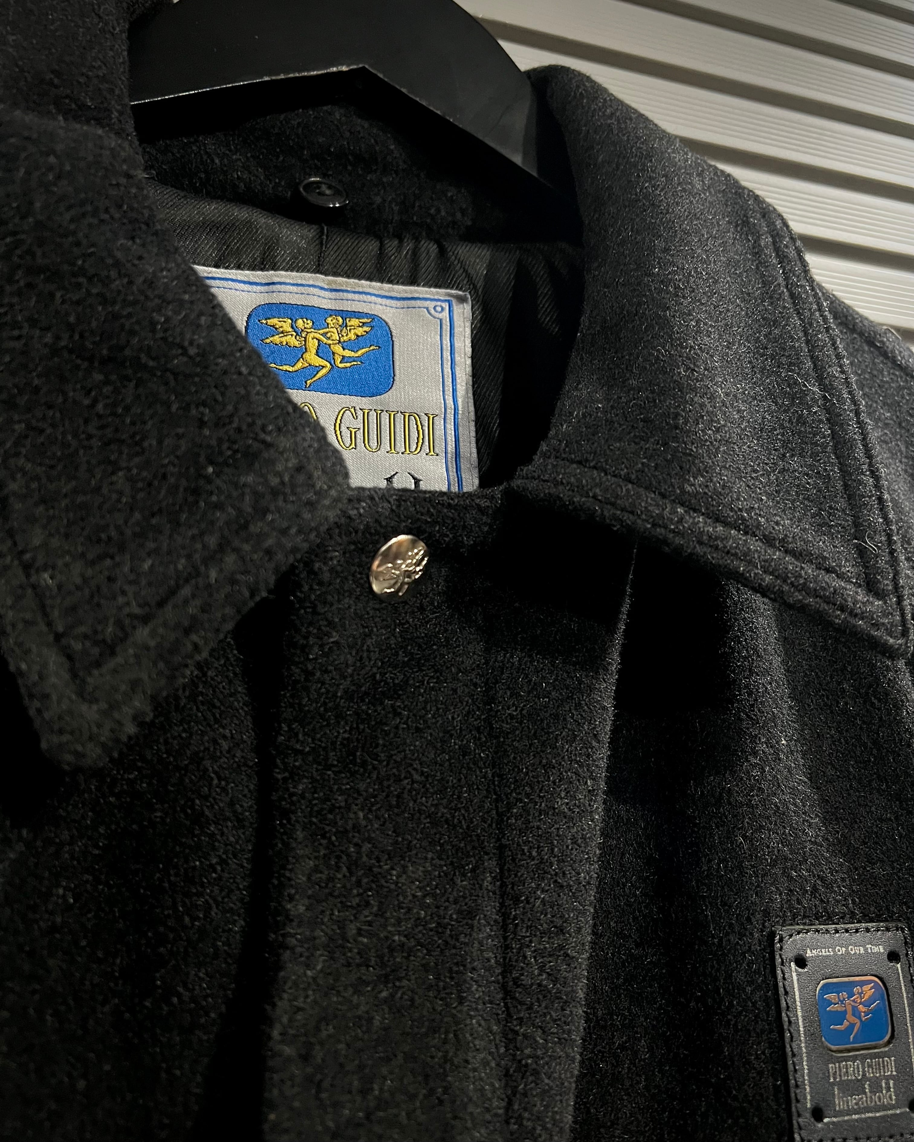 しっとりとした起毛感のある上質な素材を使用したミニマルなデザインの中に、随所にシルバーのパーツ装飾を施した、色気とエッジを感じさせる、"PIERO GUIDI"のイタリア製ウールコート。