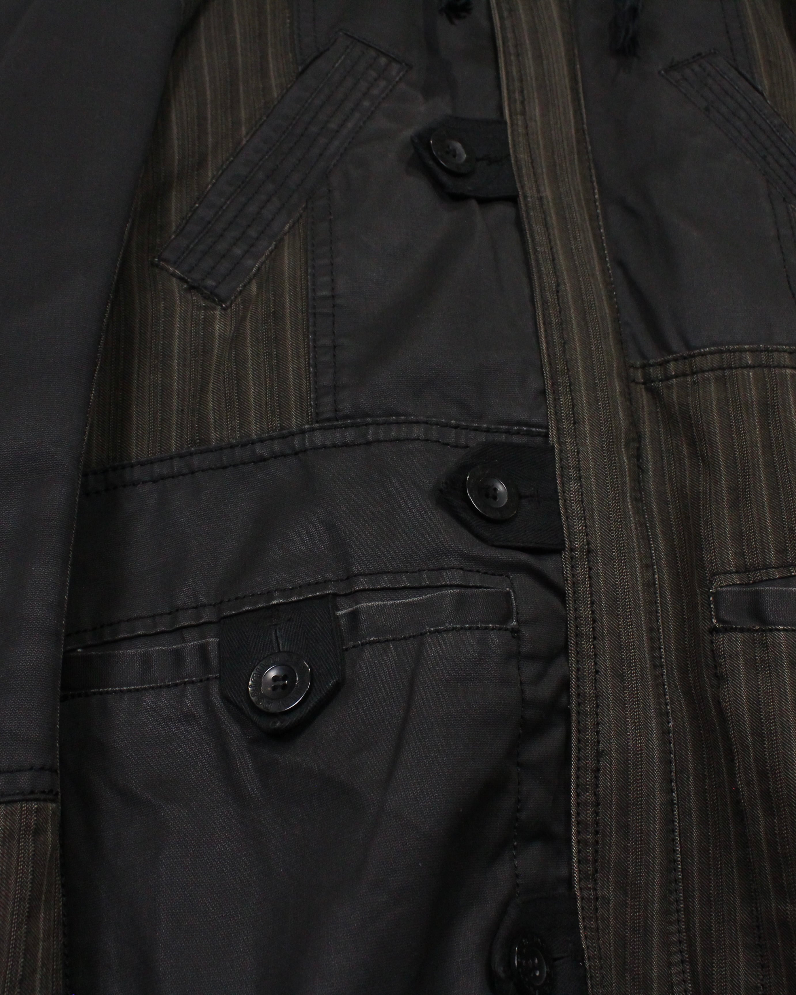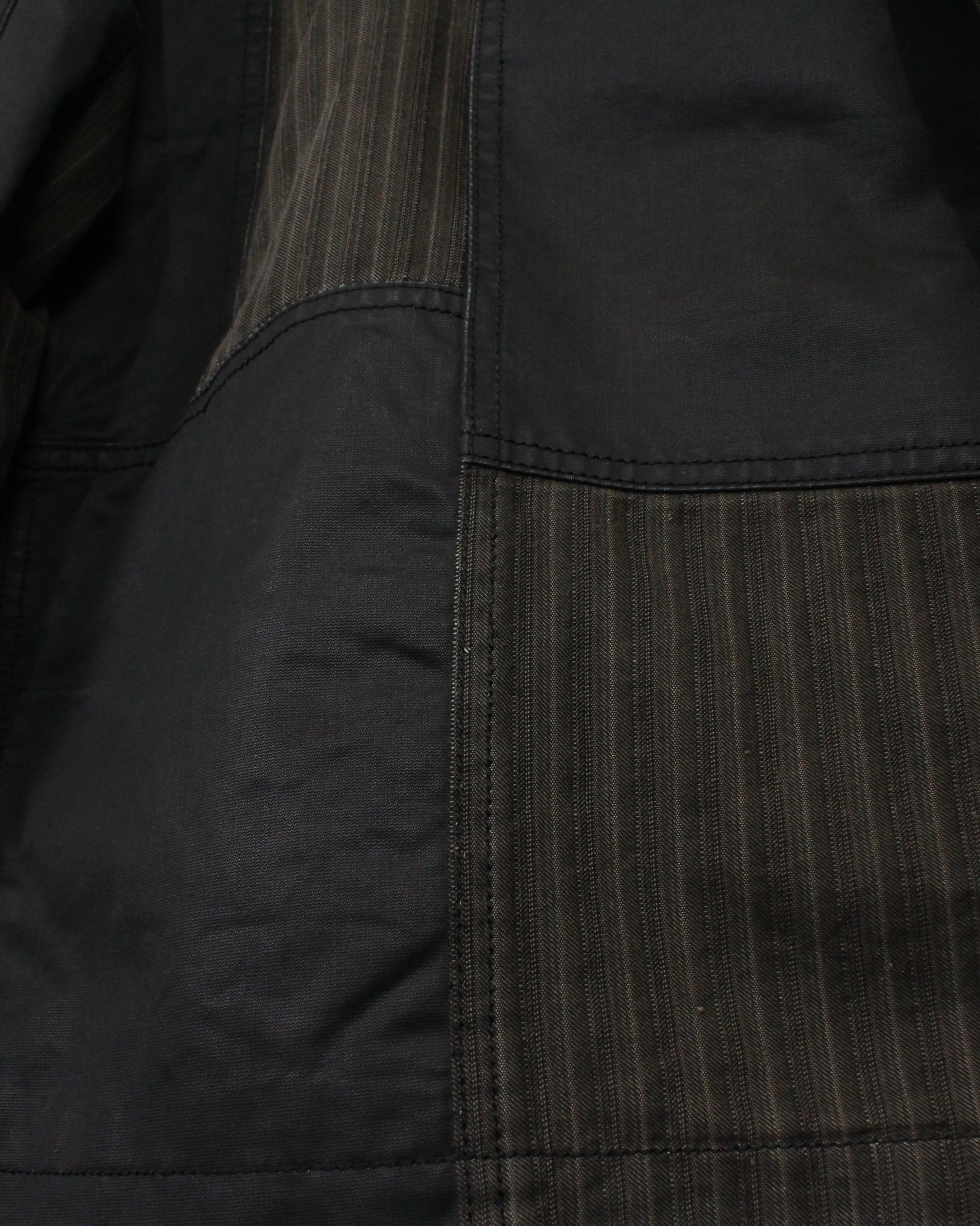 ストライプ部分はハリのあるコットン、プレーン地の部分にはコーティングが施されており、生地感の違いか絶妙な立体感を演出、テクニカルさがありながらシックで落ち着いた印象も受けられます。