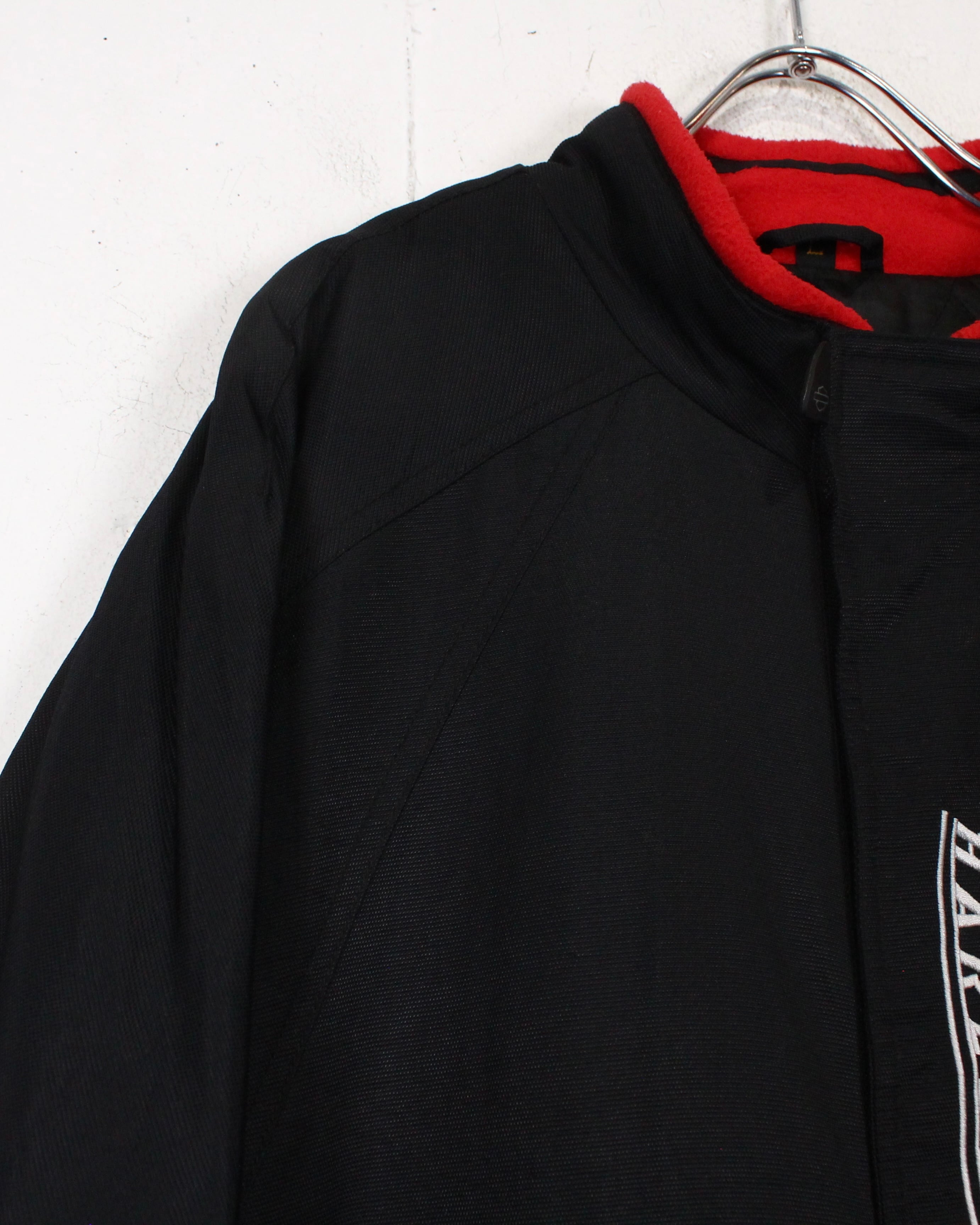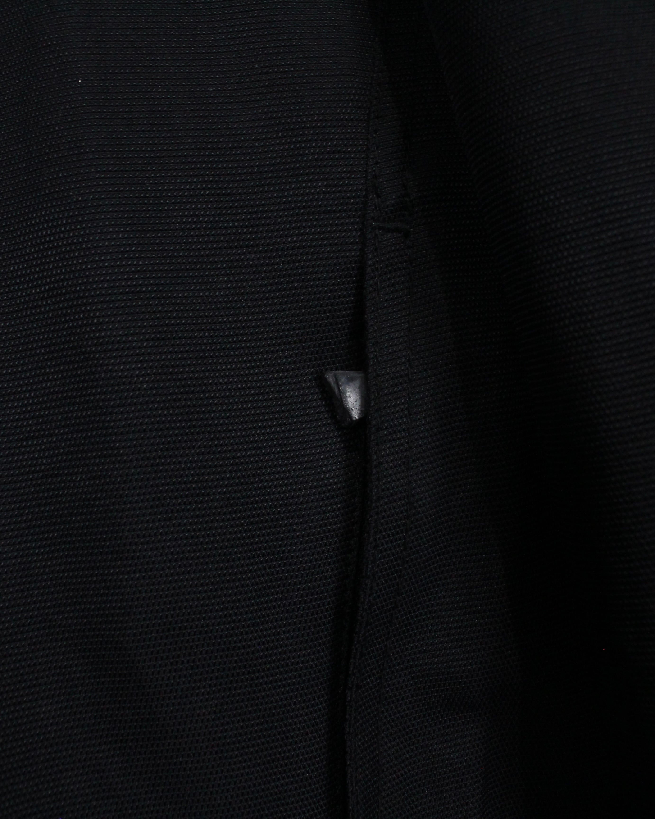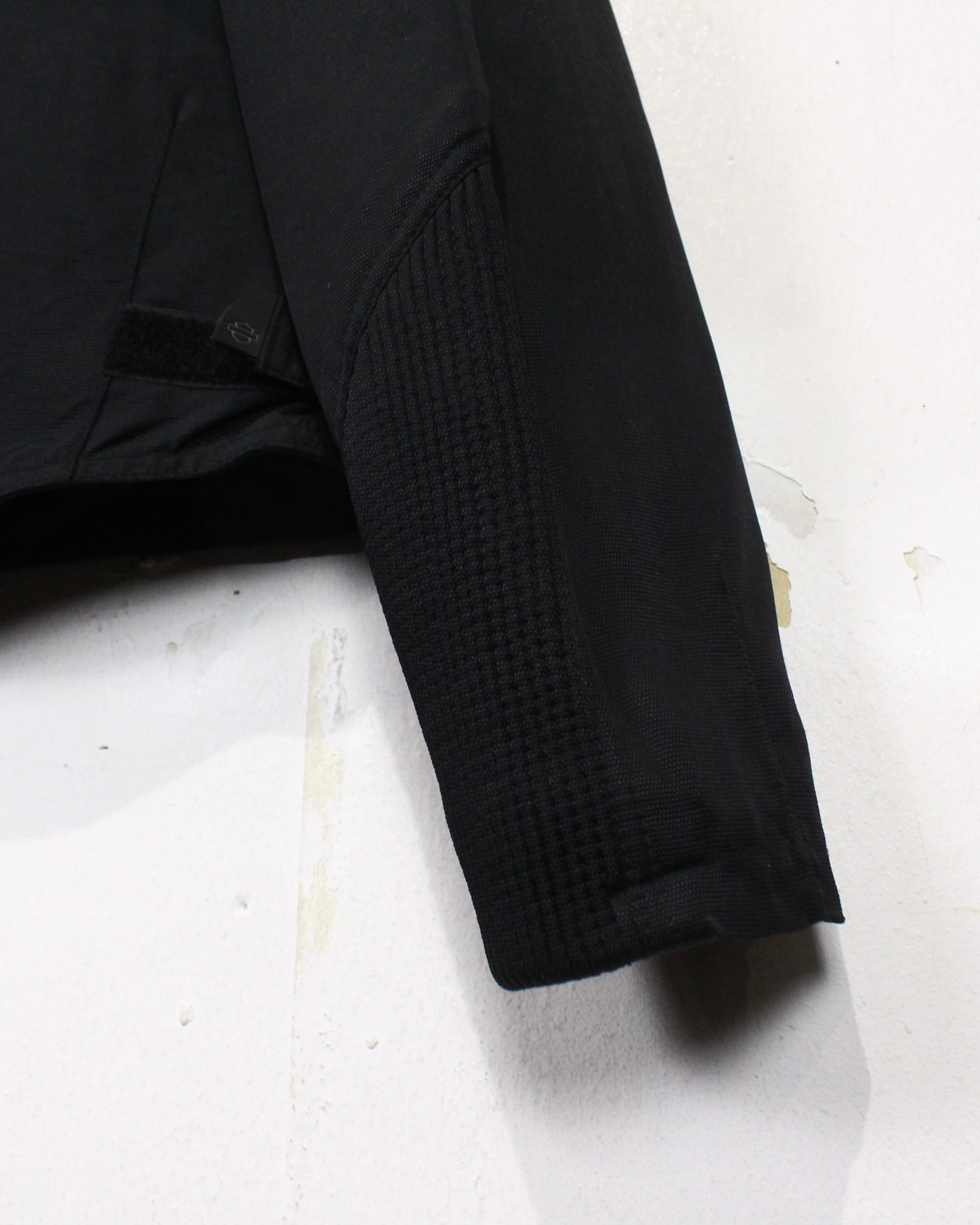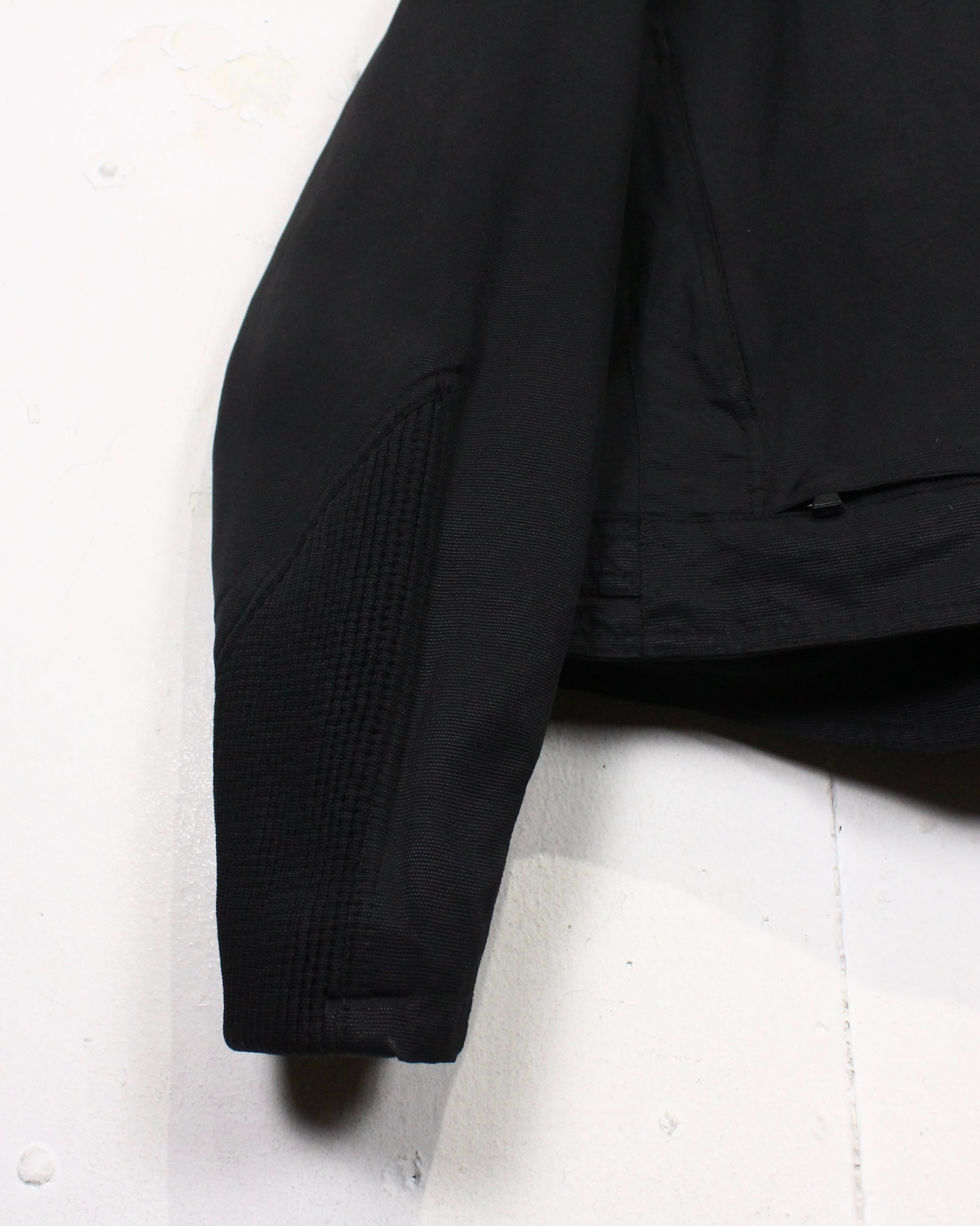 ハリのあるブラックのボディに、前たて横や、裾付近に隠しポケット、袖には強化の為の切り替えを施した、レーシングジャケットならではのギミックに服好きの心踊る1着。