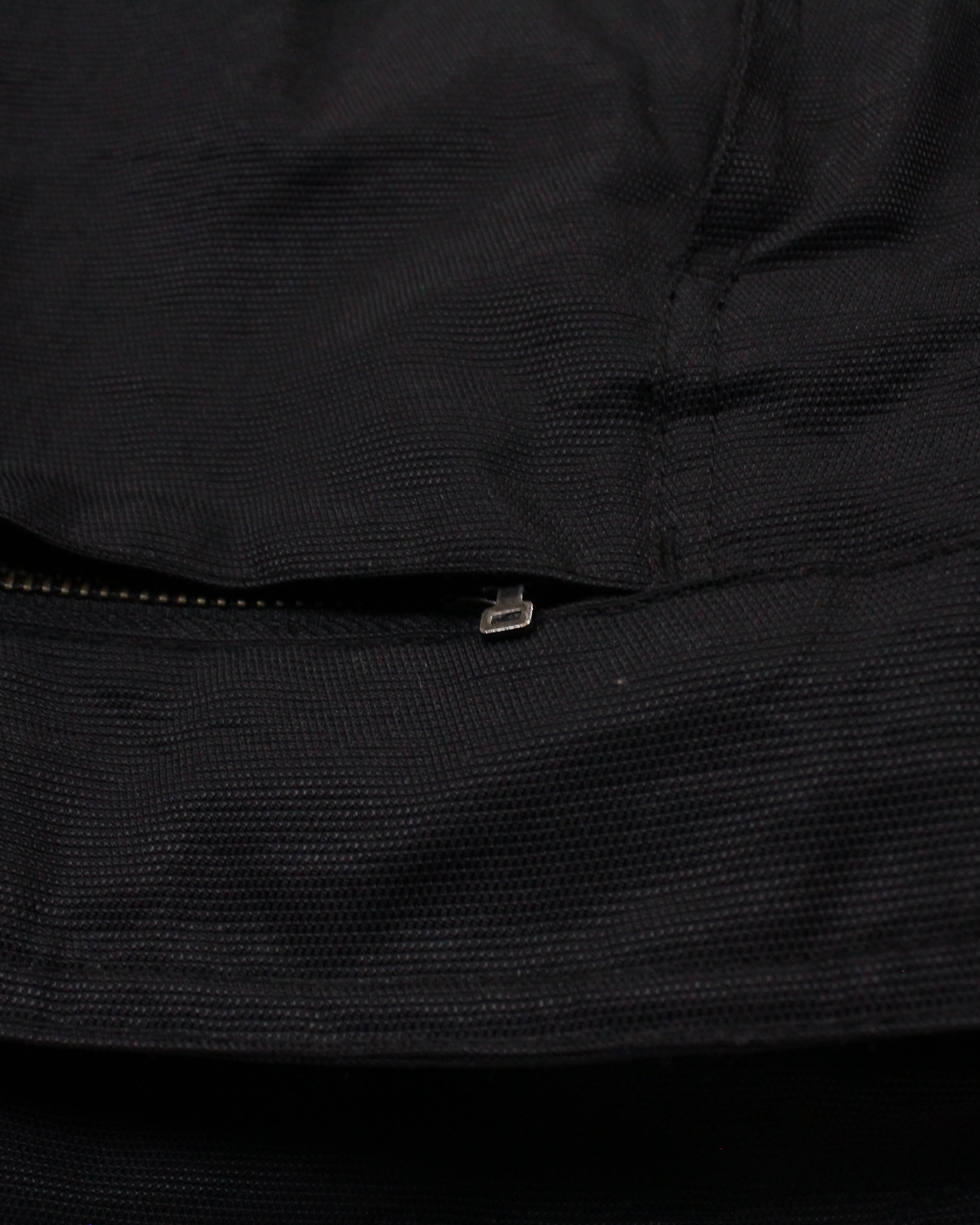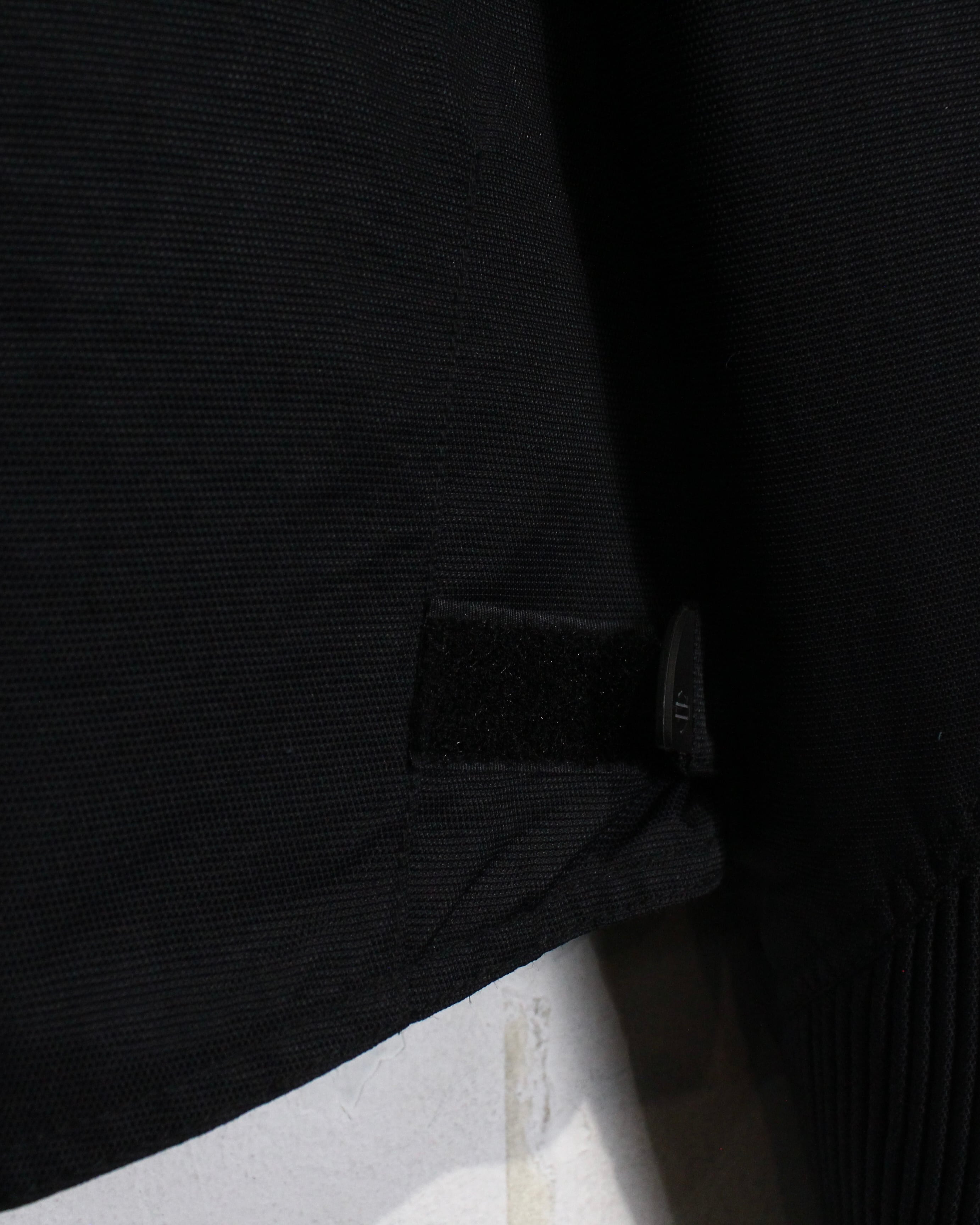 裾両サイドにはベルクロがあり、シルエットに変化を加えた着こなしも可能。見た目から放たれるデザイン性の高さはさることながら、ボディのタフな素材感や様々なギミック等により、耐久性、防風性にも優れた非常に機能的な1着となっております。