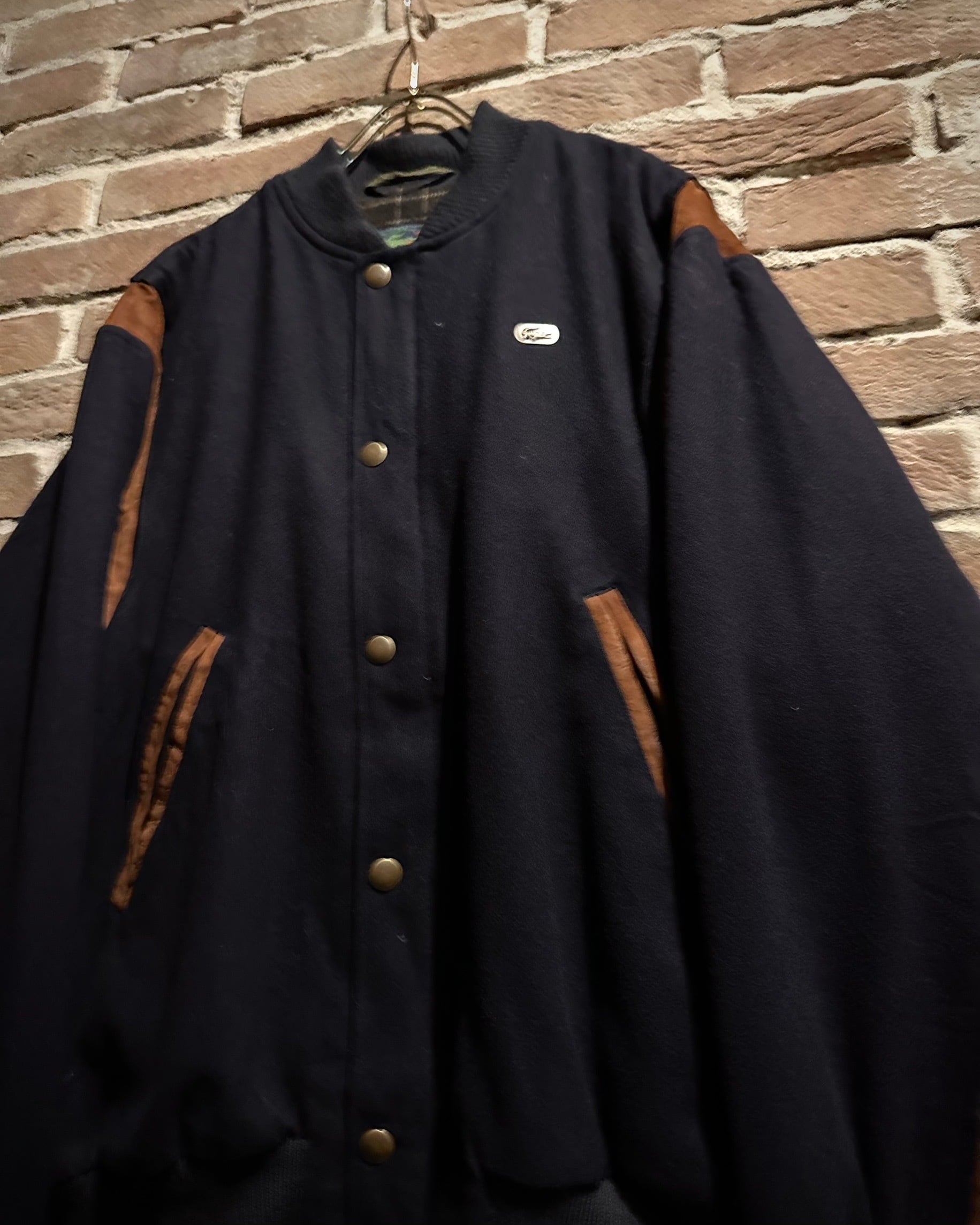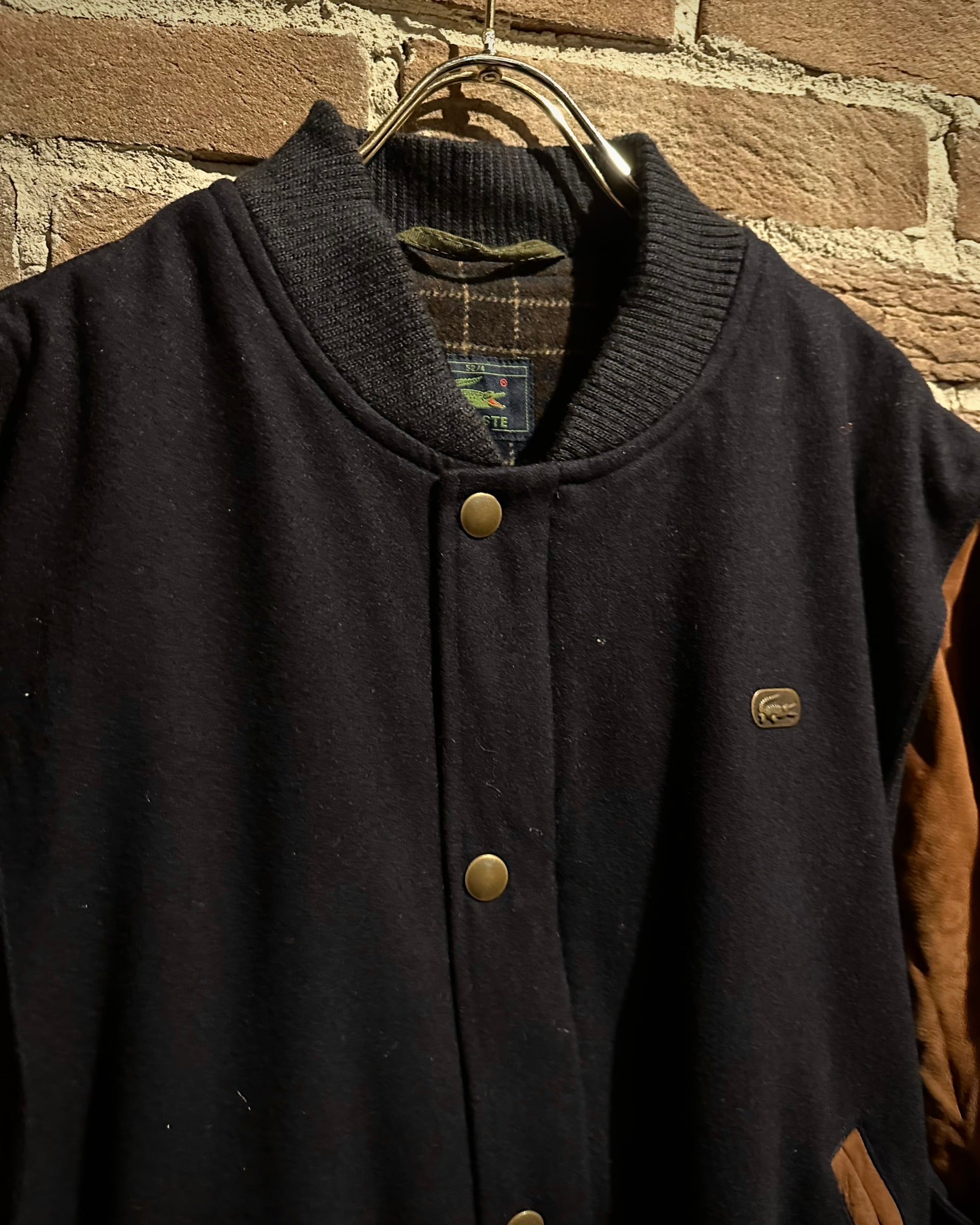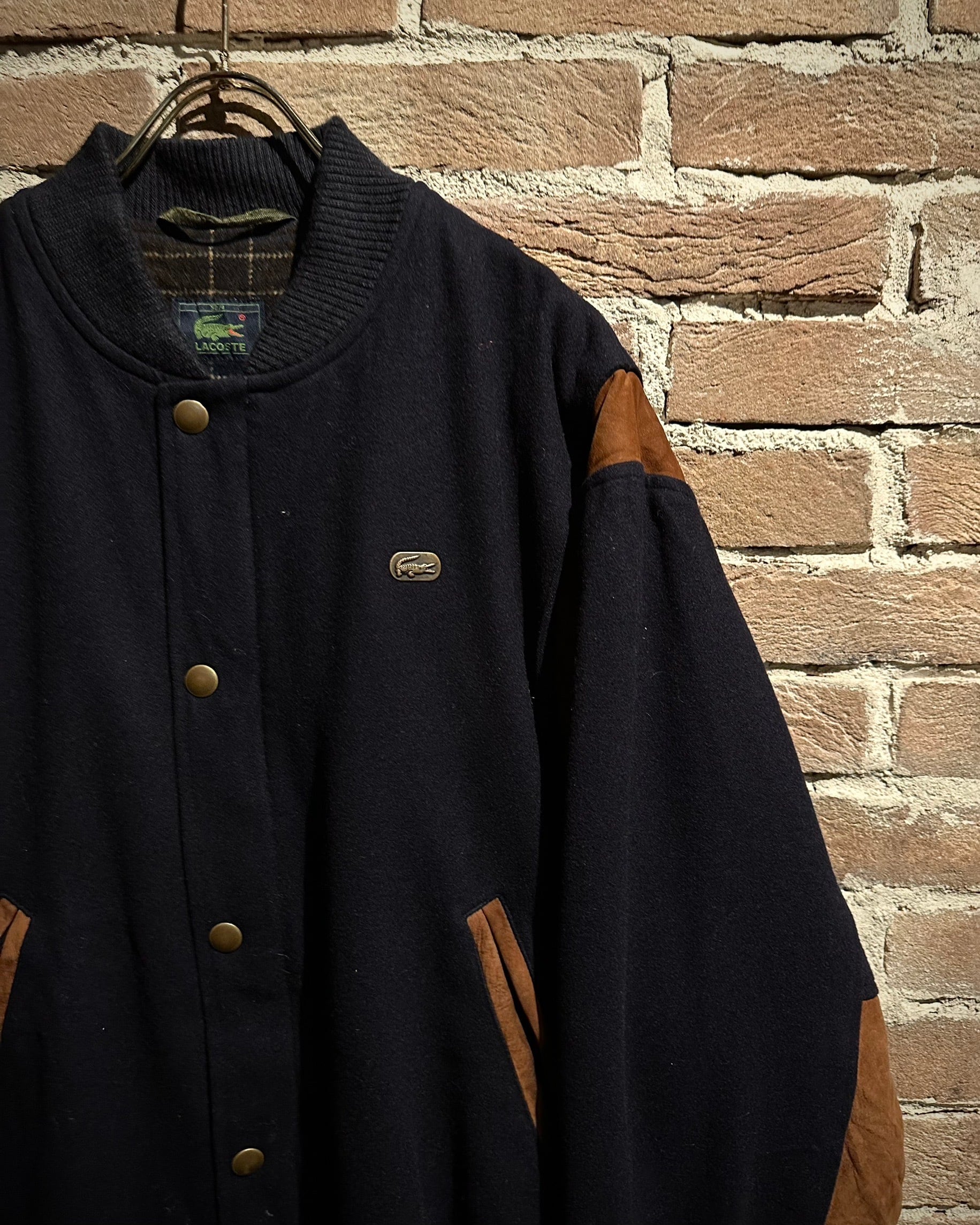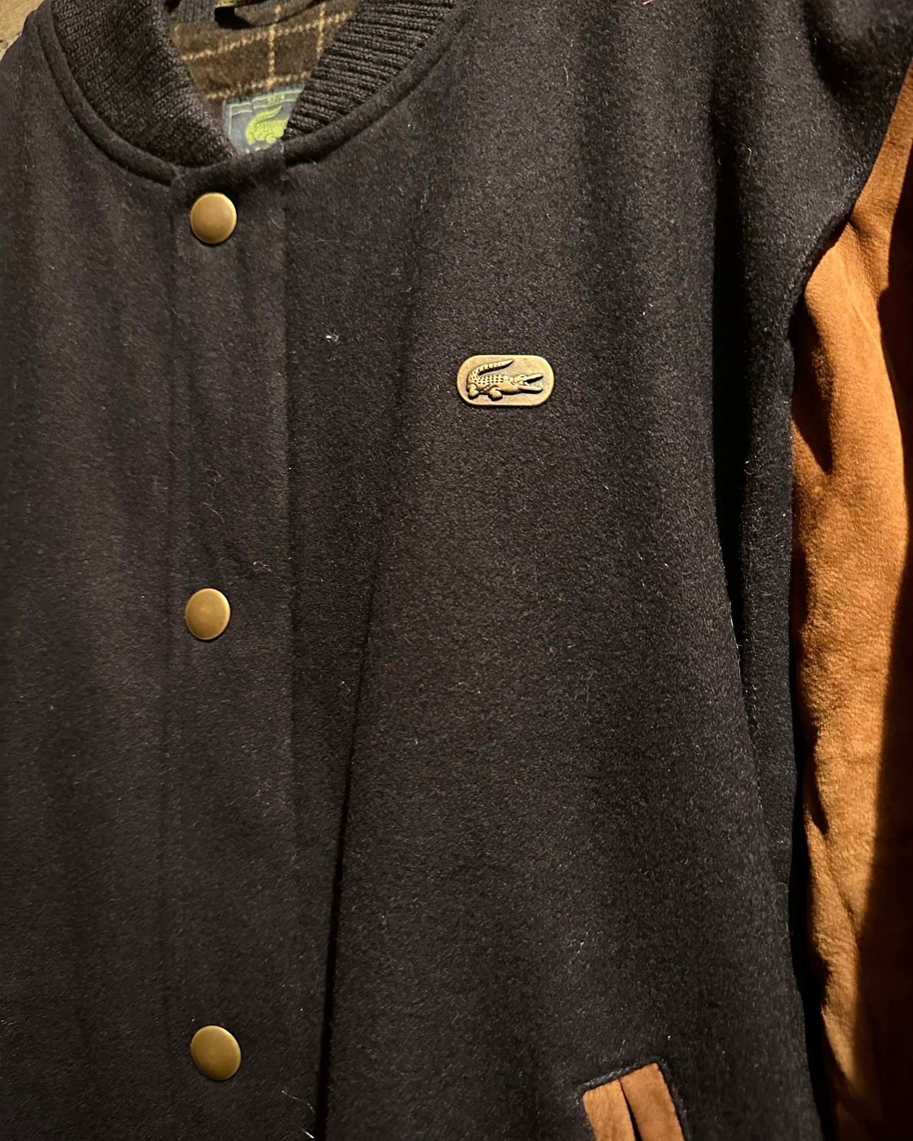 フロントはスナップボタン仕様。左胸にはシルバーのアイコニックなワニロゴを配置し、レザー切り替えと相まって、ラコステらしい上品さと高級感をしっかりと感じさせます。