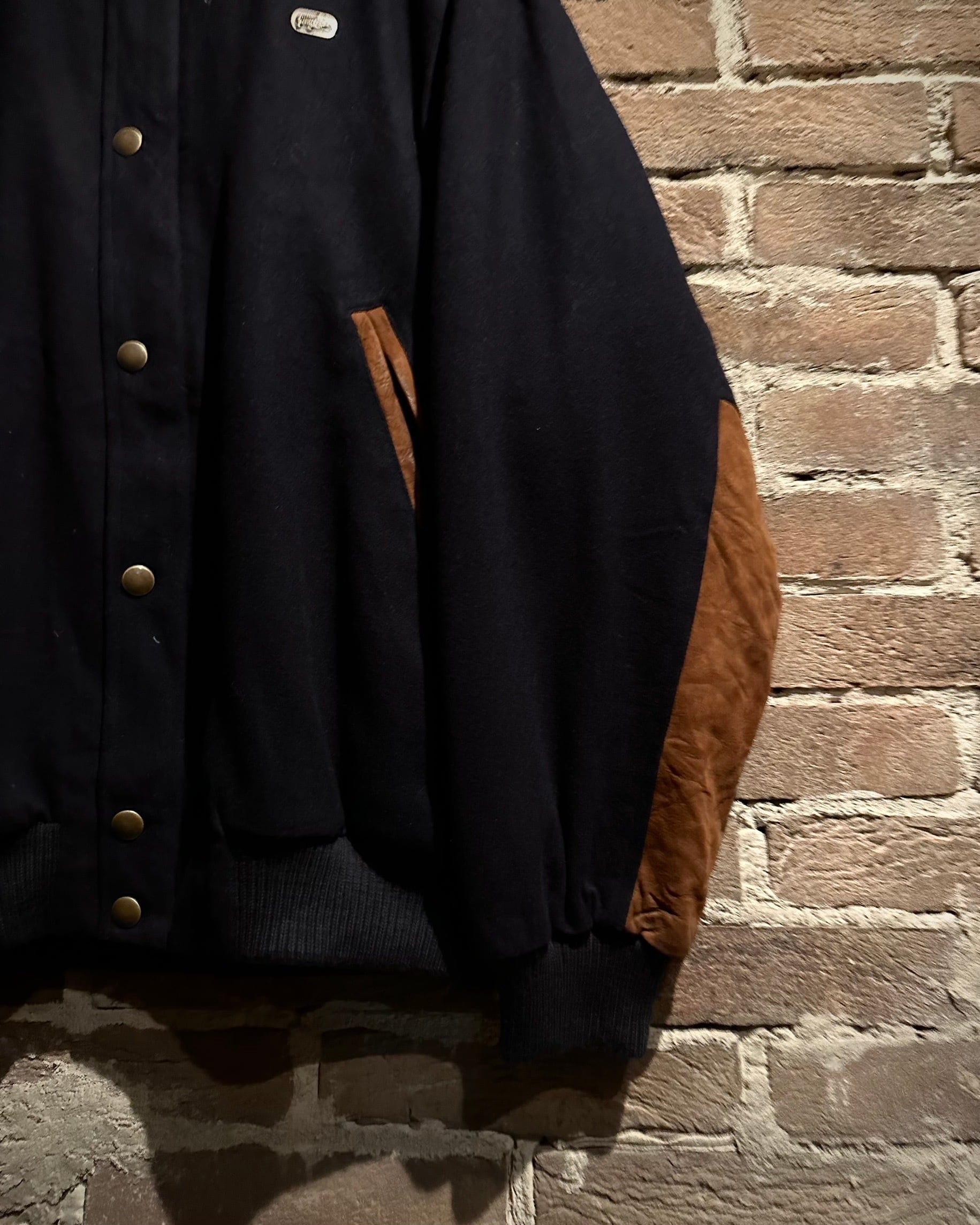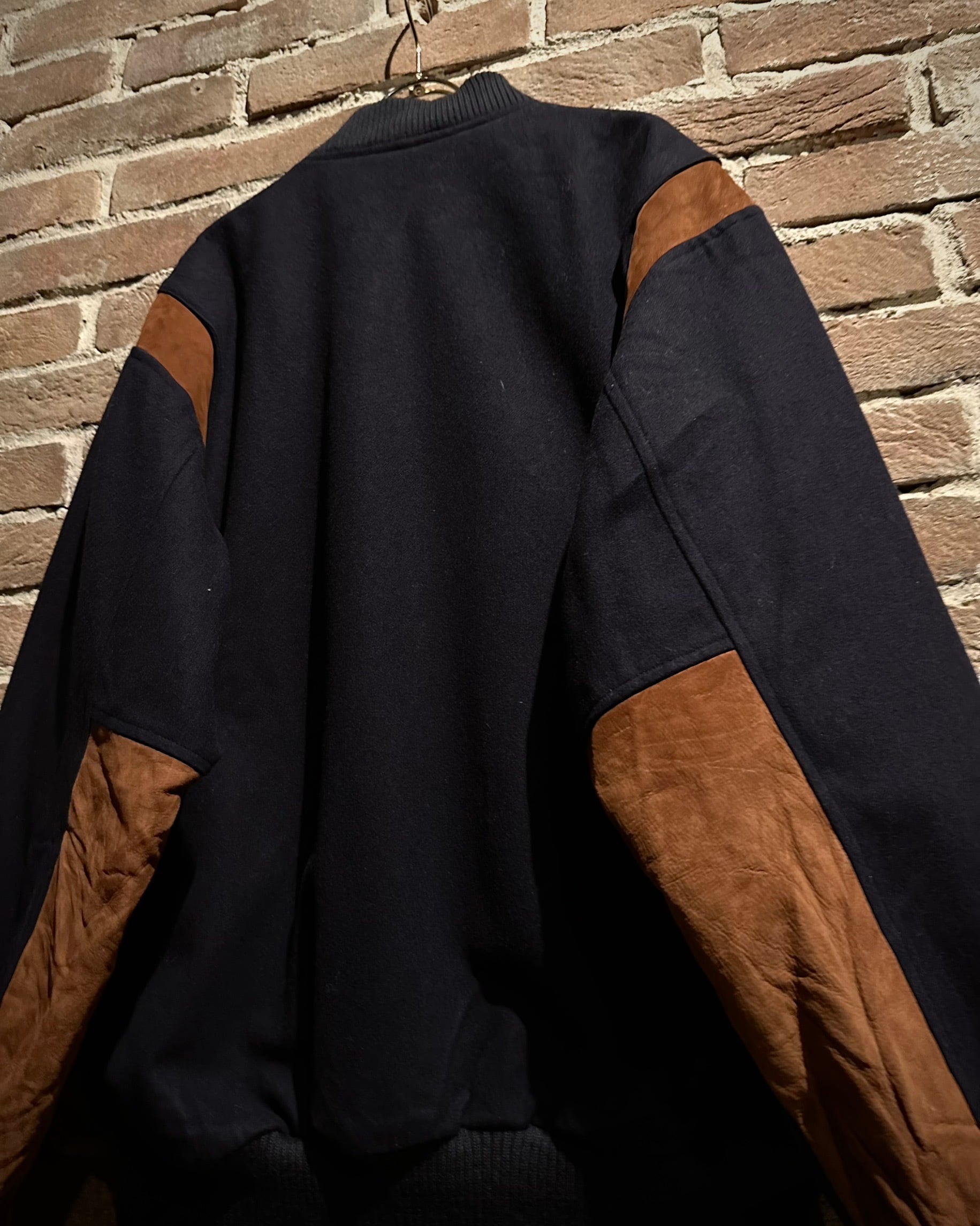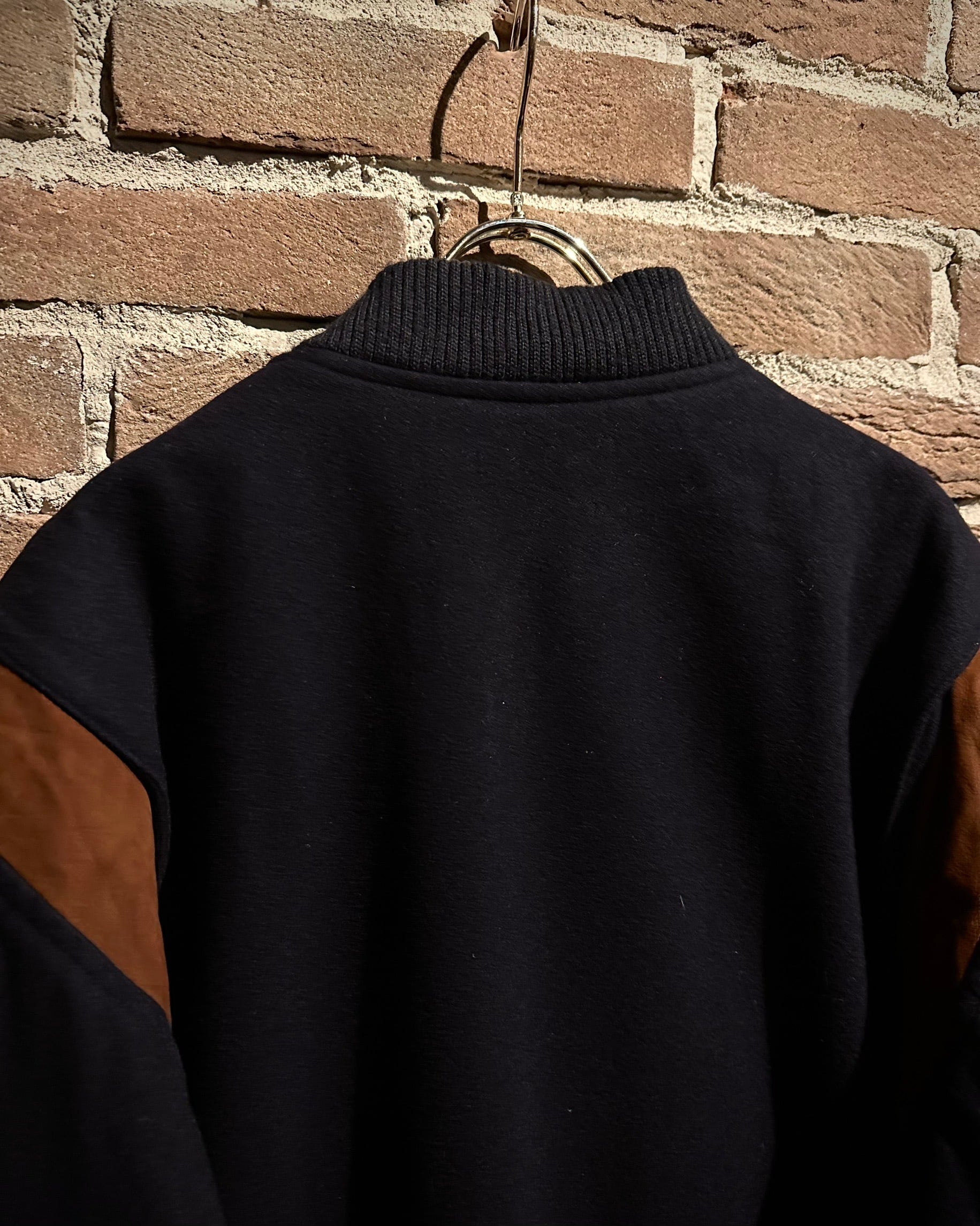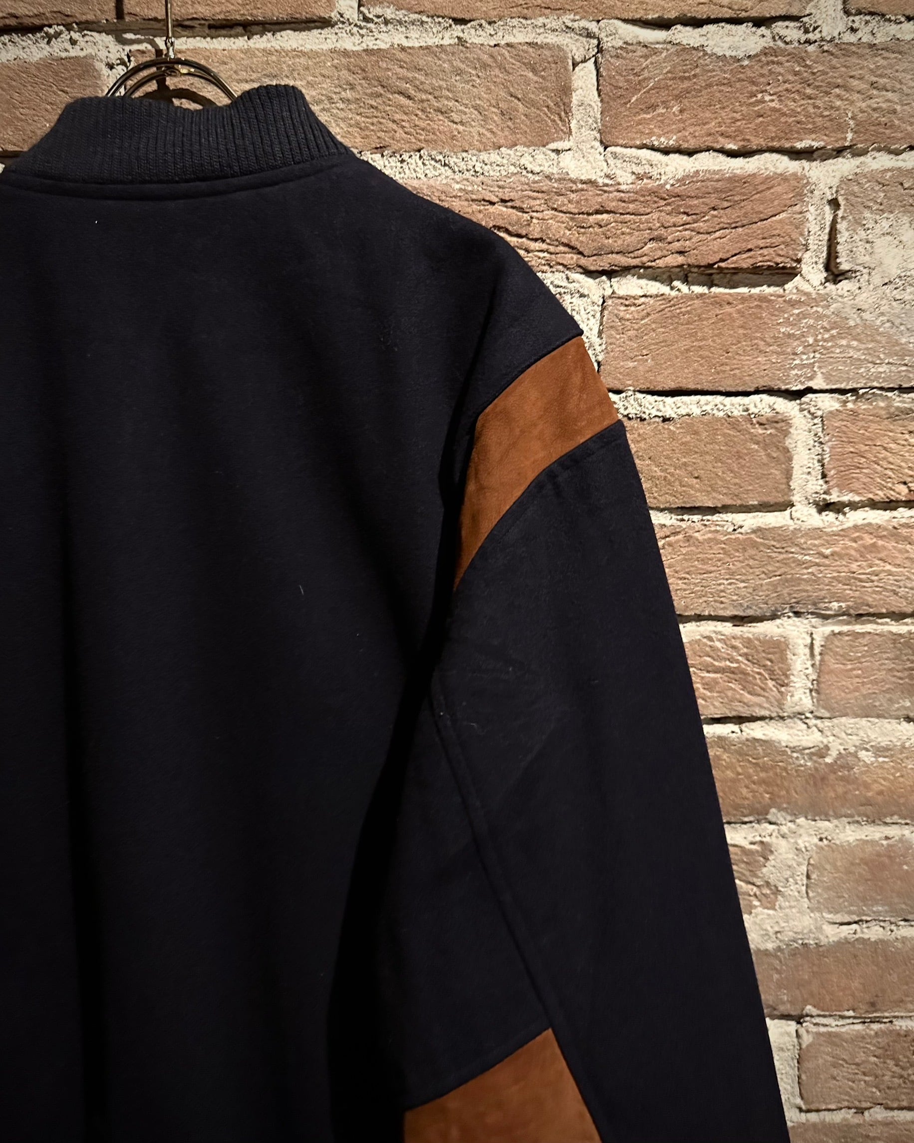 目の詰まった上質なウールファブリックをボディに採用し、ショルダーからアームにかけてブラウンレザーで切り替えたブルゾンタイプのジャケット。