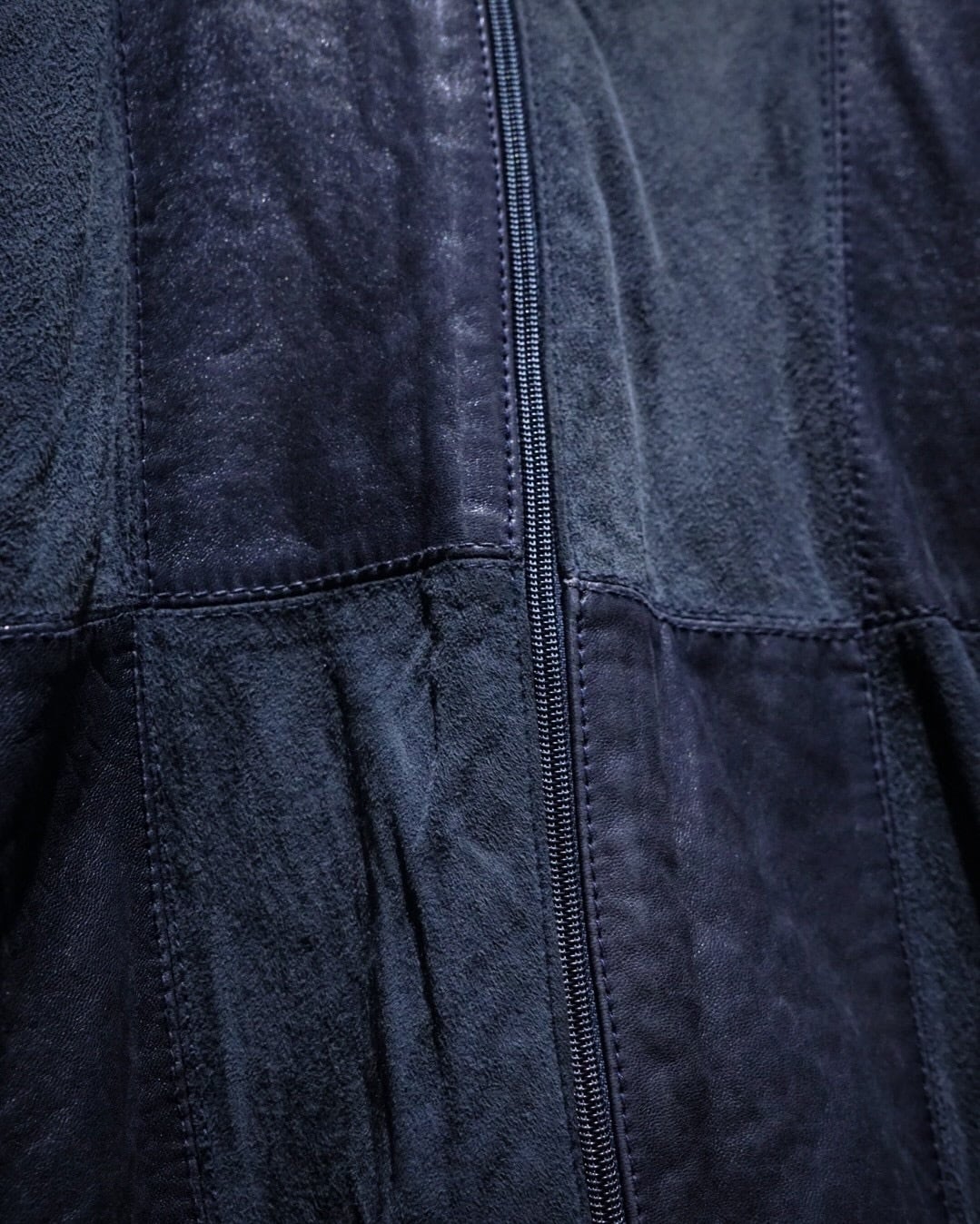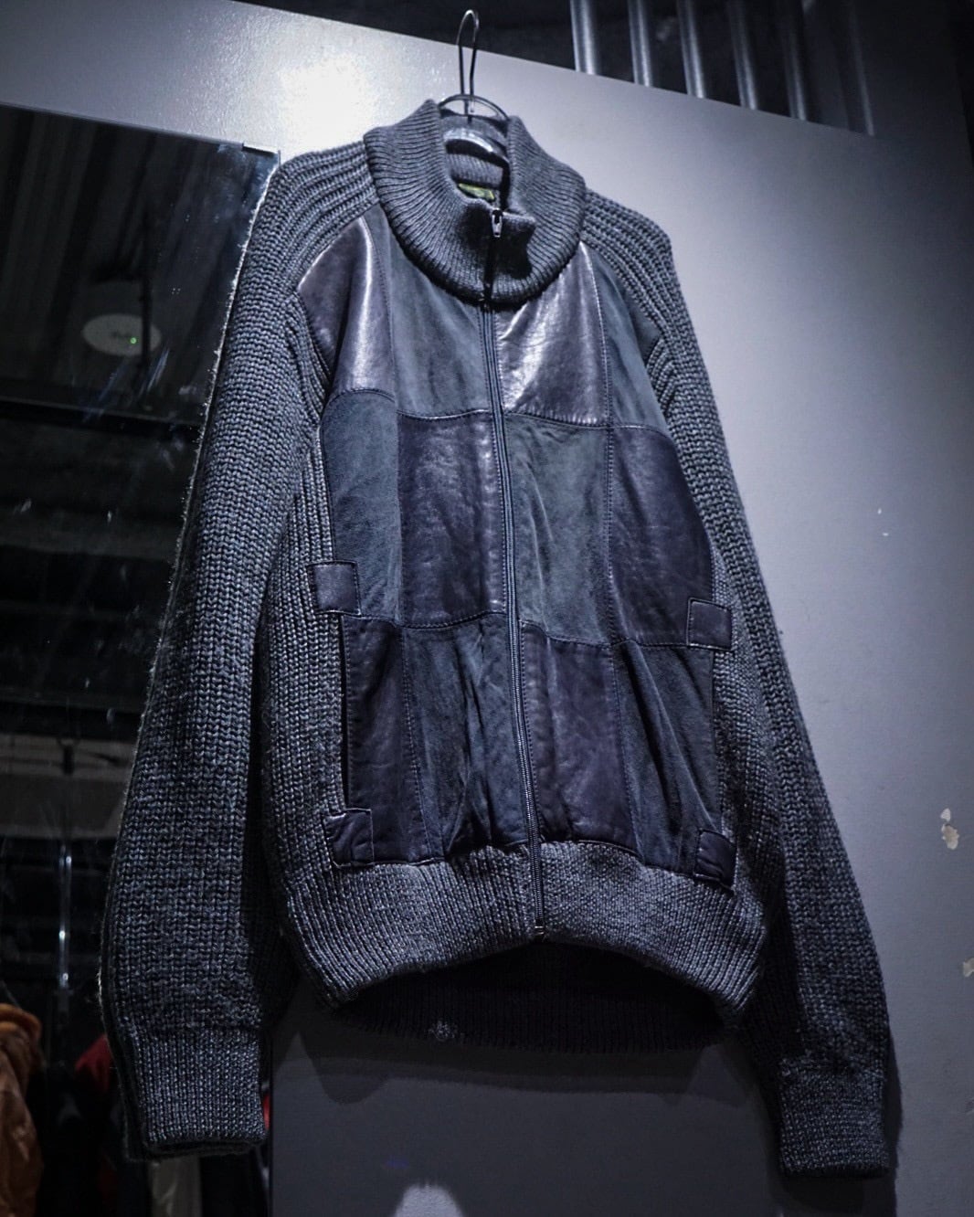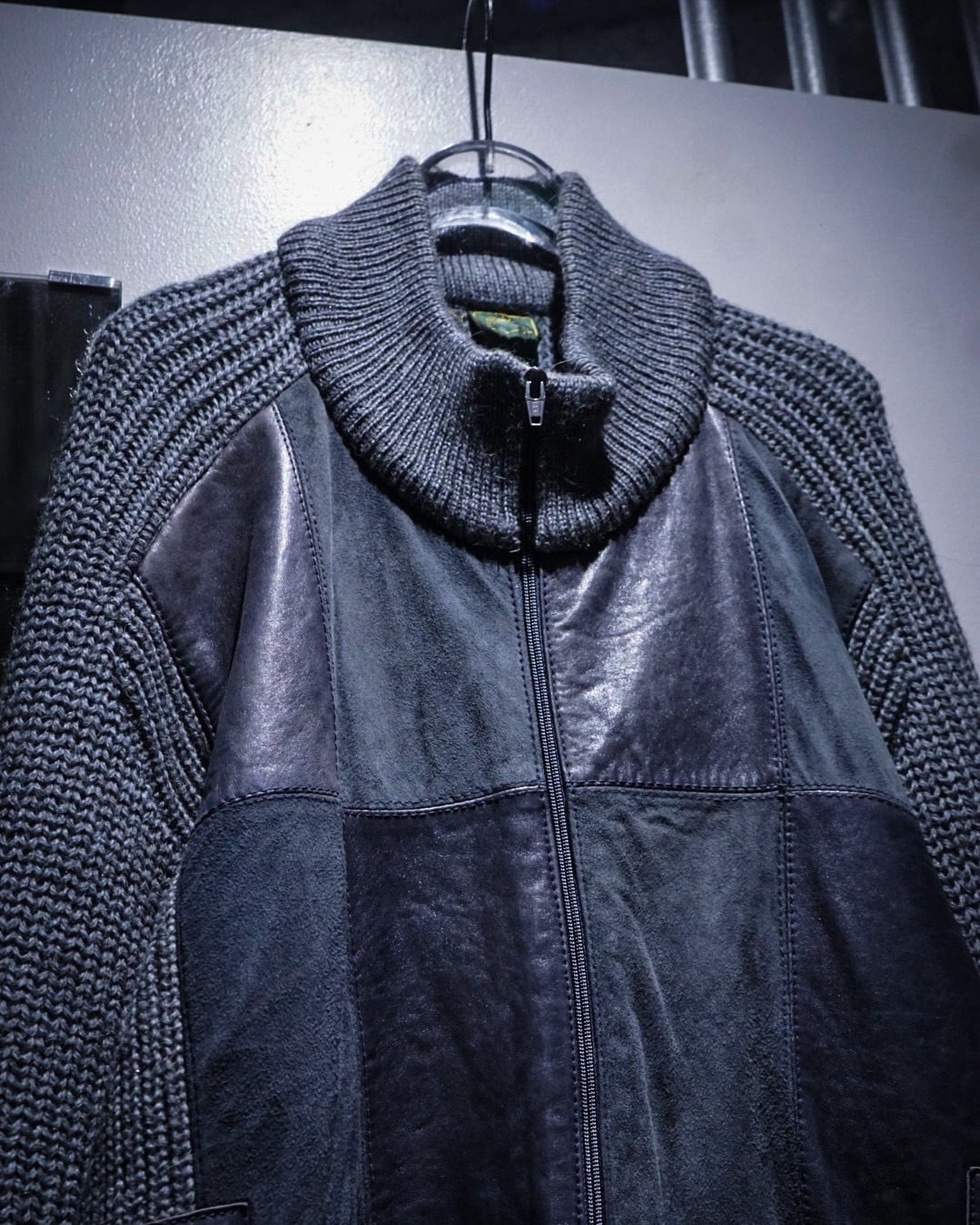 肉感のあるグレーのニットをボディのベースに、フロントにはモチモチとした極上のラムレザーを切り替えたドライバーズニット。