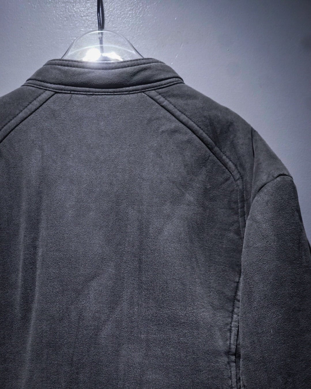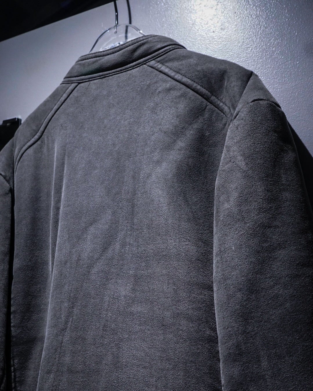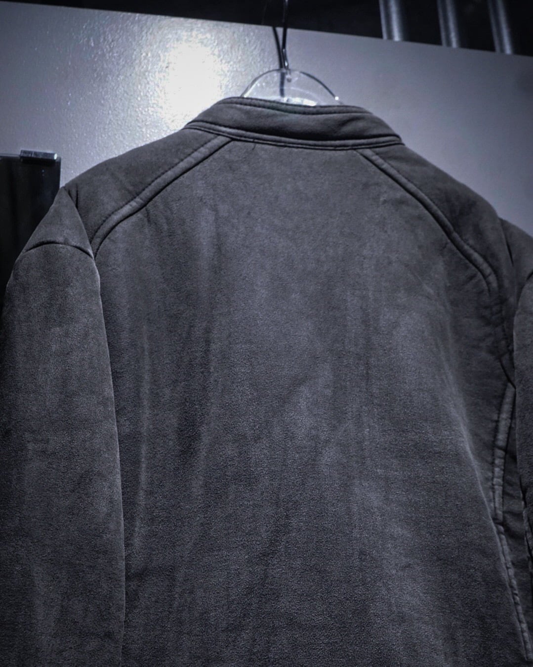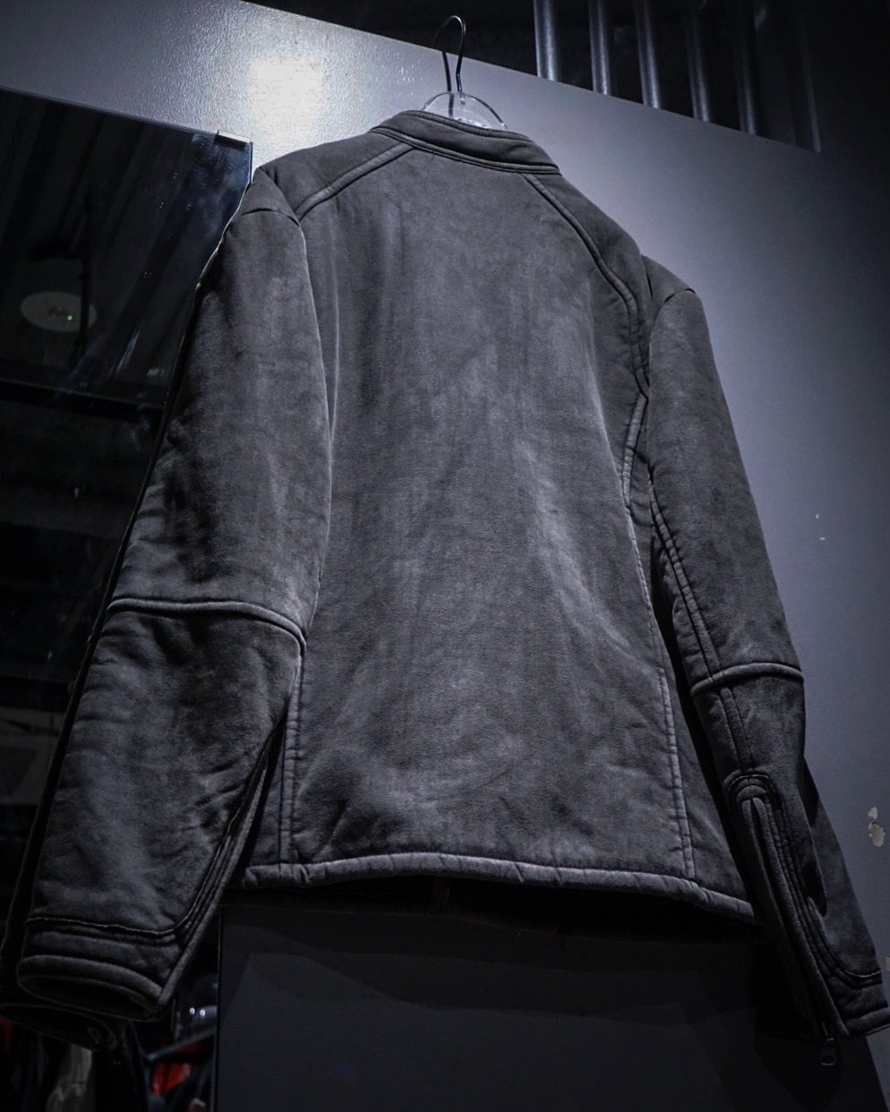 ムートンジャケットでこの型は非常に珍しいですね。フェイクムートンならではのボリューム感とライダースのスタイリッシュな印象が見事に調和。そしてフェードグレーのカラーリングと、エッジの効いた切り替えによる立体的なルックスも素晴らしい、、、