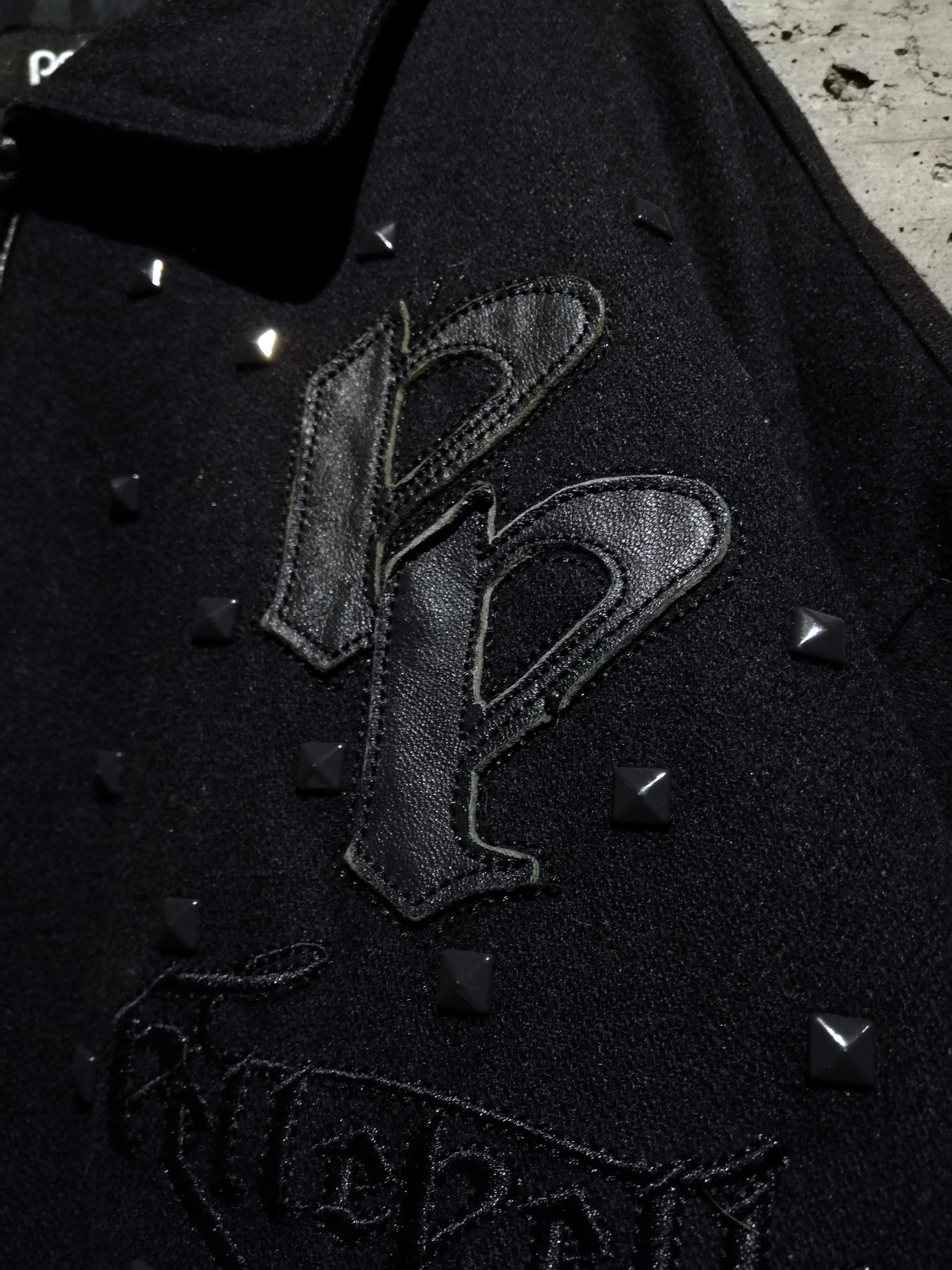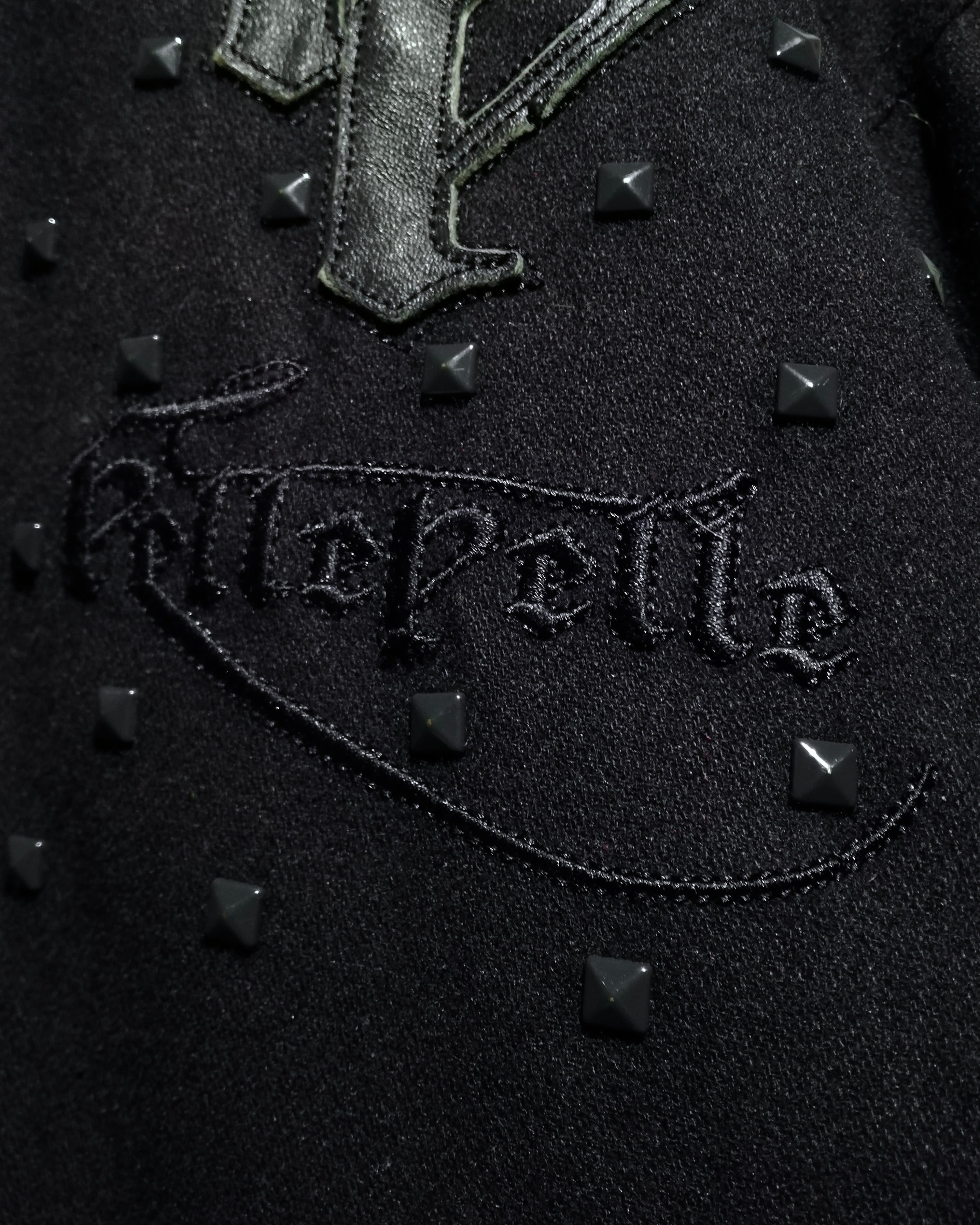 フロント、背面には、レザーのロゴパッチと刺繍を配置。立体感のあるレザーパーツに加え、全体に散りばめられたスタッズが暖かなウールの表情に程よいエッジをプラスしています。