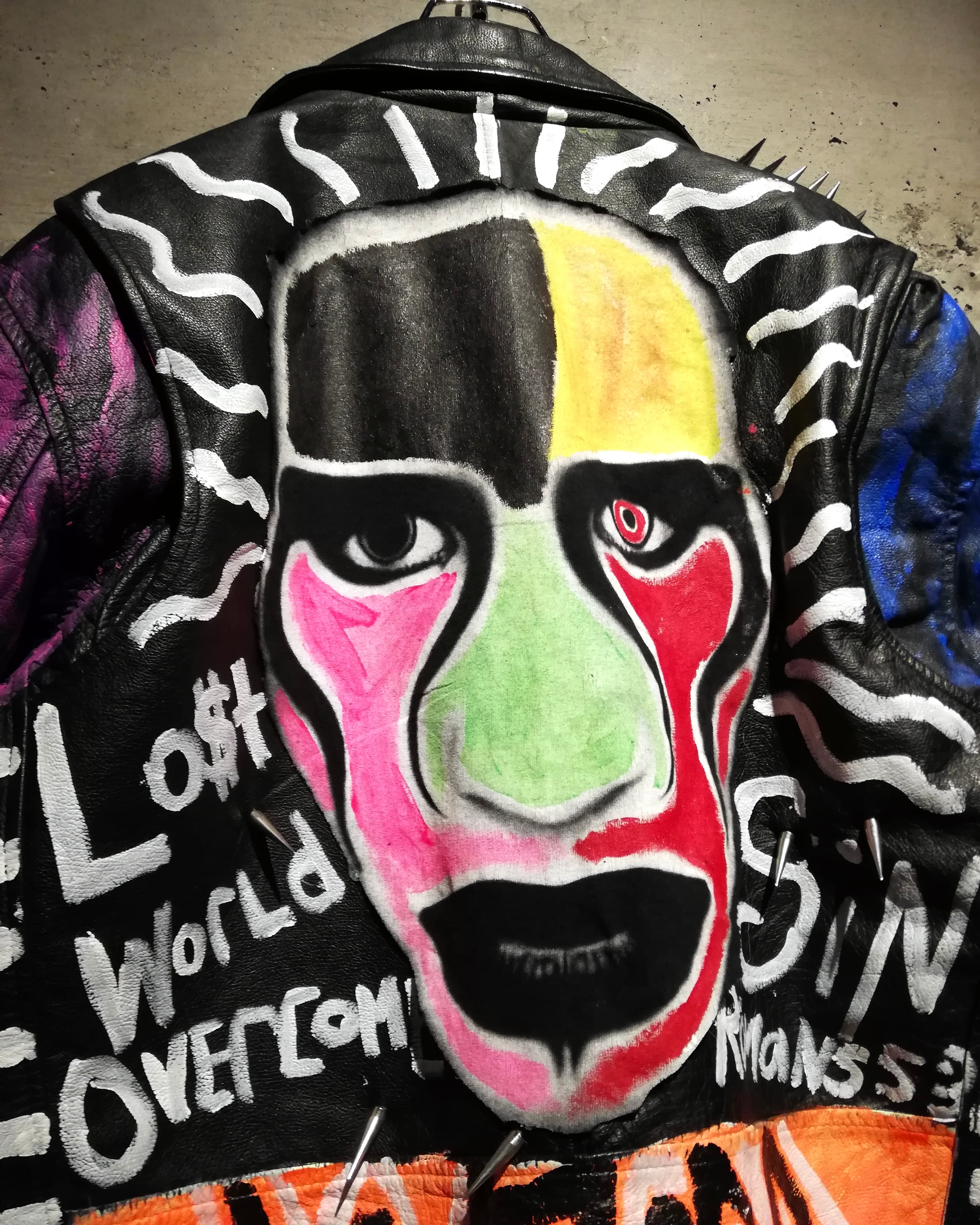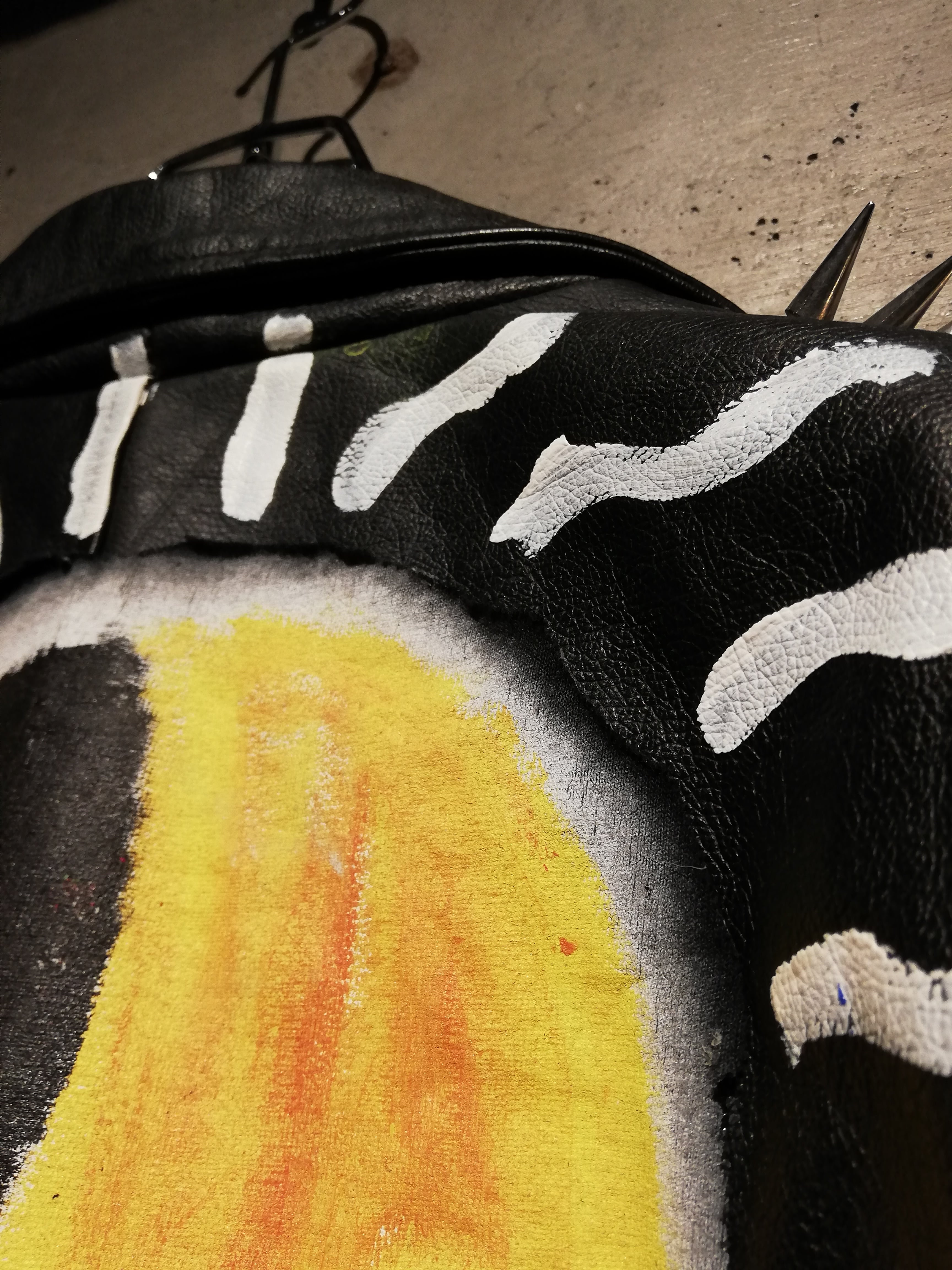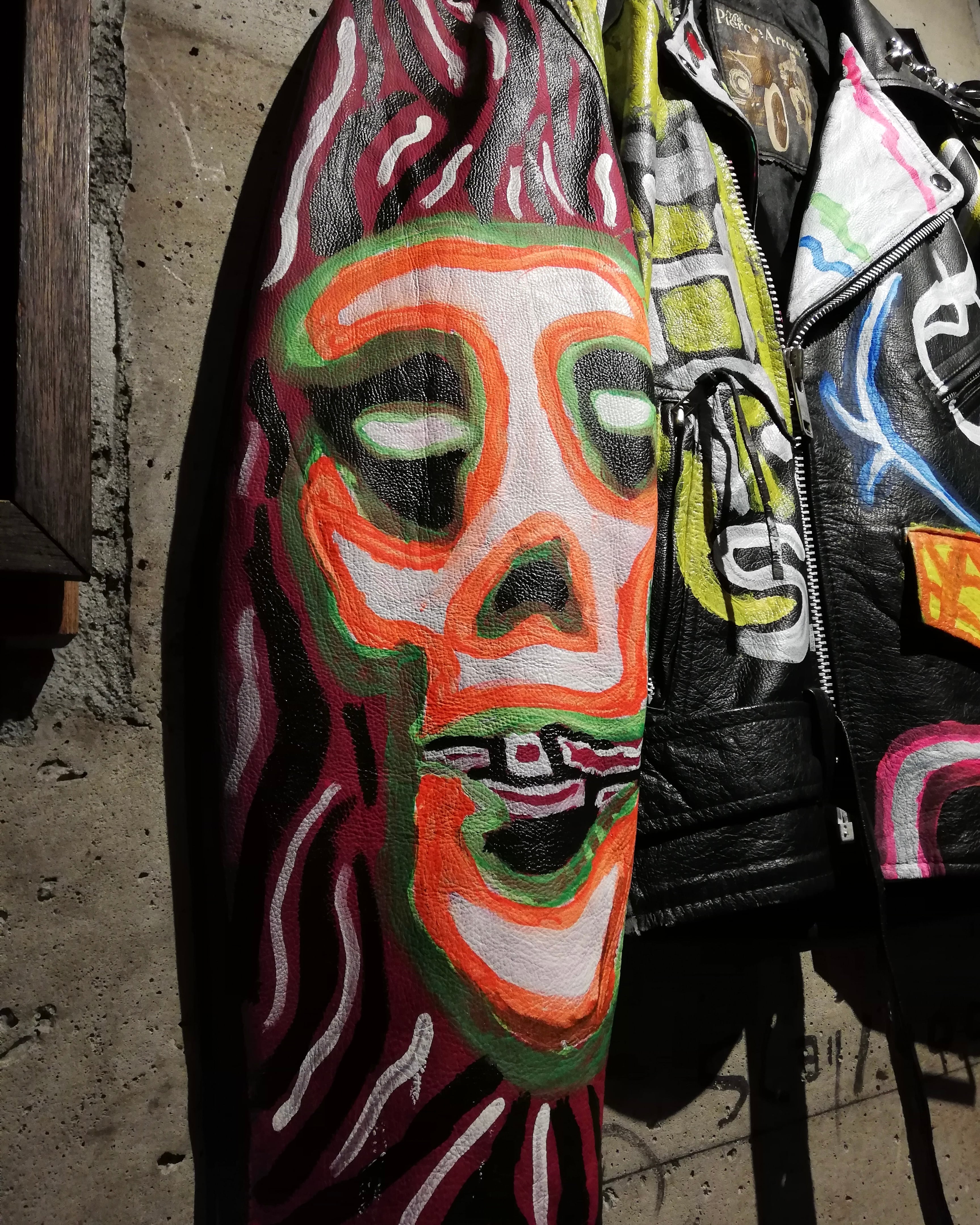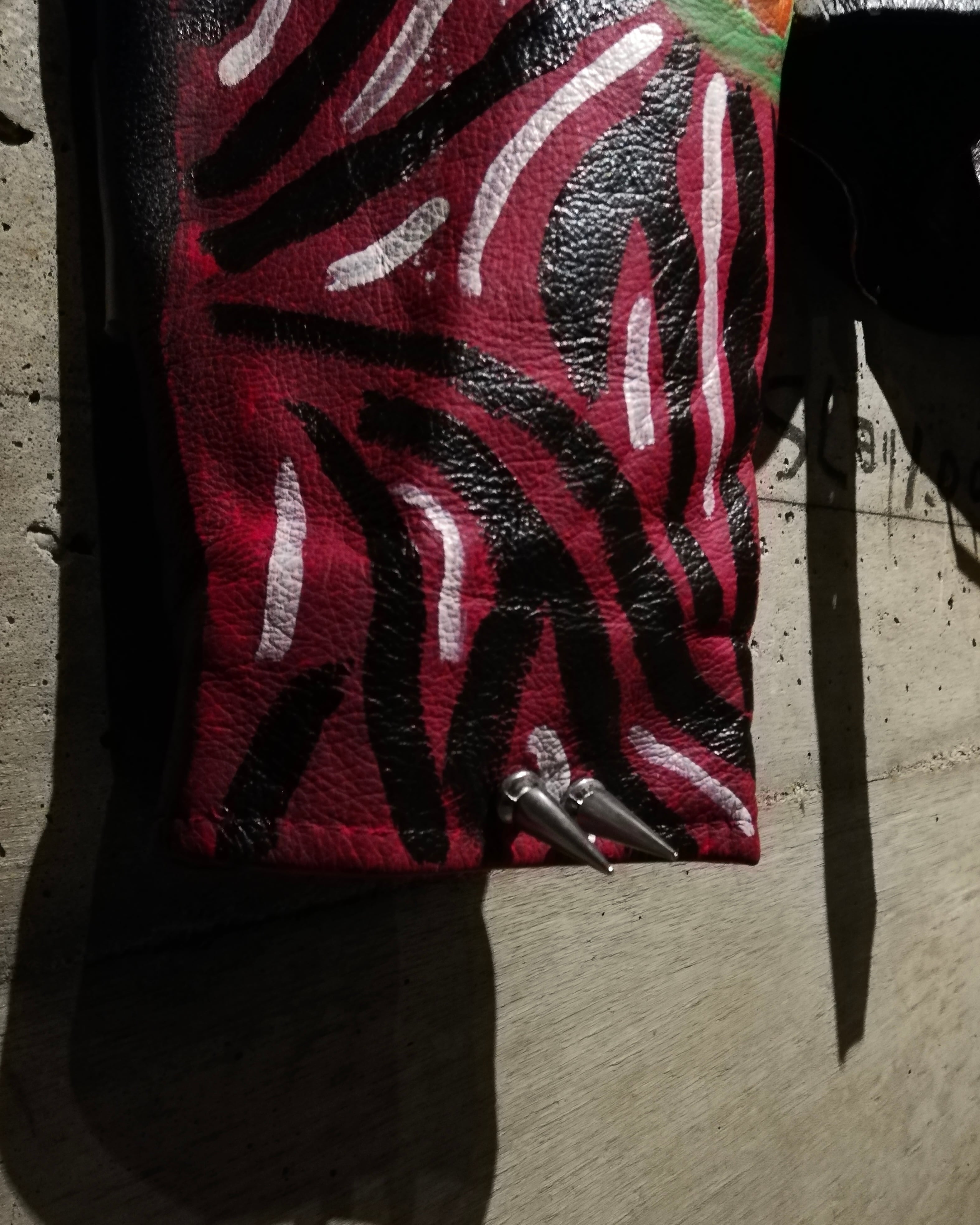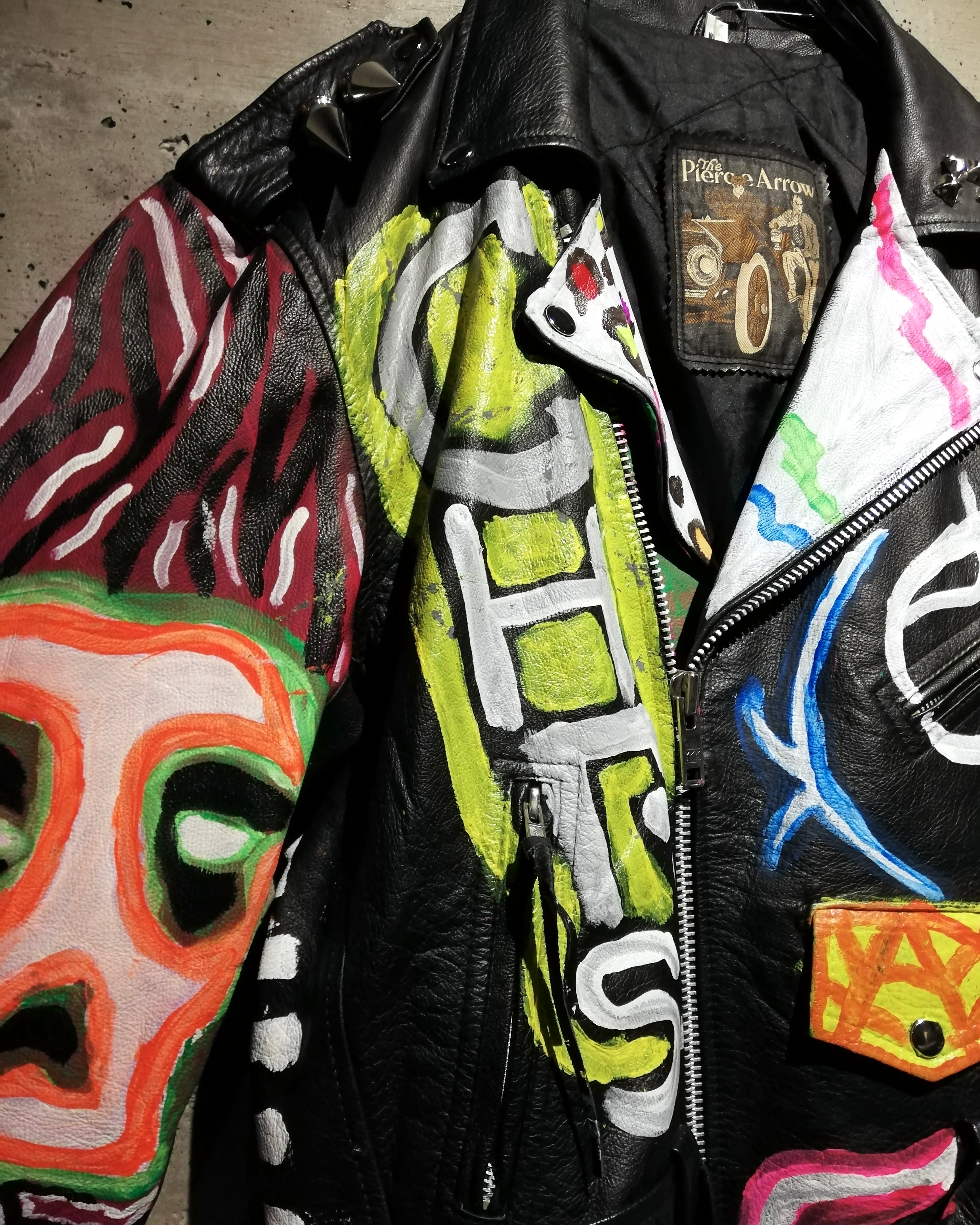 最大の特徴は、ボディ全面に施されたハンドペイントによるアートワーク。フロントからスリーブ、バックに至るまで大胆かつ鮮やかに描かれたグラフィックが圧巻で、デザインとしてはもちろん、持ち主の思想もファッションに落とし込めます。
