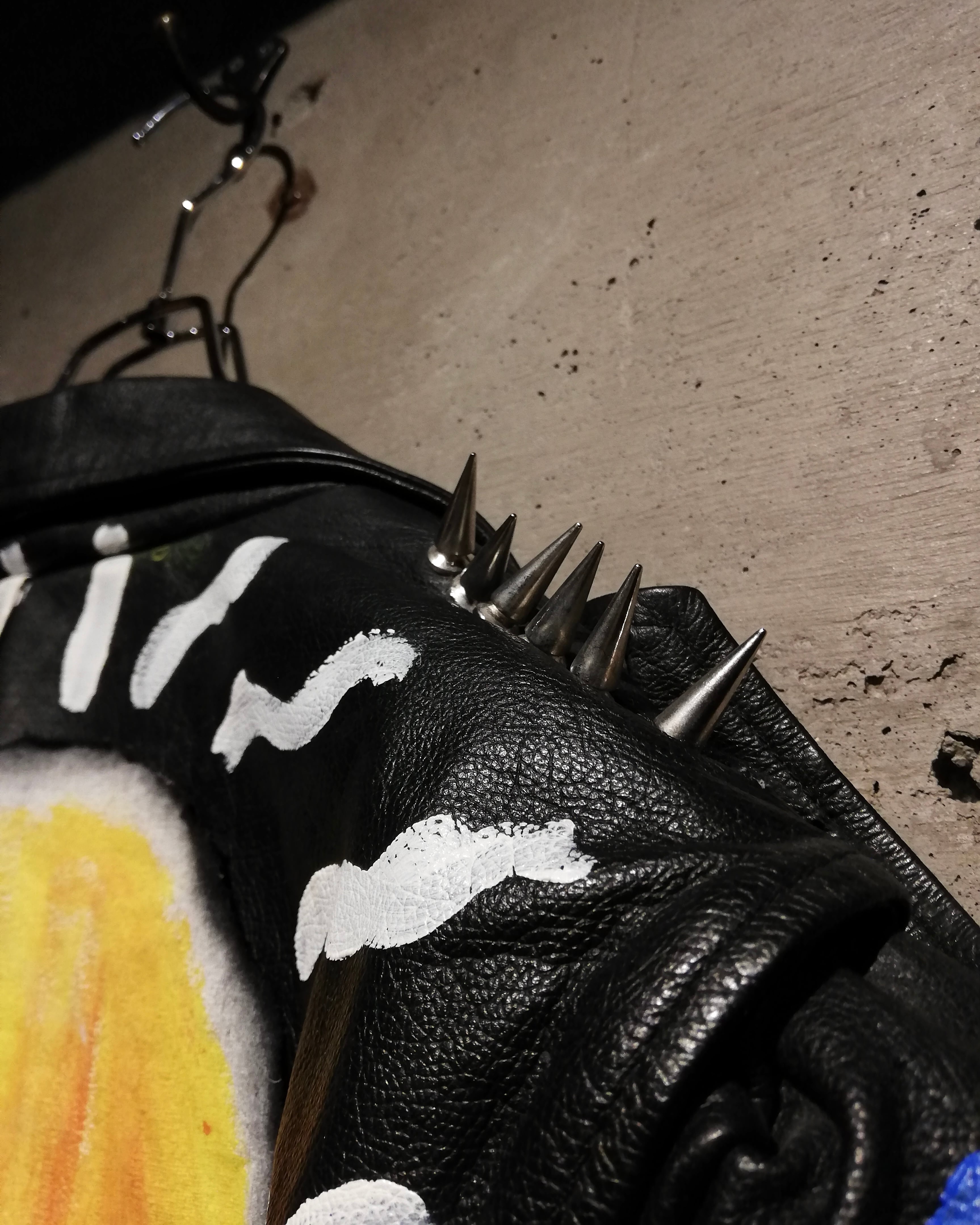 加えて、ショルダーやラペル周りにはスタッズの打ち込み。ハードコアなパンク、ロックのフレーバーを纏いつつ、抜群なインパクトを放ちます。