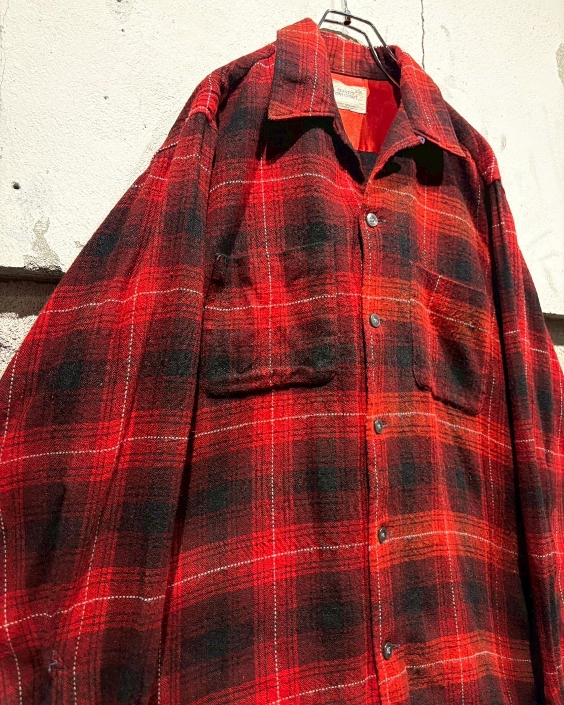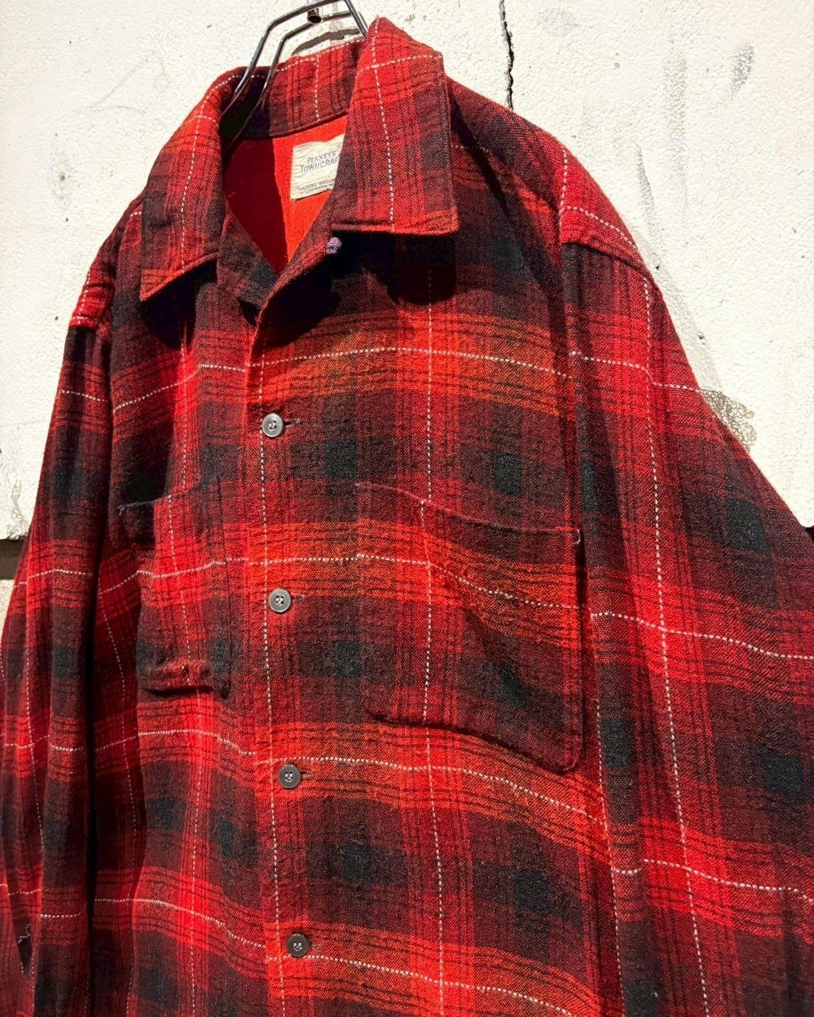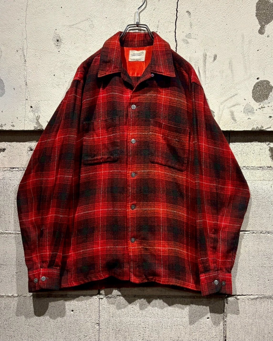 アメリカの名門ストアブランド“J.C. Penney”が展開していた“TOWNCRAFT”ラインより、赤×黒のオンブレチェックを配した50's〜60'sのオープンカラーシャツ。