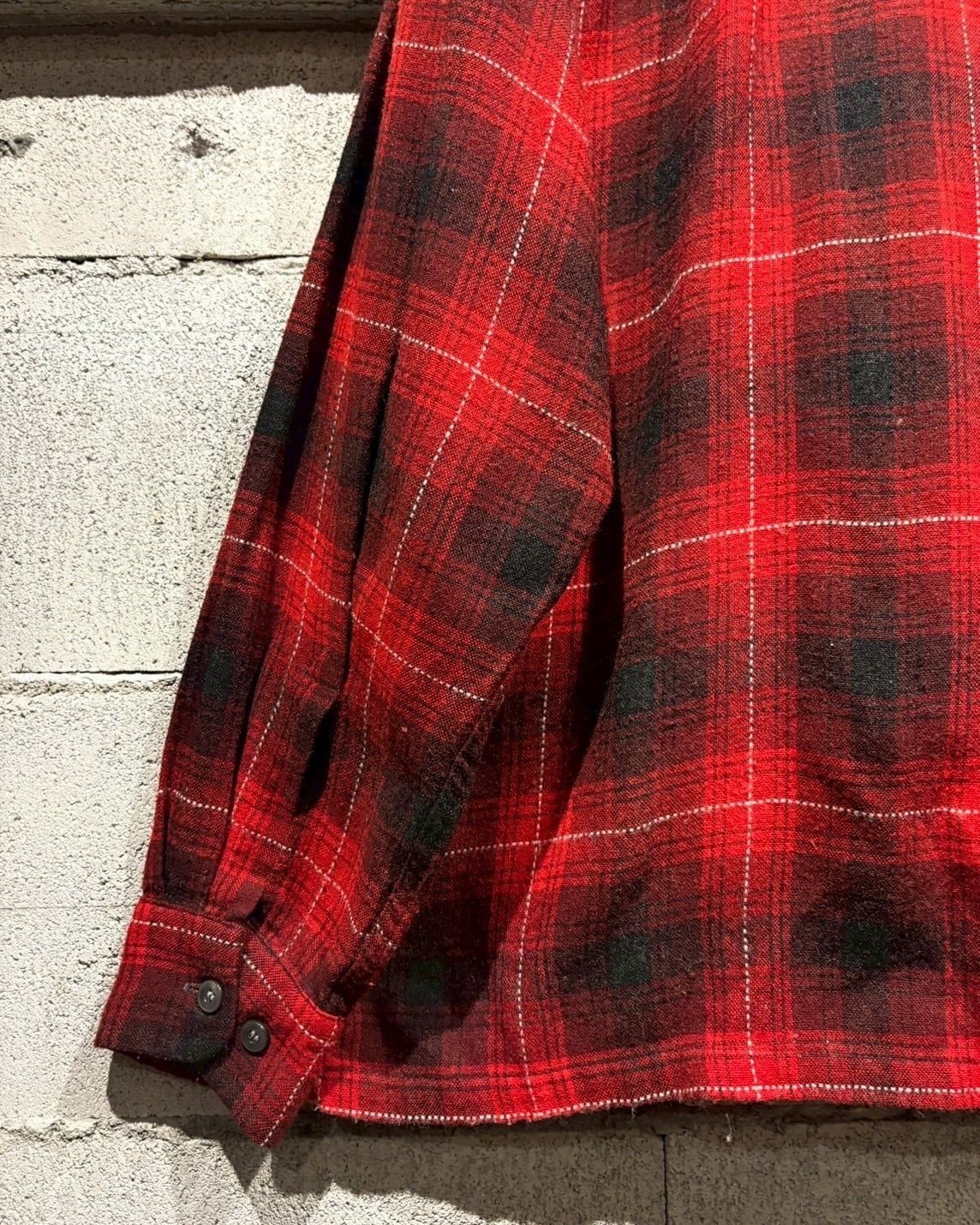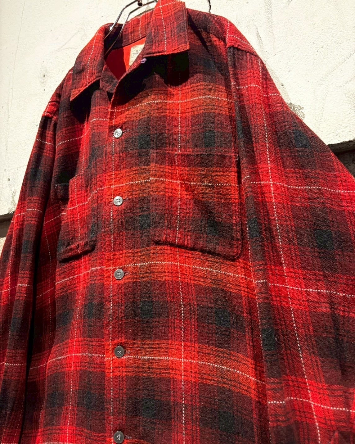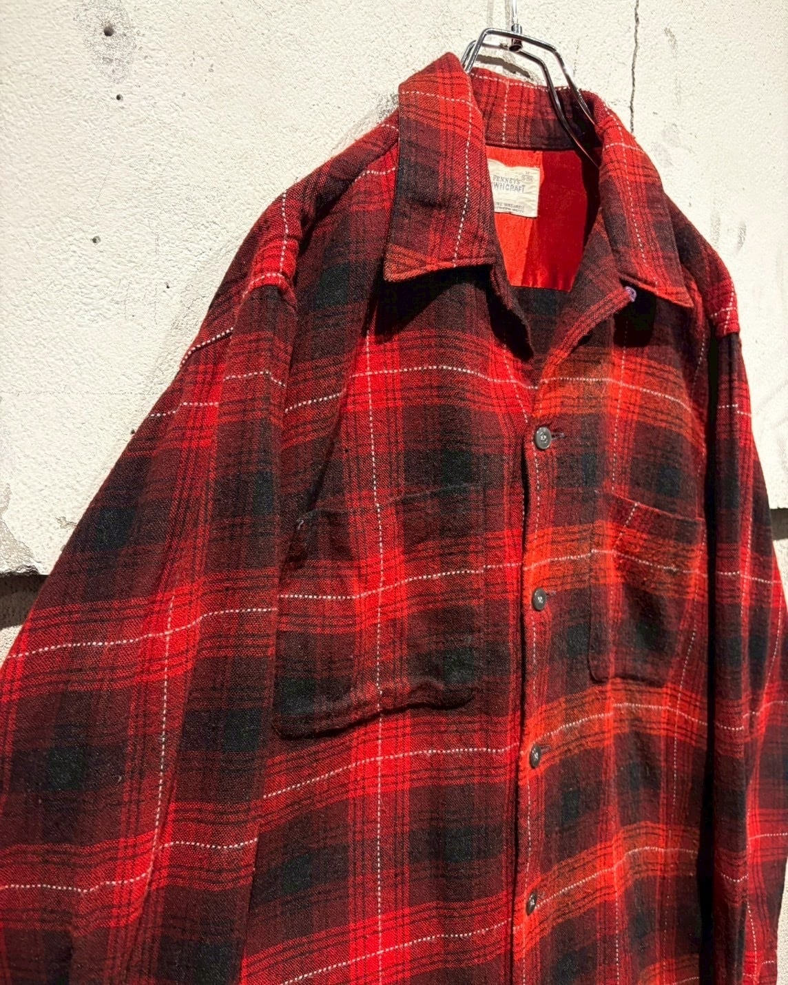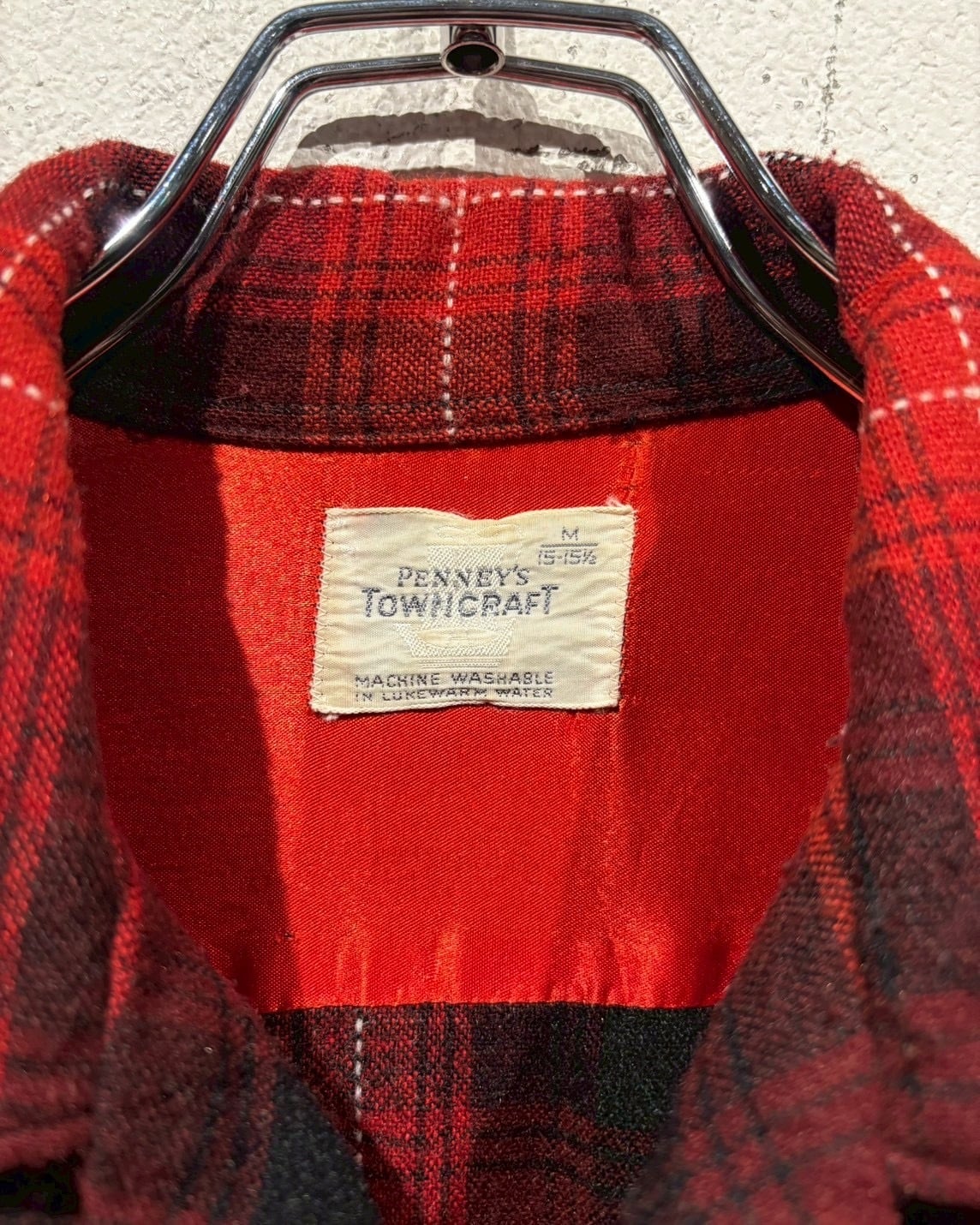 アメリカの名門ストアブランド“J.C. Penney”が展開していた“TOWNCRAFT”ラインより、赤×黒のオンブレチェックを配した50's〜60'sのオープンカラーシャツ。