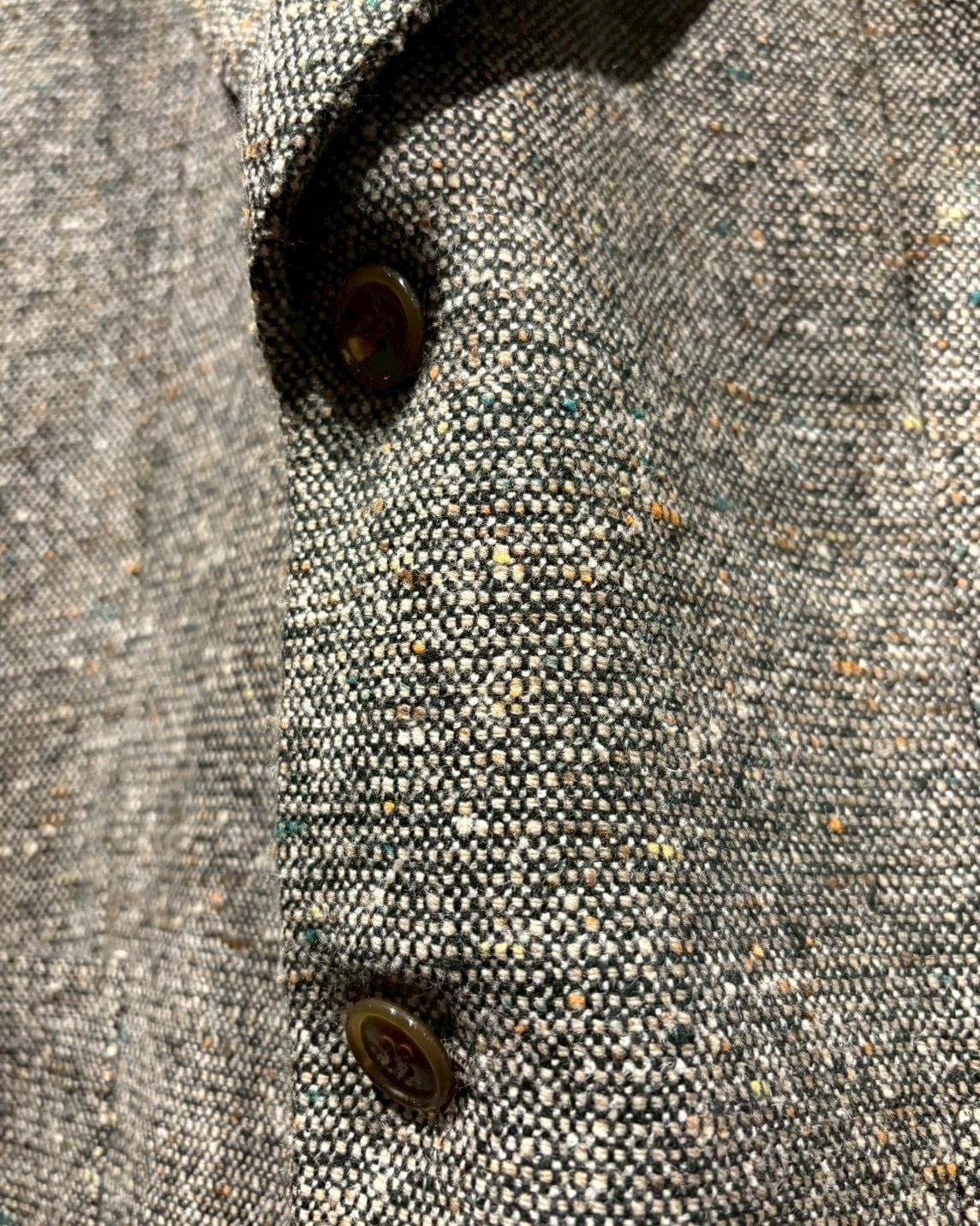 1945年イタリアで創業、イタリアのエレガンスを追求、最高級の素材を使い、職人のハンドワークにこだわったスーツで有名な"Brioni"より、クラシックな佇まいと素材の奥行きが際立つ、上質なツイードテーラードジャケット。