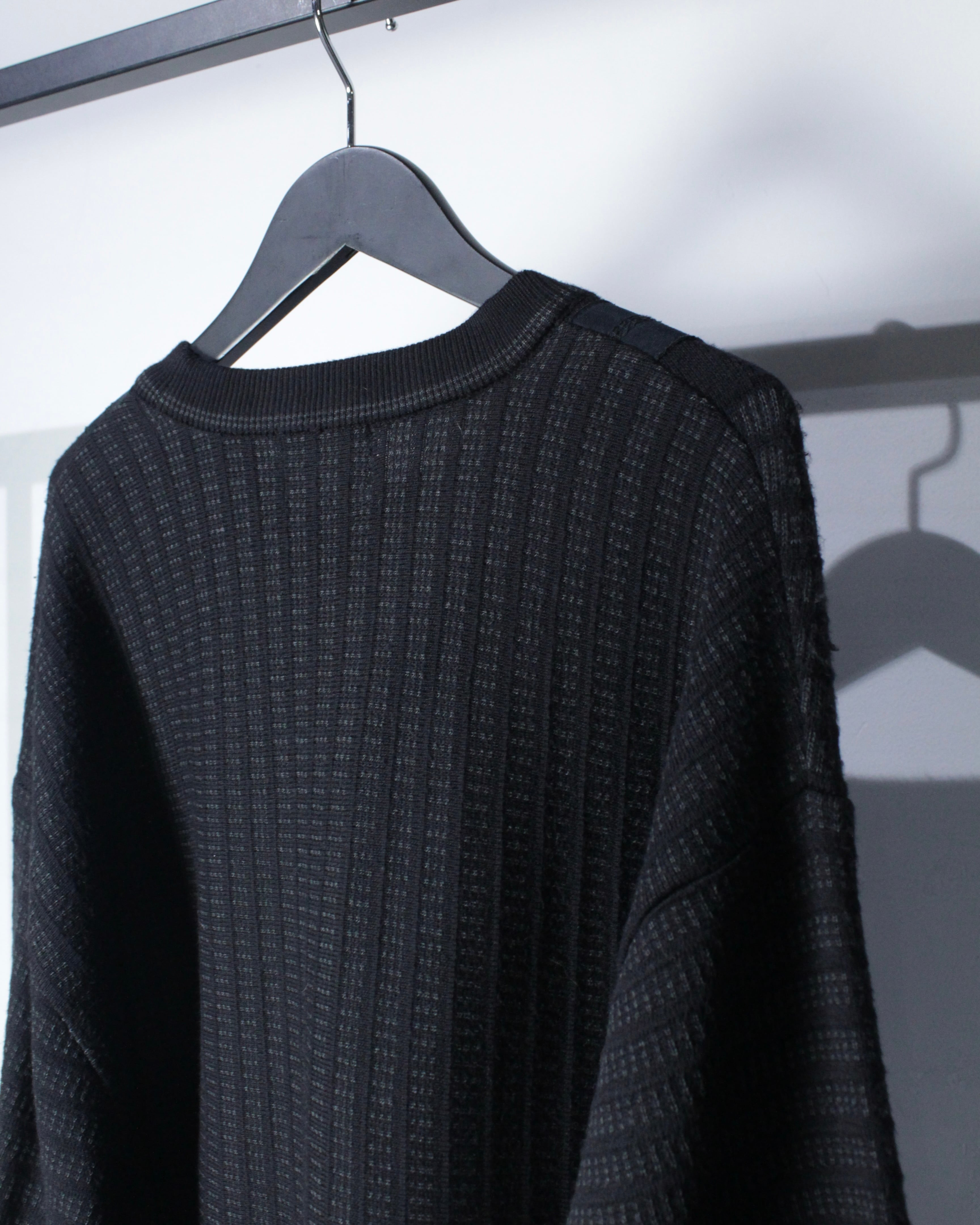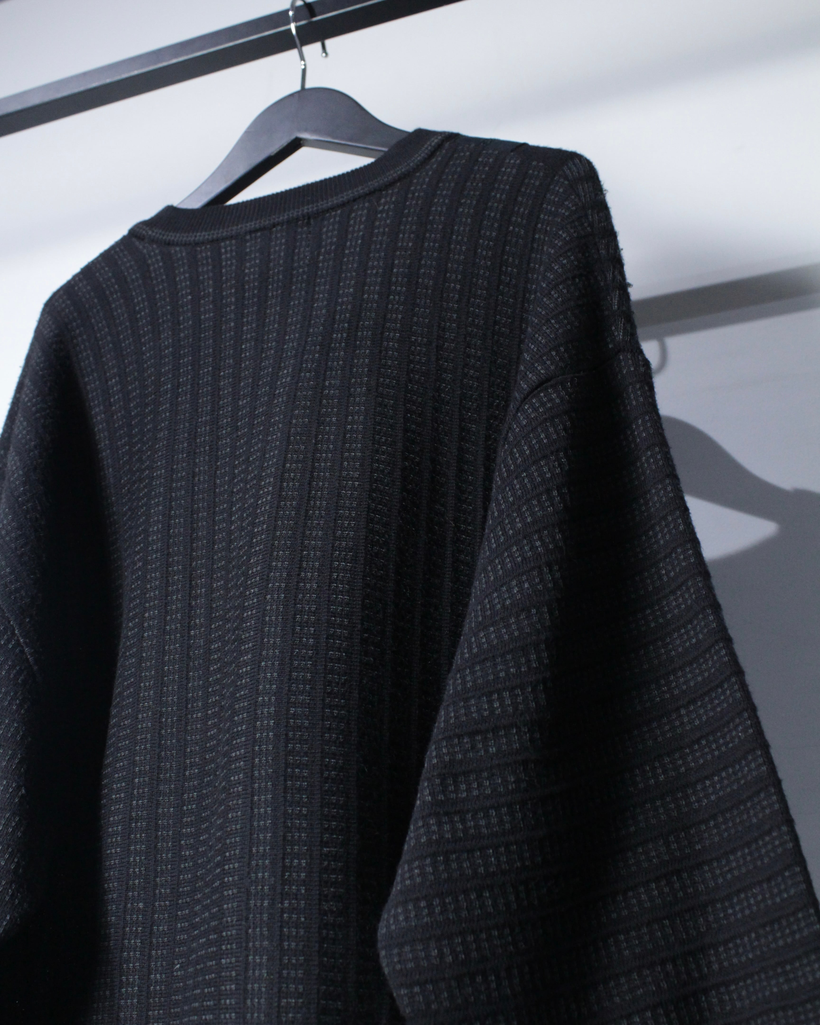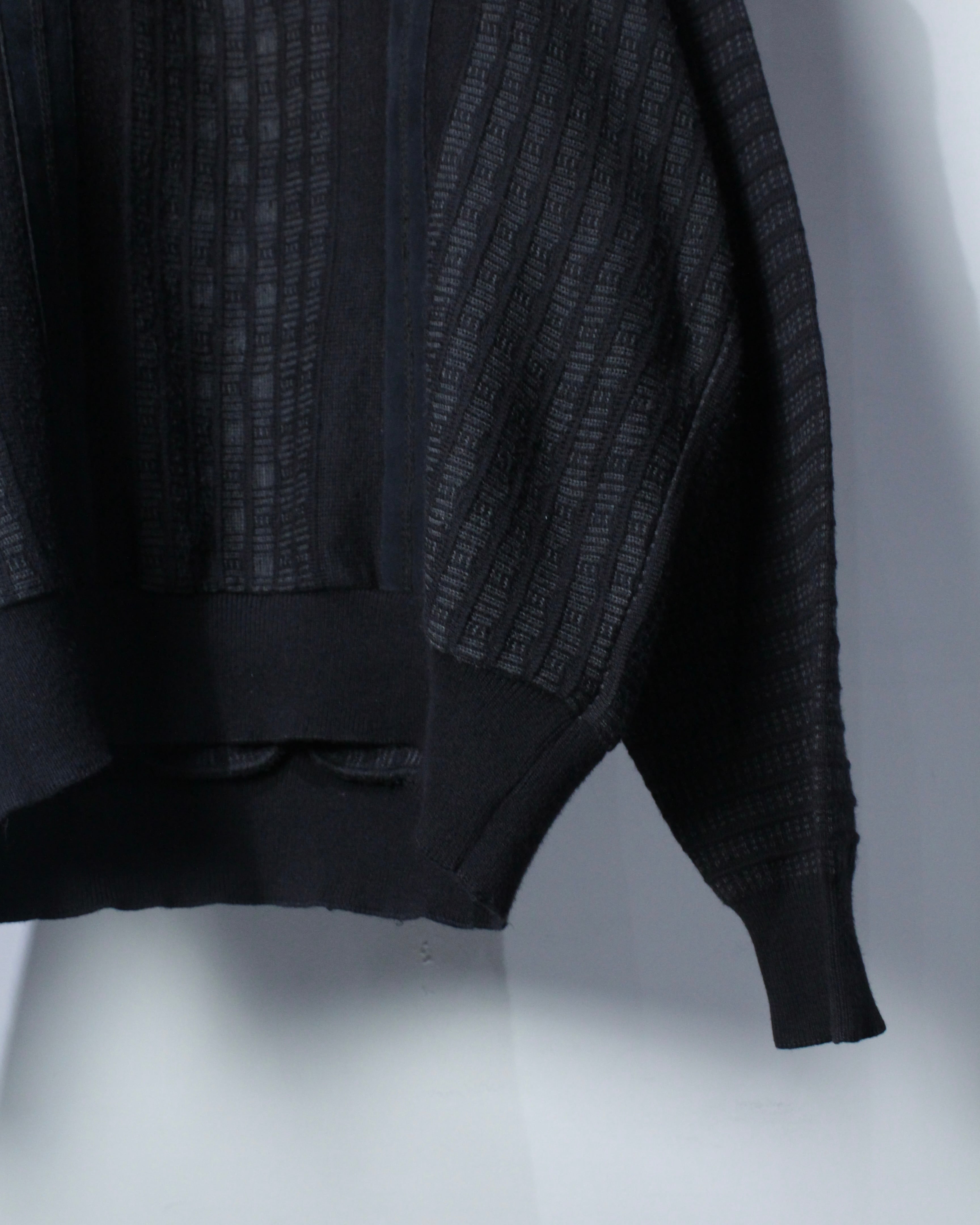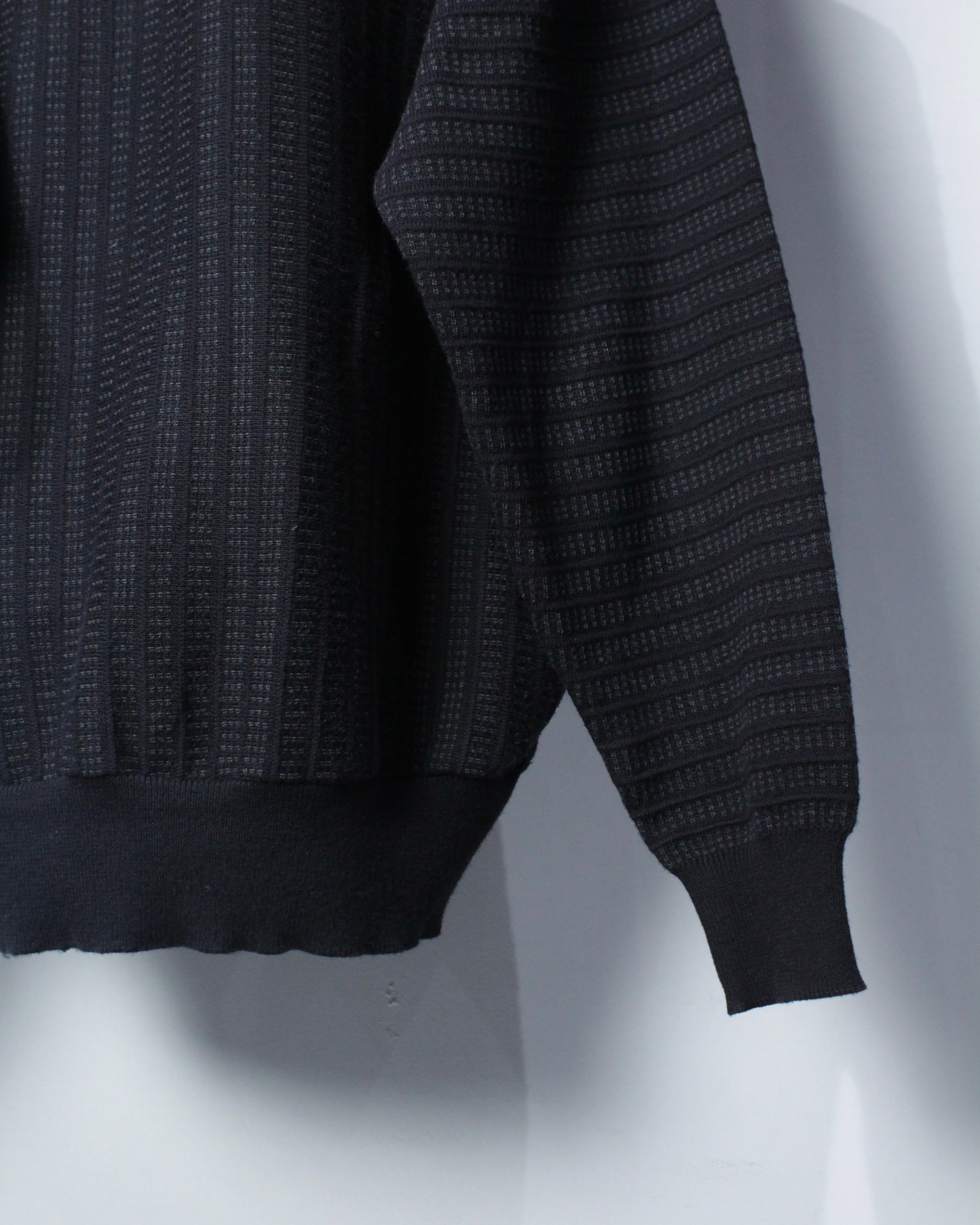 編み地の細やかさも素晴らしく、切り替え部分のステッチワークやリブのテンション感など、上質さがしっかりと伝わってきますね。