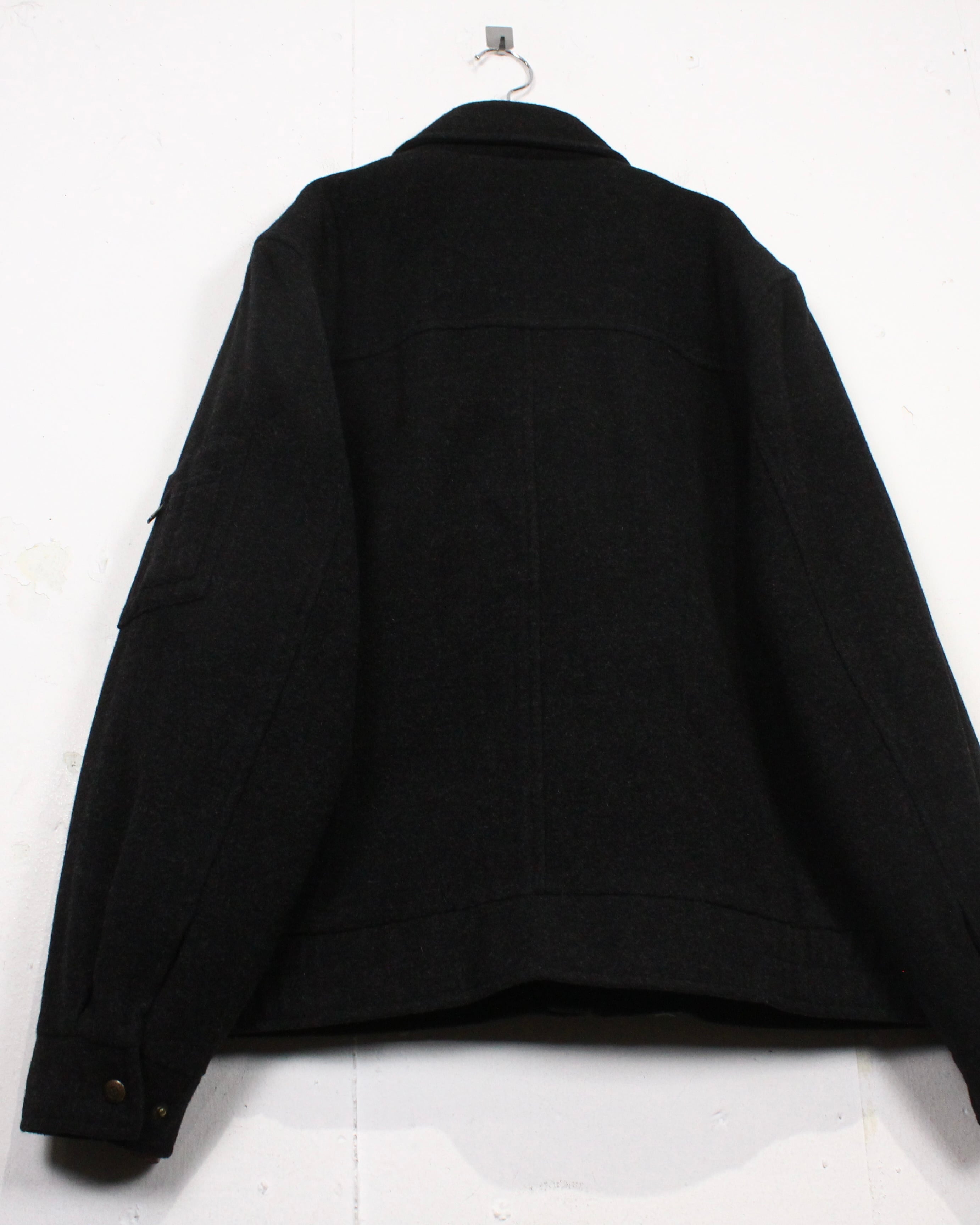 ギュッと目の詰まった上質なウール素材を用いた、ジップアップジャケット。ダークグレーのカラーリングで、非常に高い汎用性を誇ります。