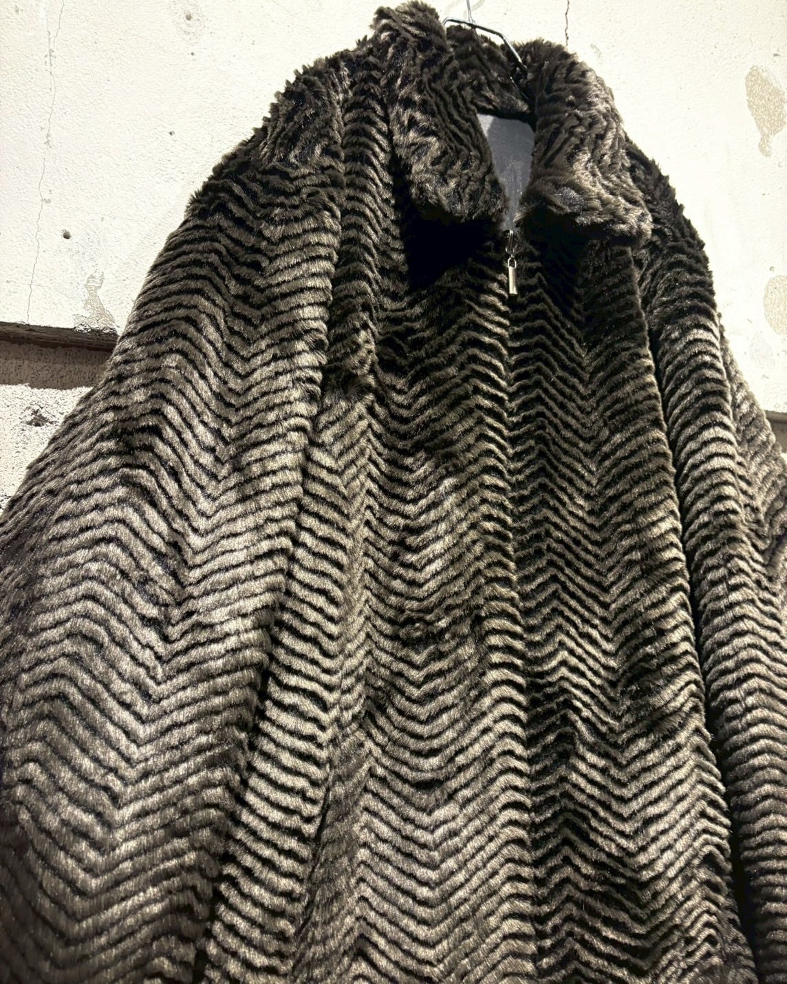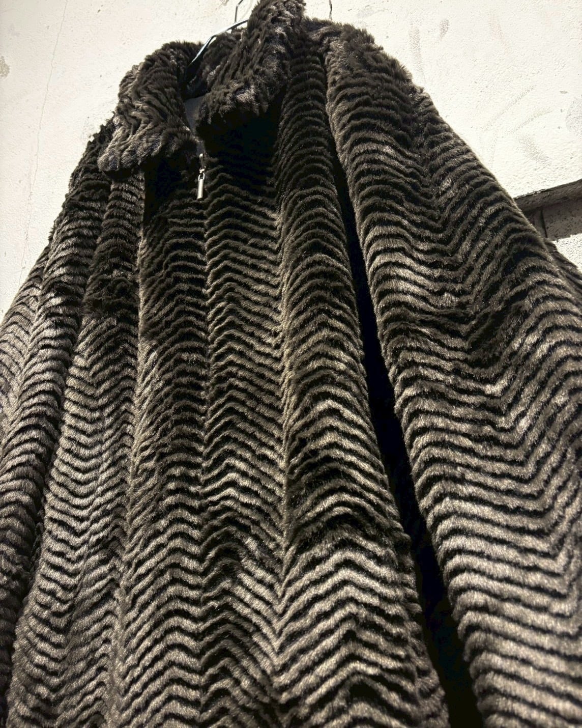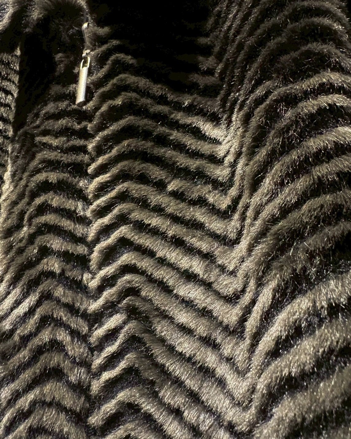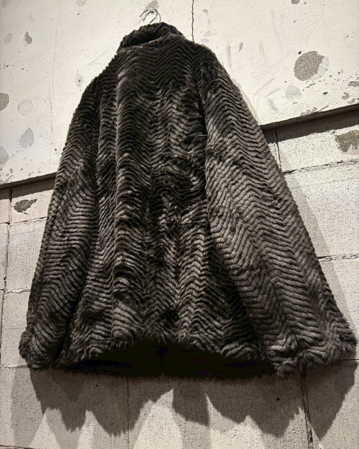 片面には、ジグザグ状に表情をつけたフェイクファーを贅沢に使用。毛足の流れによって生まれる陰影が奥行きを演出し、しっかりと存在感を放つ仕上がりに。ラグジュアリーでムードのある佇まいが魅力です。