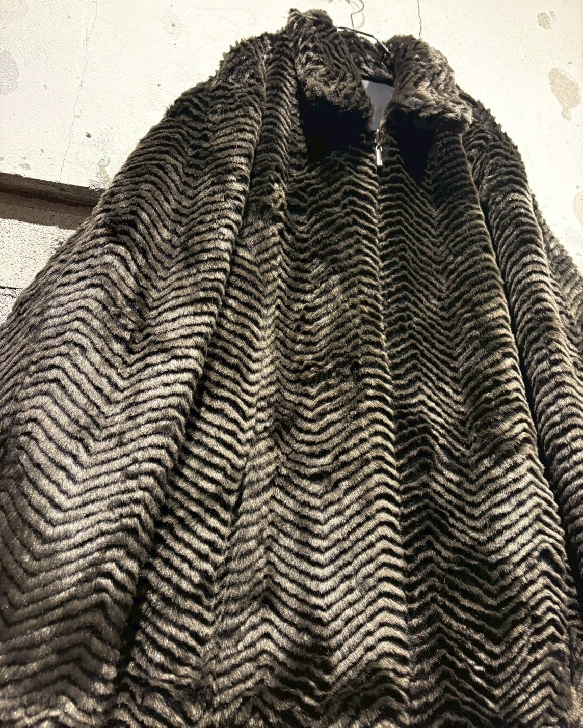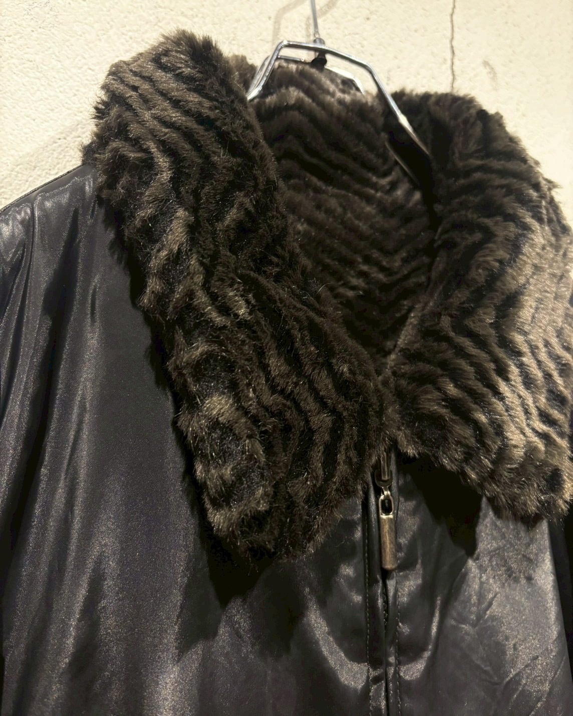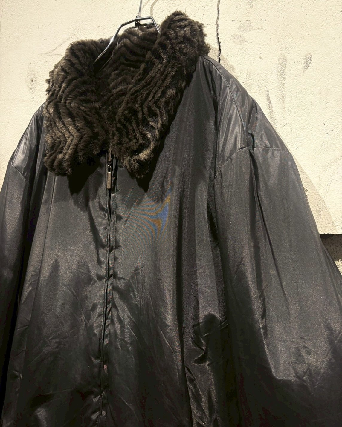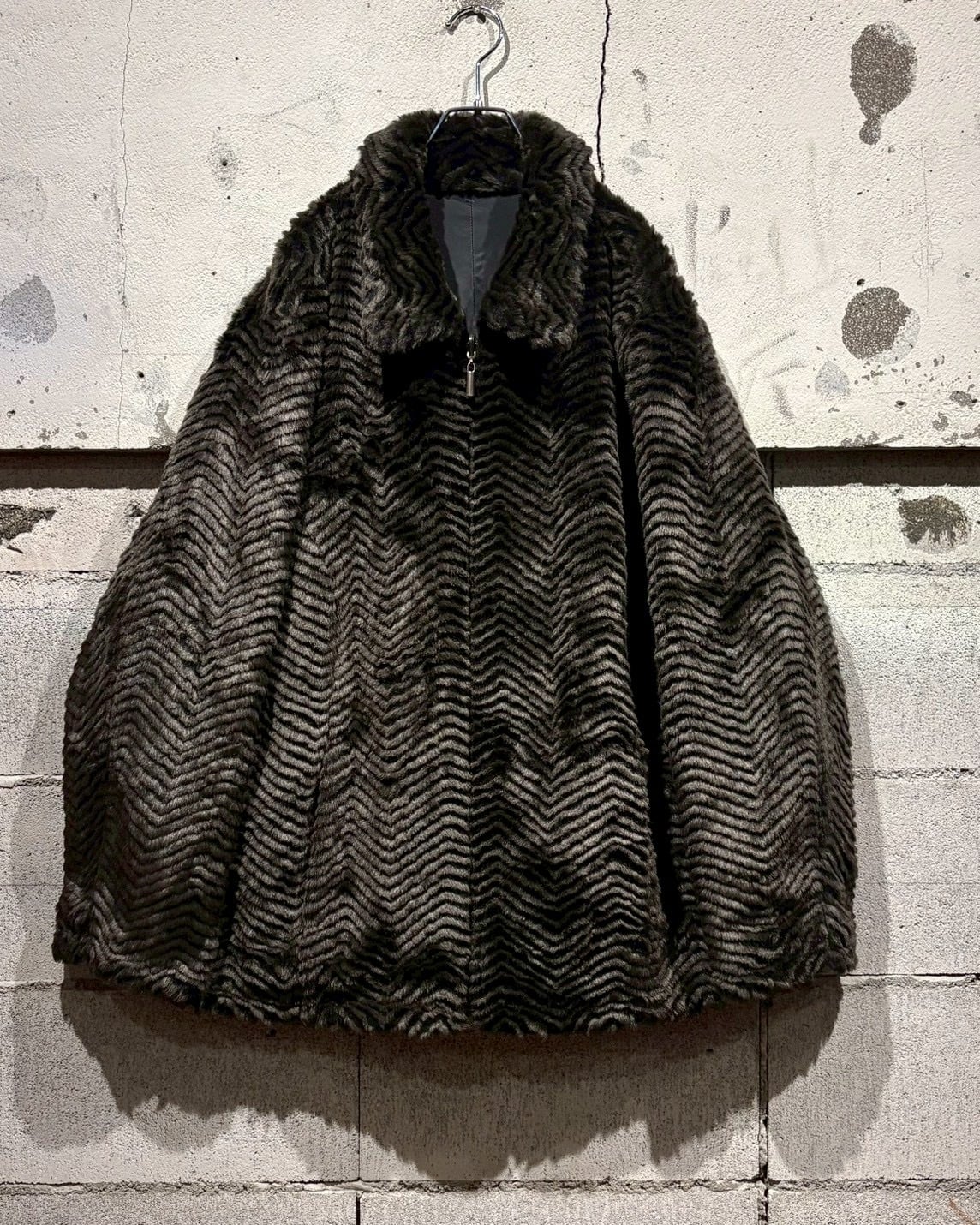 フェイクファーとポリエステルを用いた、リバーシブル仕様のジャケット。