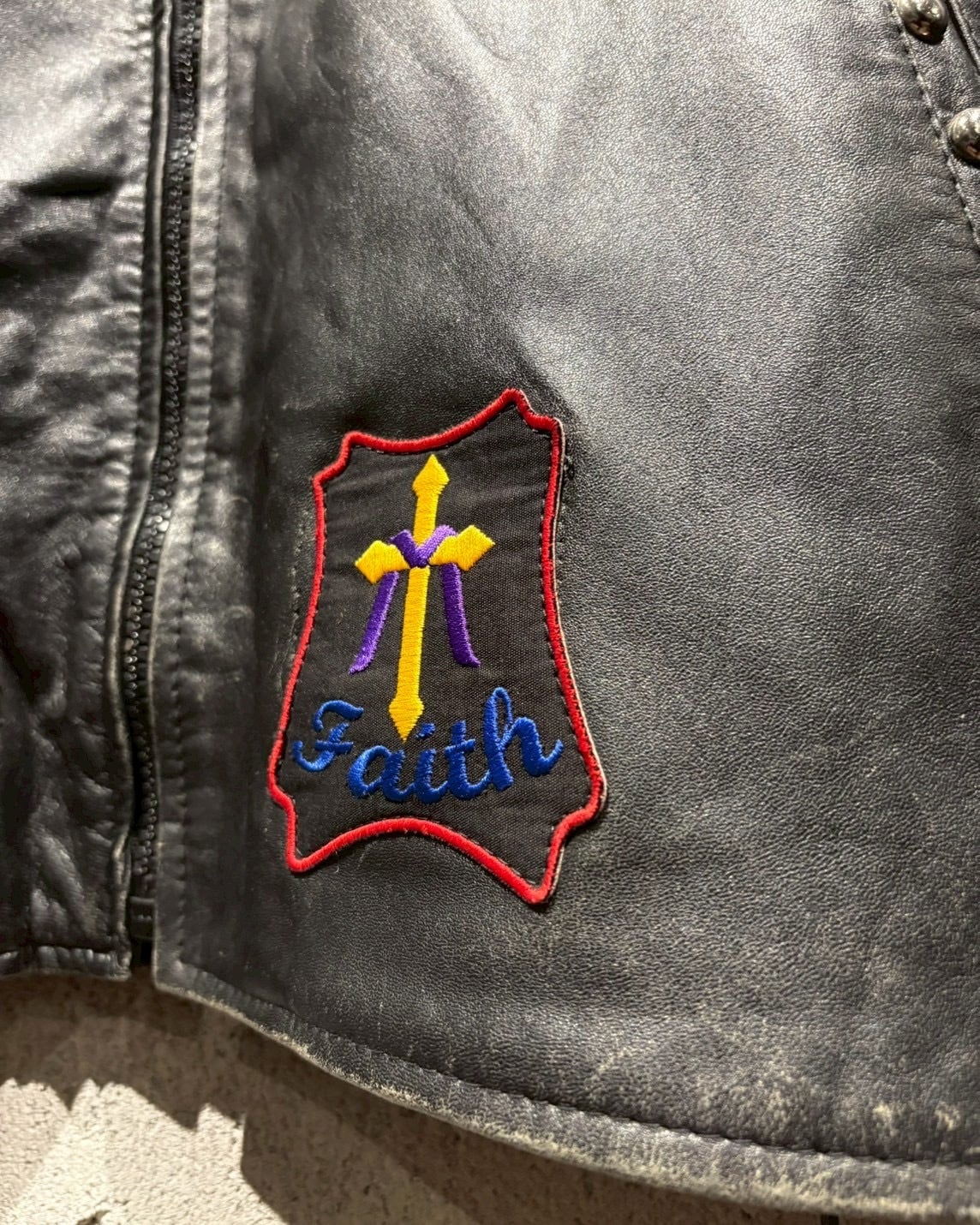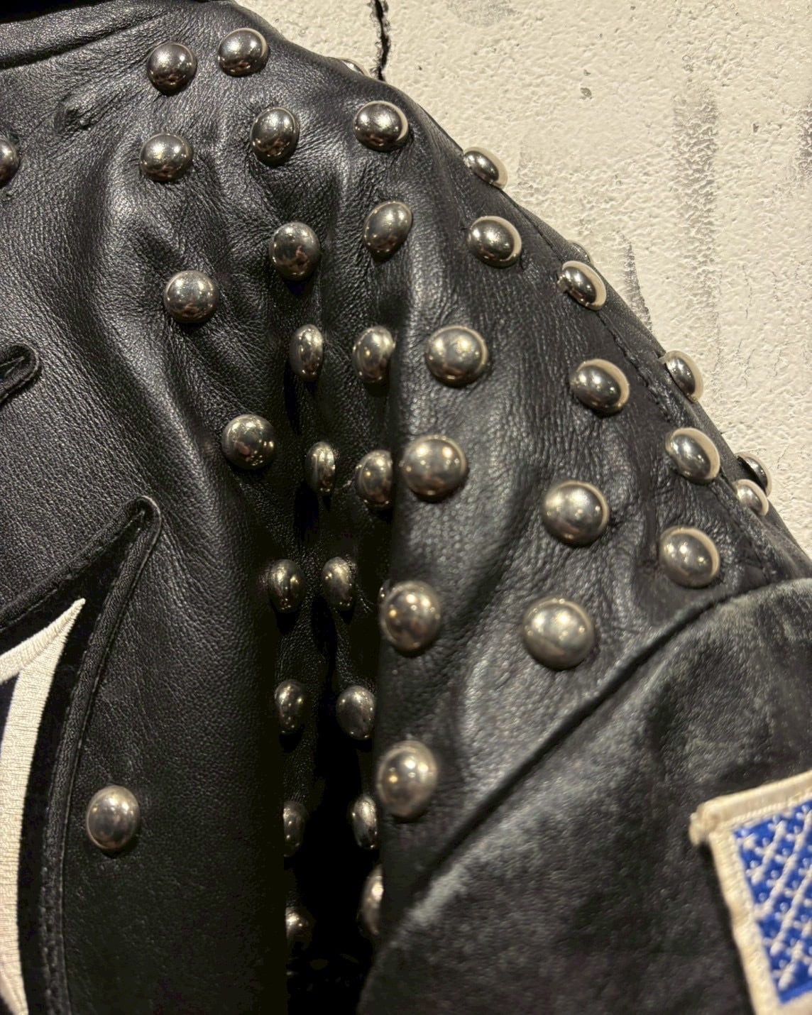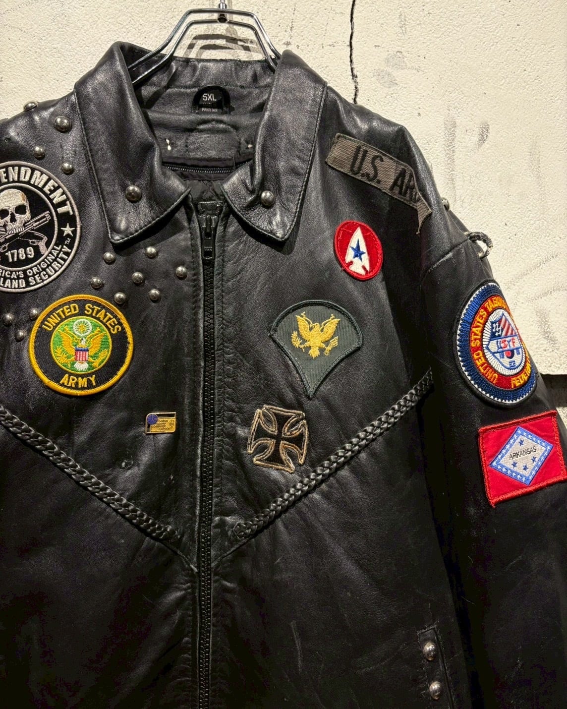 ヴィンテージレザーならではのエイジングを纏ったボディに、前所有者のバイカー思想が色濃く刻み込まれた、唯一無二のレザージャケット。
