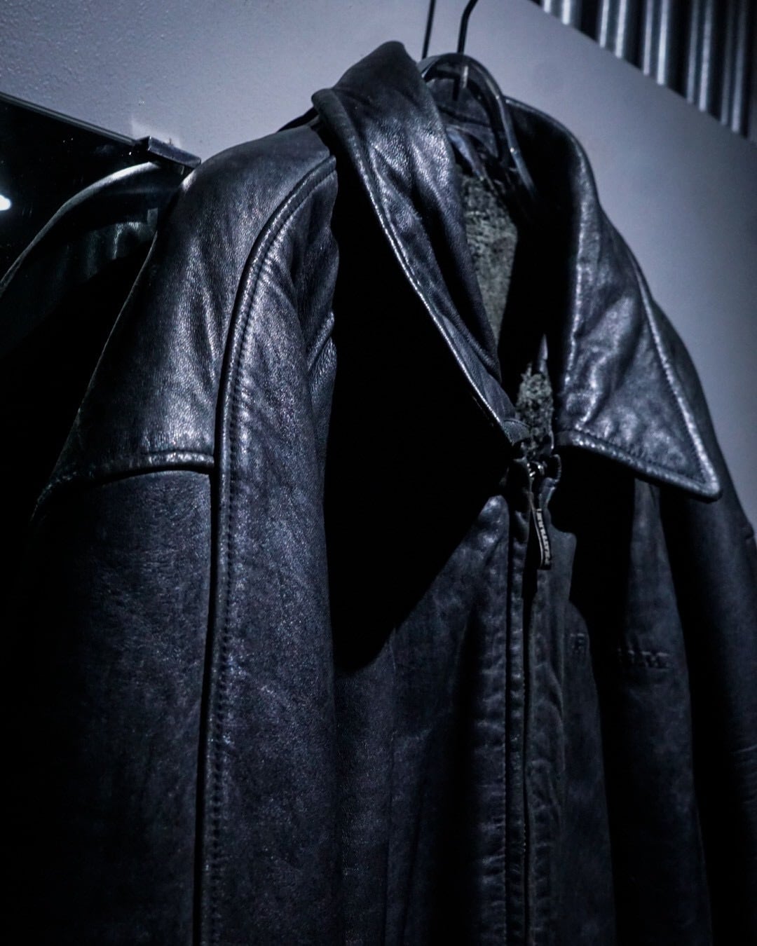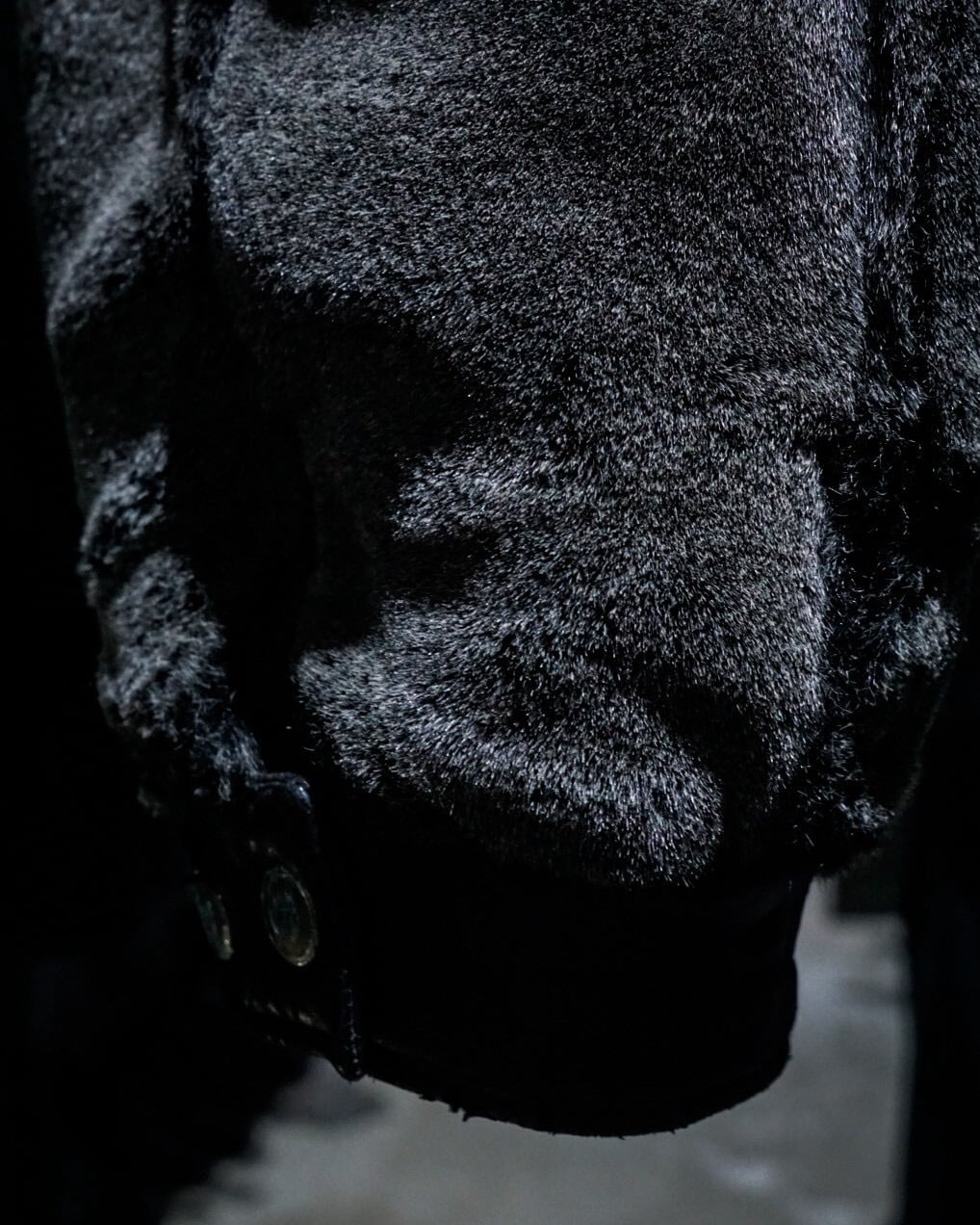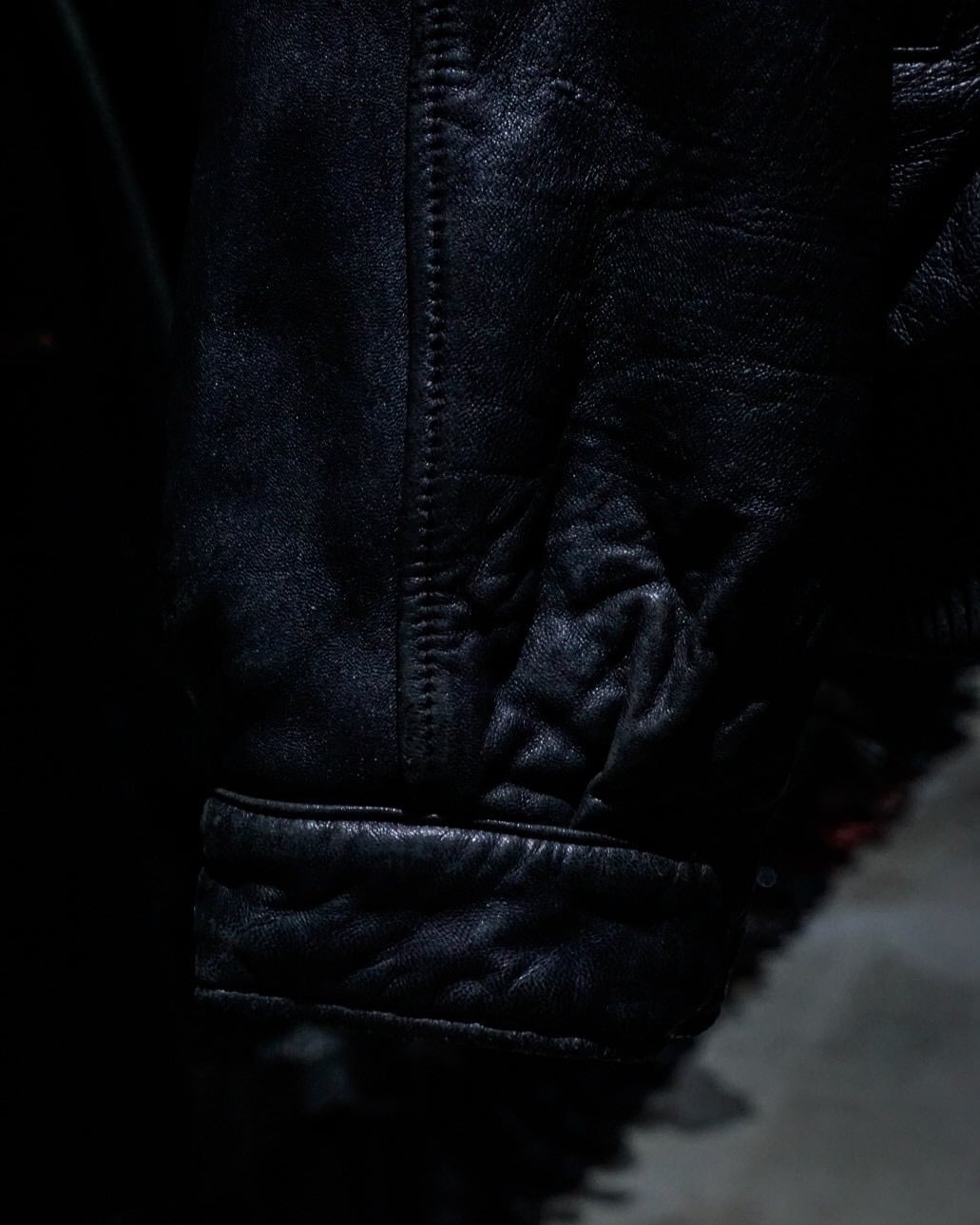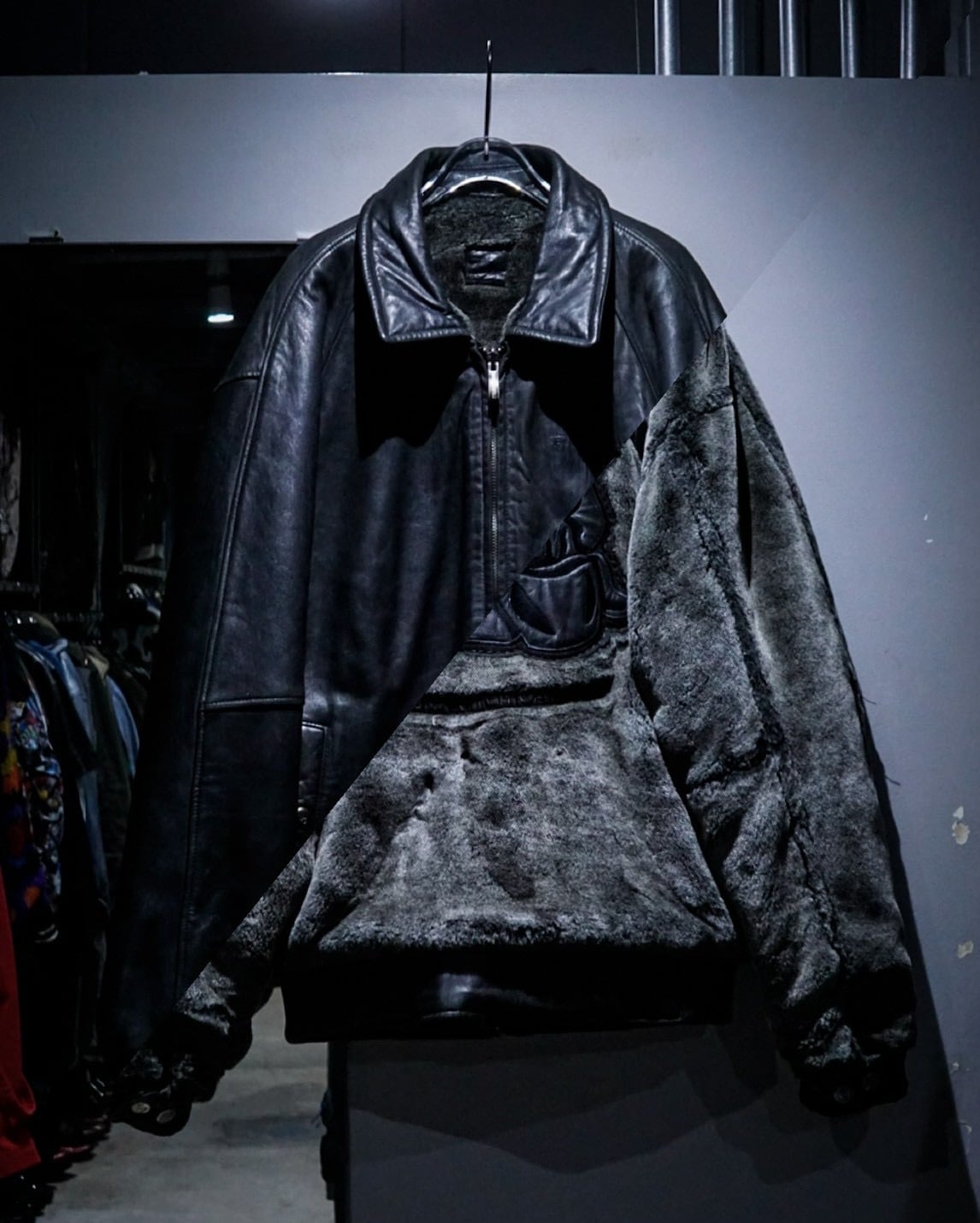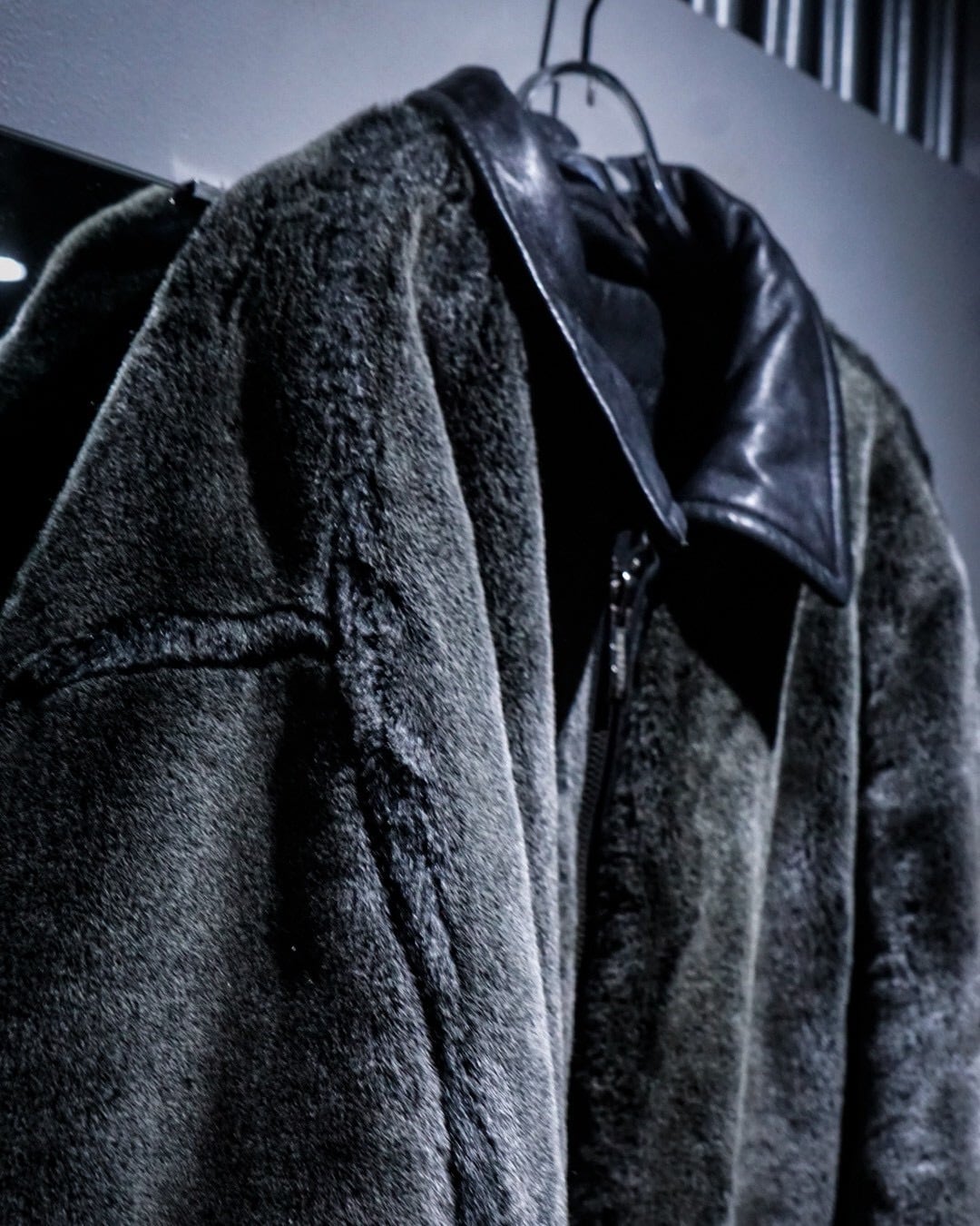 片面は毛足の長いフェイクファー、もう片面は重厚感のあるブラックレザー仕様。スタイリングや気分に応じて、全く異なる表情を楽しめる一着です。