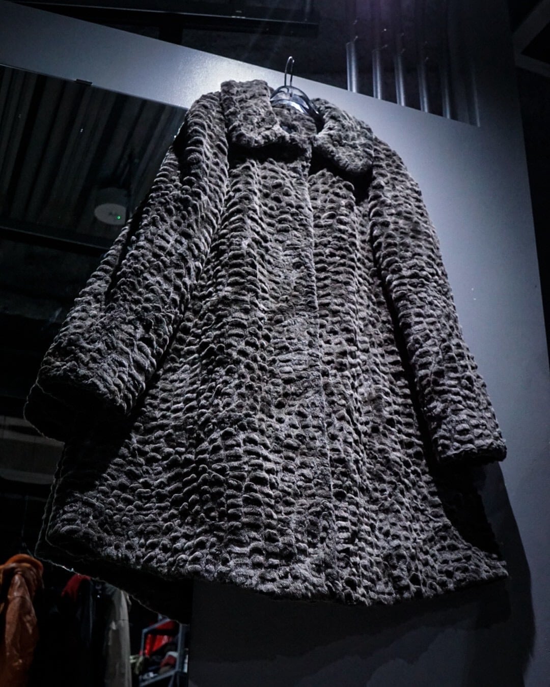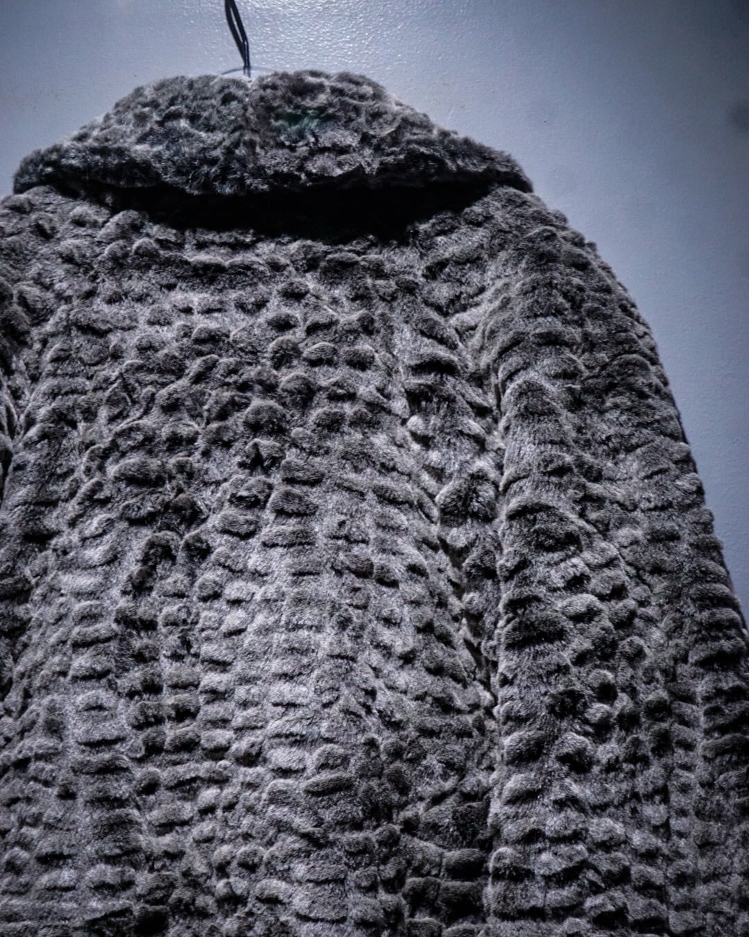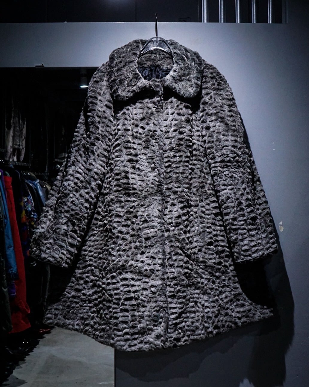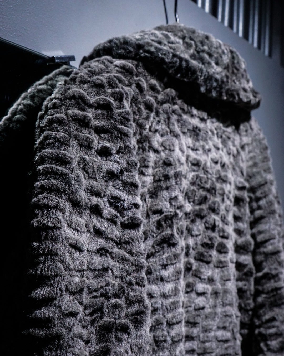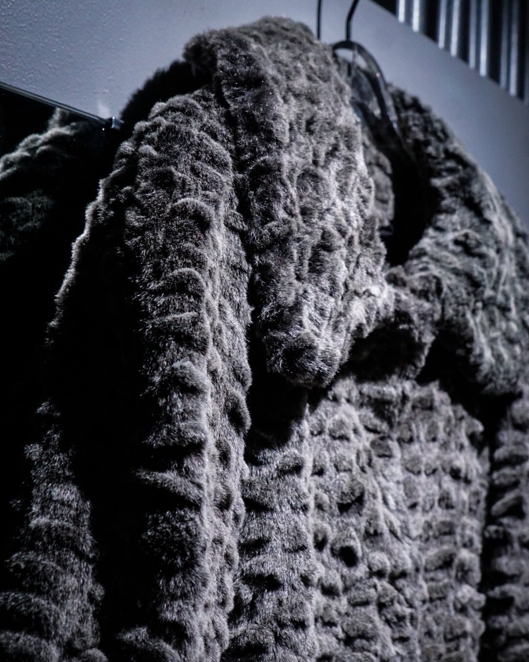 滑らかな毛足と凹凸のある立体的な表情が特徴的なフェイクファーコート。