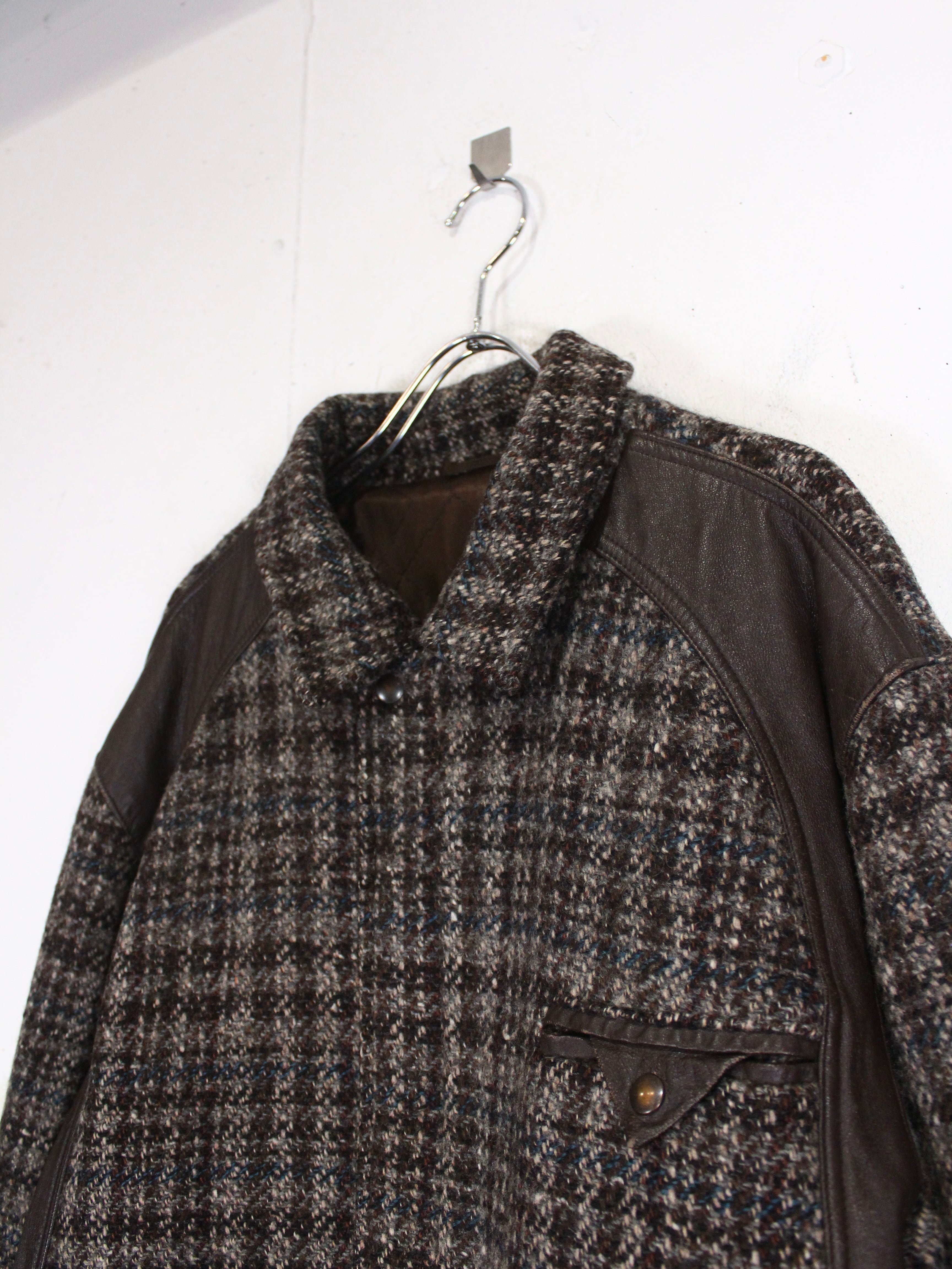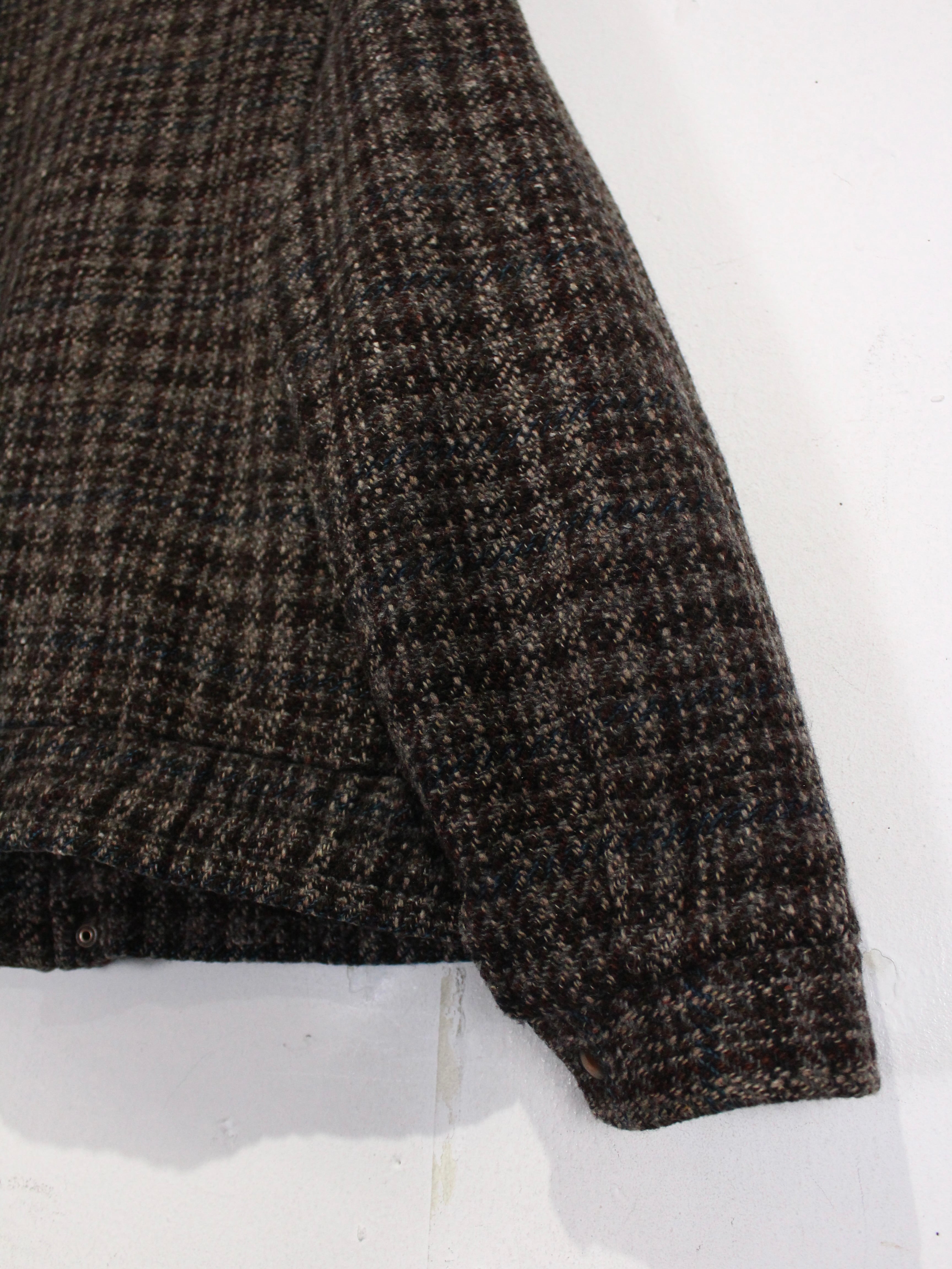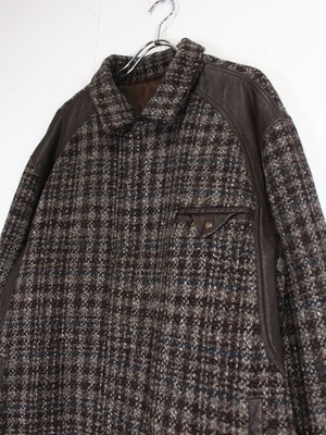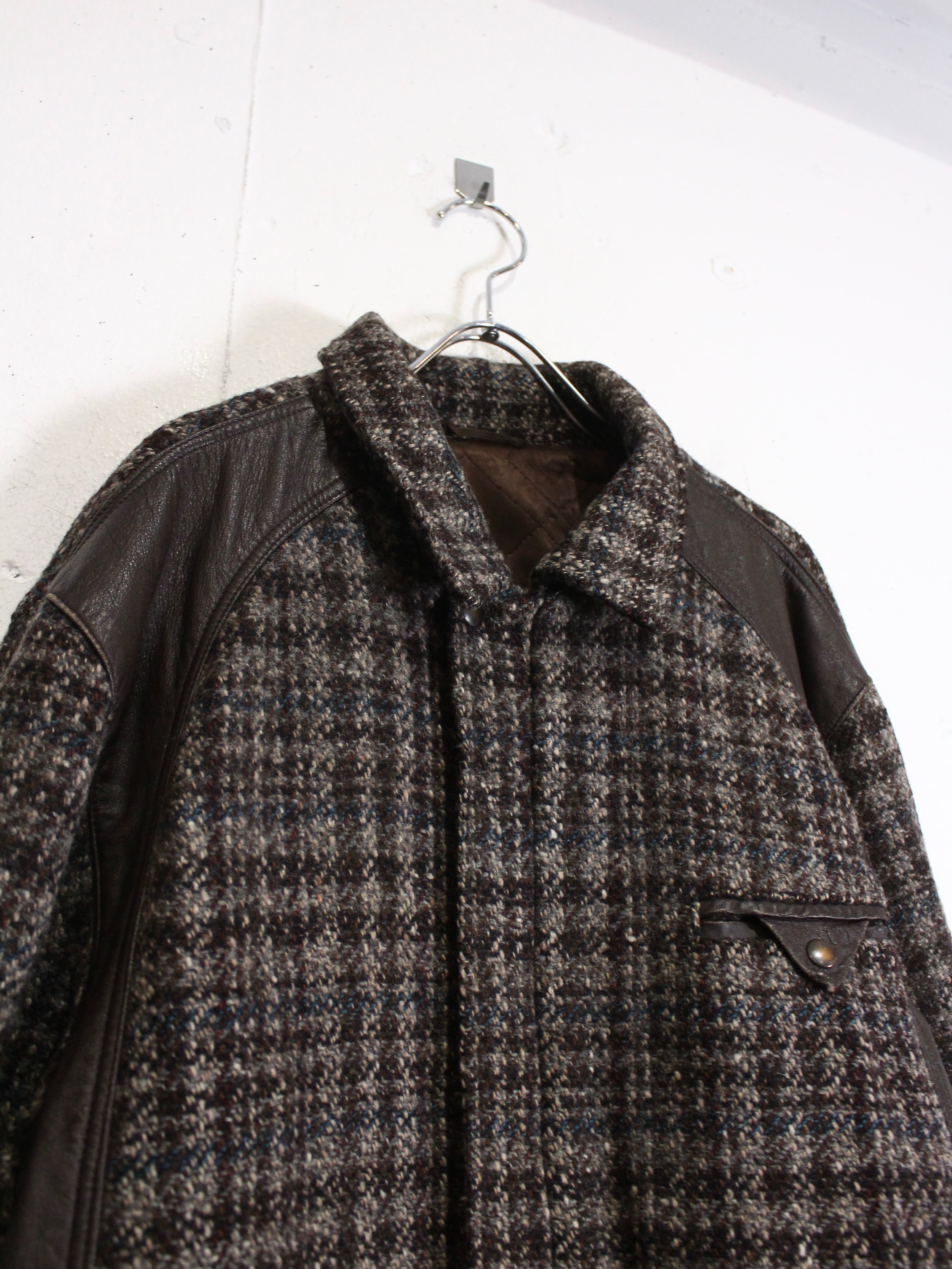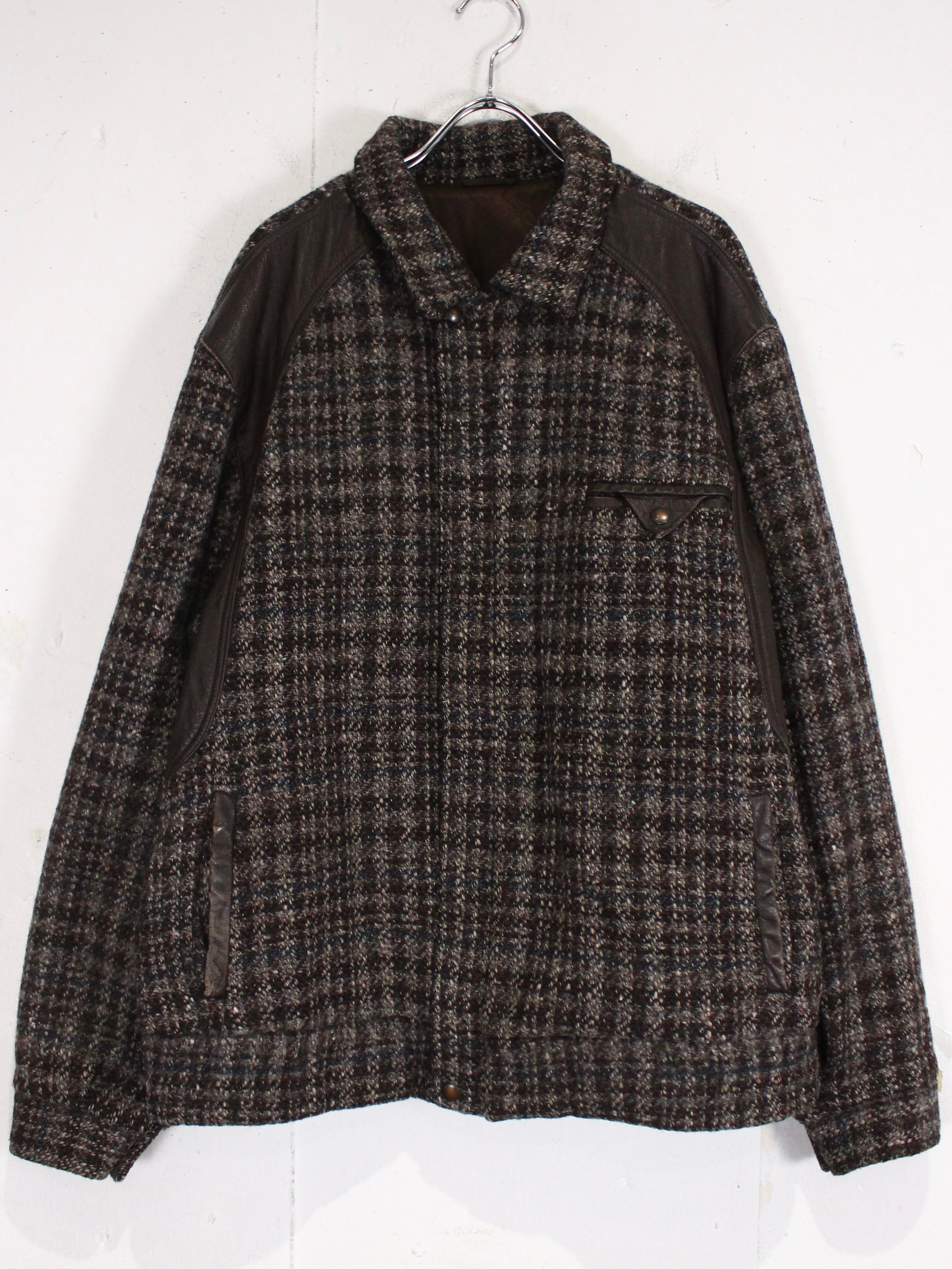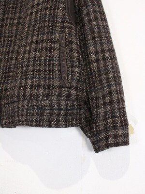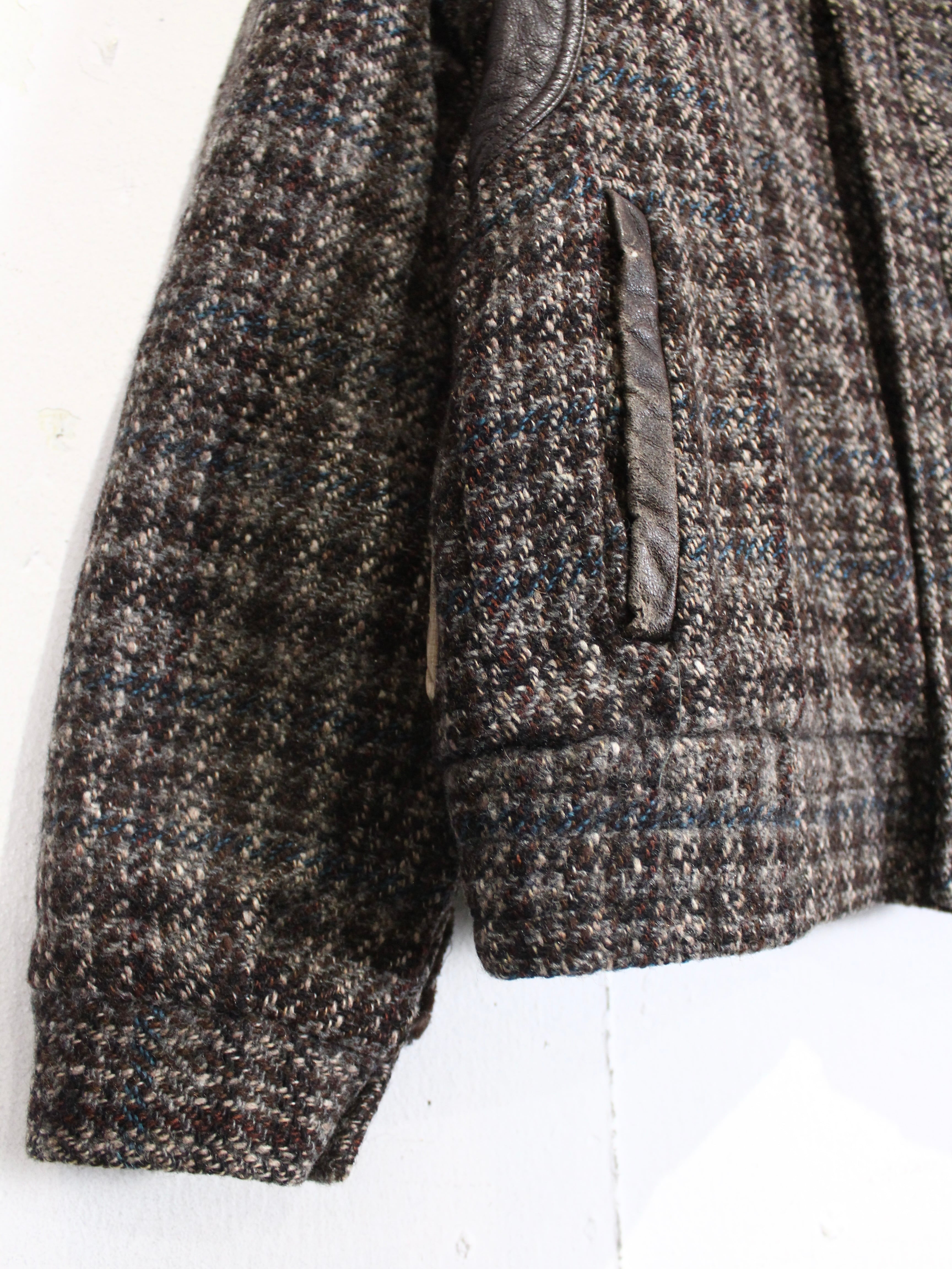奥行きのある表情を持つツイードファブリックをボディに使用し、随所にブラウンレザーの切り替えが施されたブルゾンジャケット。
