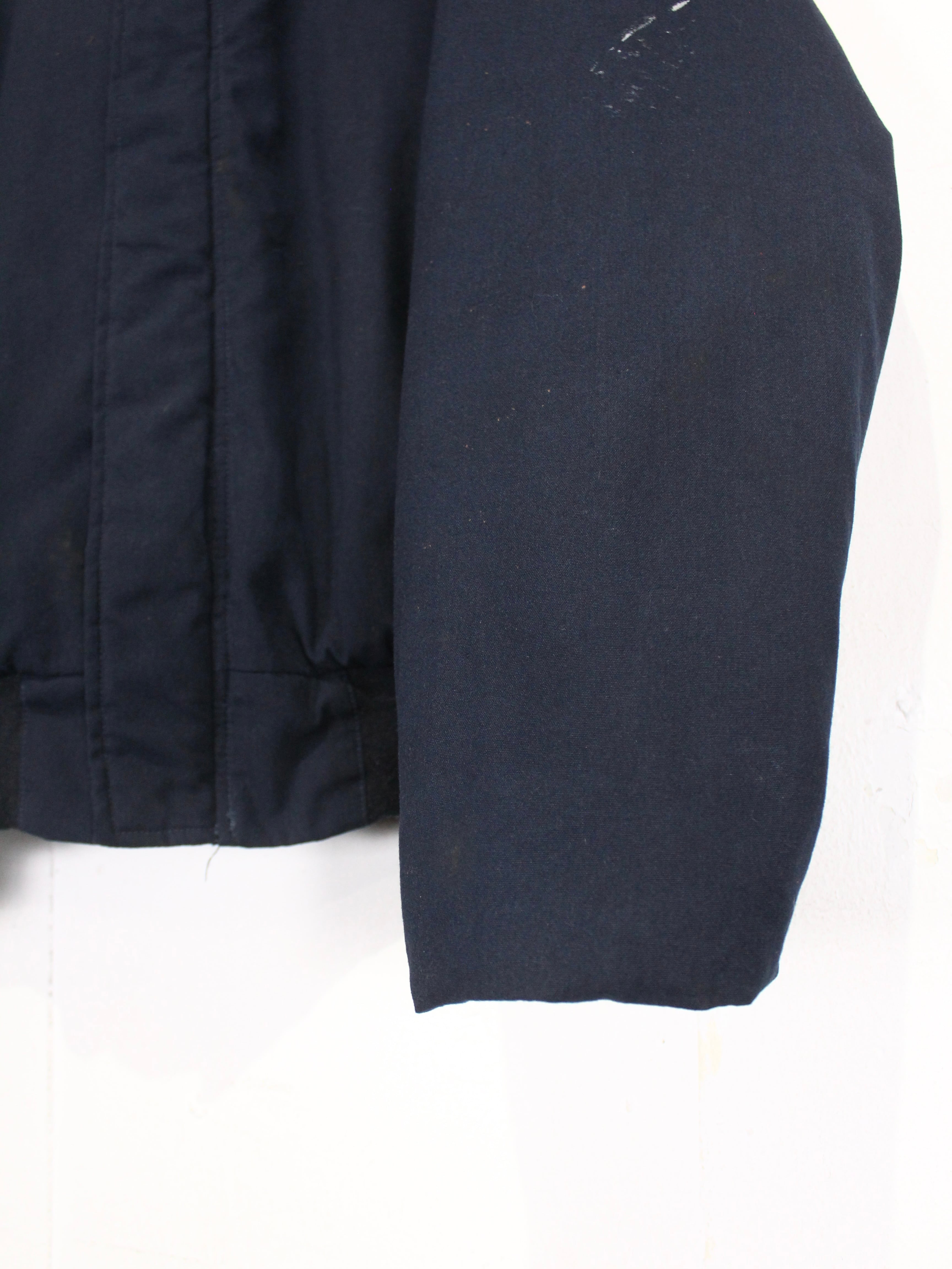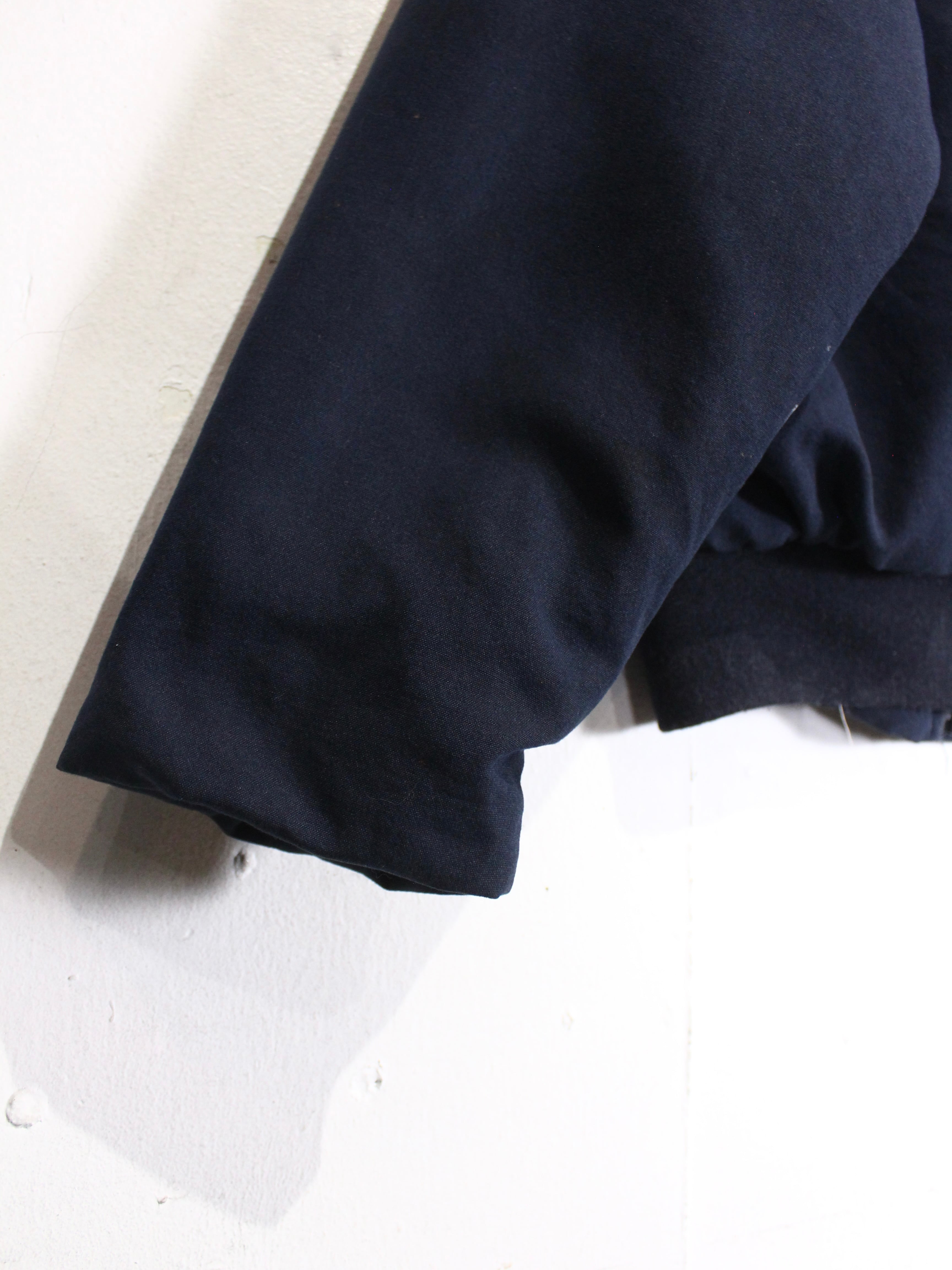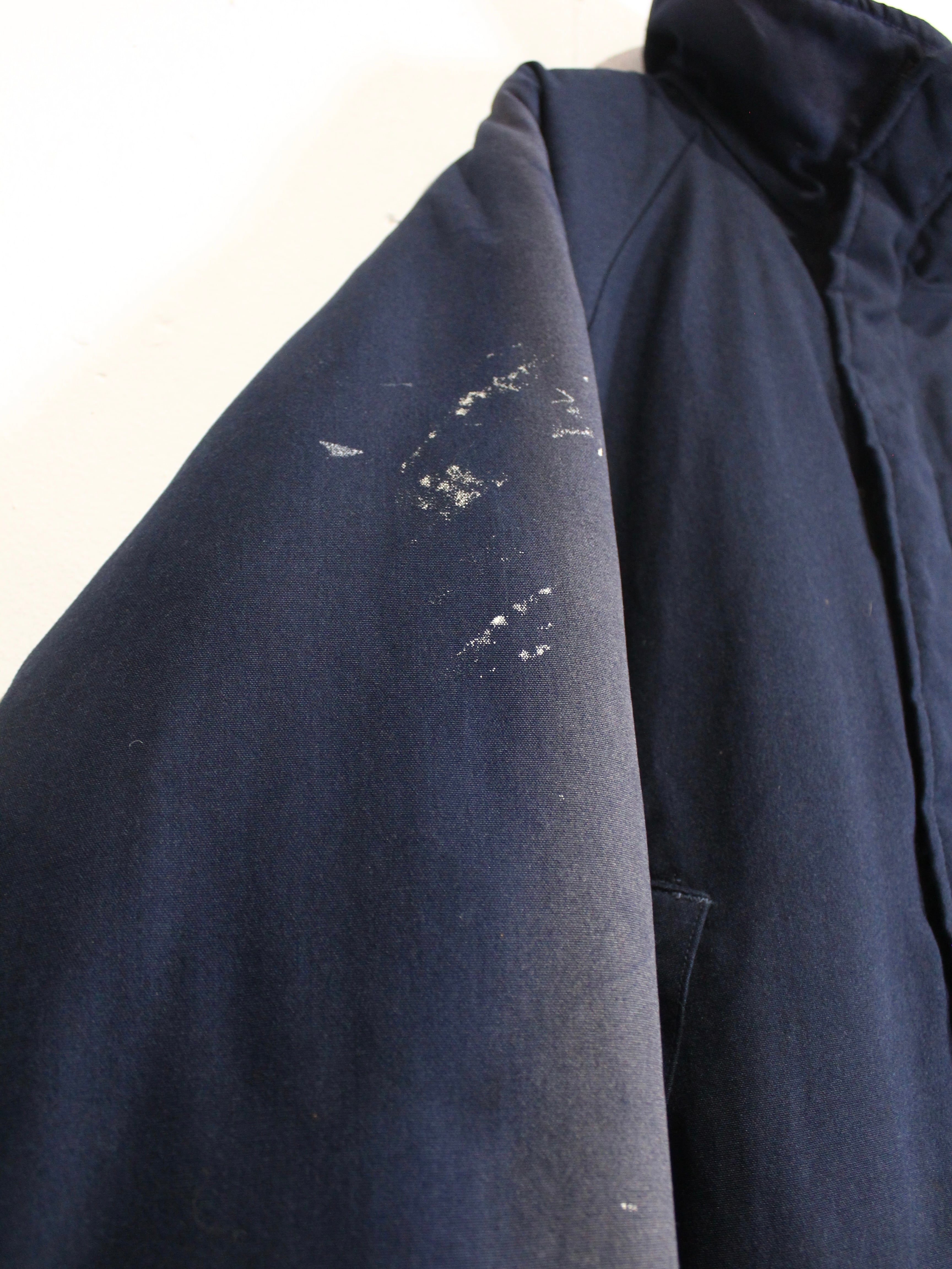 耐久性に優れたタフな質感のネイビーカラーの表地に、内側には中綿を封入したヘビーな作り。サンフェードや長年の着用によって生まれた奥行きのある表情も非常に美しい、、、