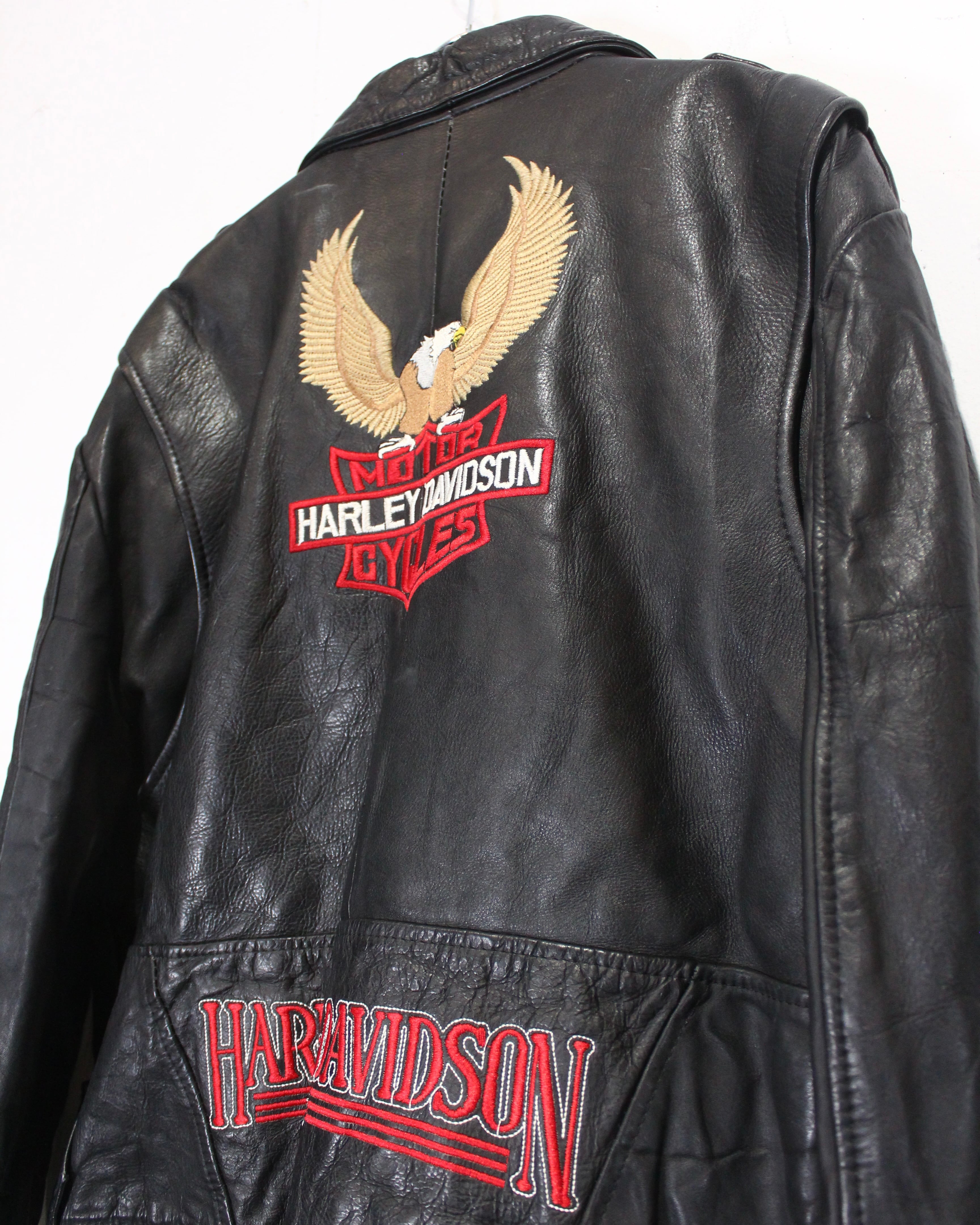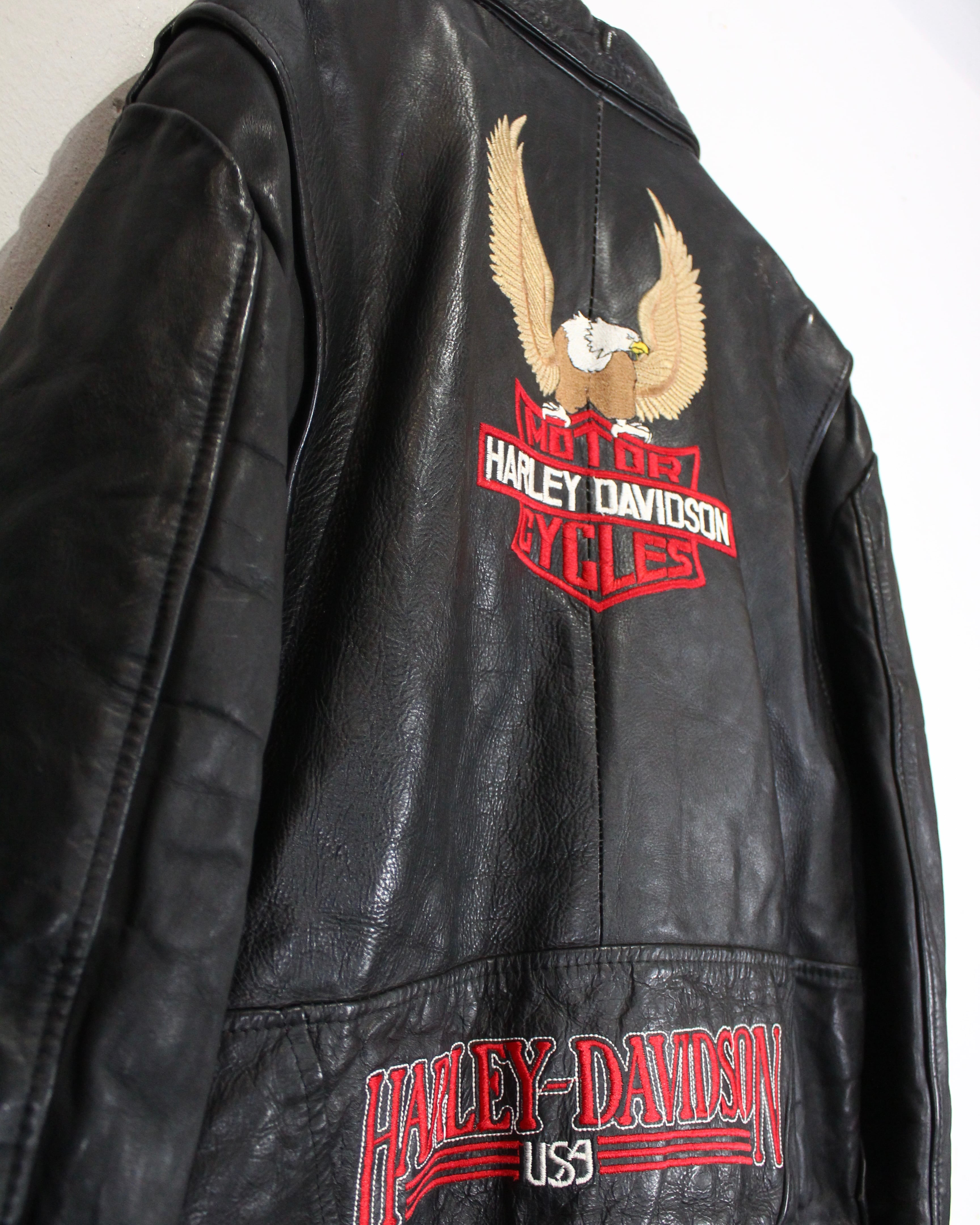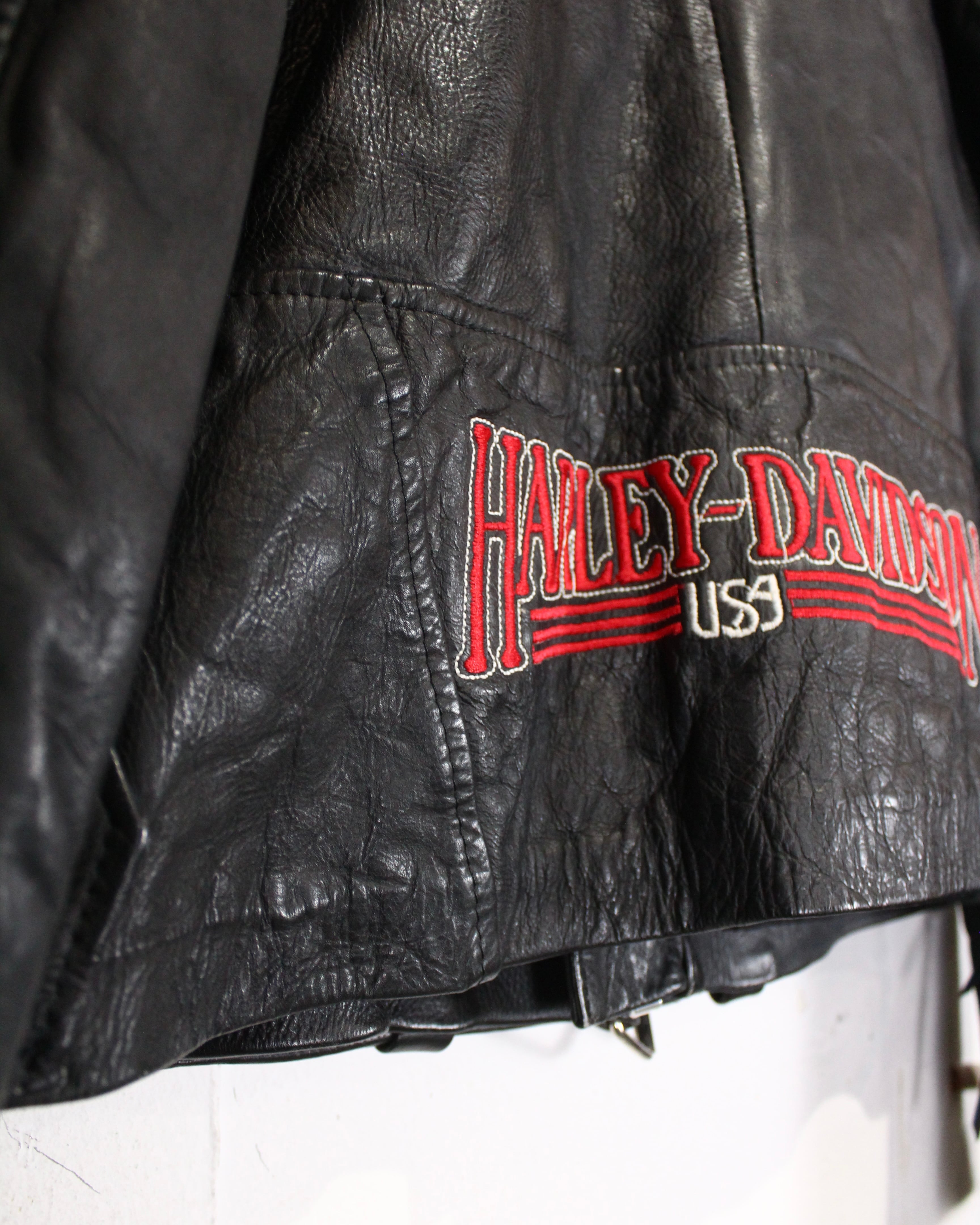 アメリカンモーターサイクルカルチャーを象徴する存在"HARLEY DAVIDSON"のロゴ刺繍カスタムが施された、スペシャルなダブルライダースジャケット。