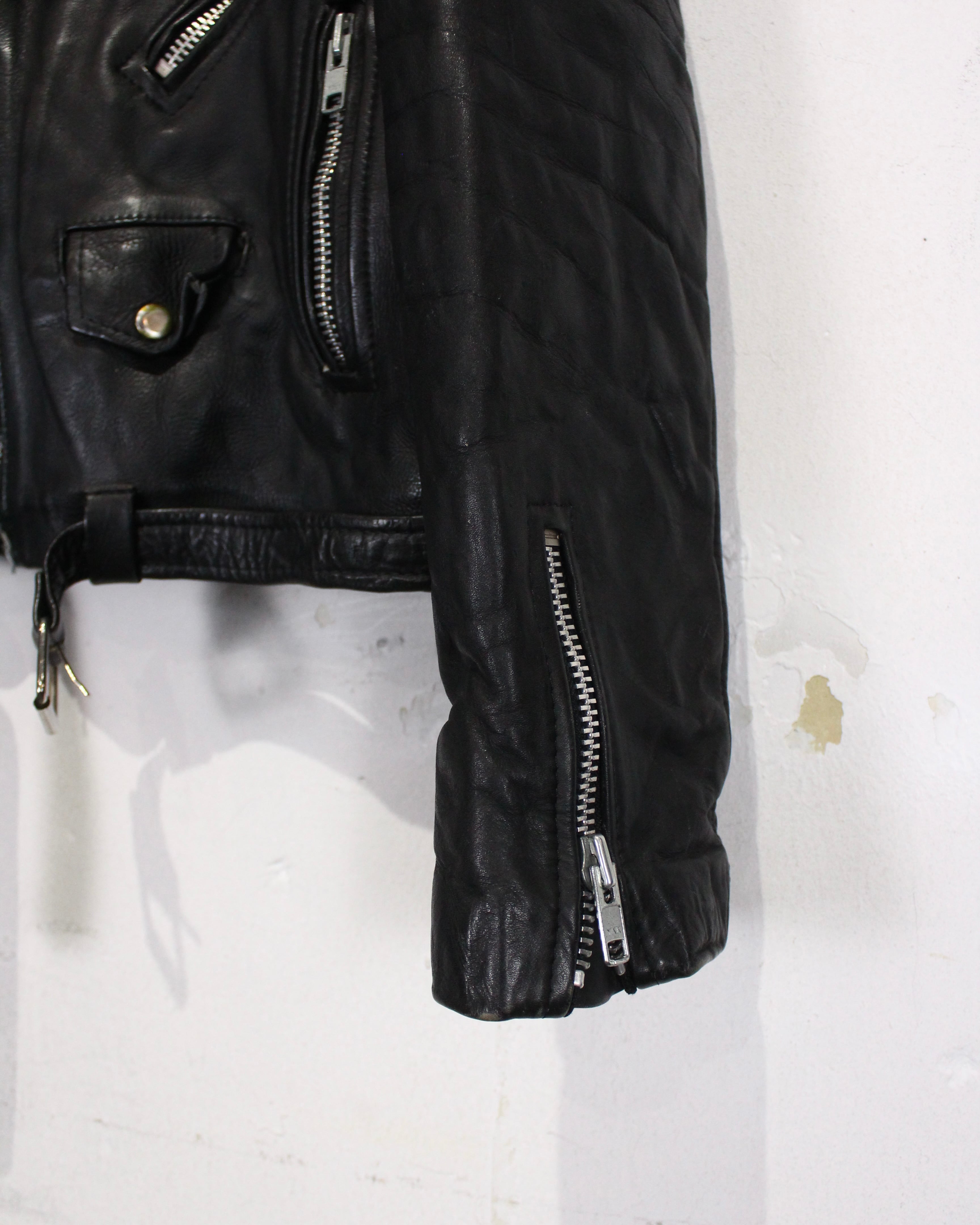 フロントには複数のジップポケット、ウエストにはベルトアジャスターを搭載。重厚なルックスと共に、ライダース本来の機能美をしっかり押さえたディテール構成。内側はキルティング仕様となっており防寒性も確保されています。