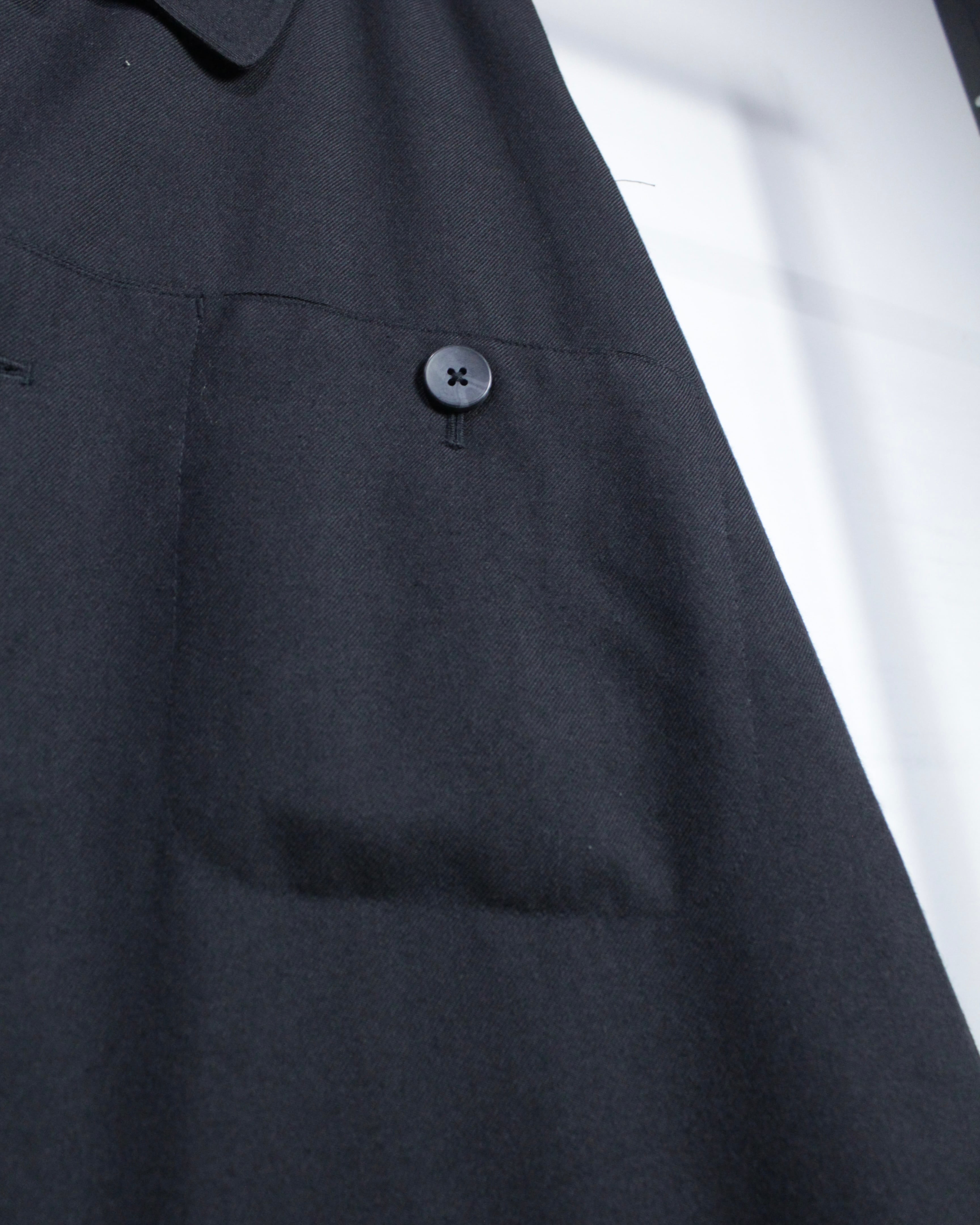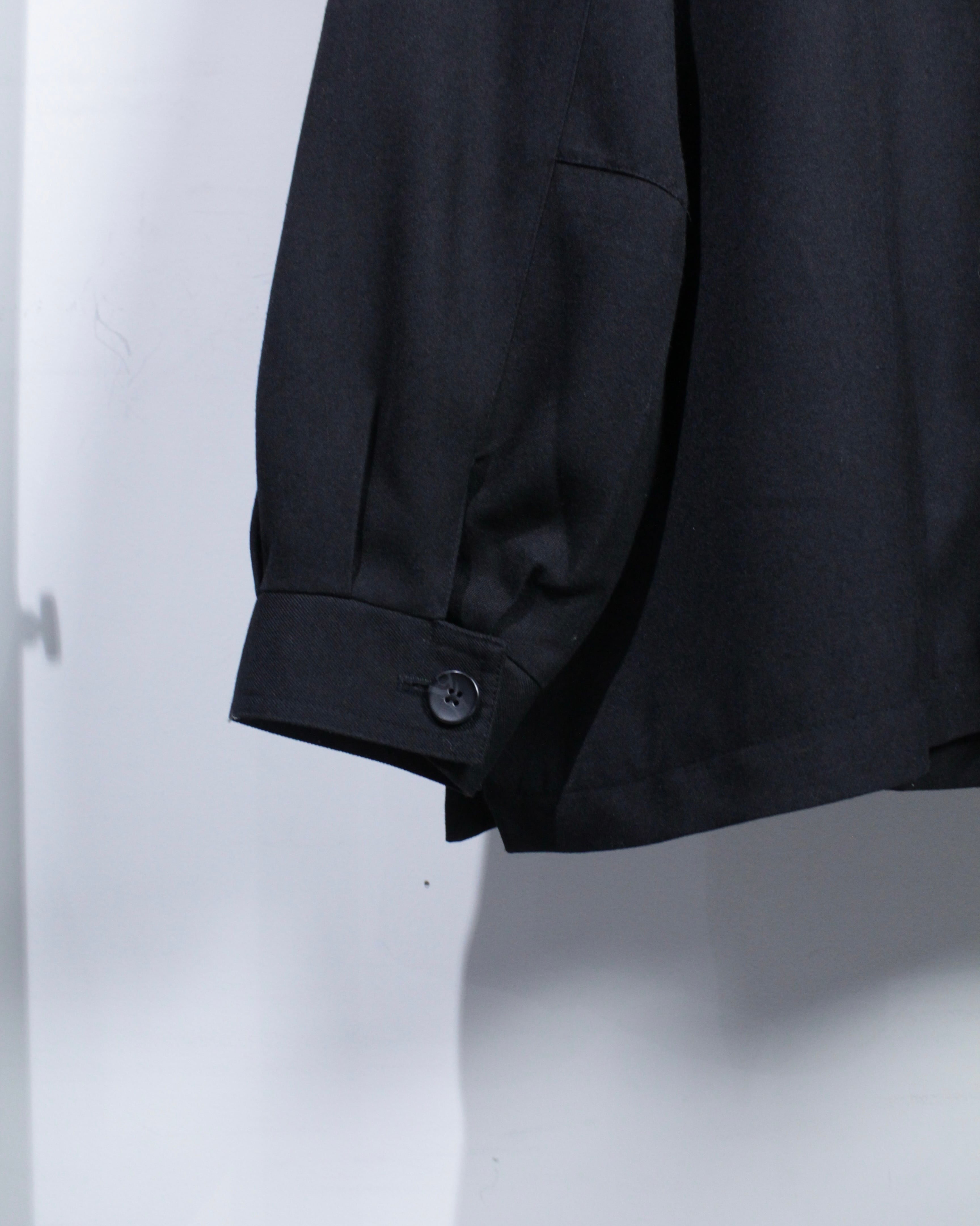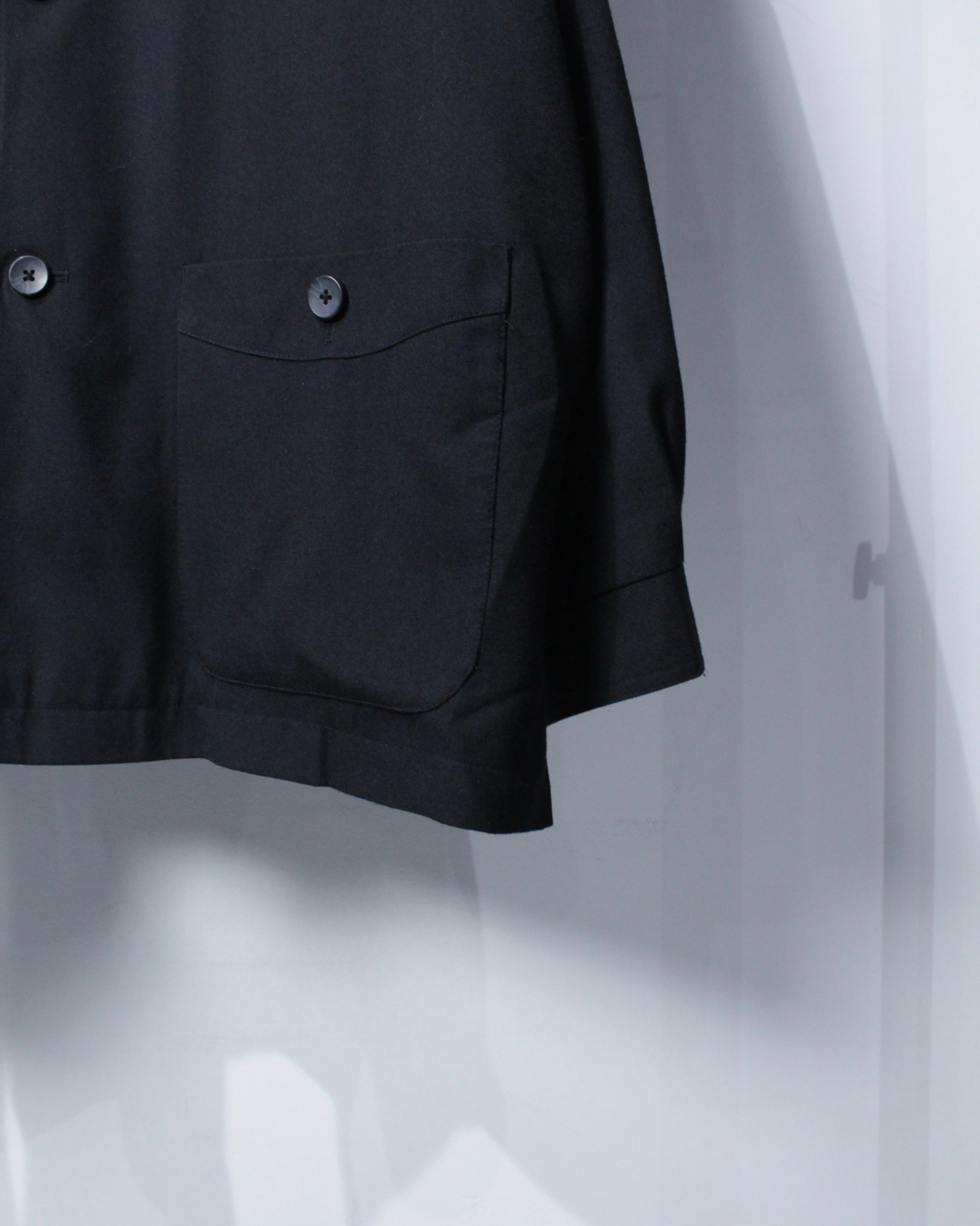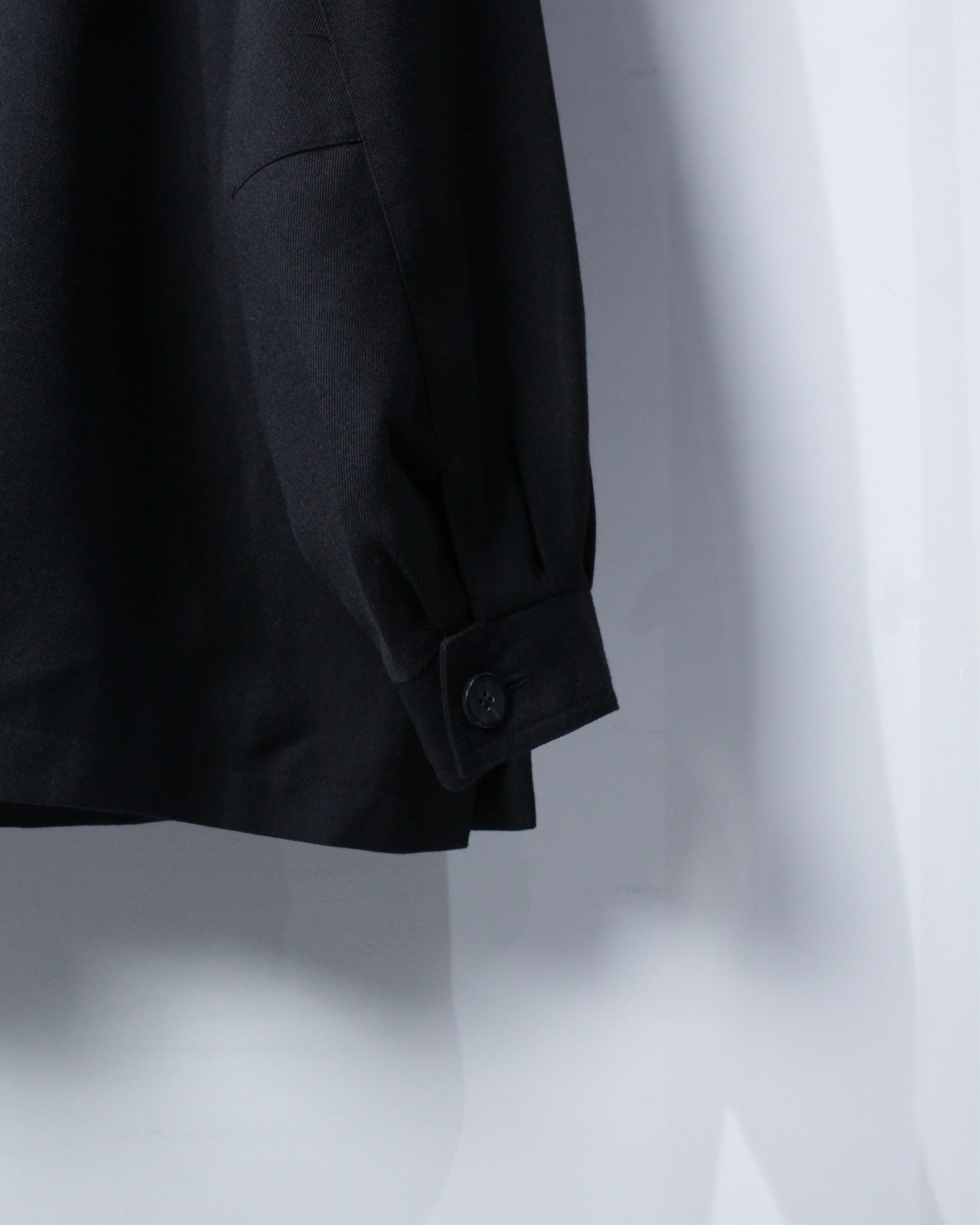 ブラックカラーならではの静かな存在感も相まって、スタイルを選ばず取り入れやすく、カバーオール型の構造により、シャツ感覚でもライトアウターとしても着用可能。