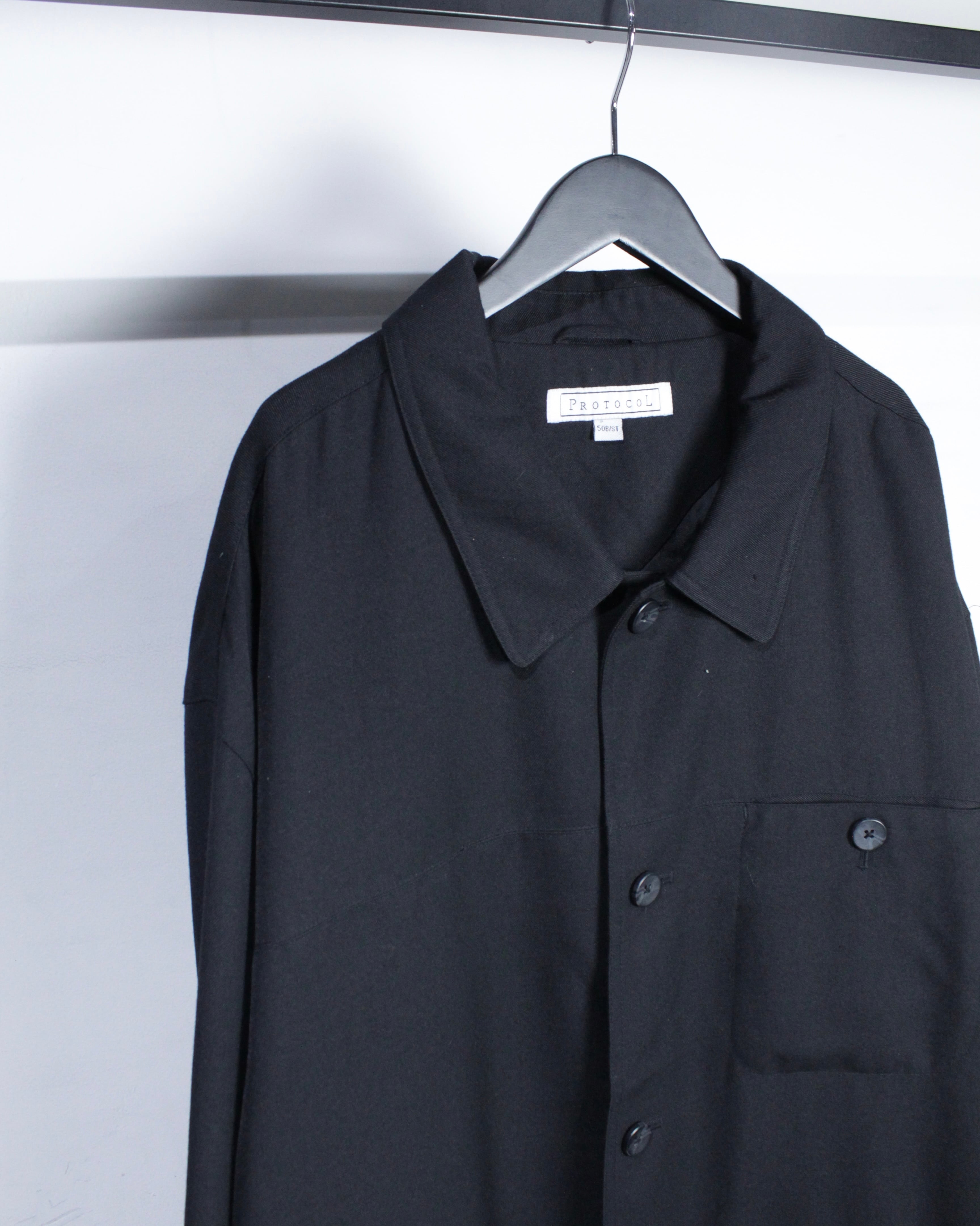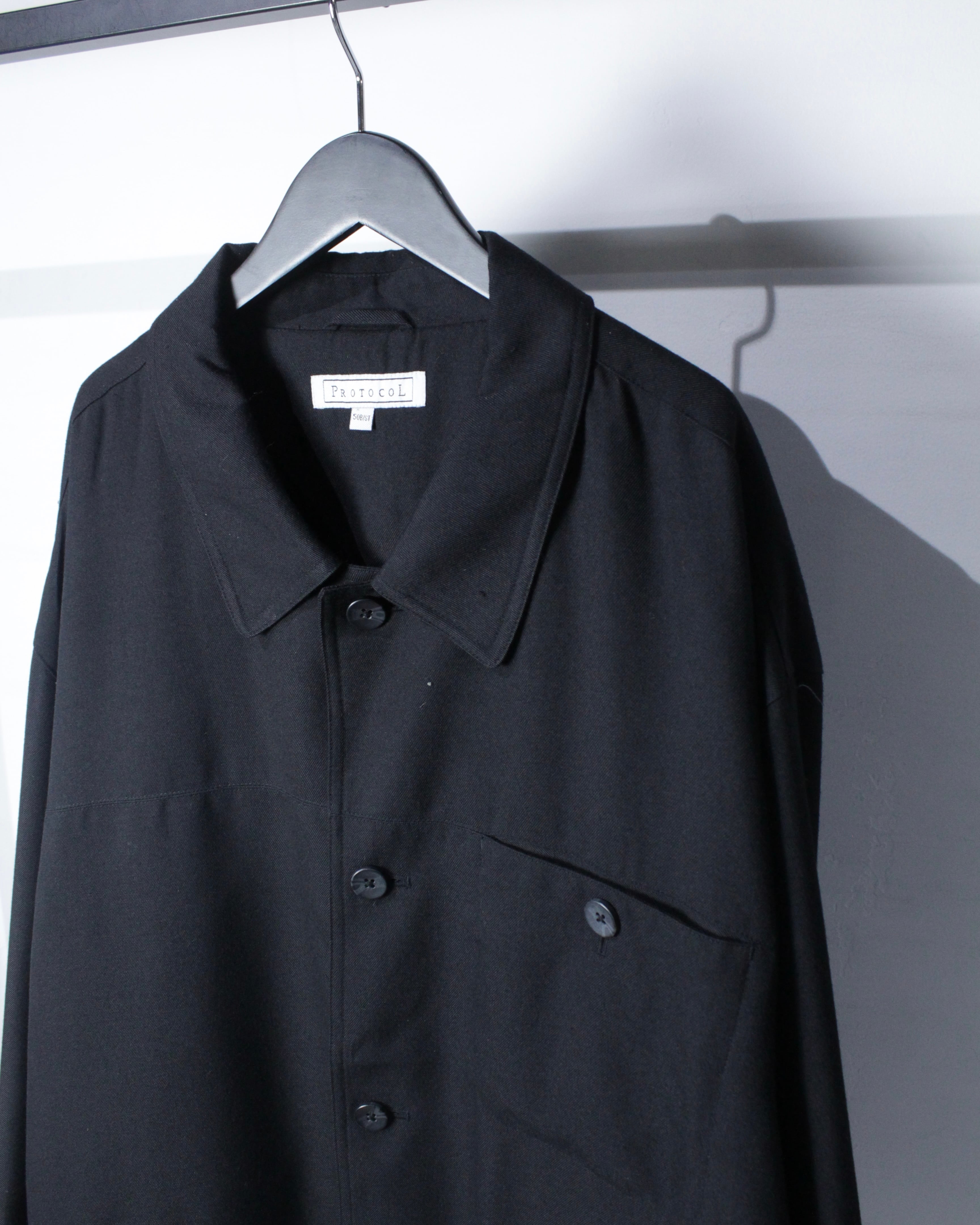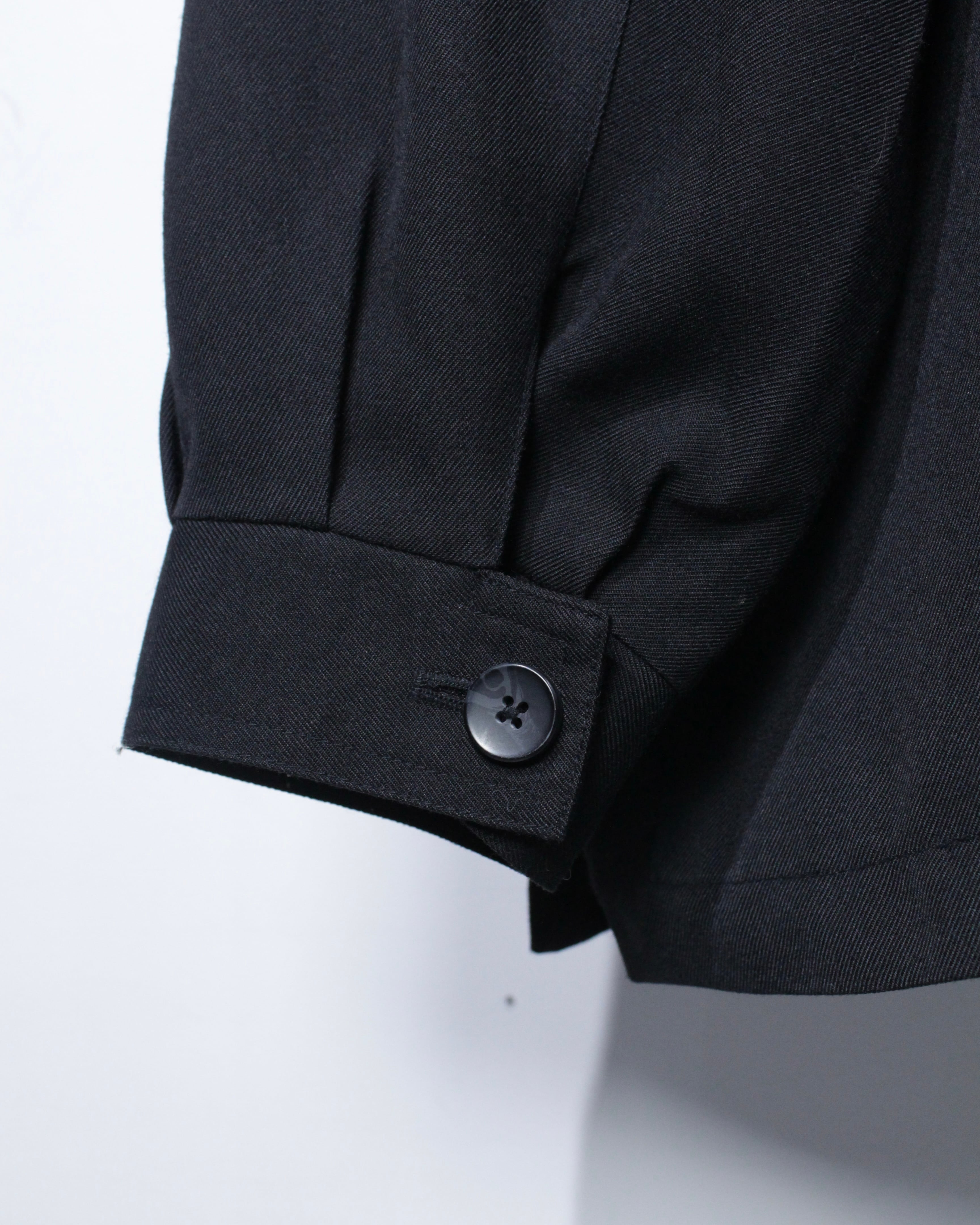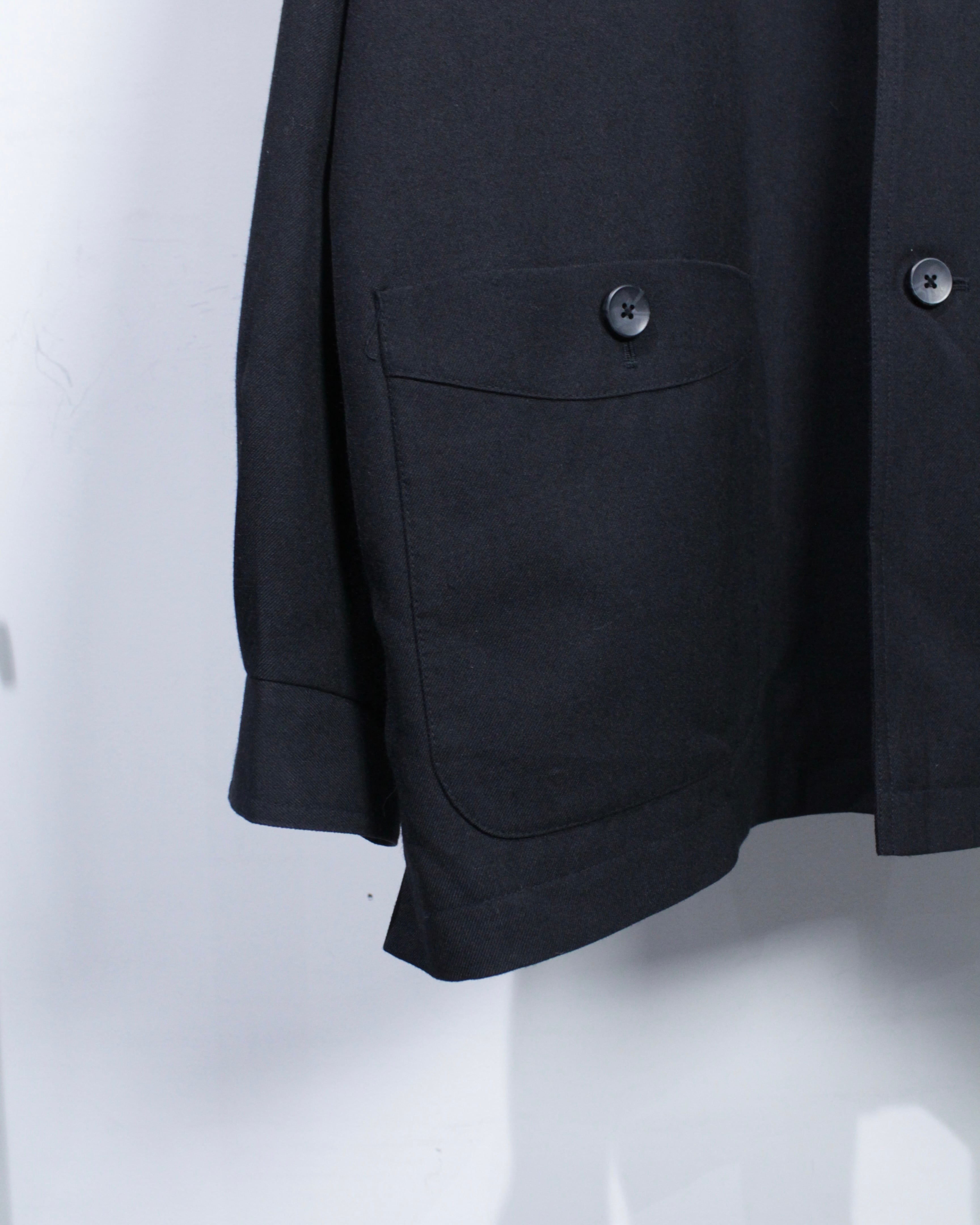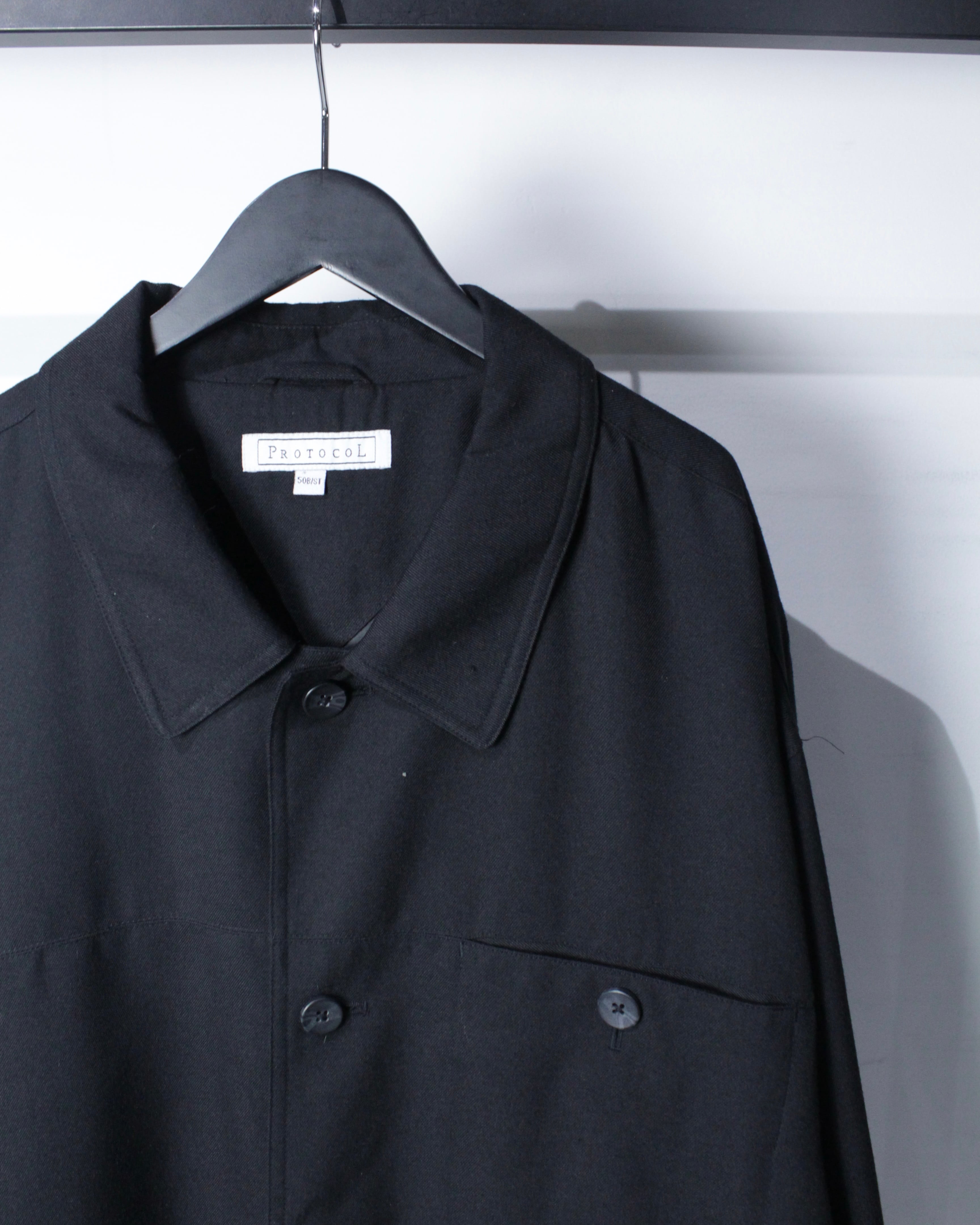 ブラックカラーならではの静かな存在感も相まって、スタイルを選ばず取り入れやすく、カバーオール型の構造により、シャツ感覚でもライトアウターとしても着用可能。